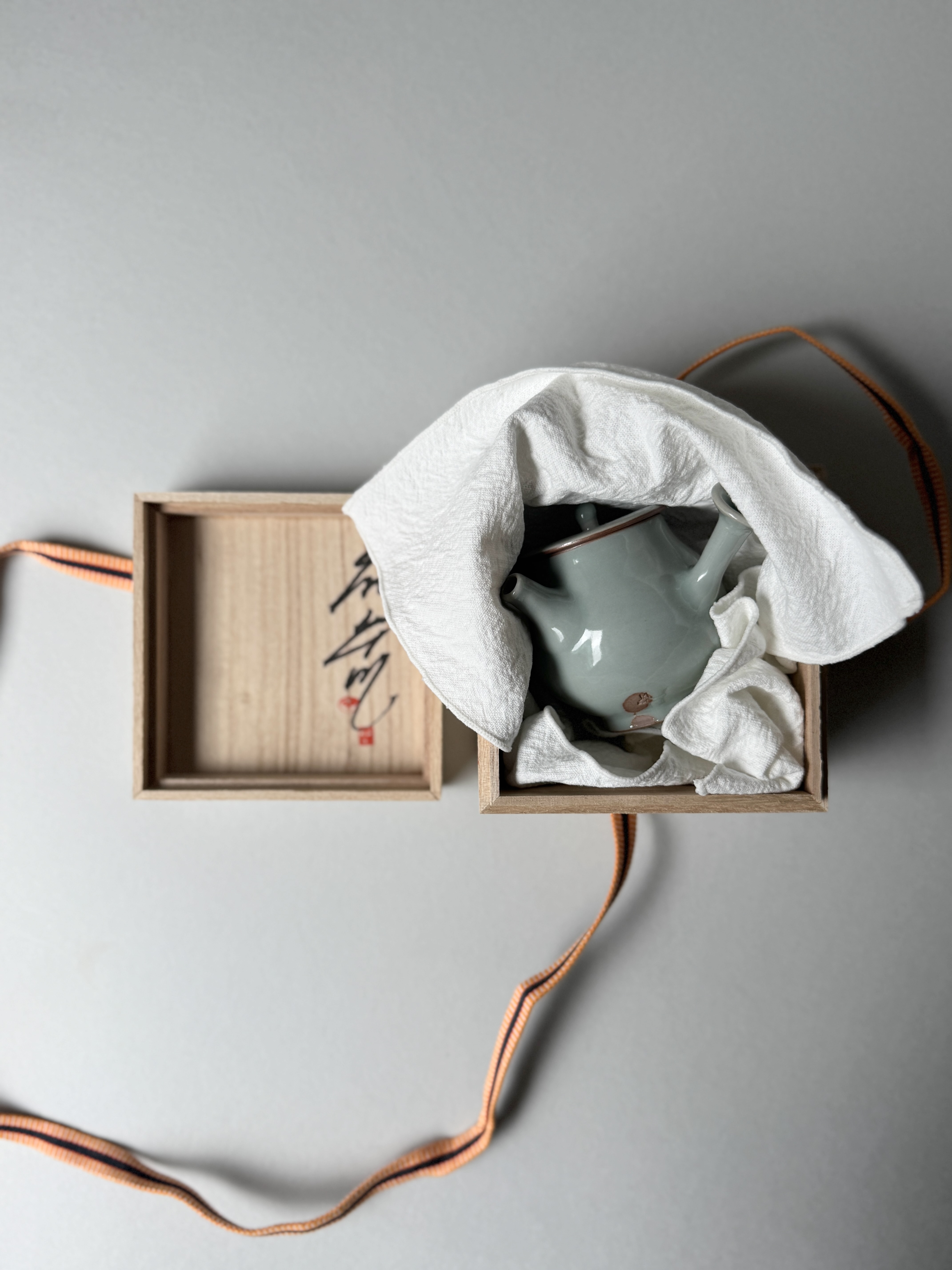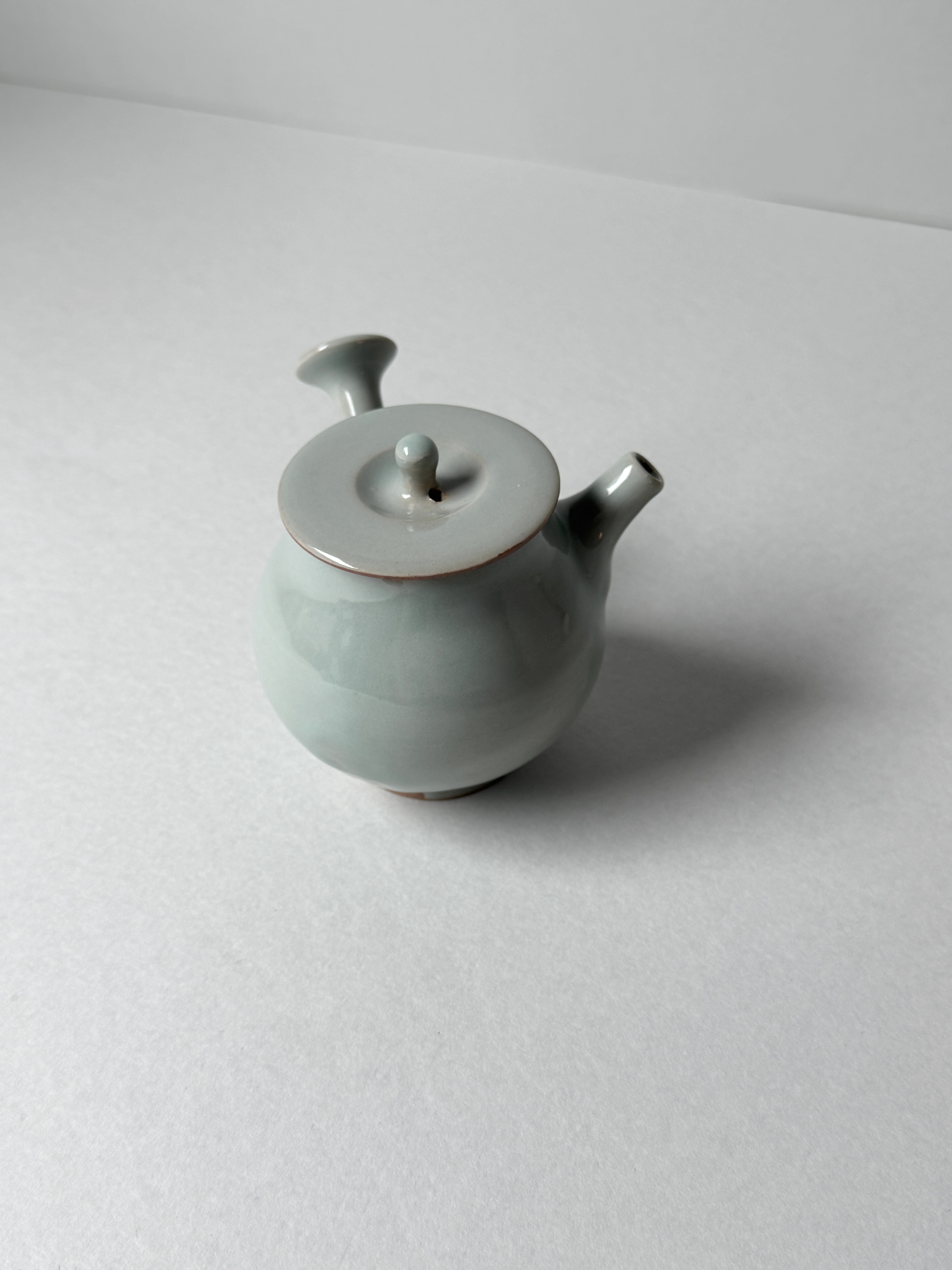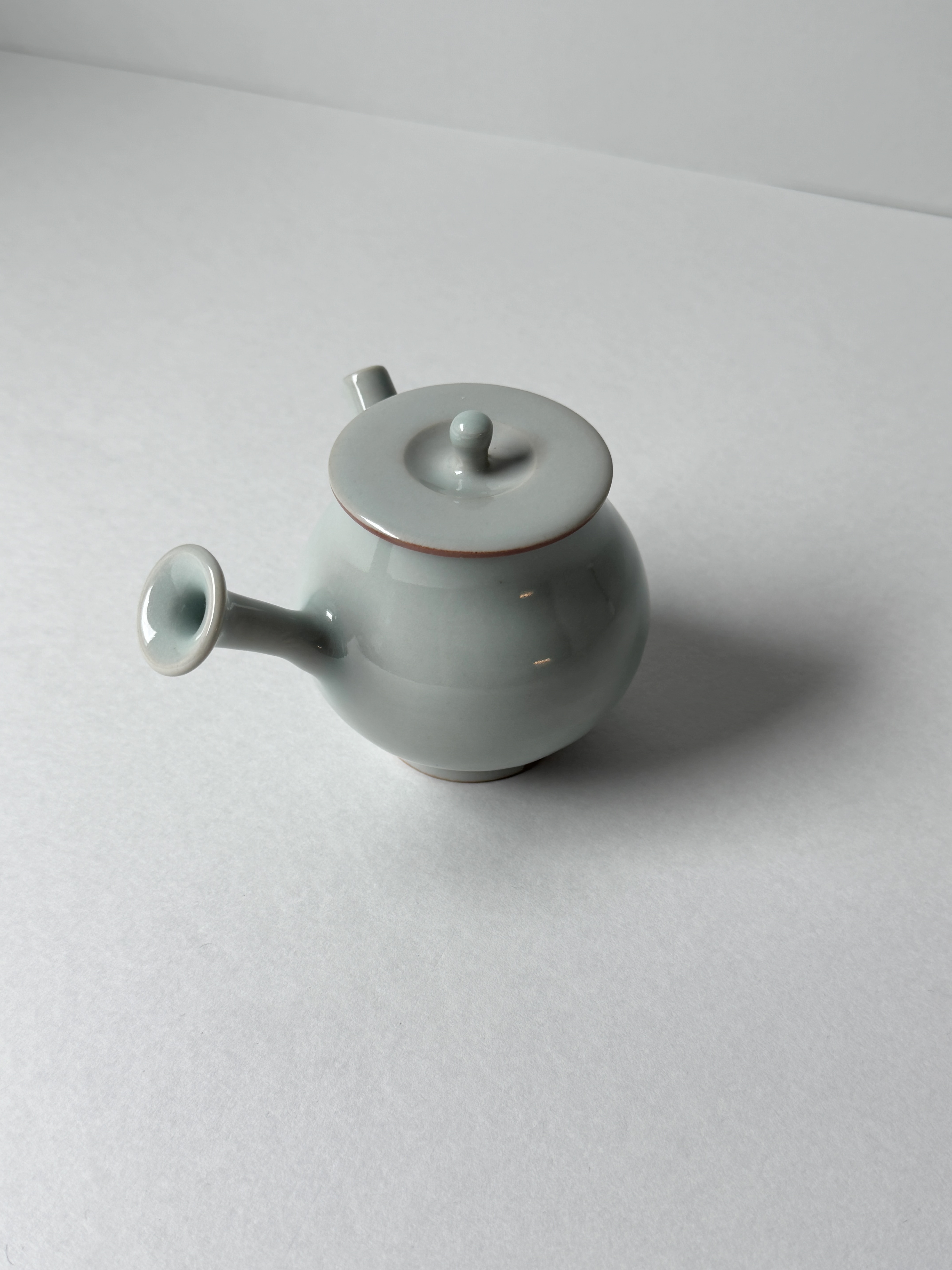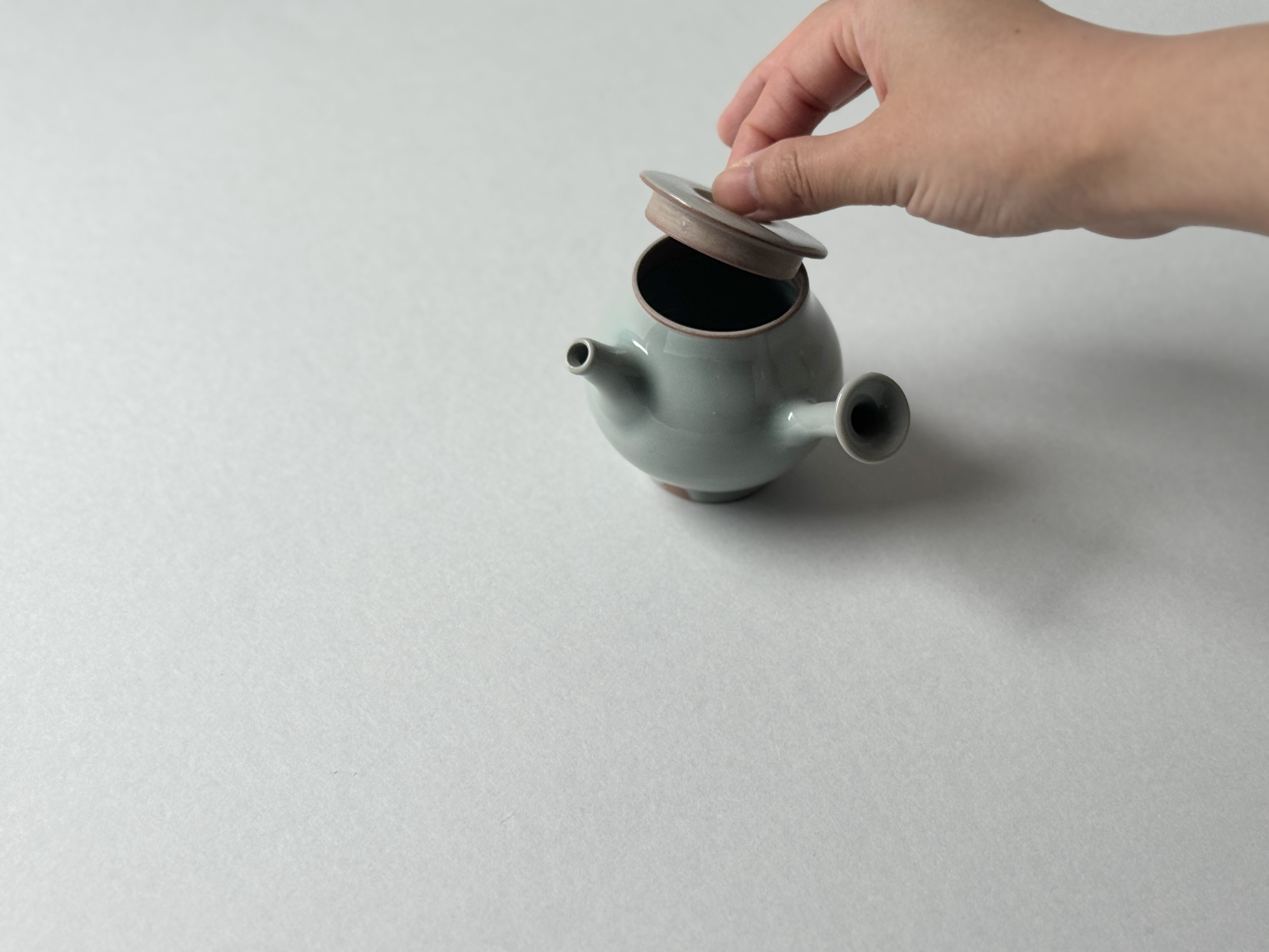 한 손에 잡히는 크기와 맑은 옥색빛 다관은 내부에 찻잎을 거를 수 있는 거름망이 내장되어 있어 실용성을 더합니다.