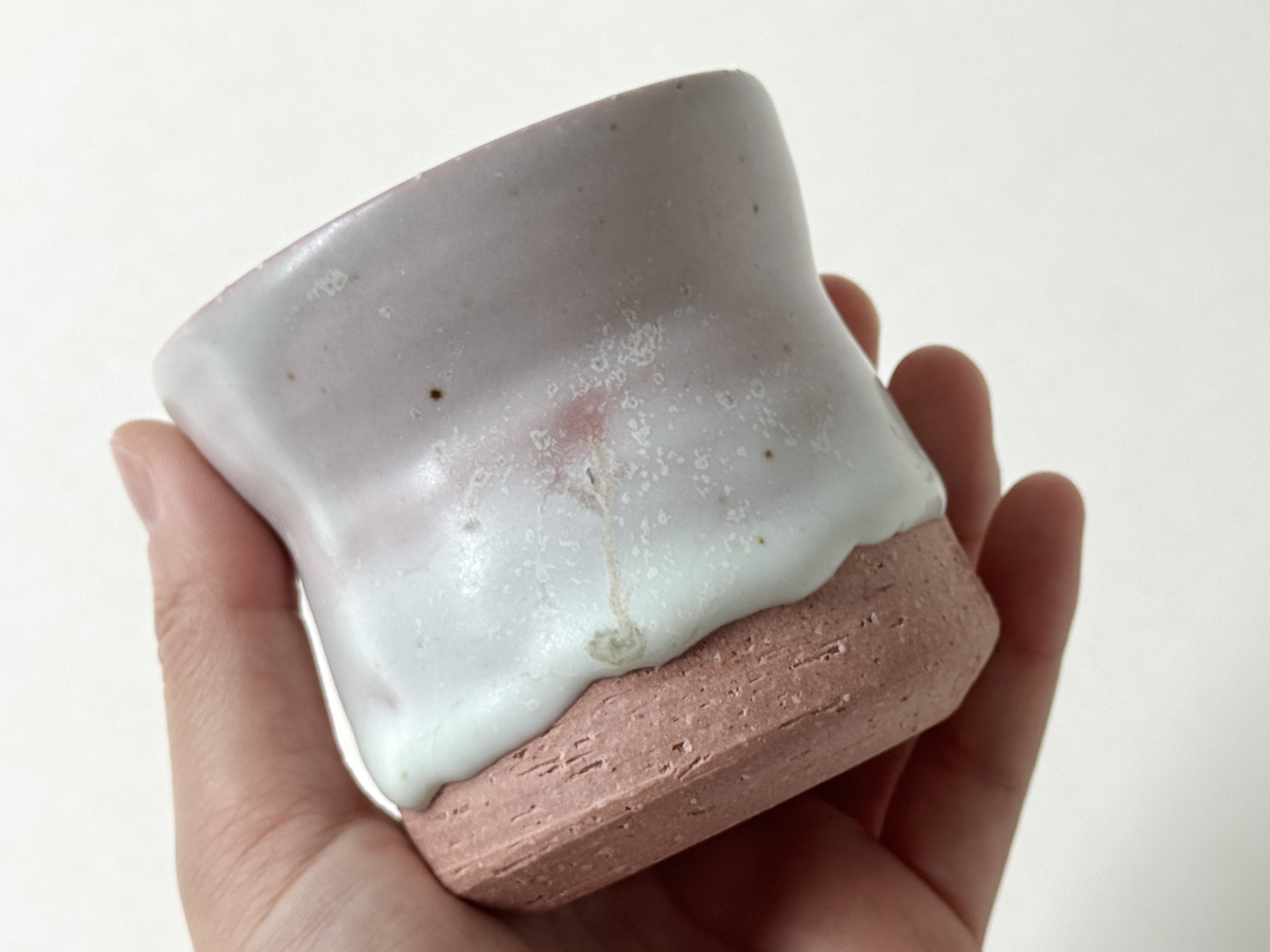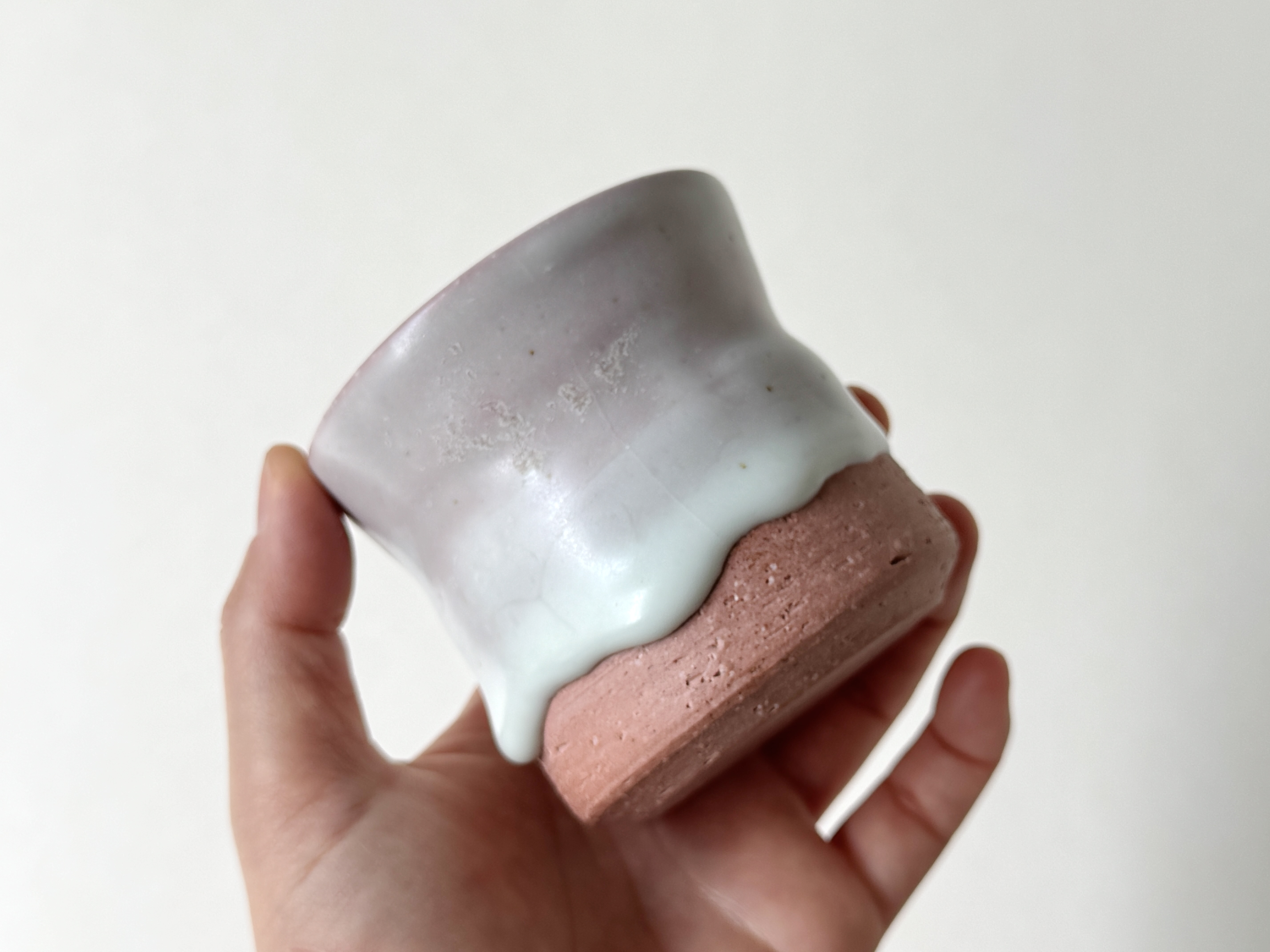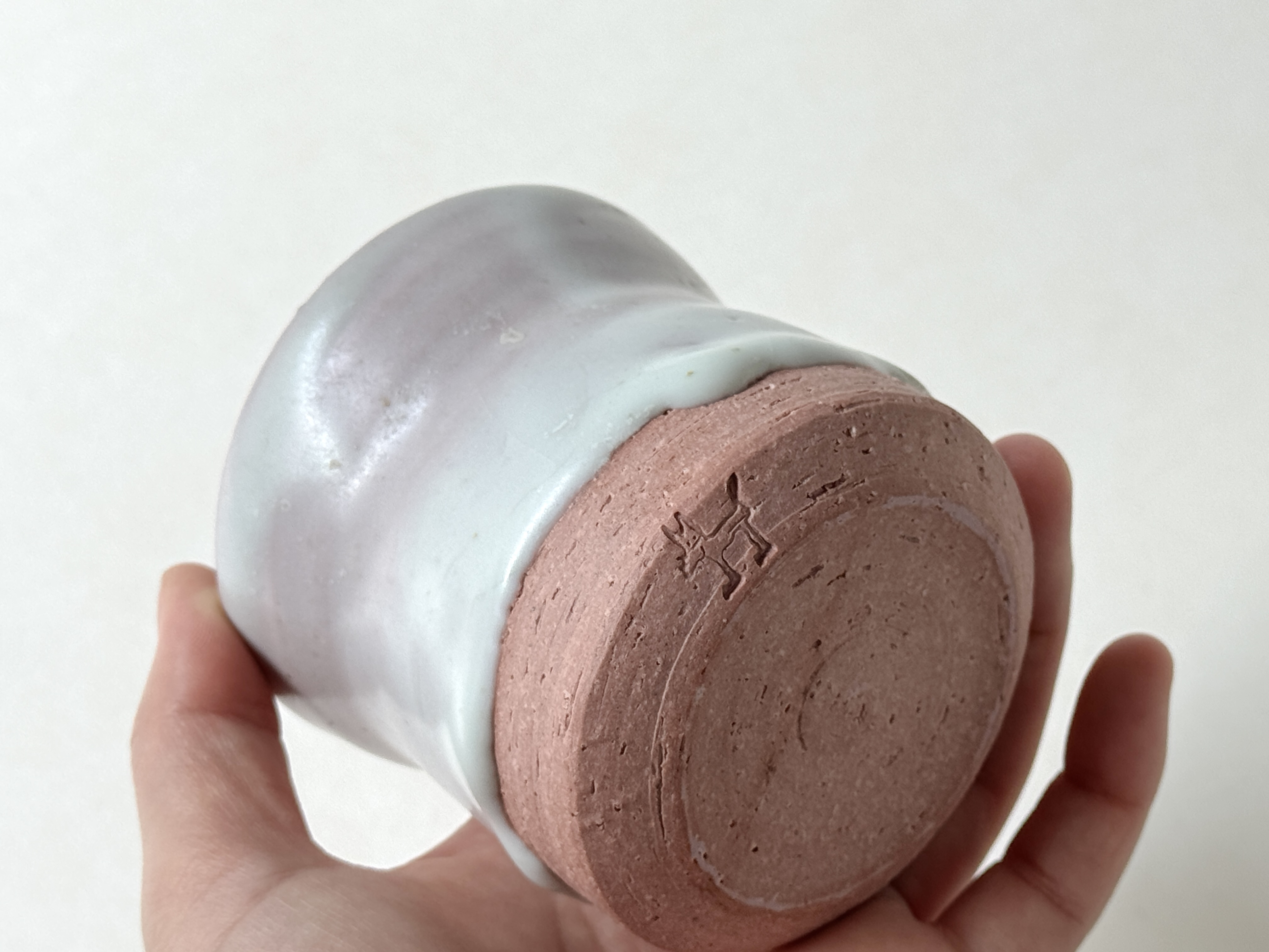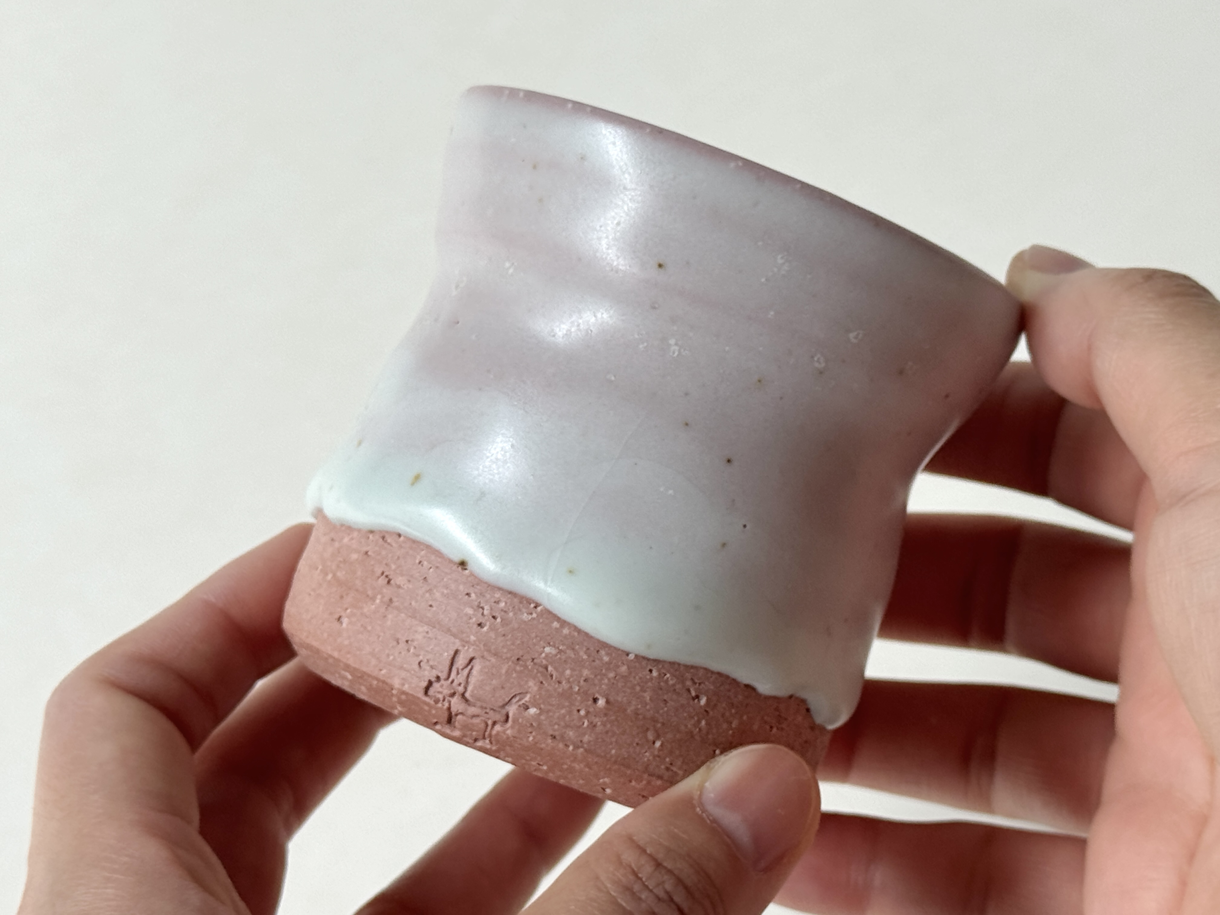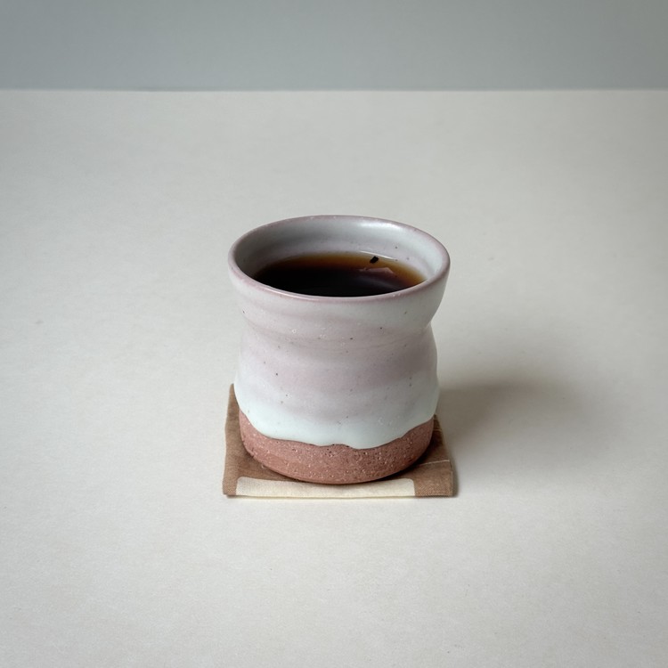 붉은빛의 흙과 유약이 만나 부드러운 분홍빛의 딸기라떼잔이 매력적입니다.
