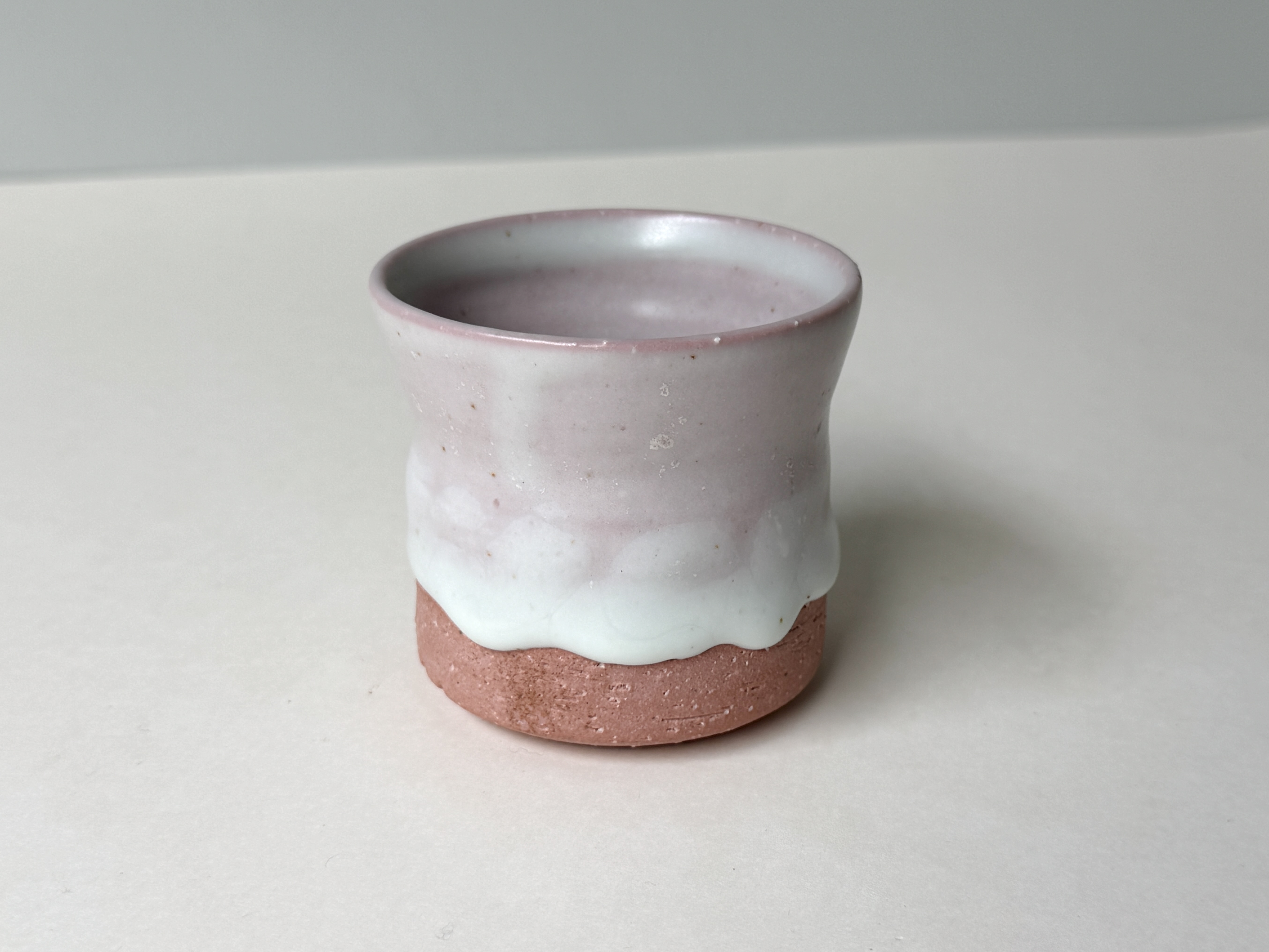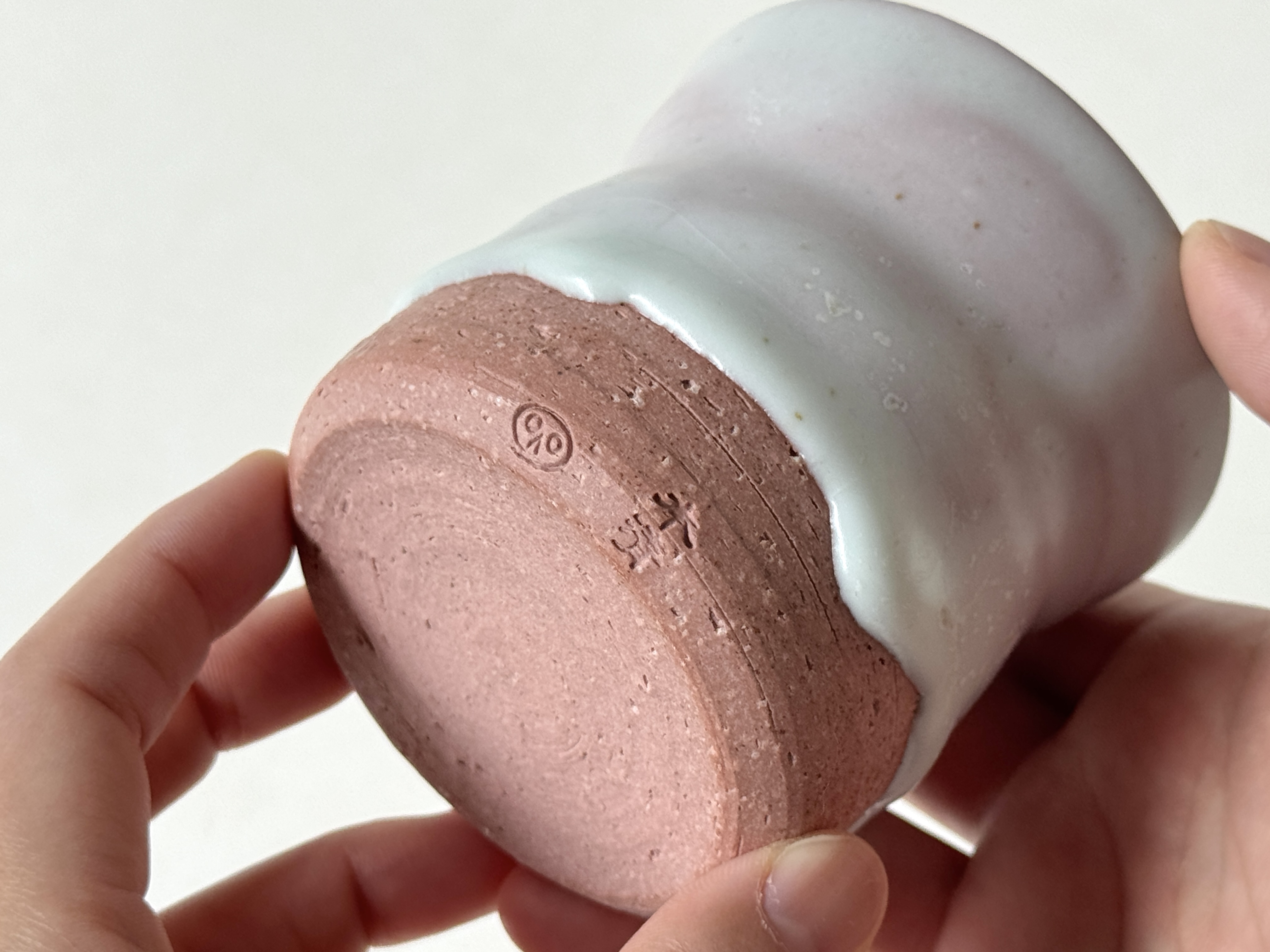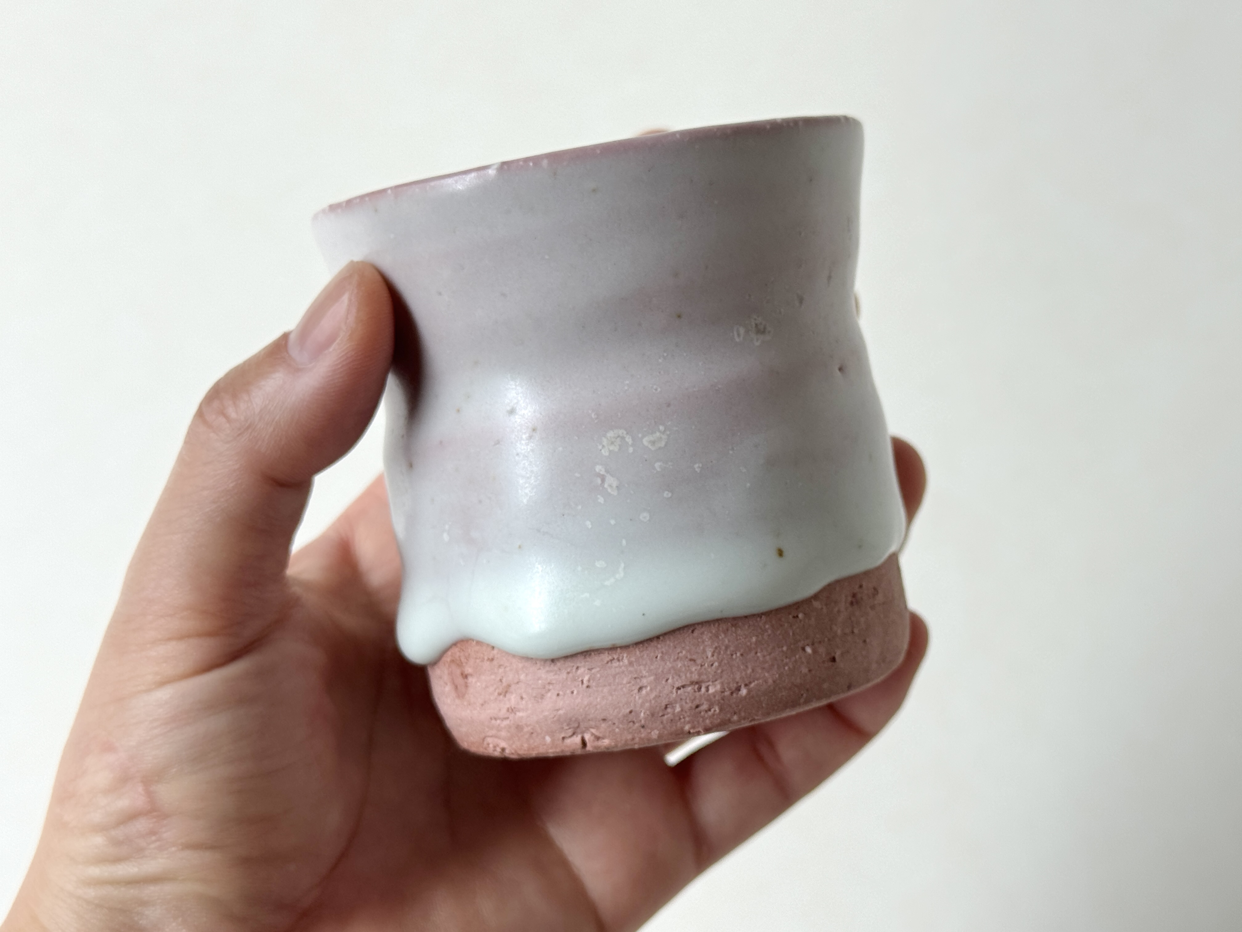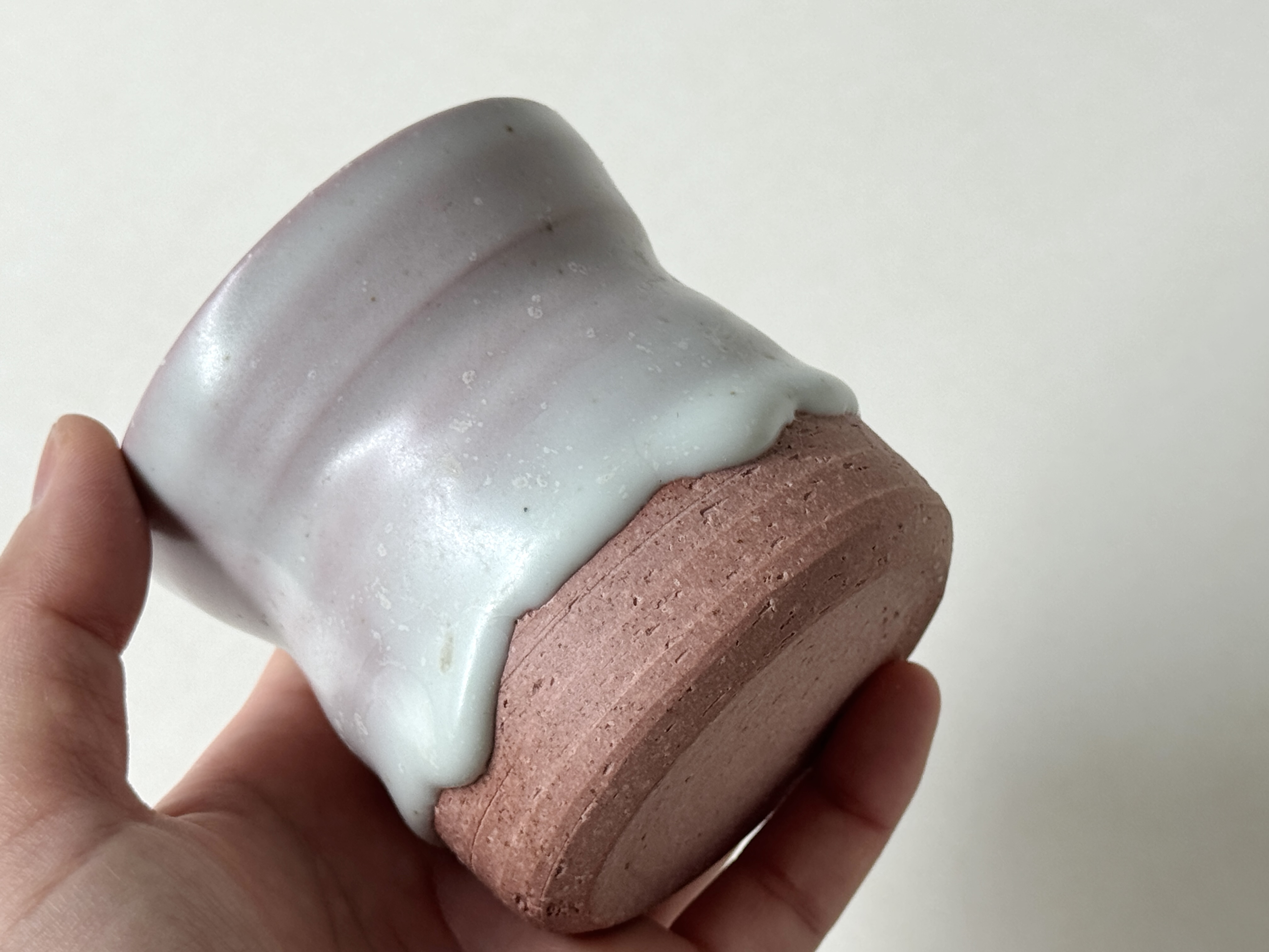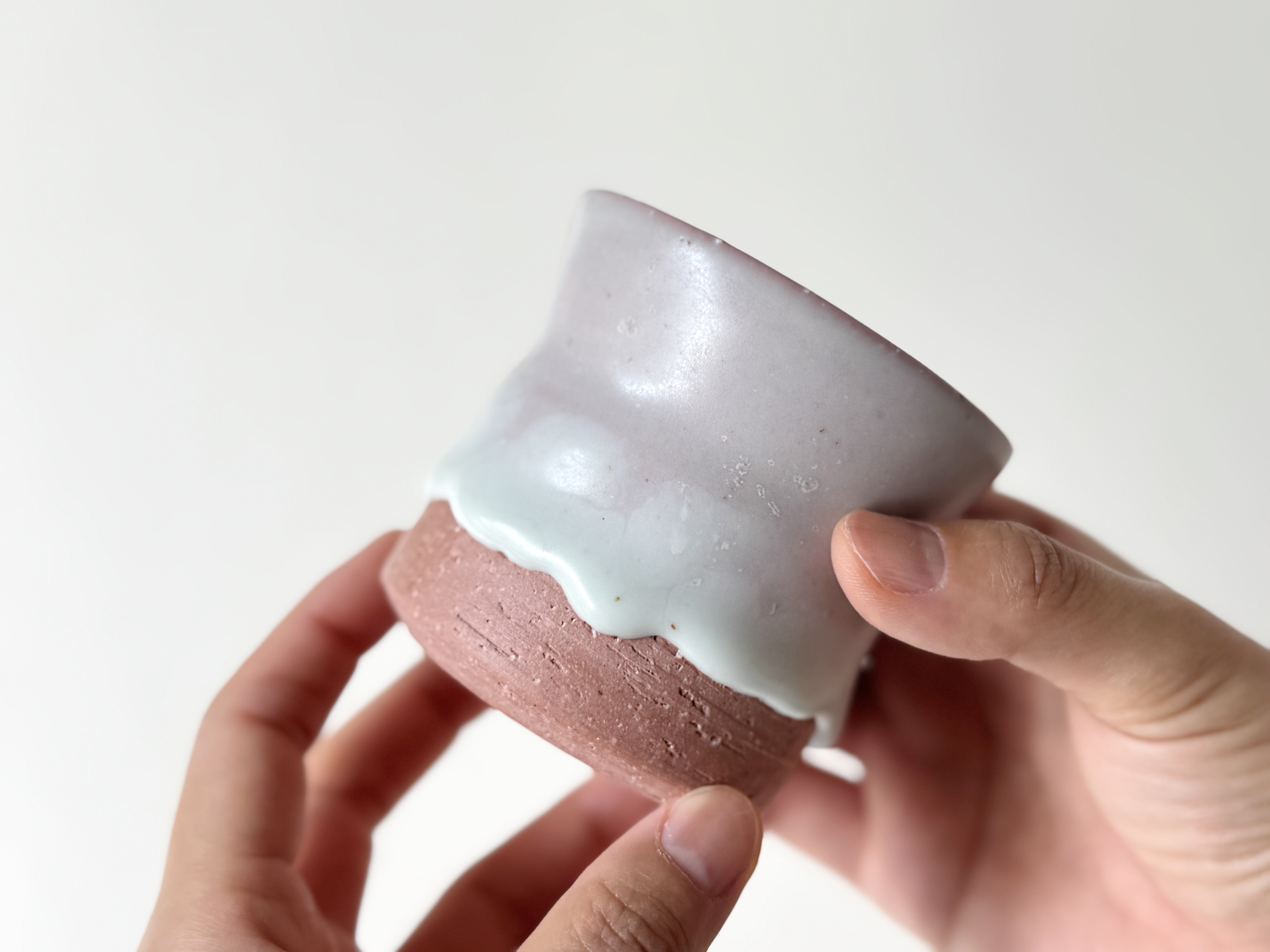 붉은빛의 흙과 유약이 만나 부드러운 분홍빛의 딸기라떼잔이 매력적입니다.