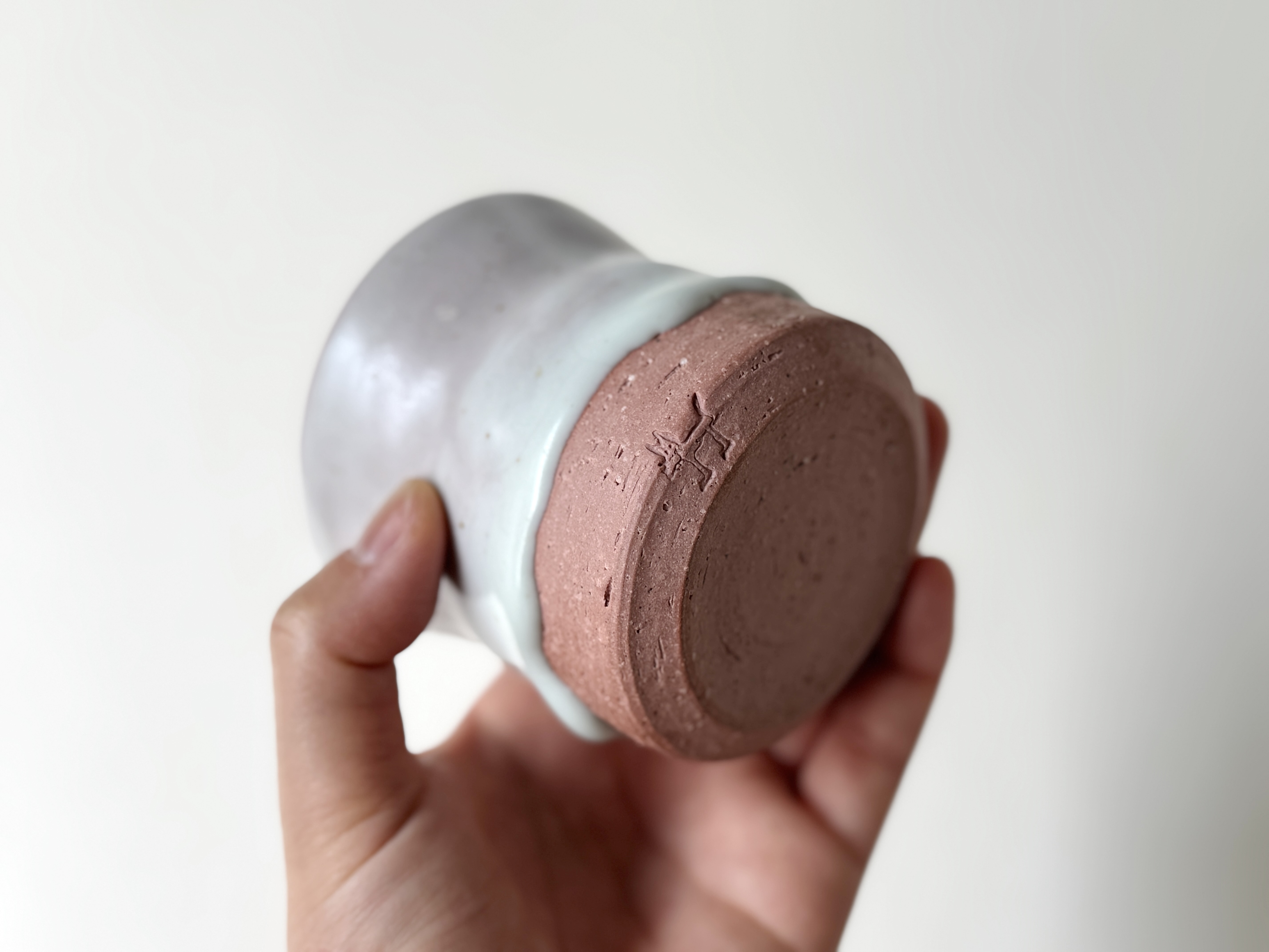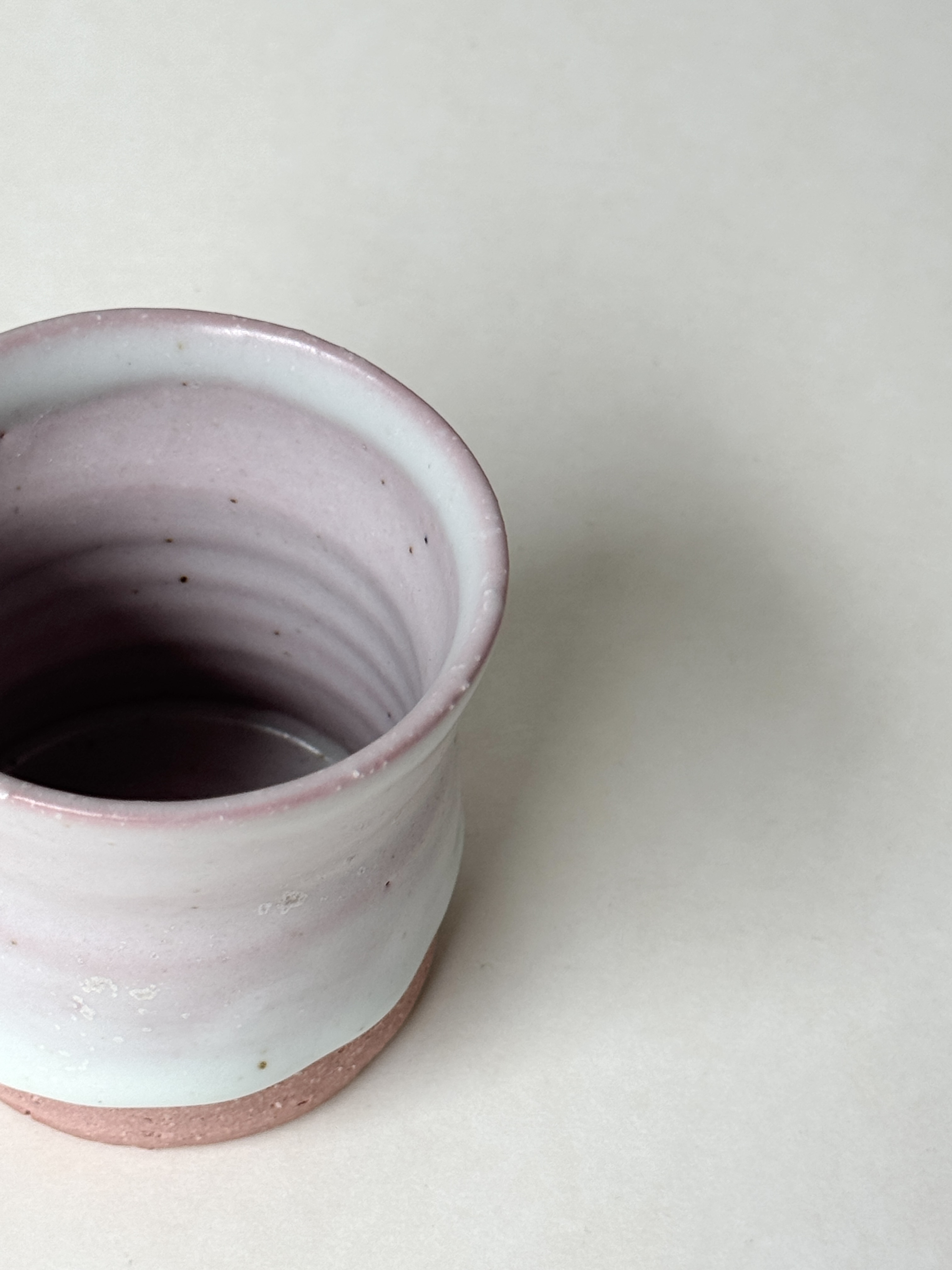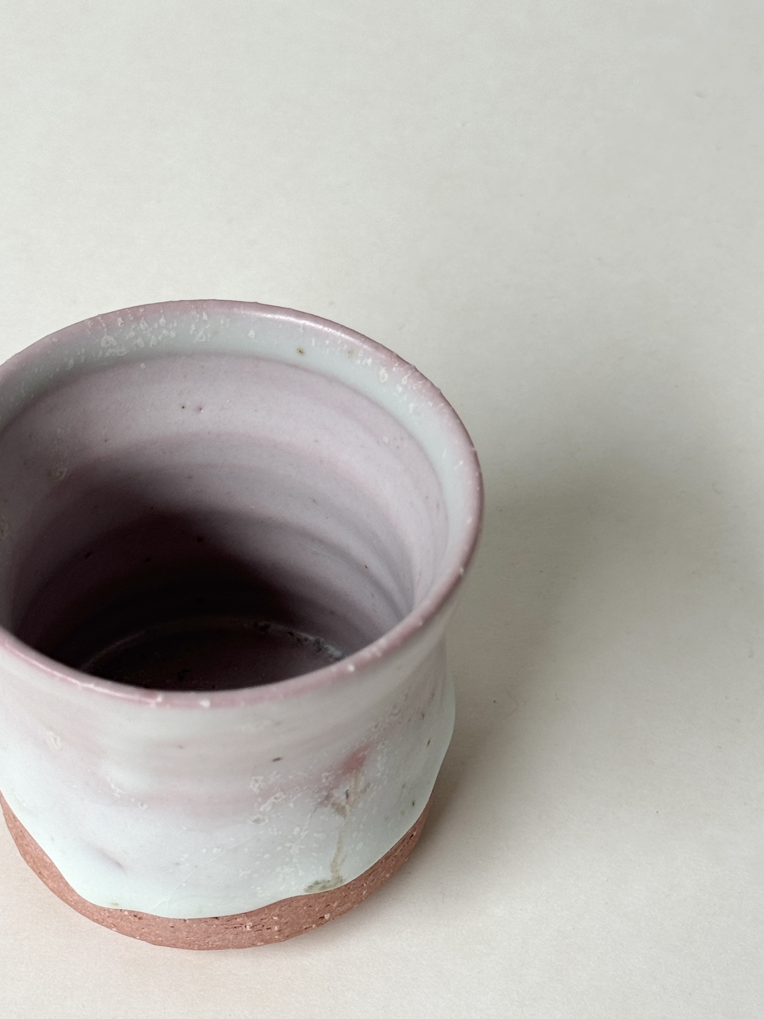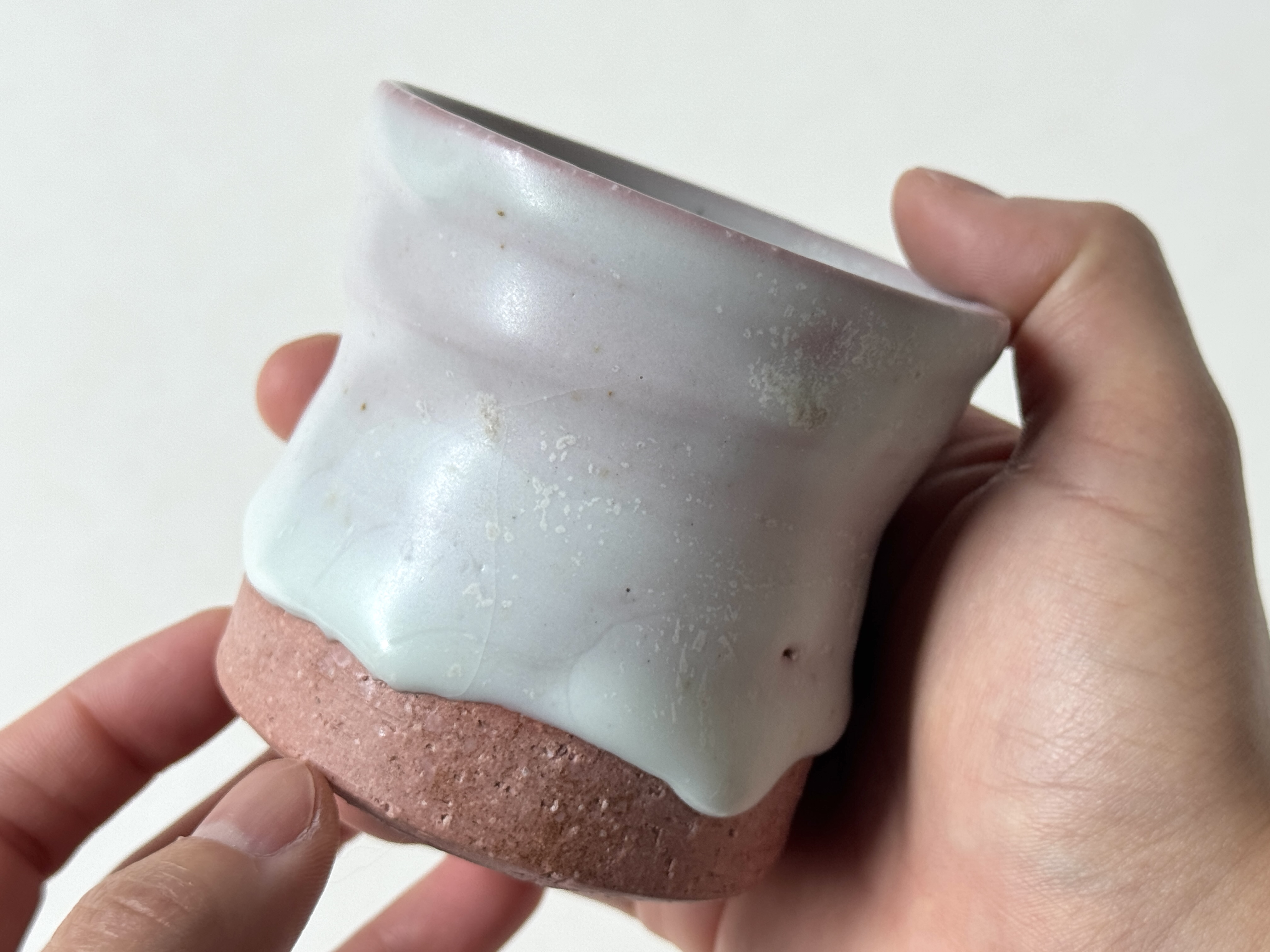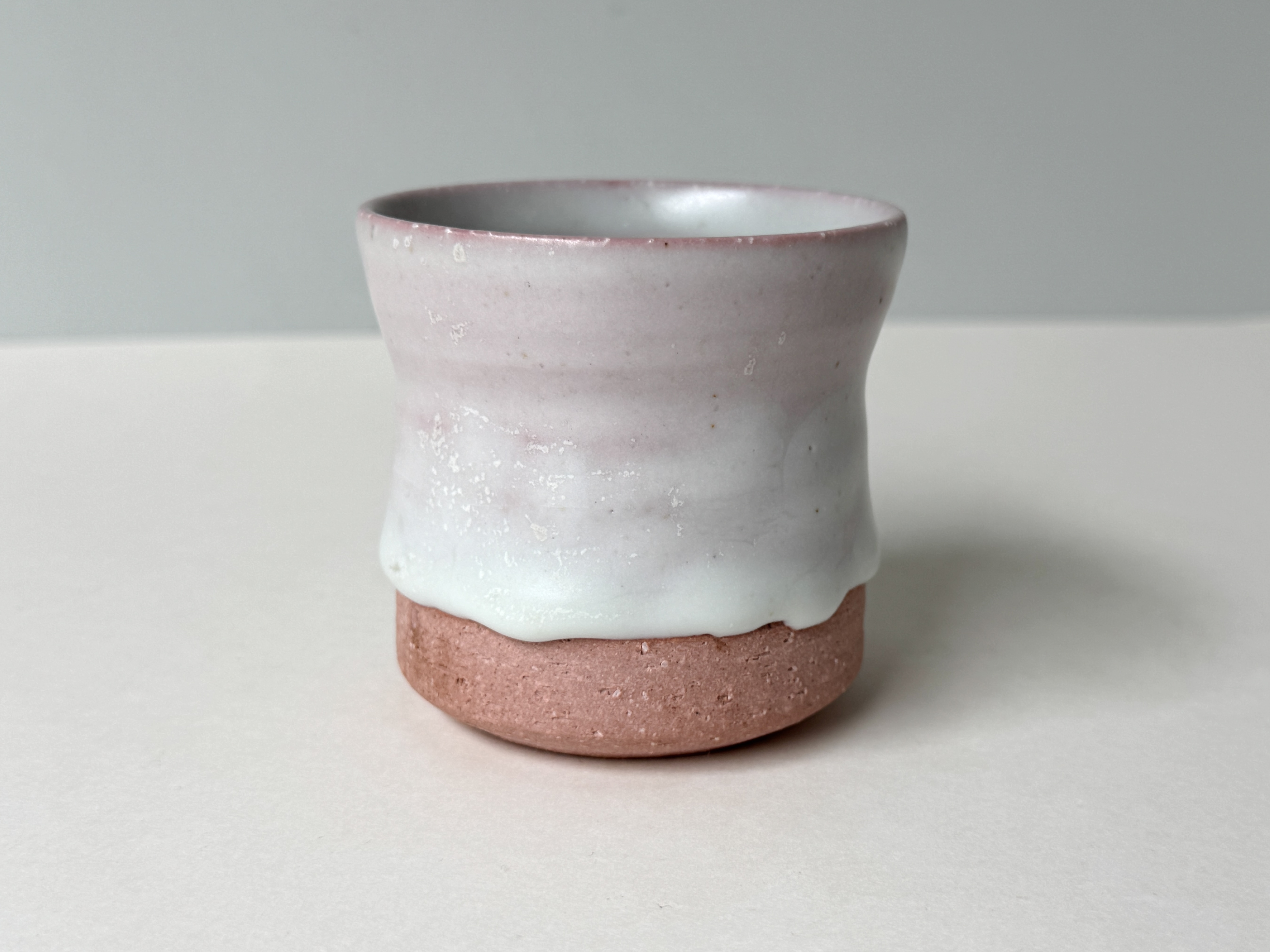 붉은빛의 흙과 유약이 만나 부드러운 분홍빛의 딸기라떼잔이 매력적입니다.