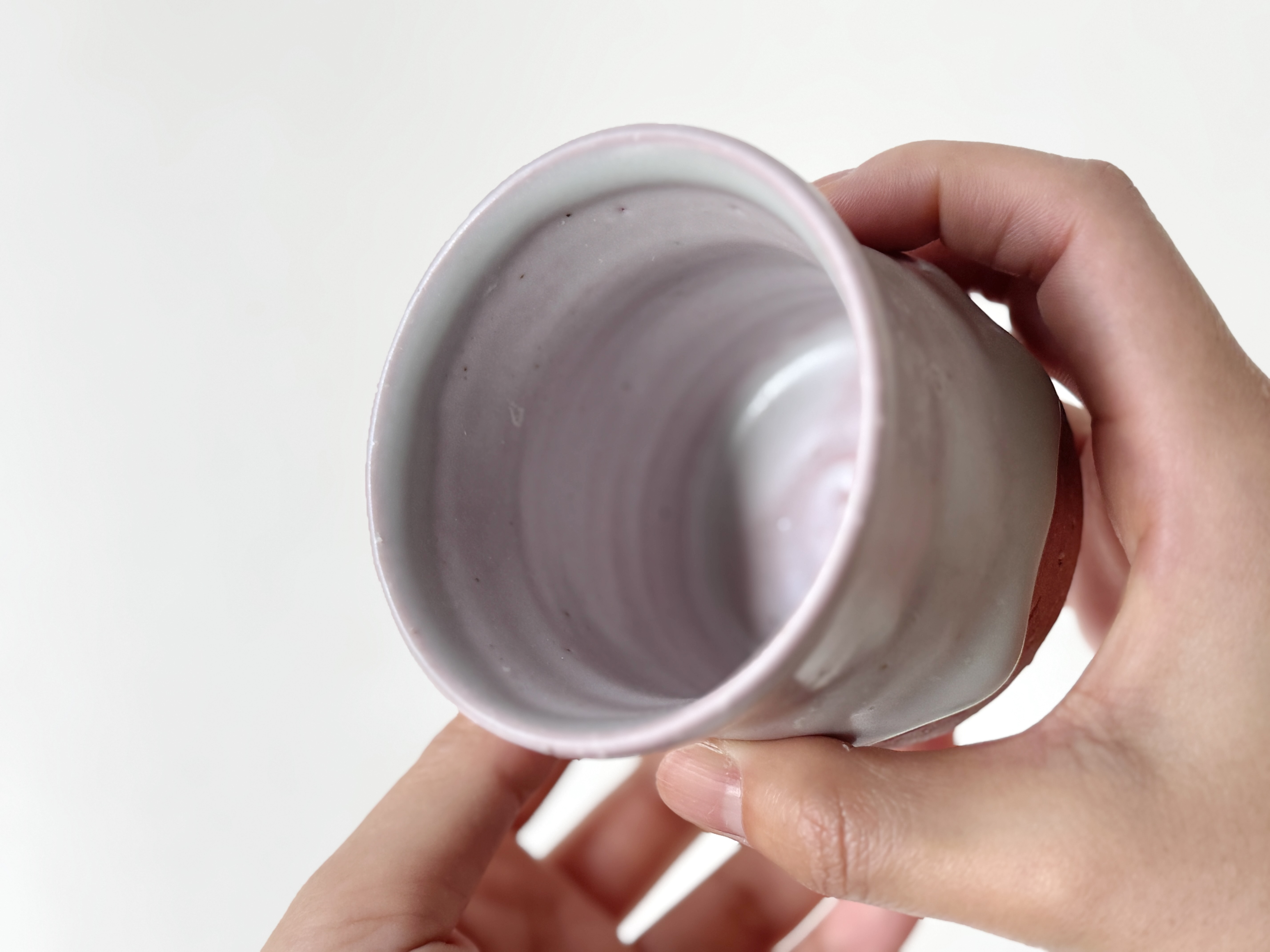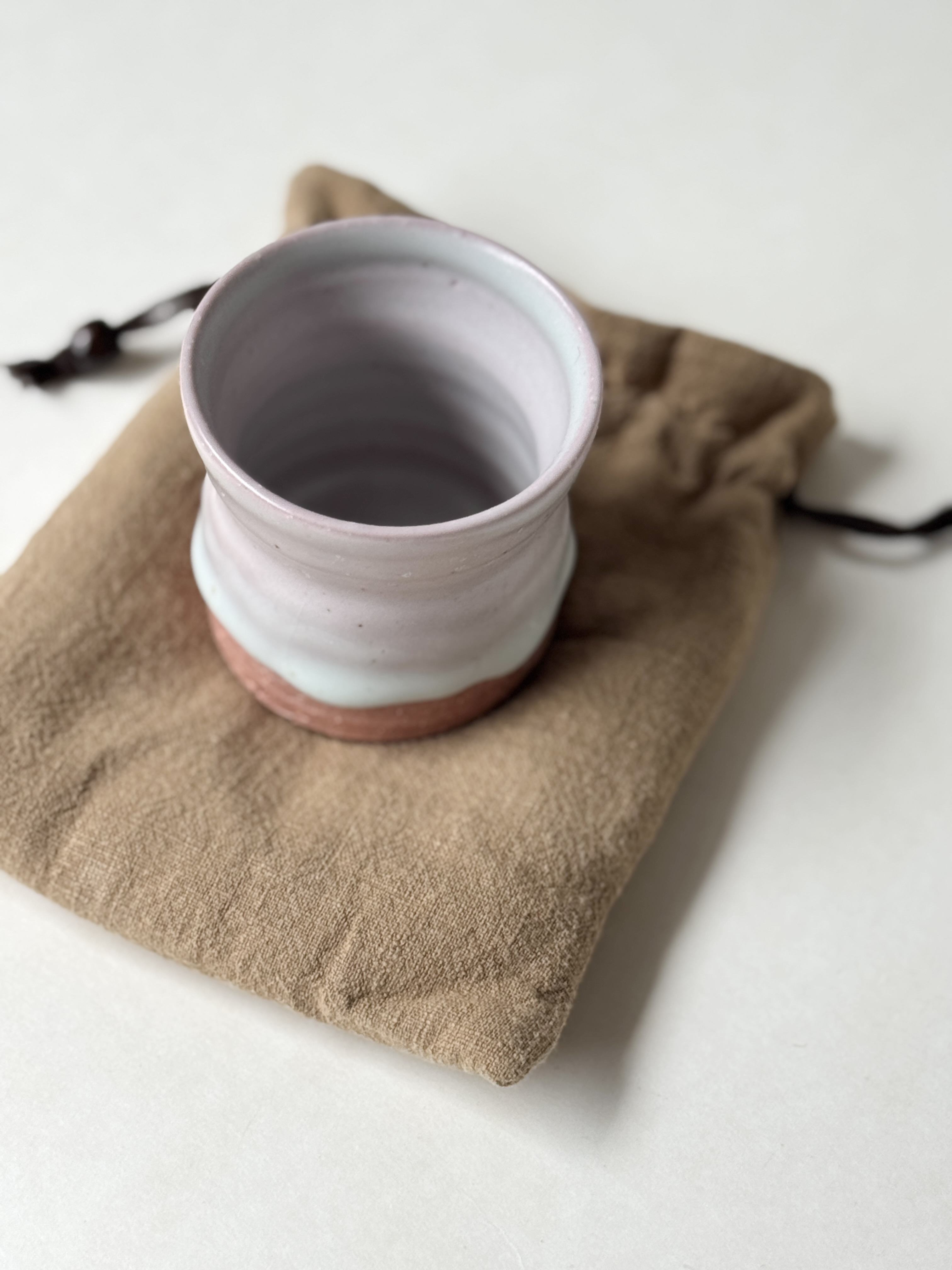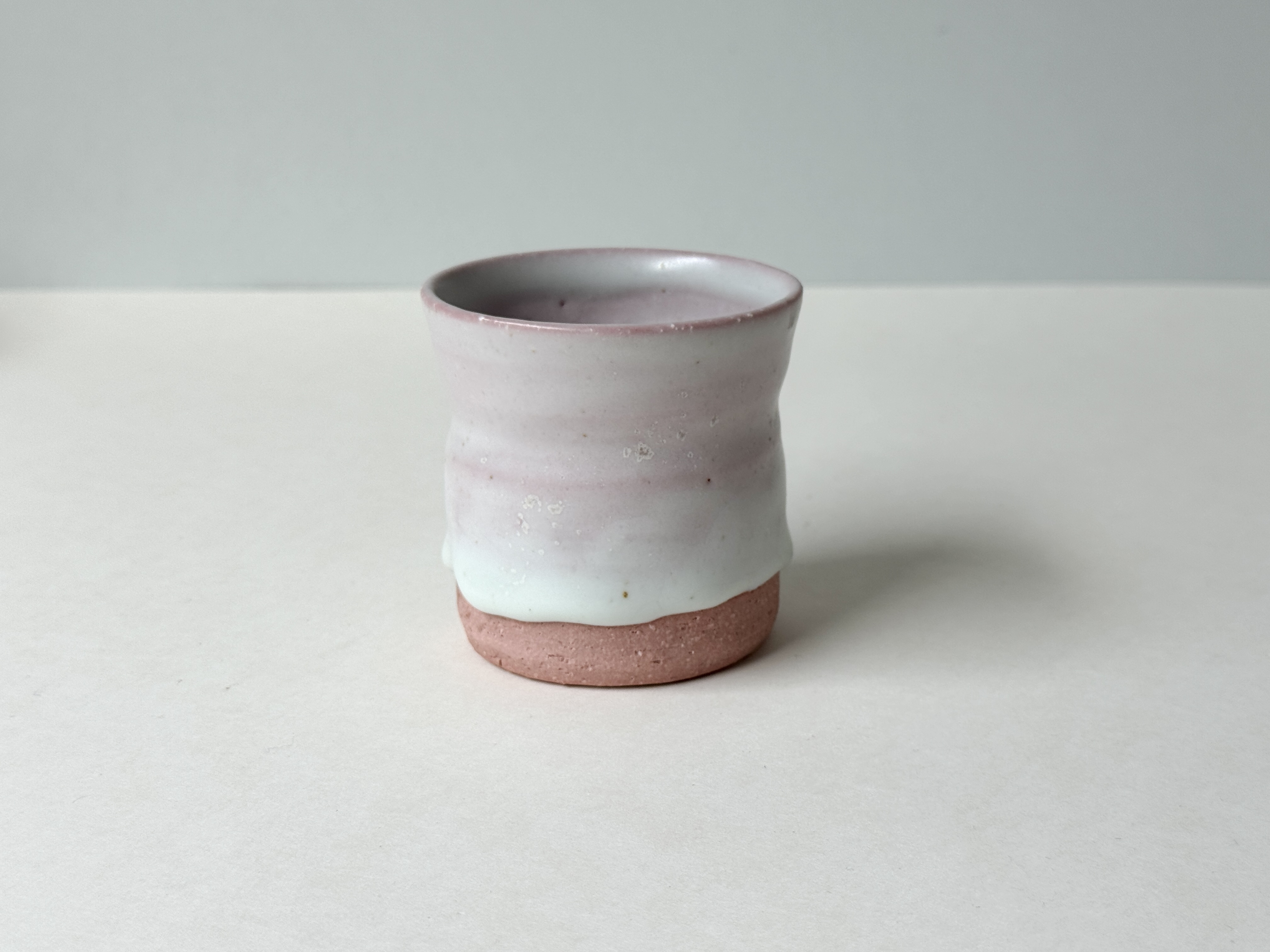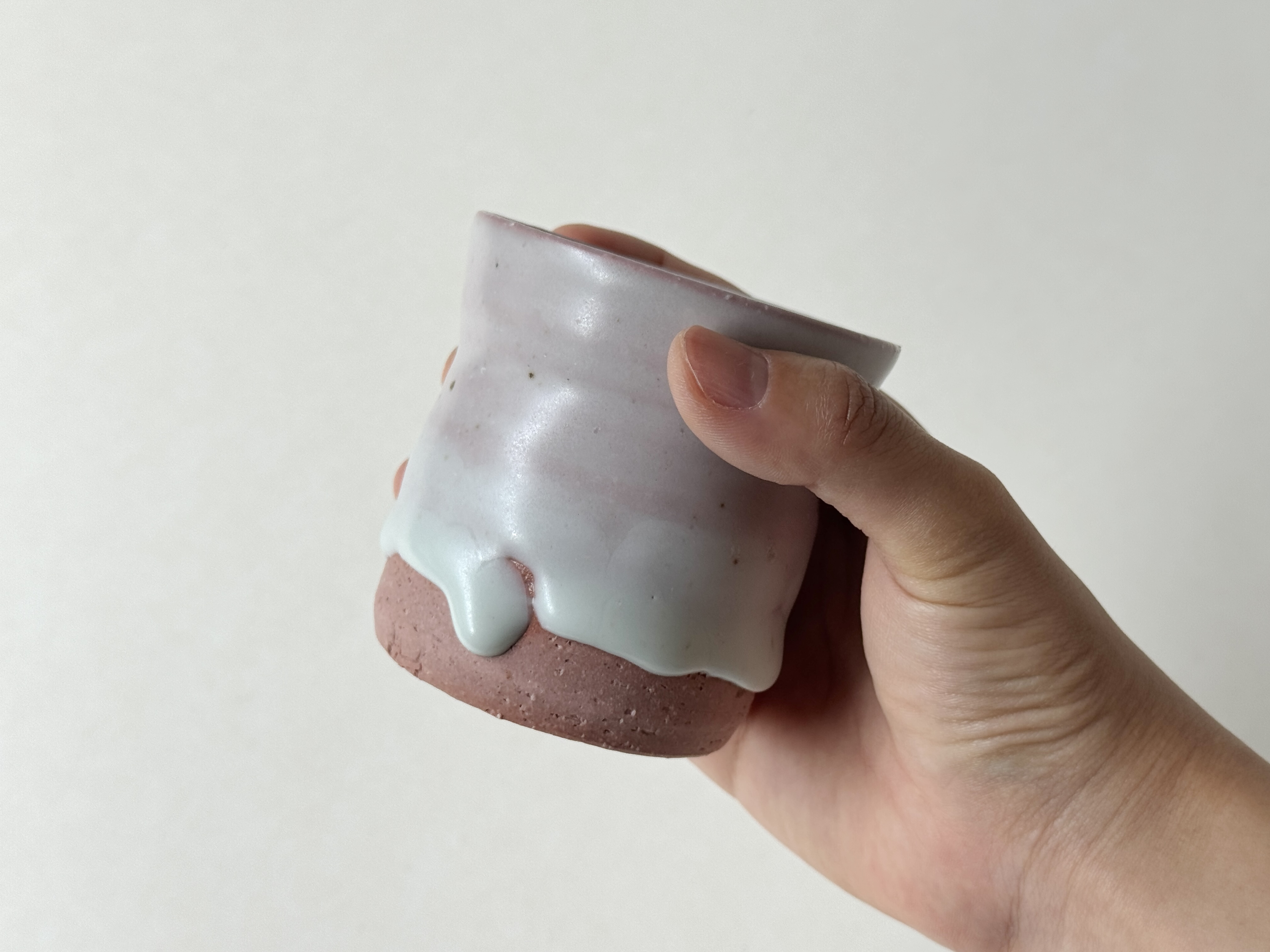 붉은빛의 흙과 유약이 만나 부드러운 분홍빛의 딸기라떼잔이 매력적입니다.