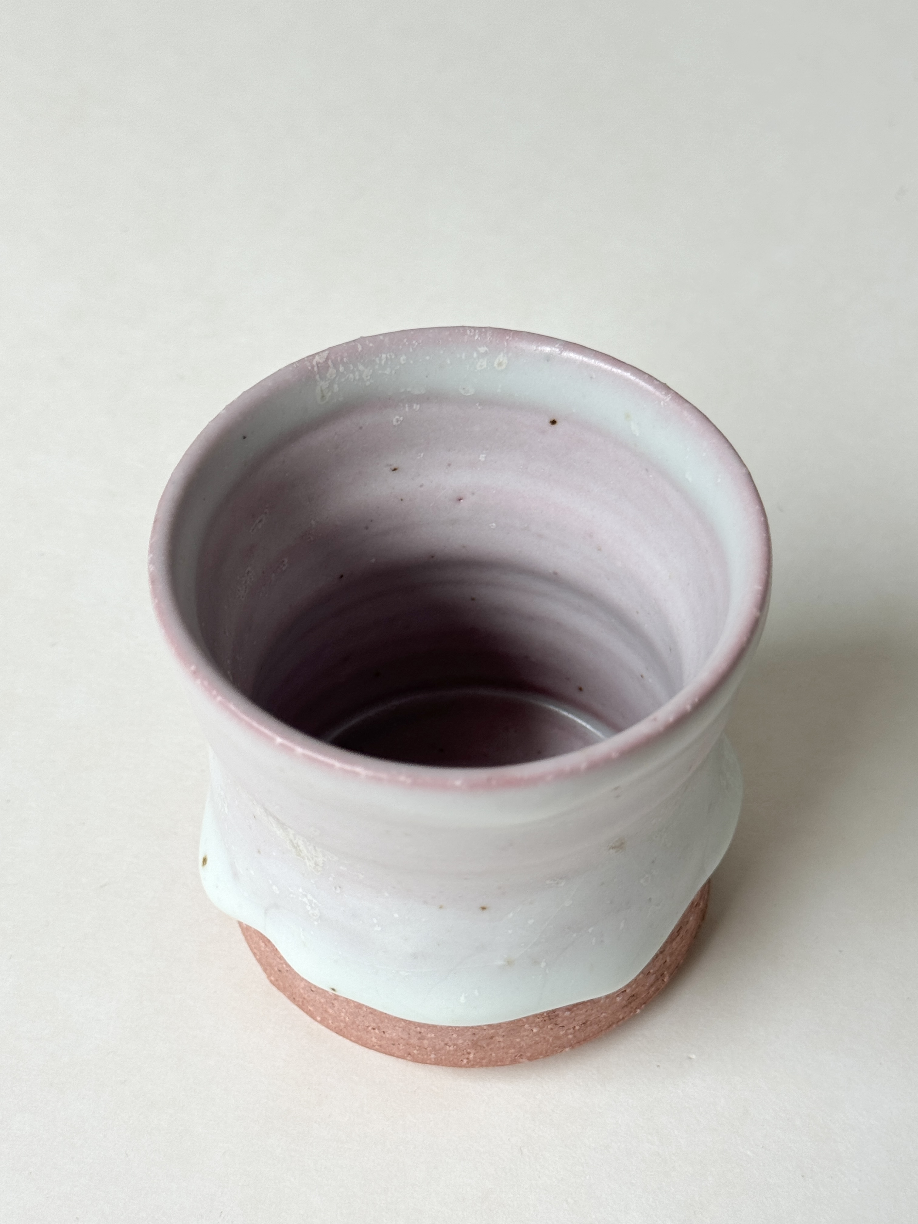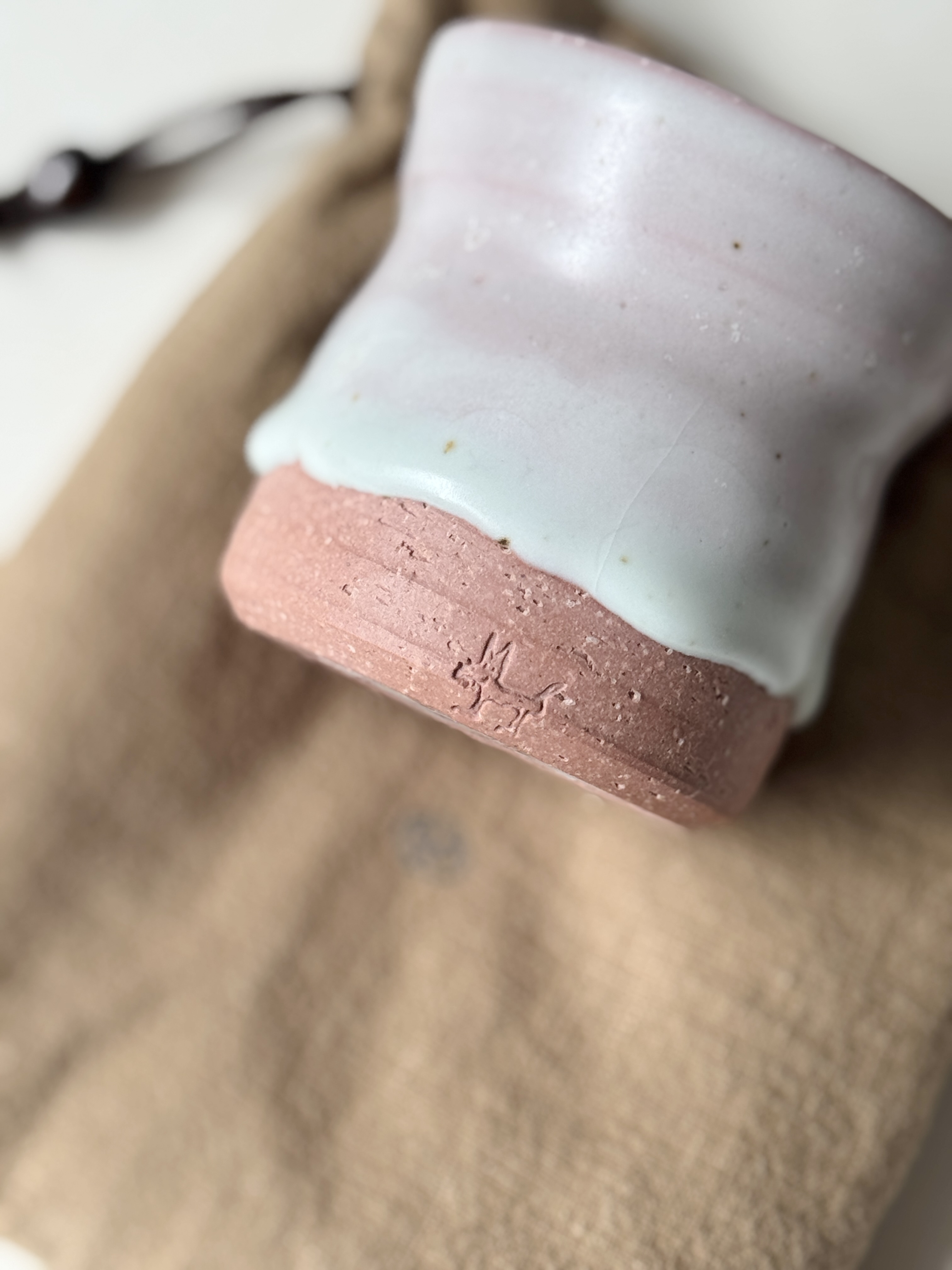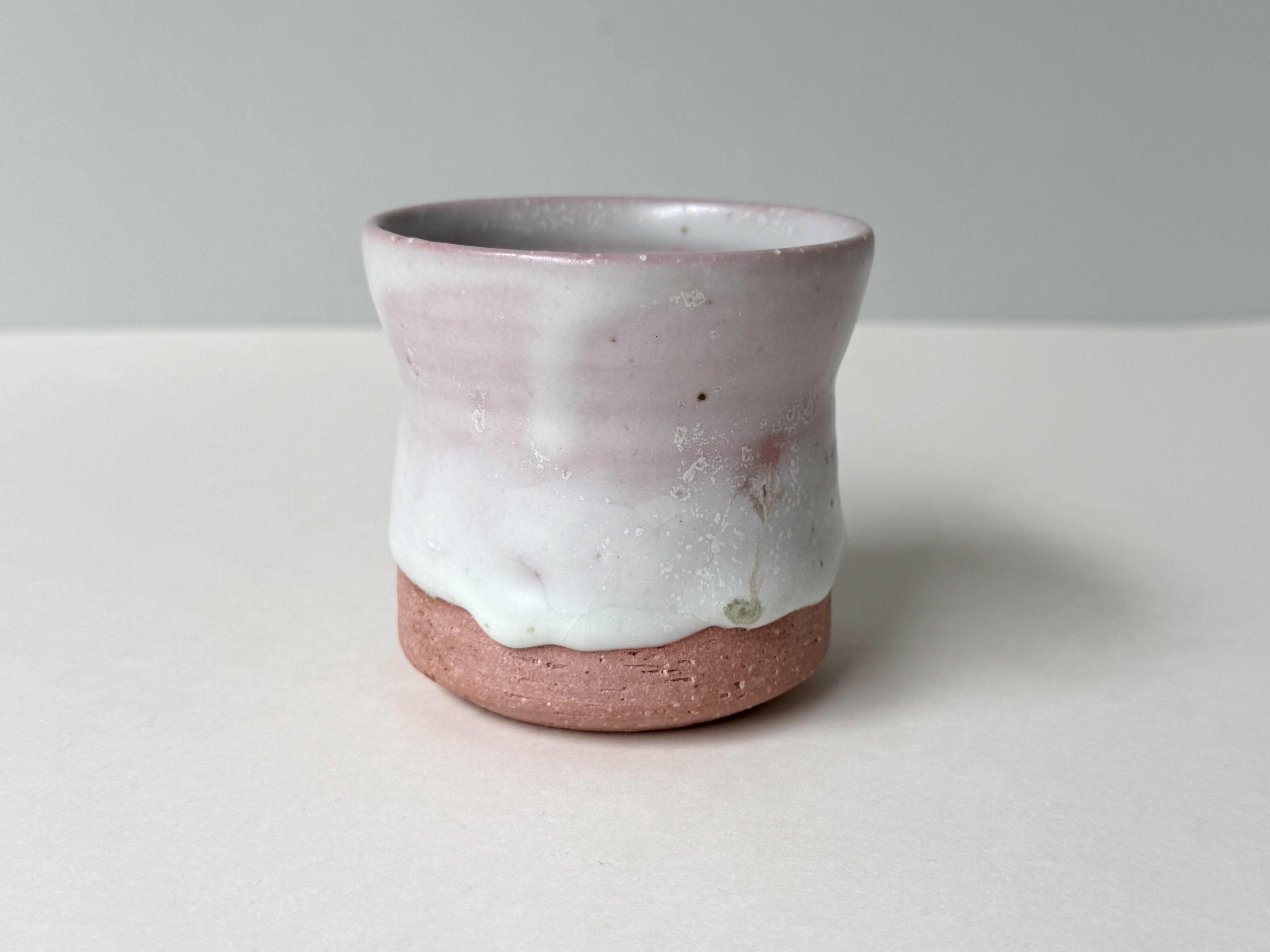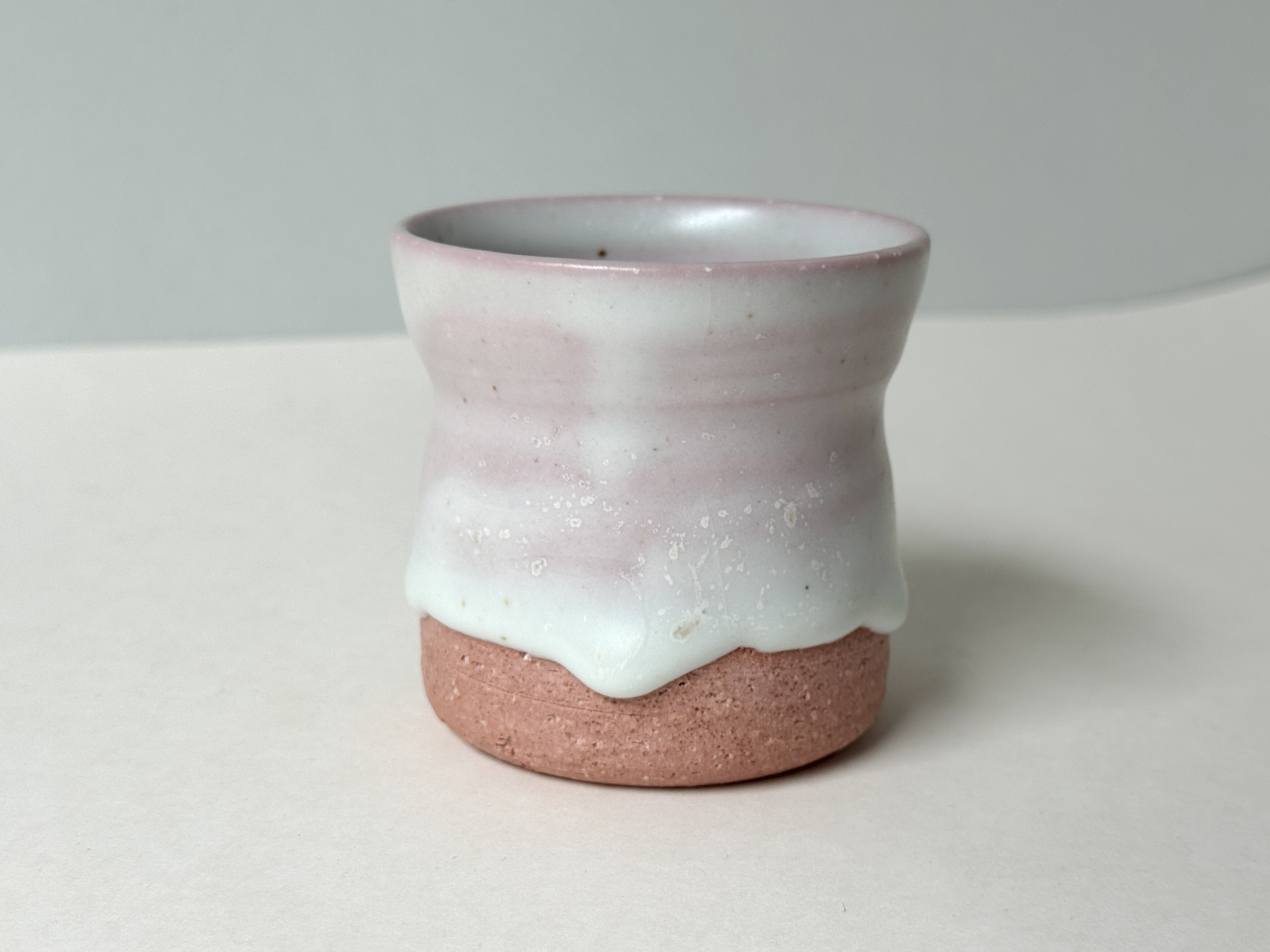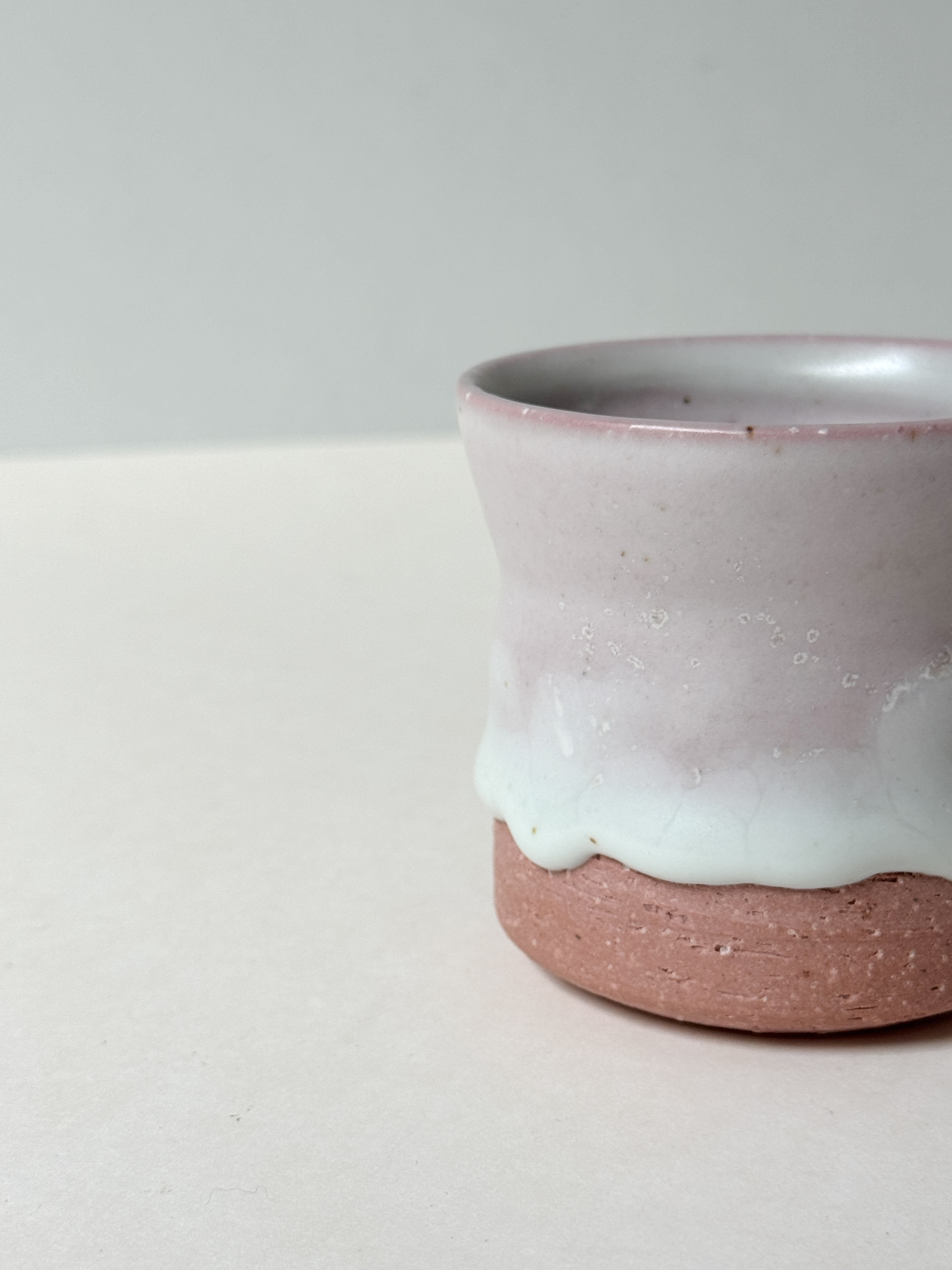 붉은빛의 흙과 유약이 만나 부드러운 분홍빛의 딸기라떼잔이 매력적입니다.