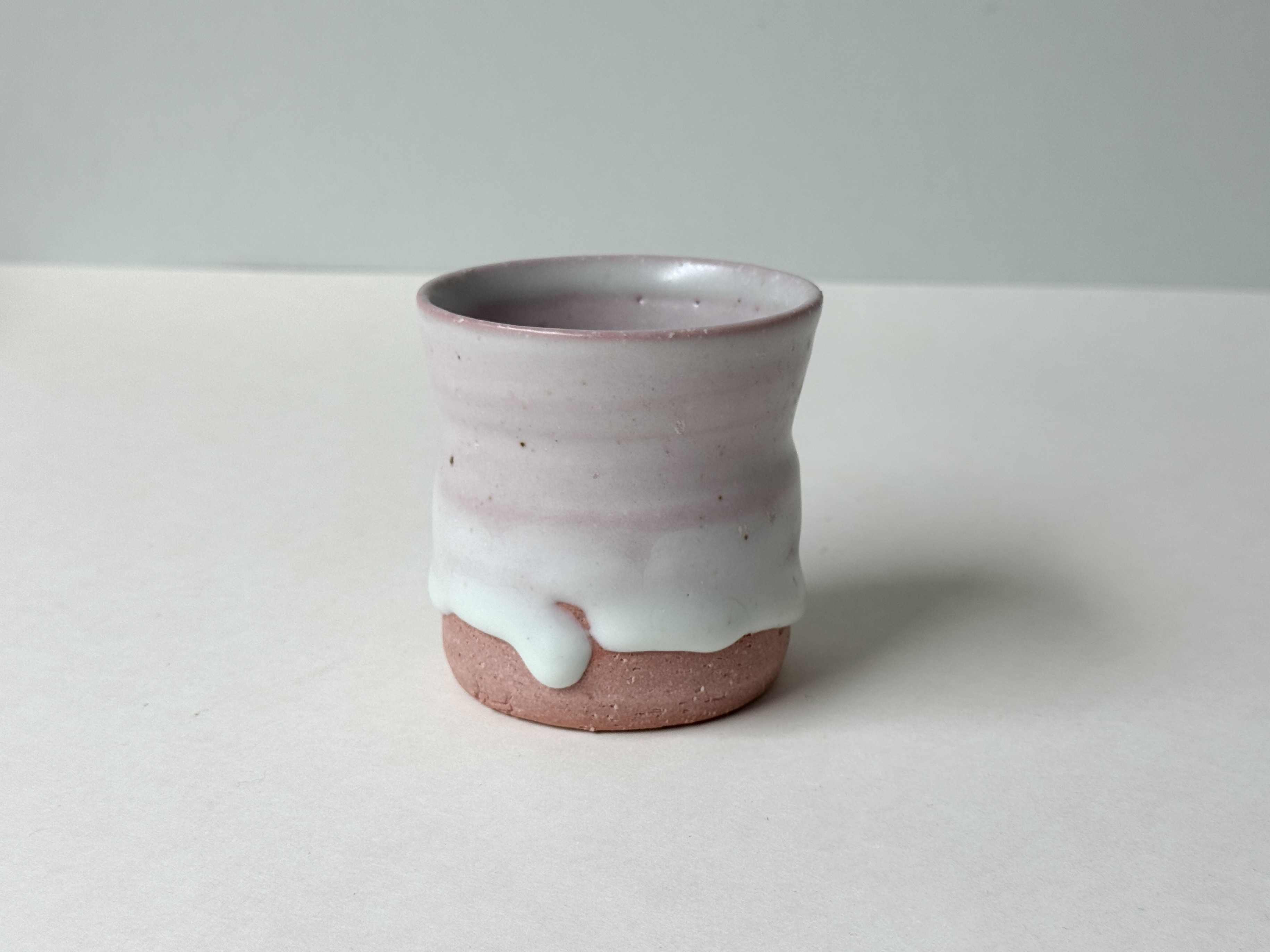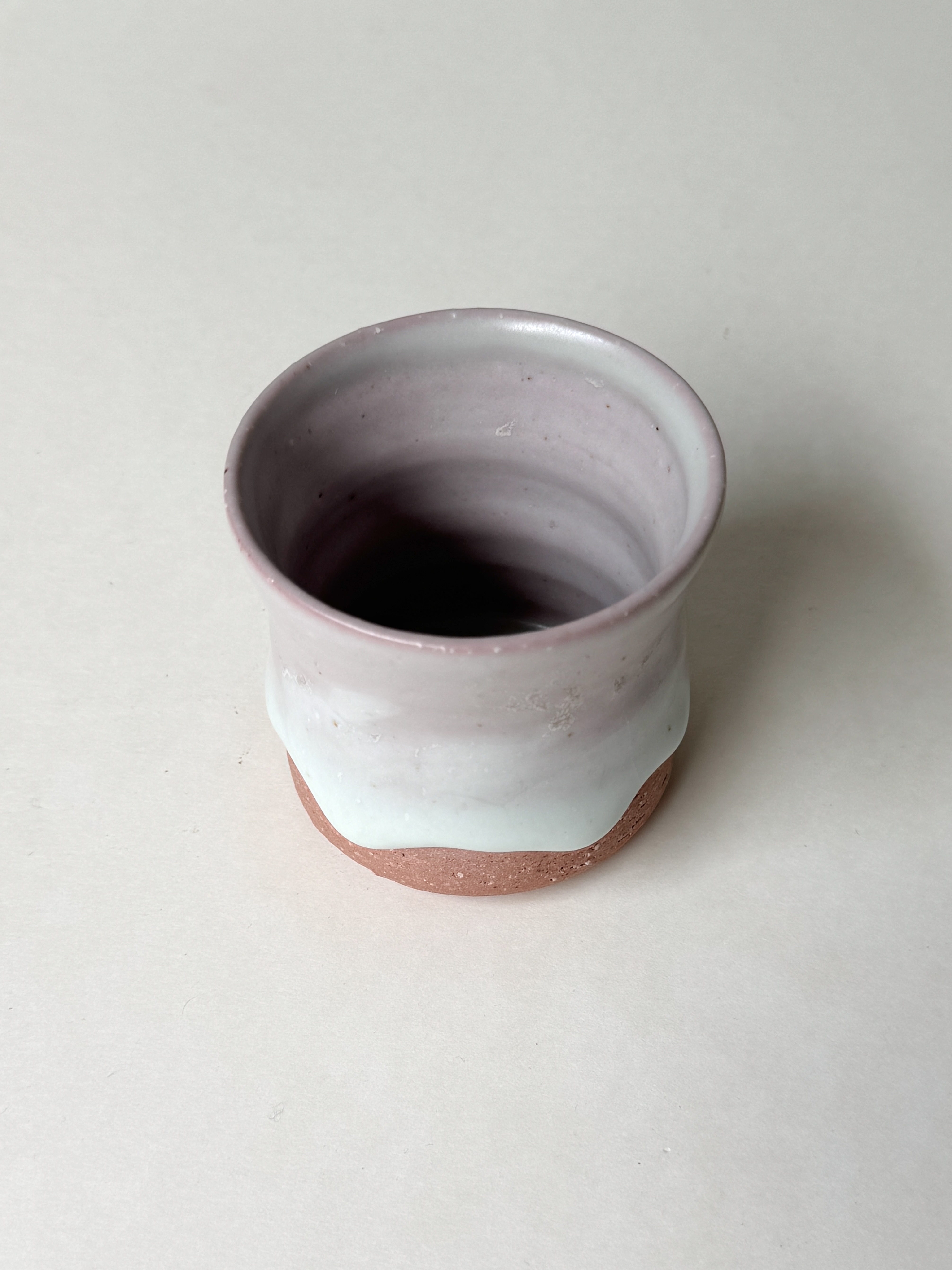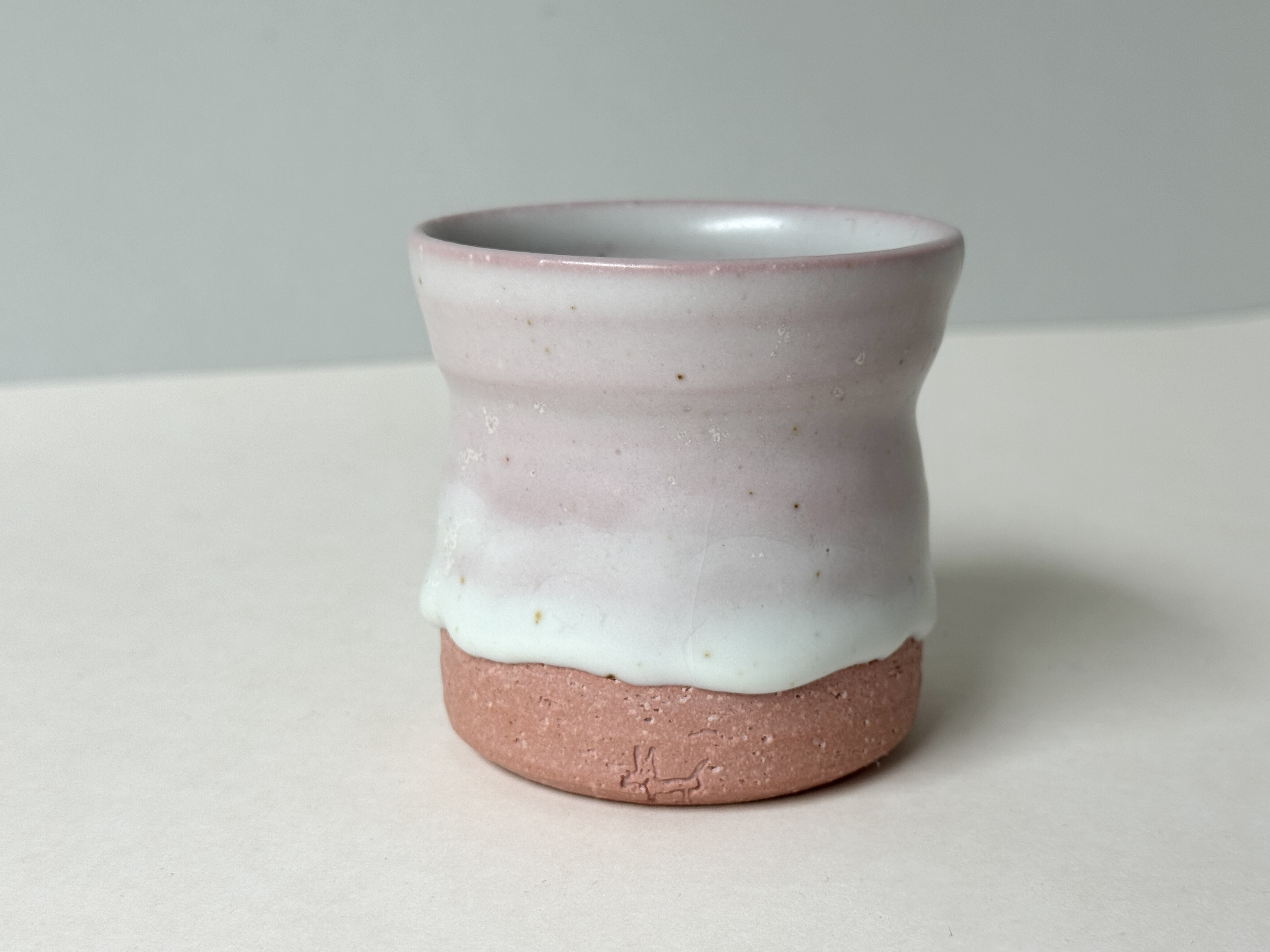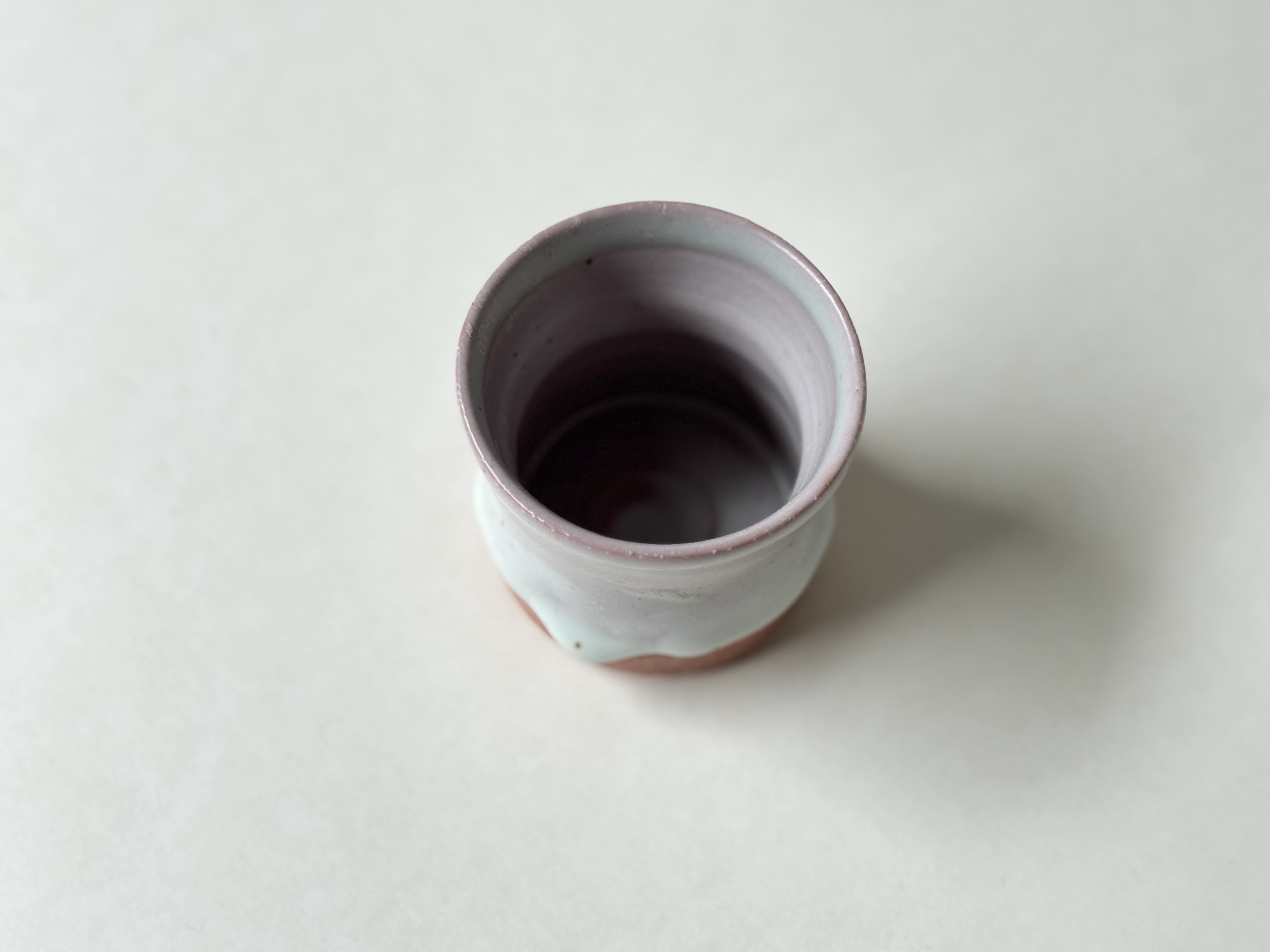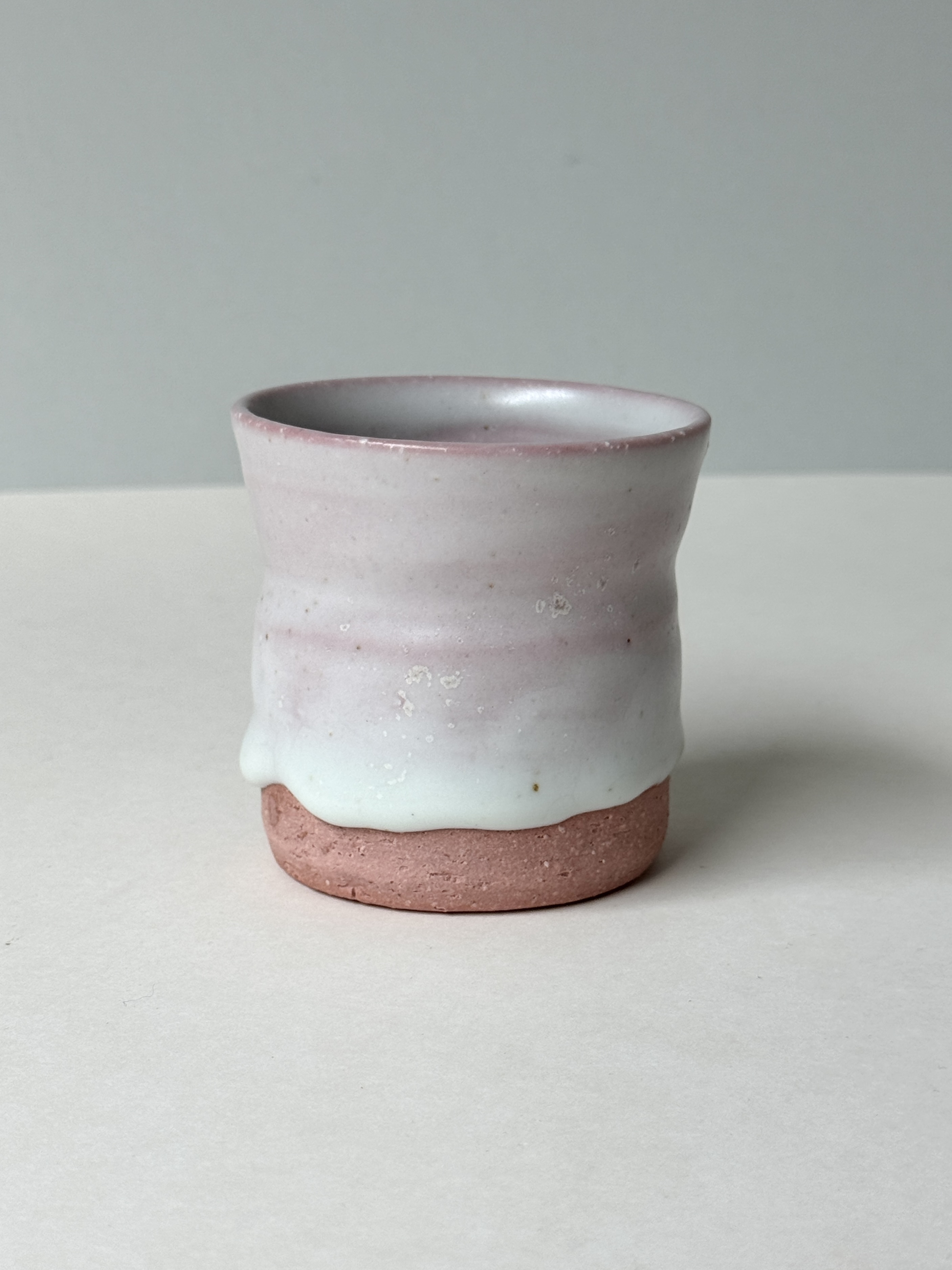 붉은빛의 흙과 유약이 만나 부드러운 분홍빛의 딸기라떼잔이 매력적입니다.