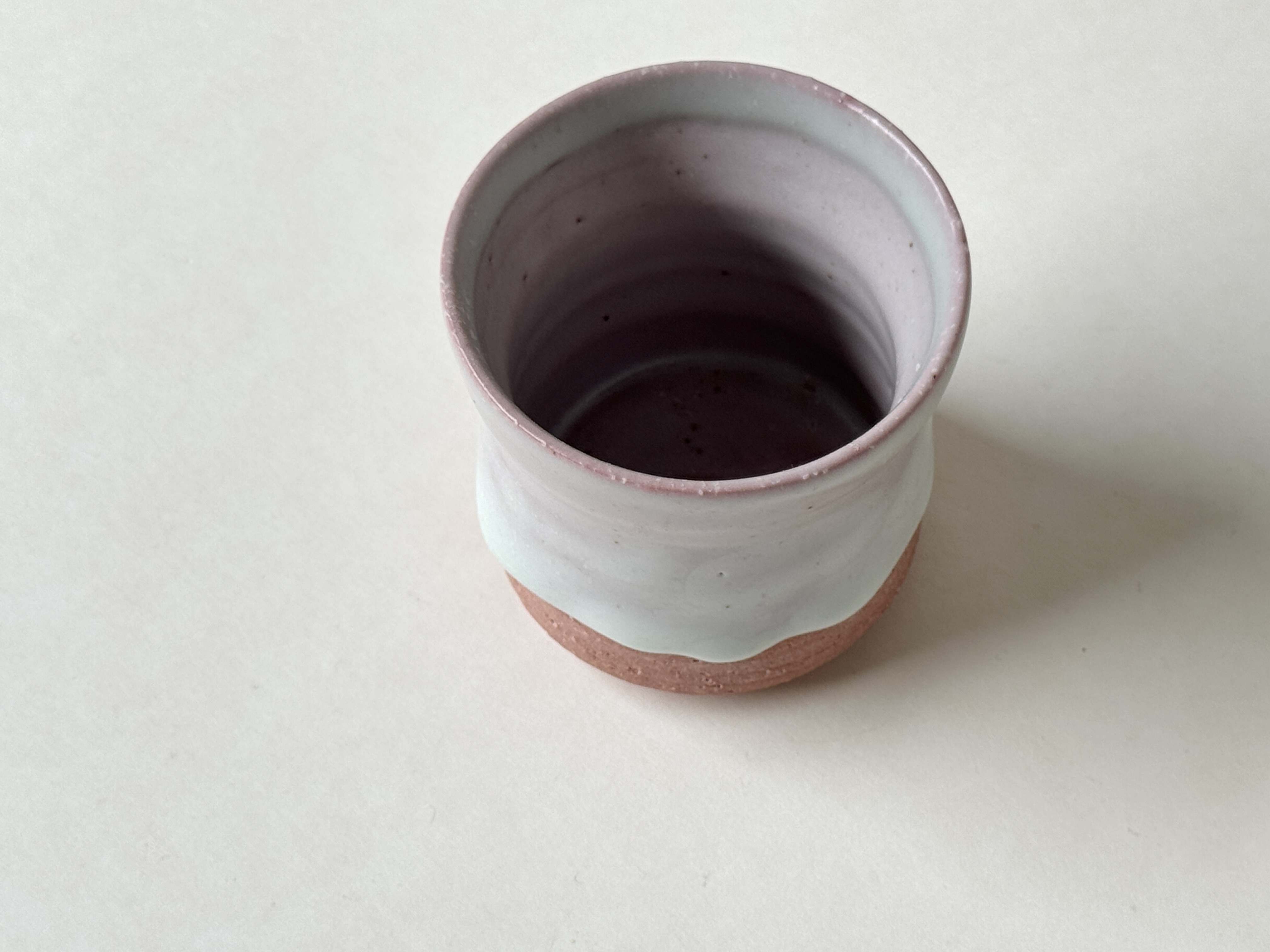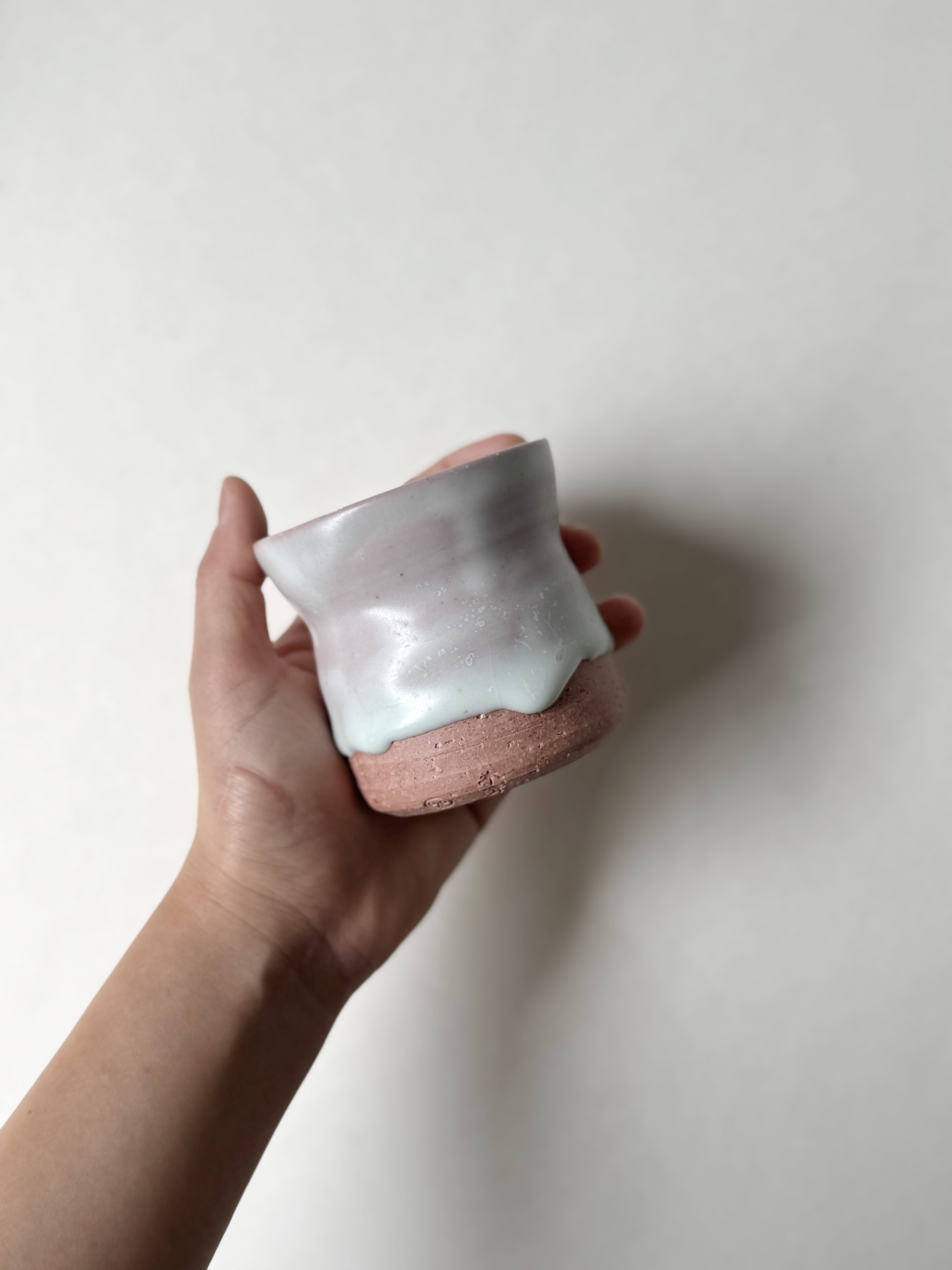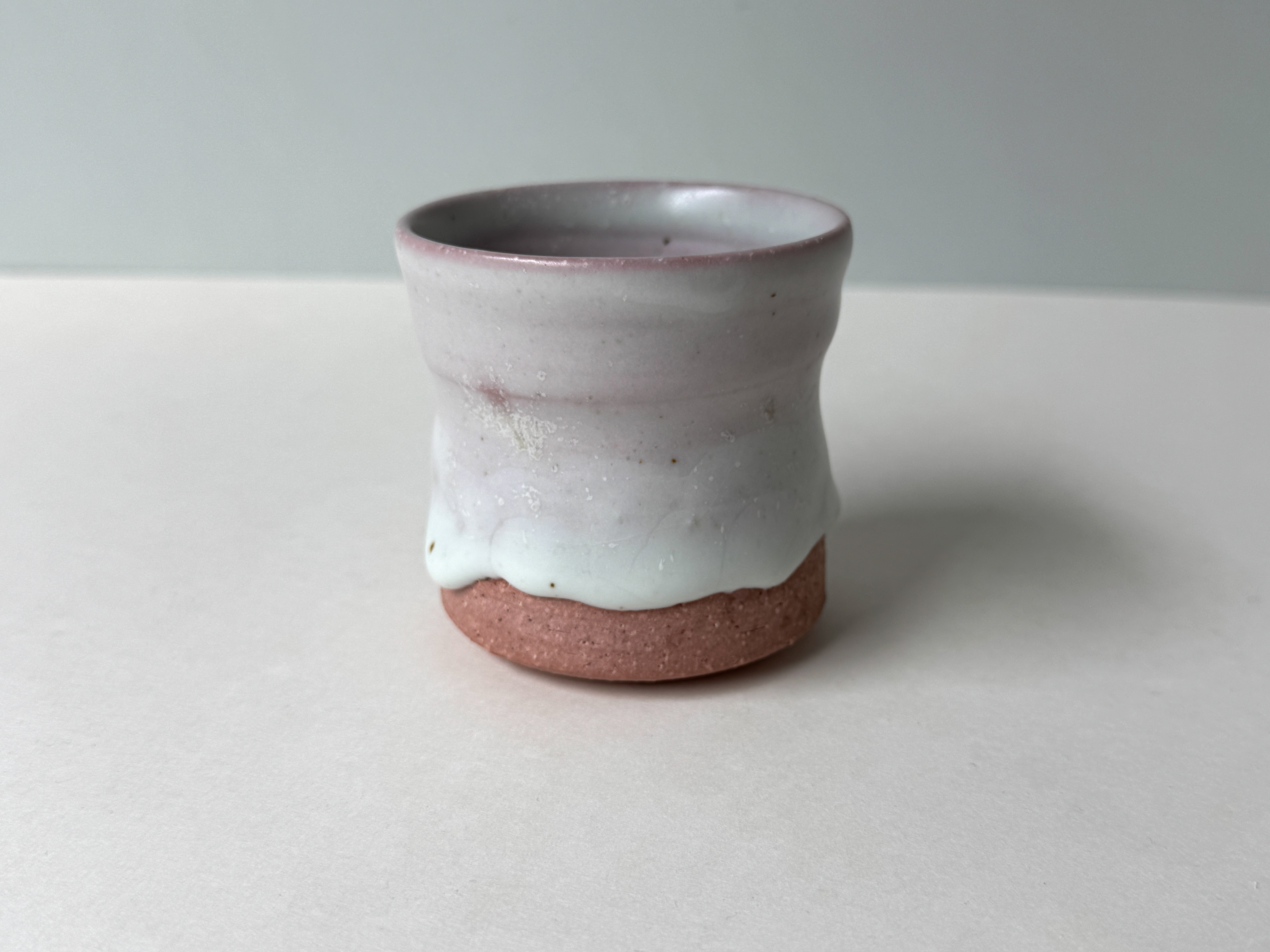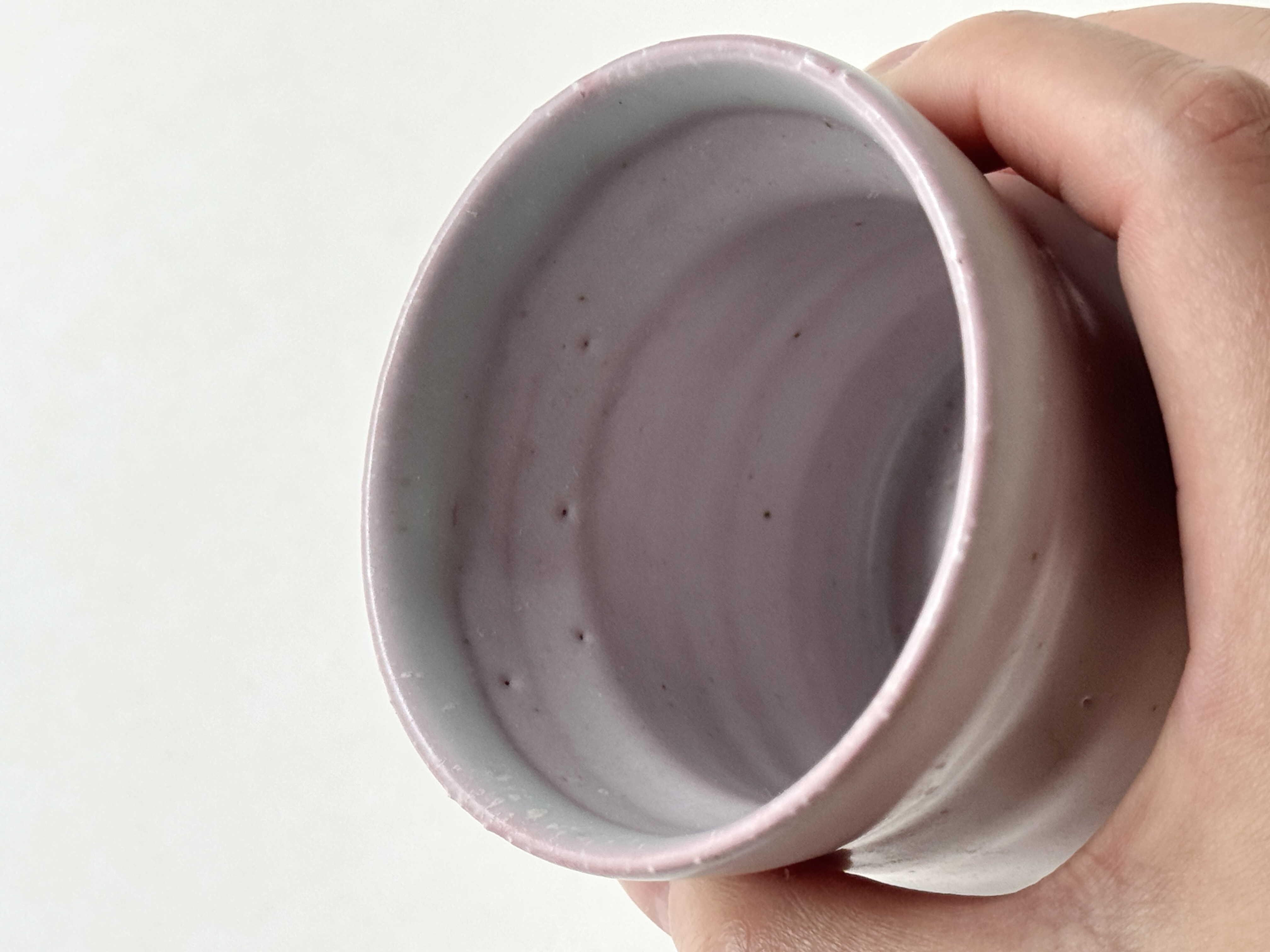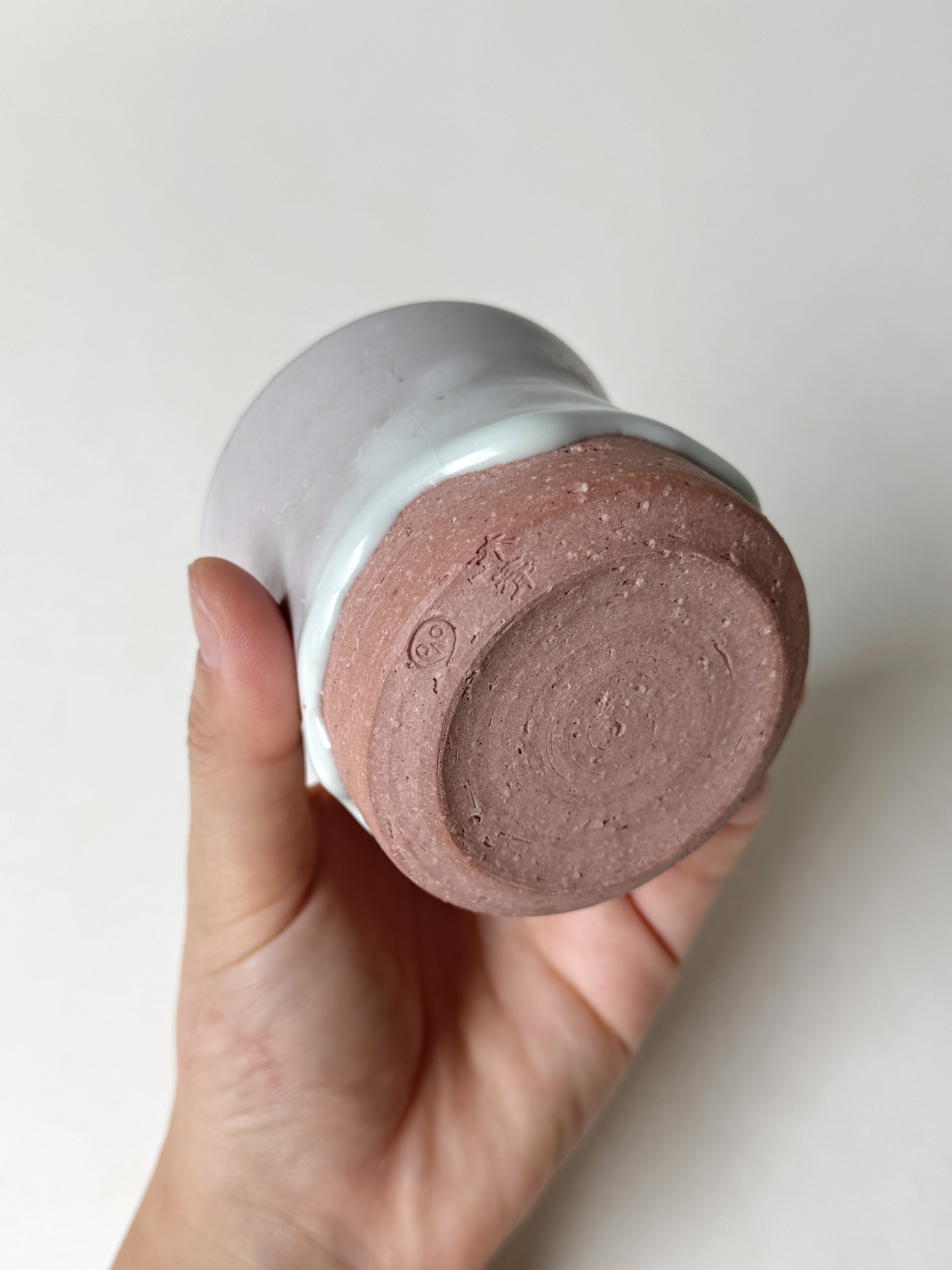 붉은빛의 흙과 유약이 만나 부드러운 분홍빛의 딸기라떼잔이 매력적입니다.