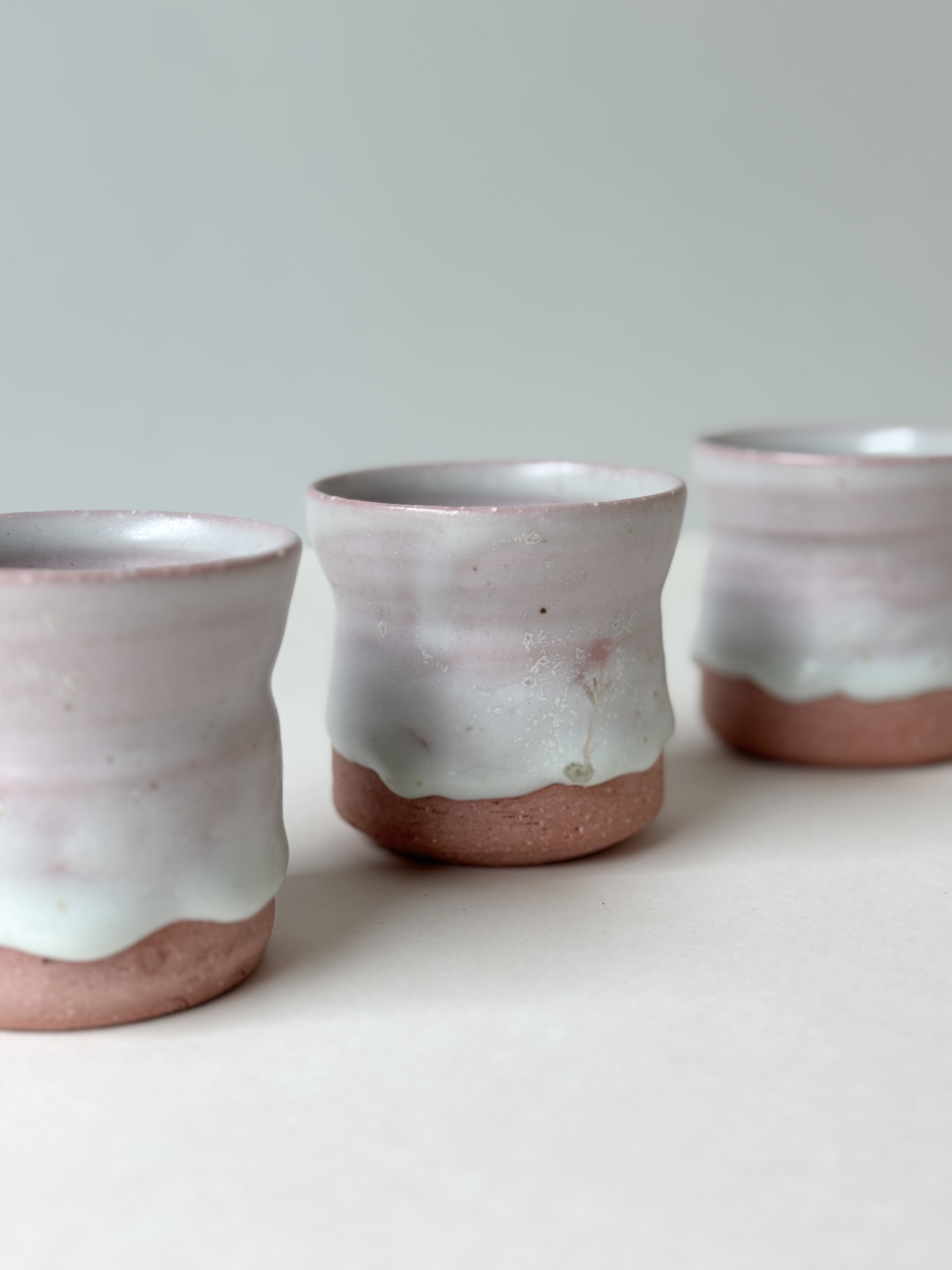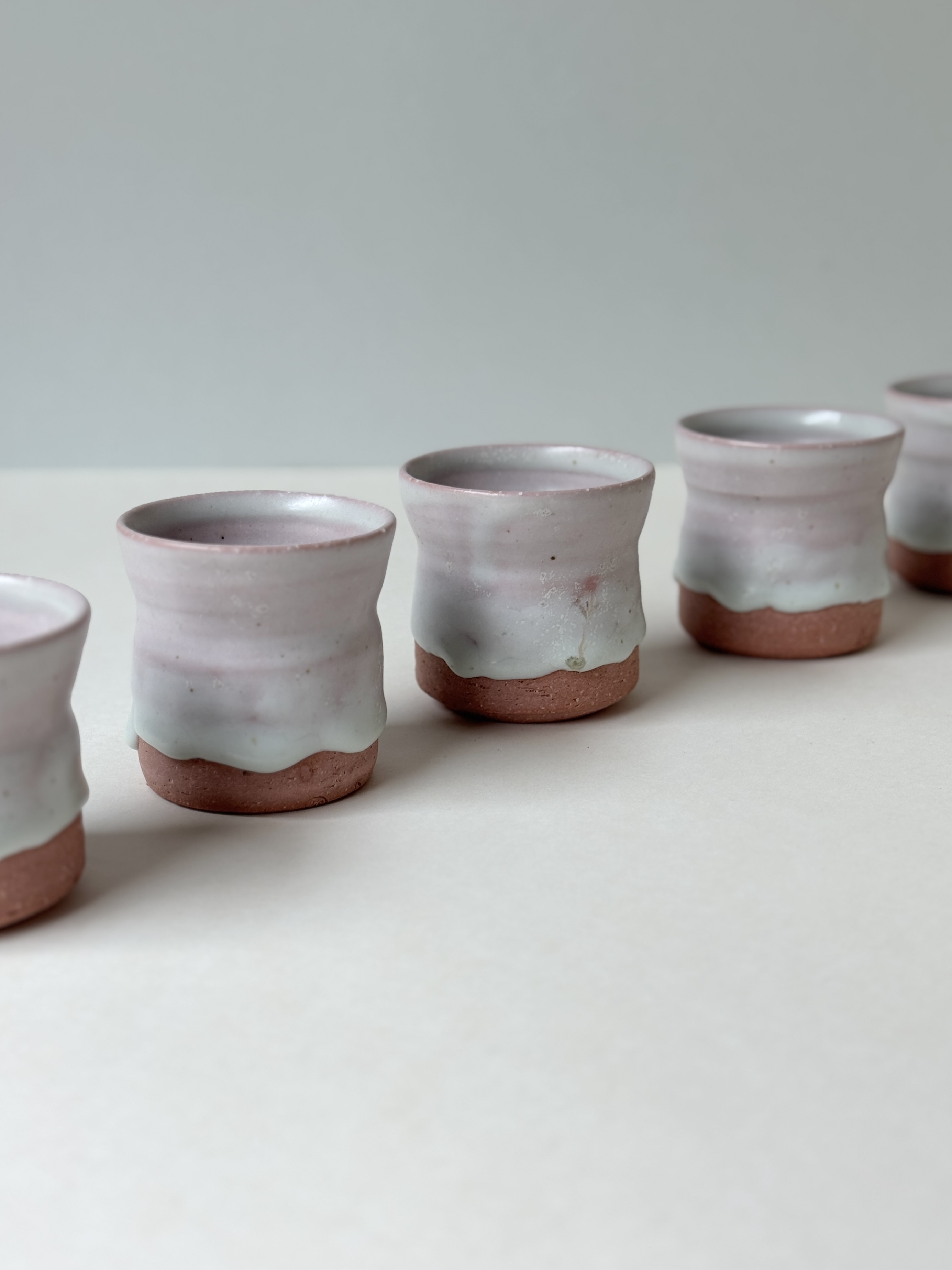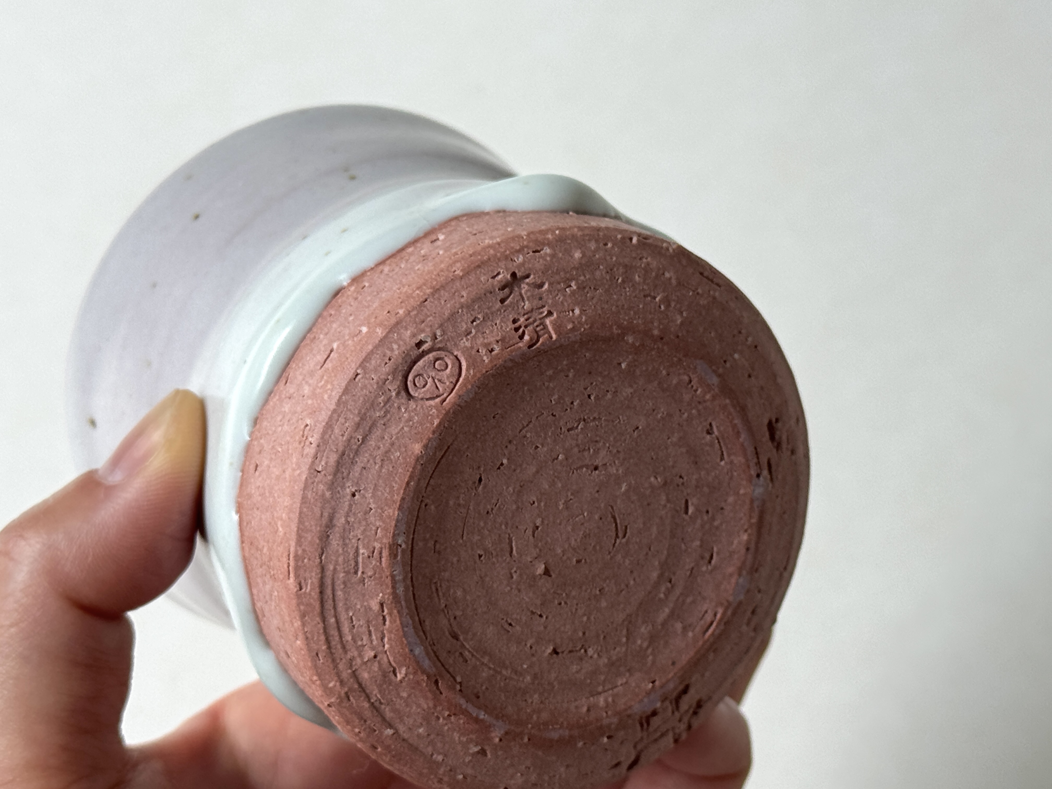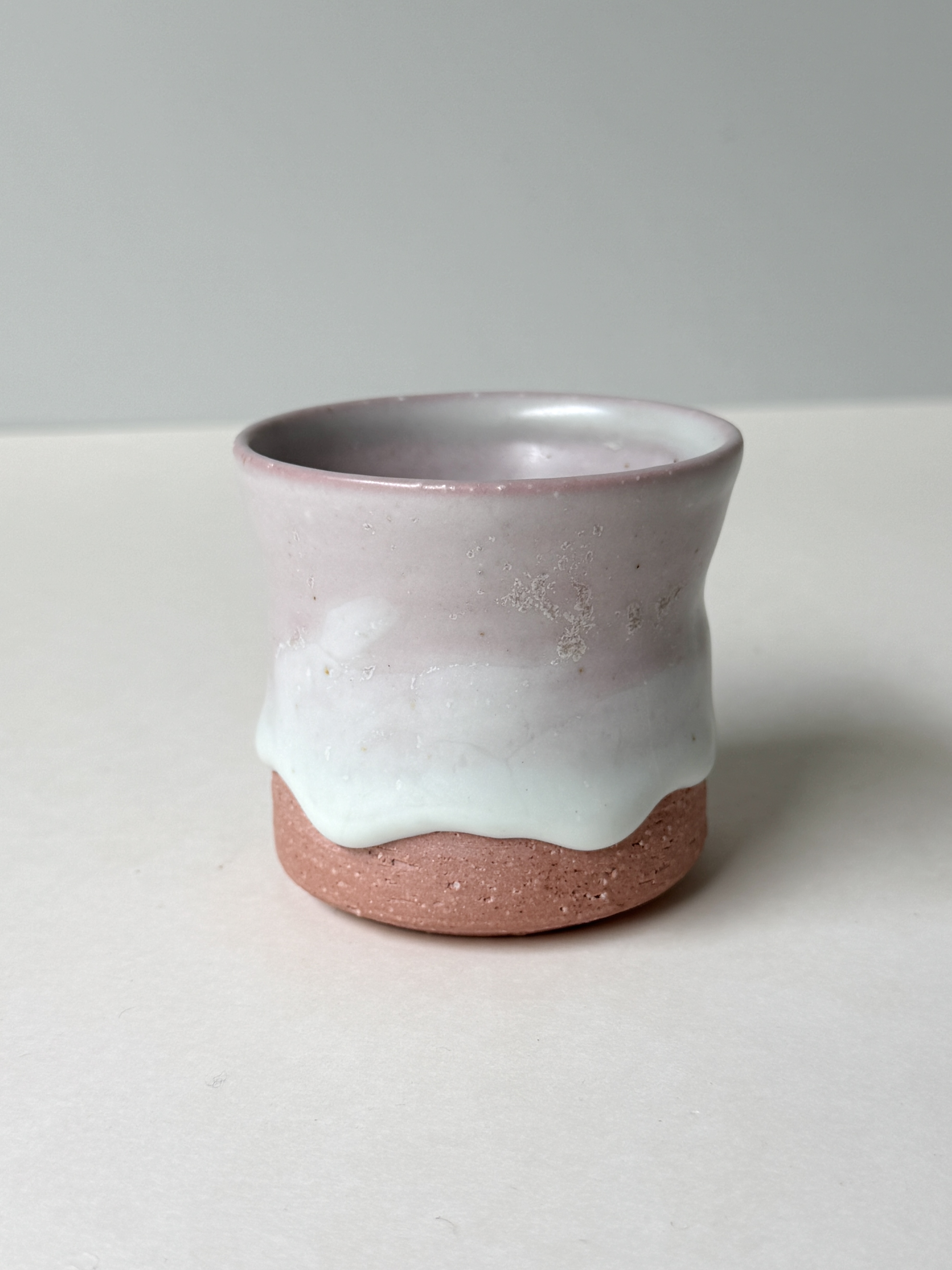 붉은빛의 흙과 유약이 만나 부드러운 분홍빛의 딸기라떼잔이 매력적입니다.