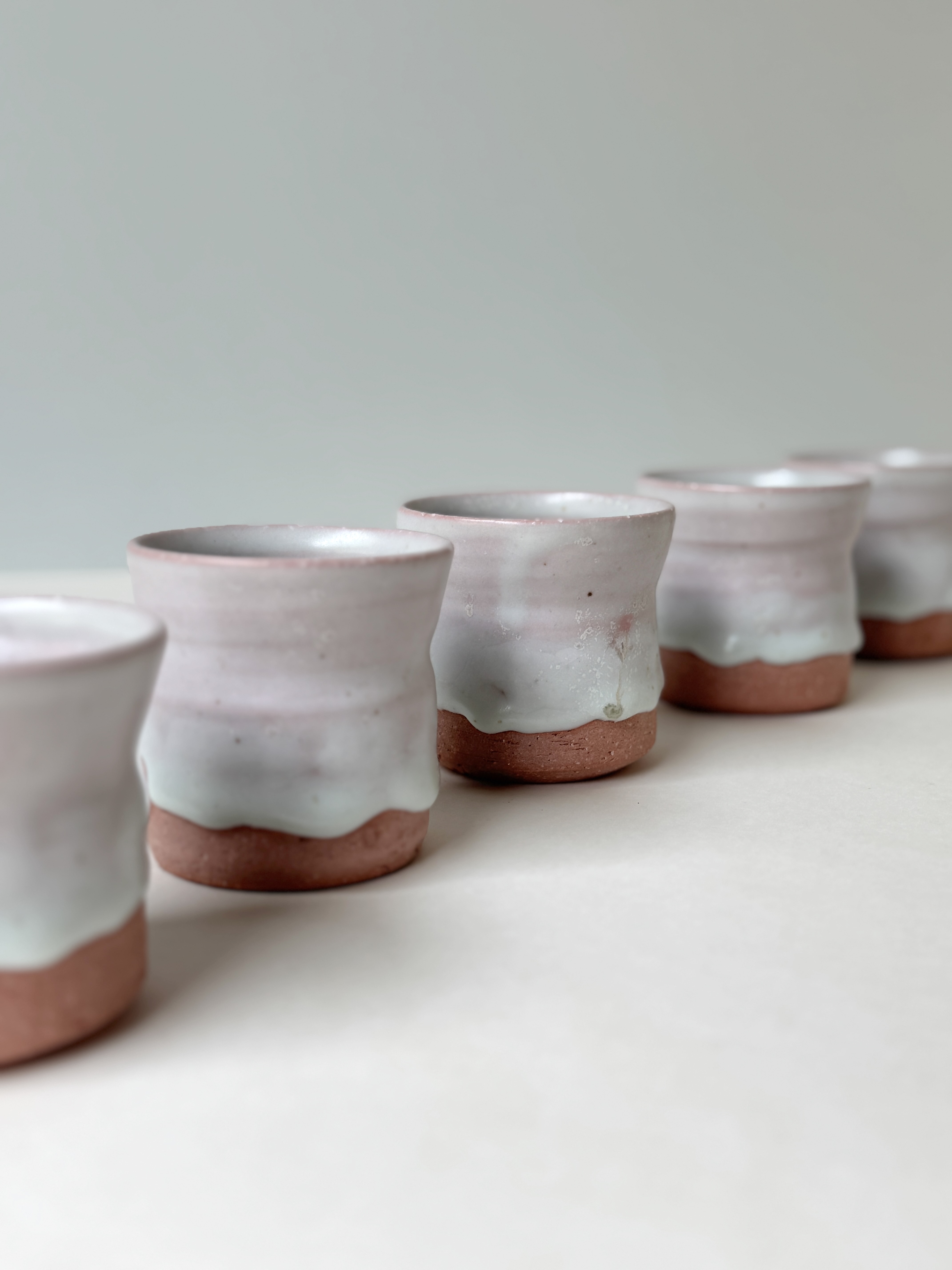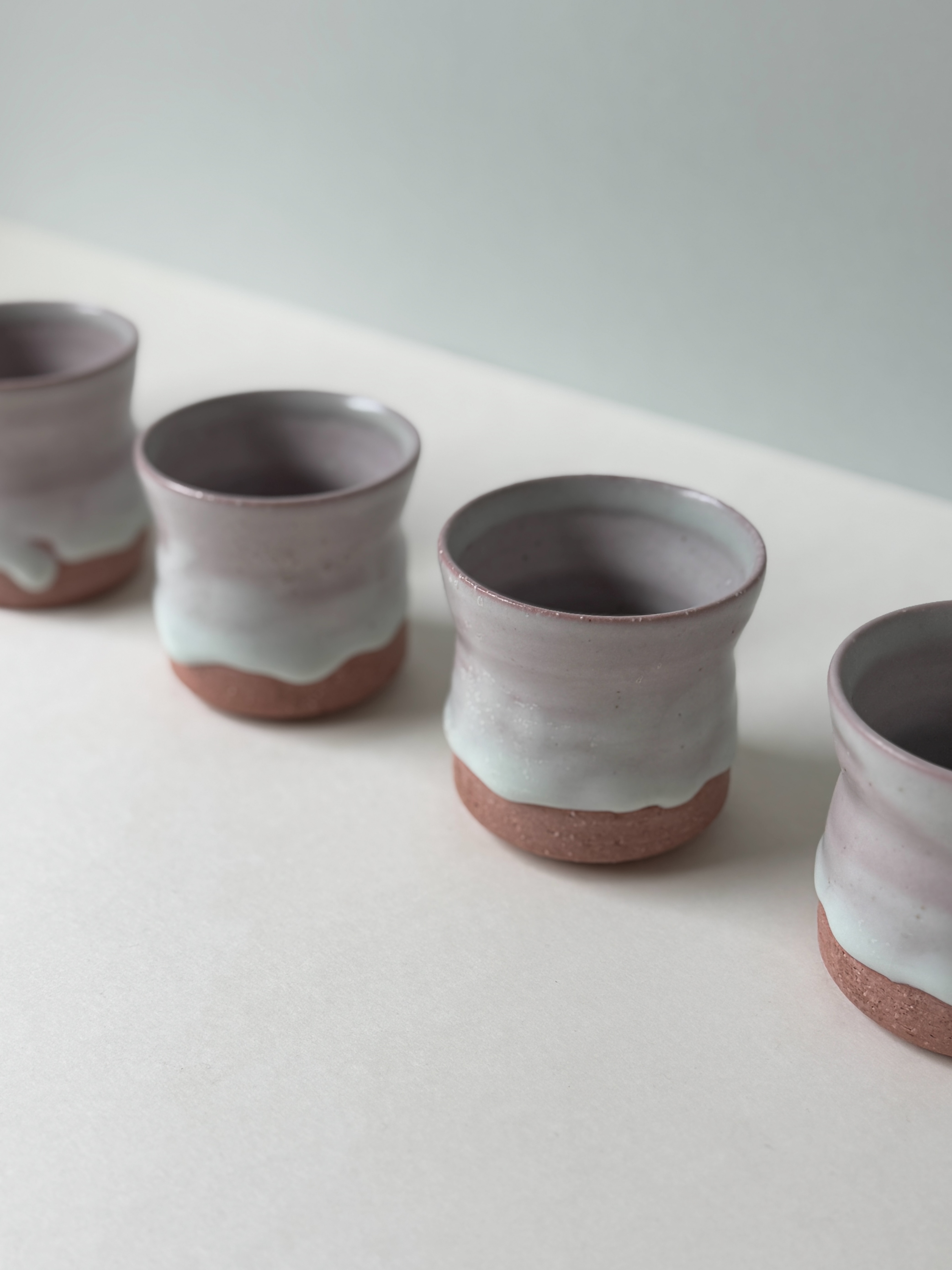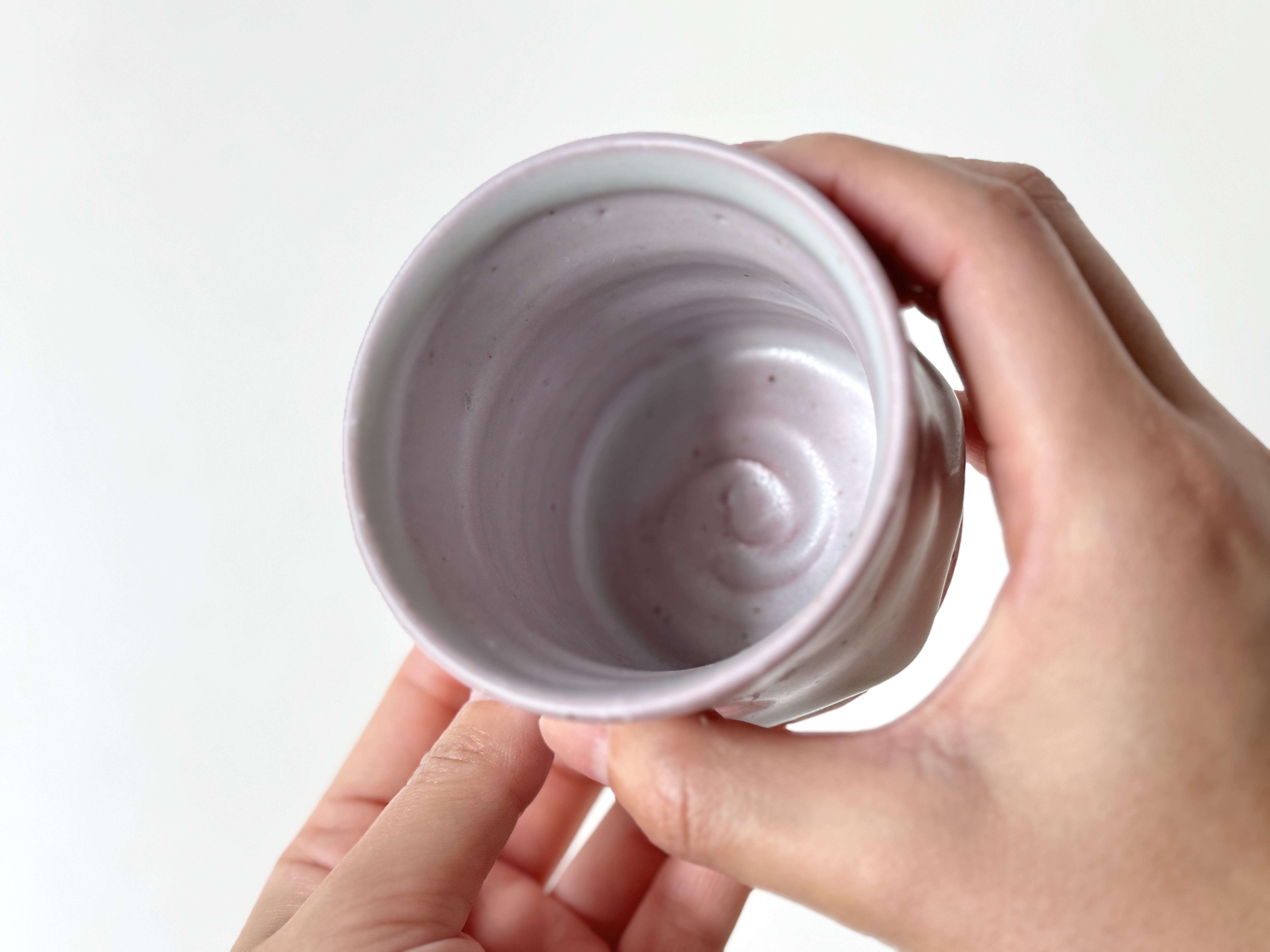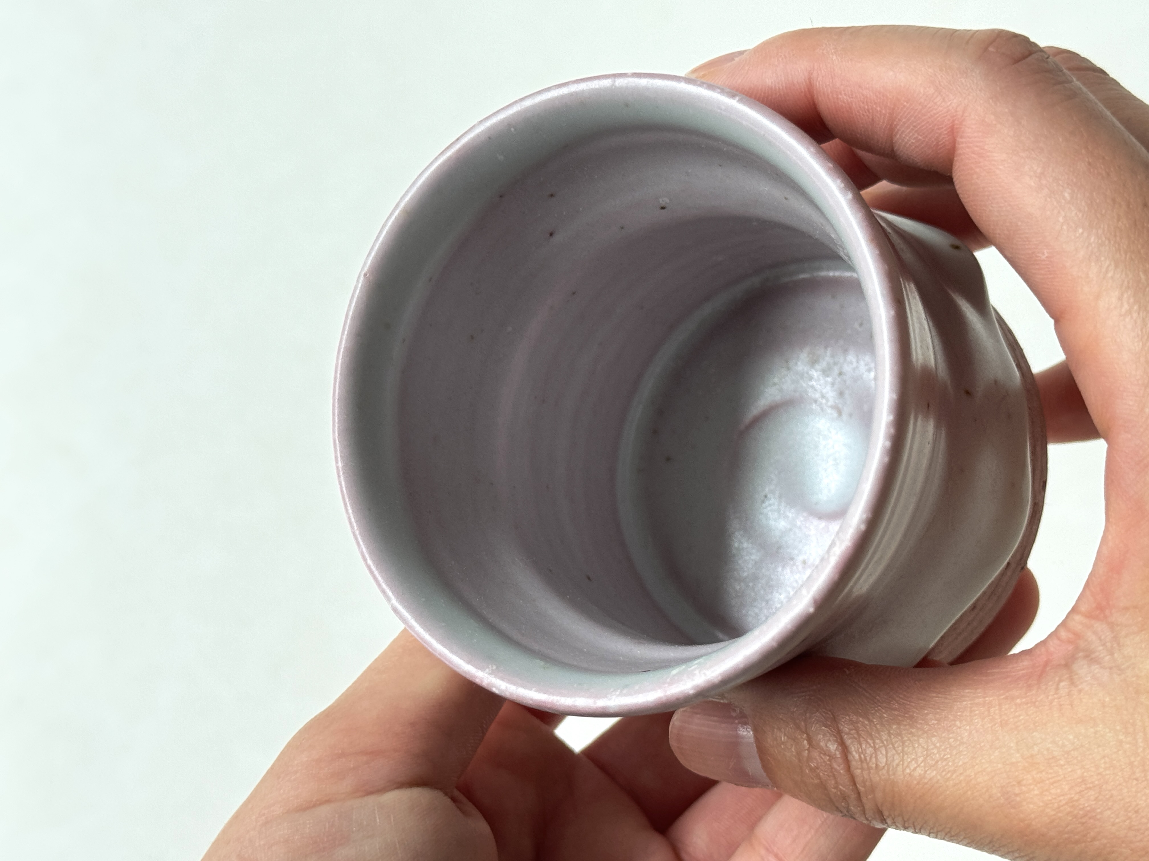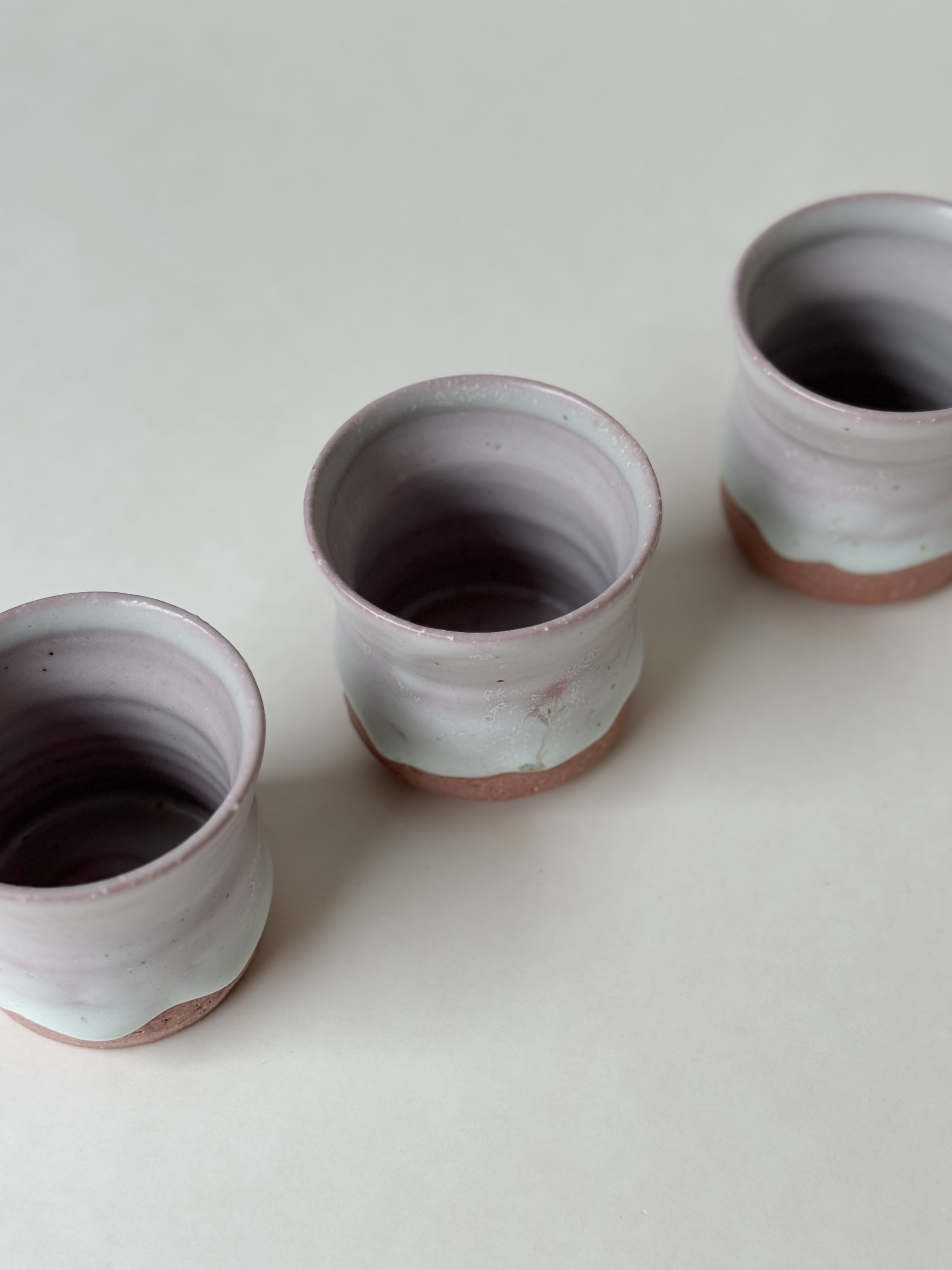 붉은빛의 흙과 유약이 만나 부드러운 분홍빛의 딸기라떼잔이 매력적입니다.