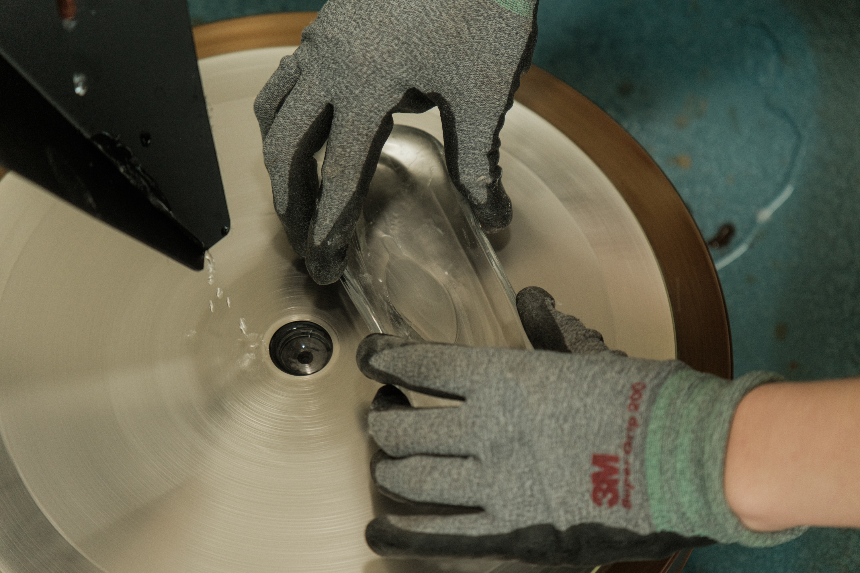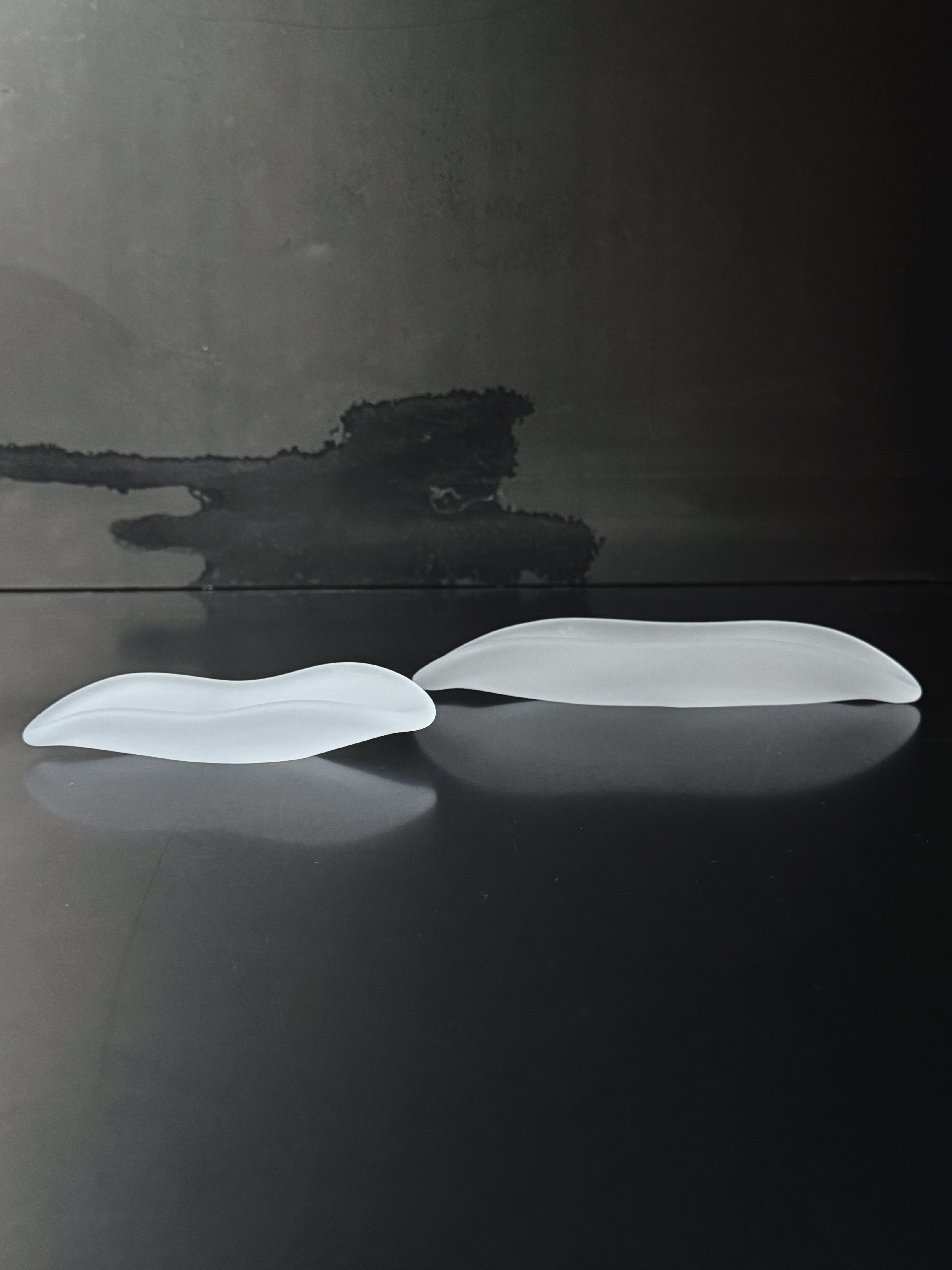 유리 블로잉 기법으로 제작된 물터의 실버팁 다하는 열과 원심력을 이용해 유리를 성형하여 제작됩니다. 투명한 유리에 반무광처리를 하여 부드러운 촉감과 손에 잡히는 그립감이 안정적으로 만들어졌습니다.