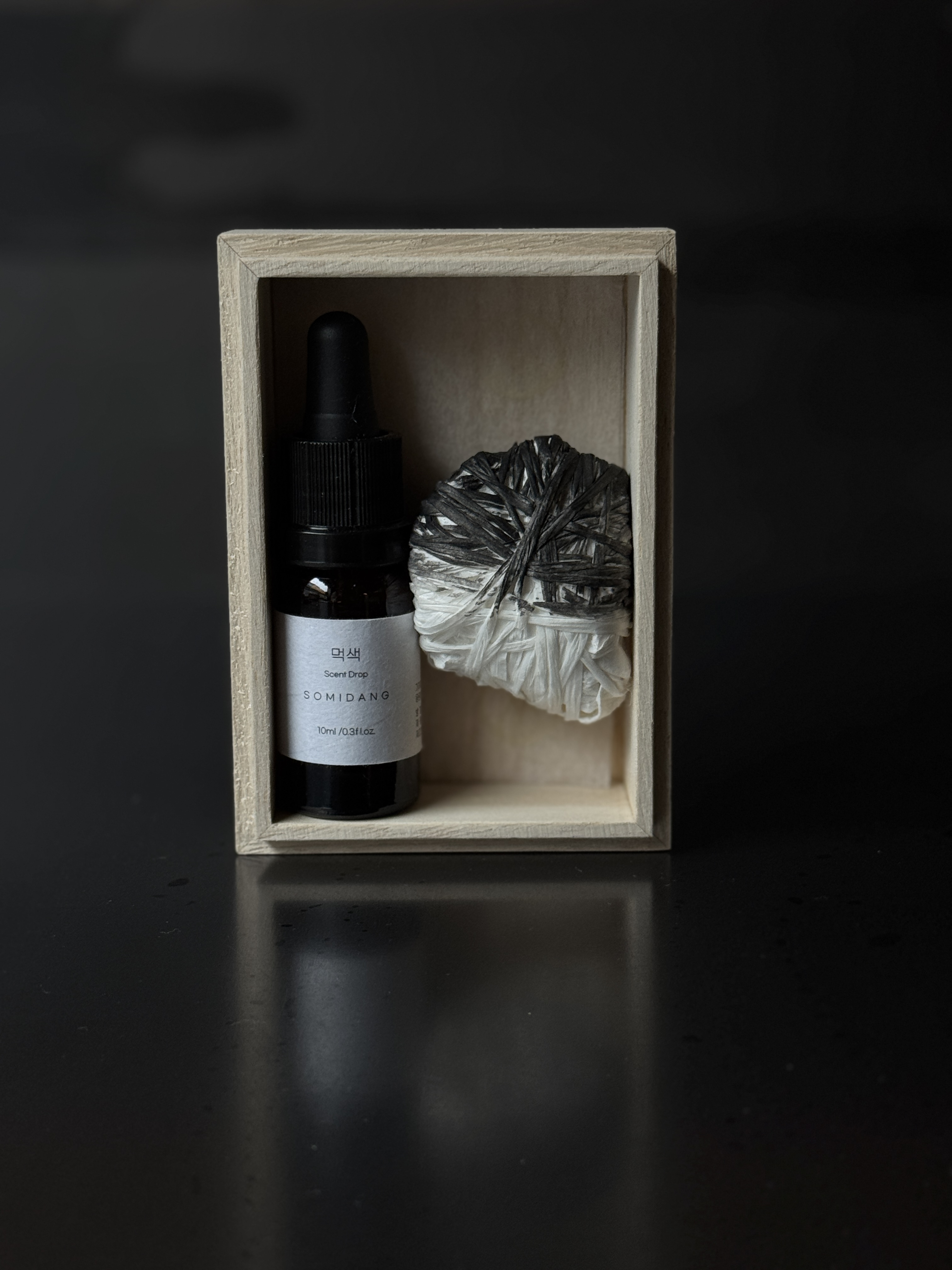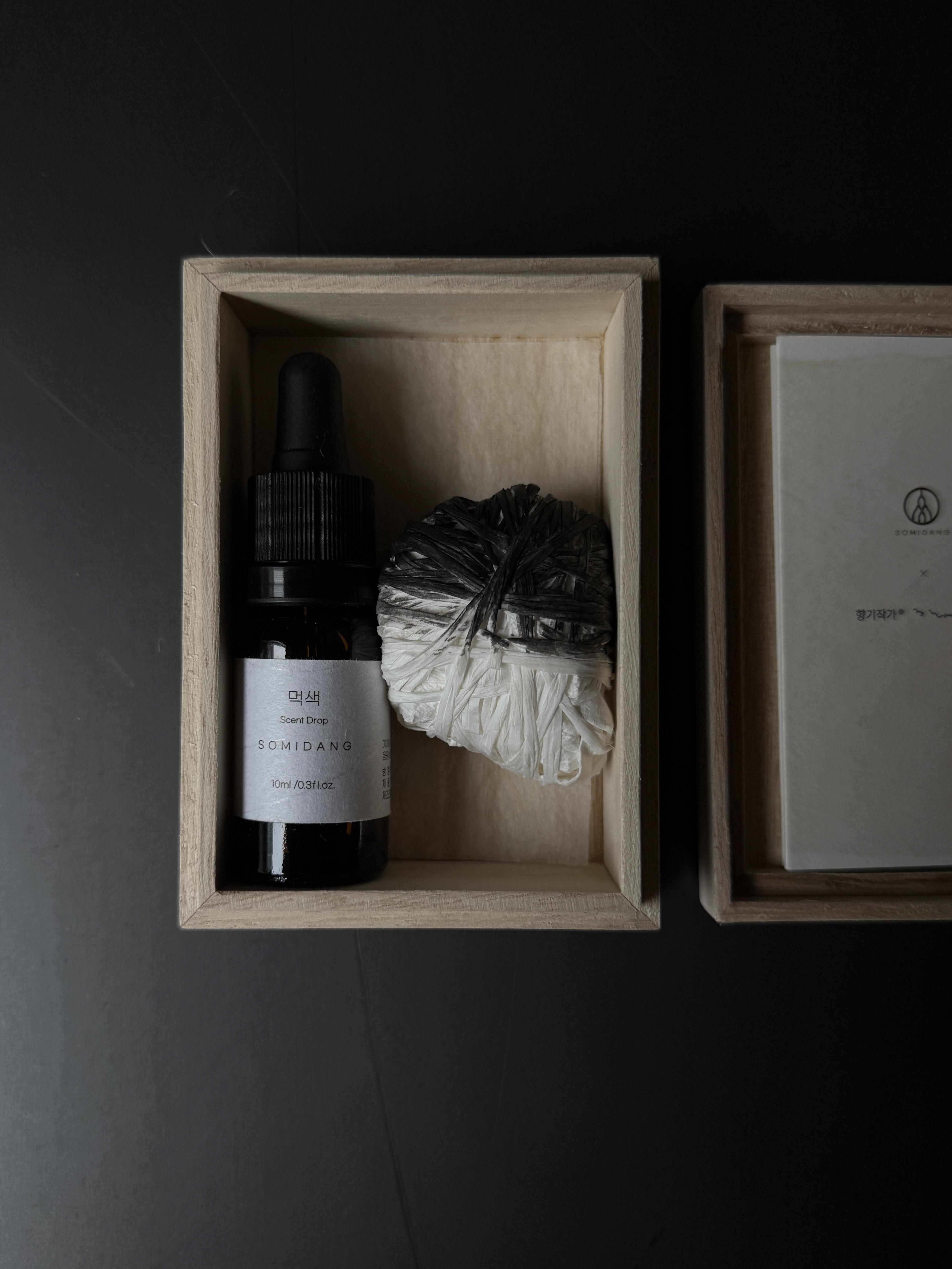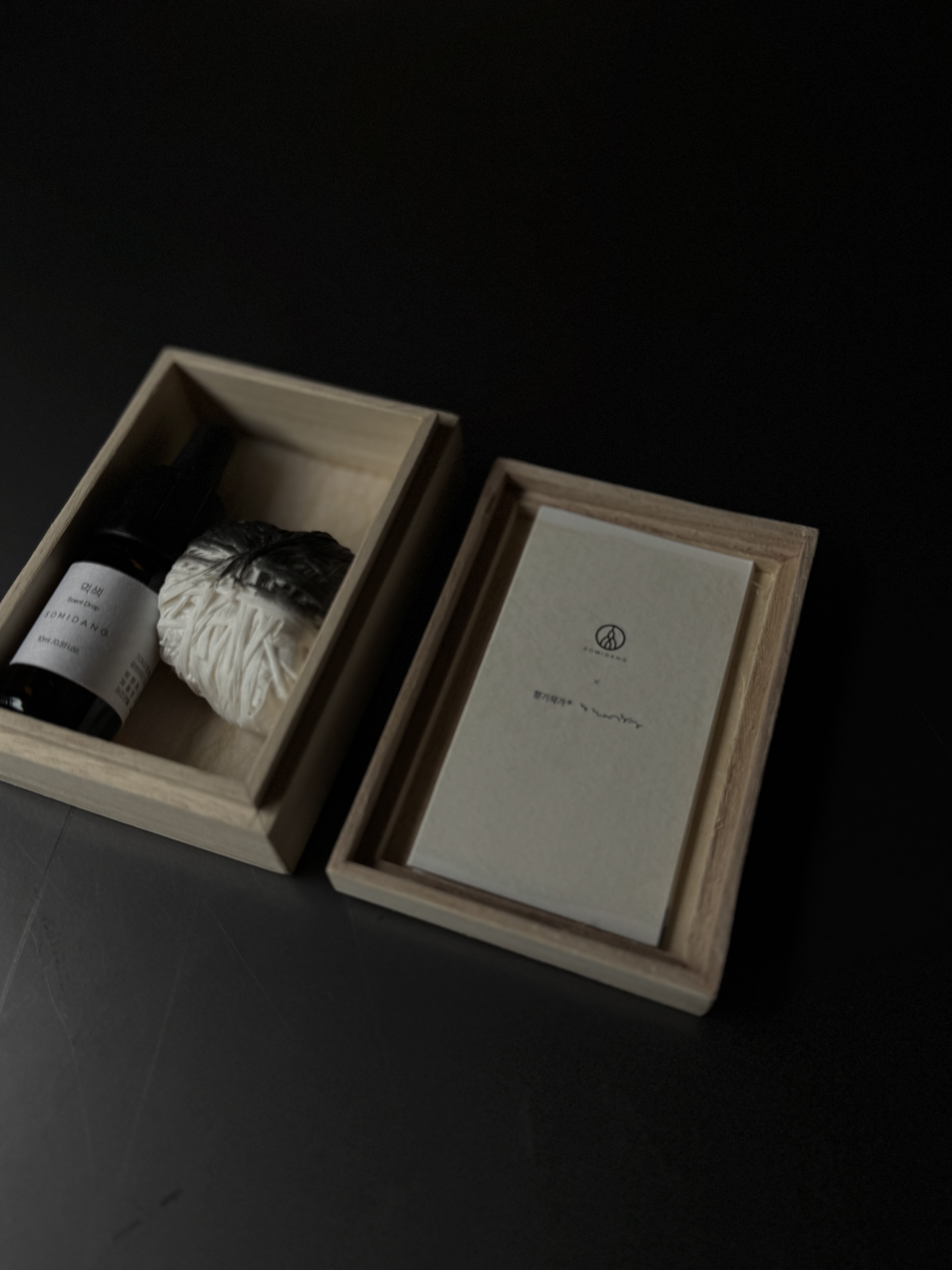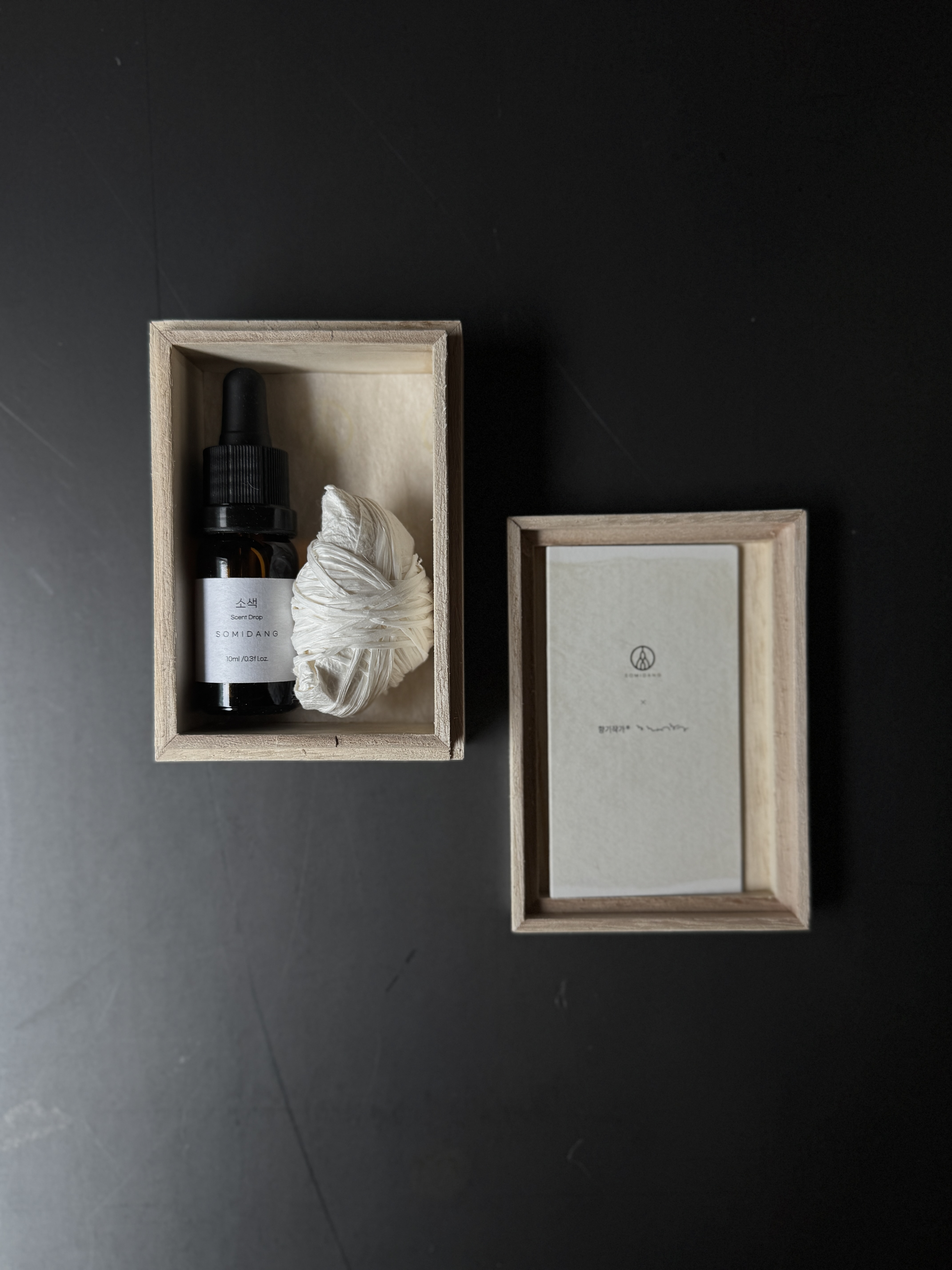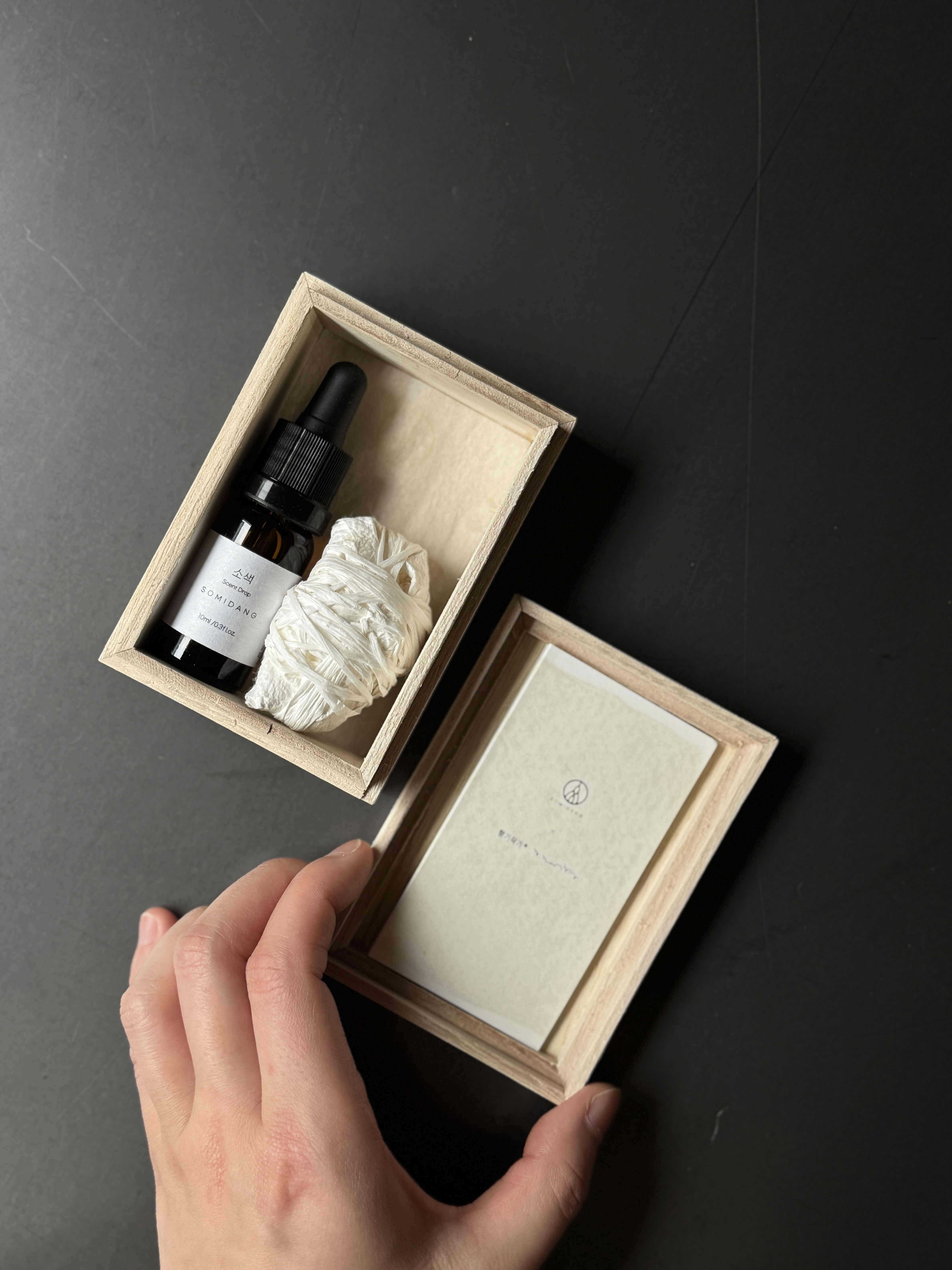 함을 열어 원하시는 발향 정도에 맞춰 센트 오일을 한지볼 위에 떨어뜨려 줍니다.