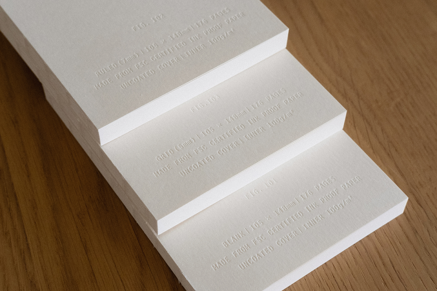 피그노트는 101:무선, 102:유선(7mm), 103:그리드(5mm)의 내지구성이 있습니다. 고전적이고 순수한 종이는 따뜻한 색감과 포슬한 촉감으로 필기구 탐험가와 집념의 기록자들에게 잘 어울립니다. A6사이즈(105x148mm)로 사용할수록 손이 가는 노트입니다.