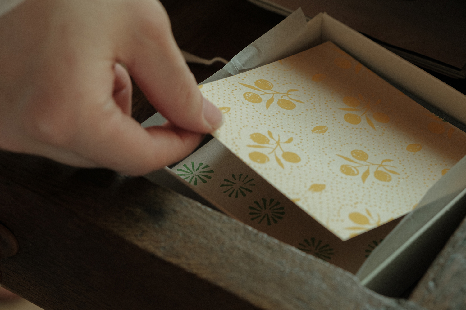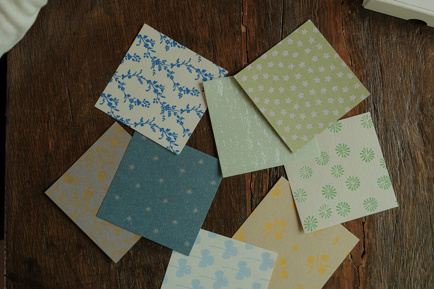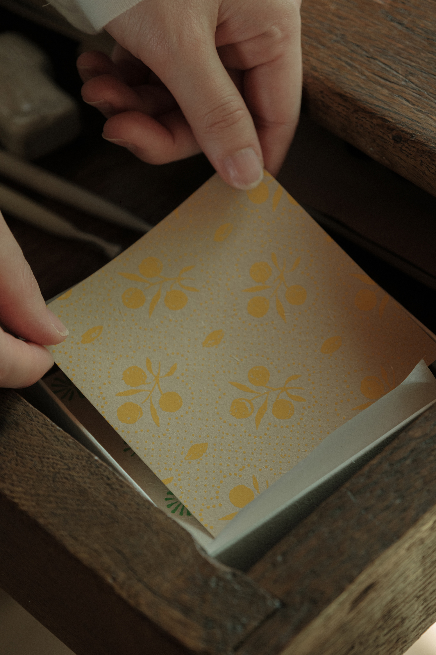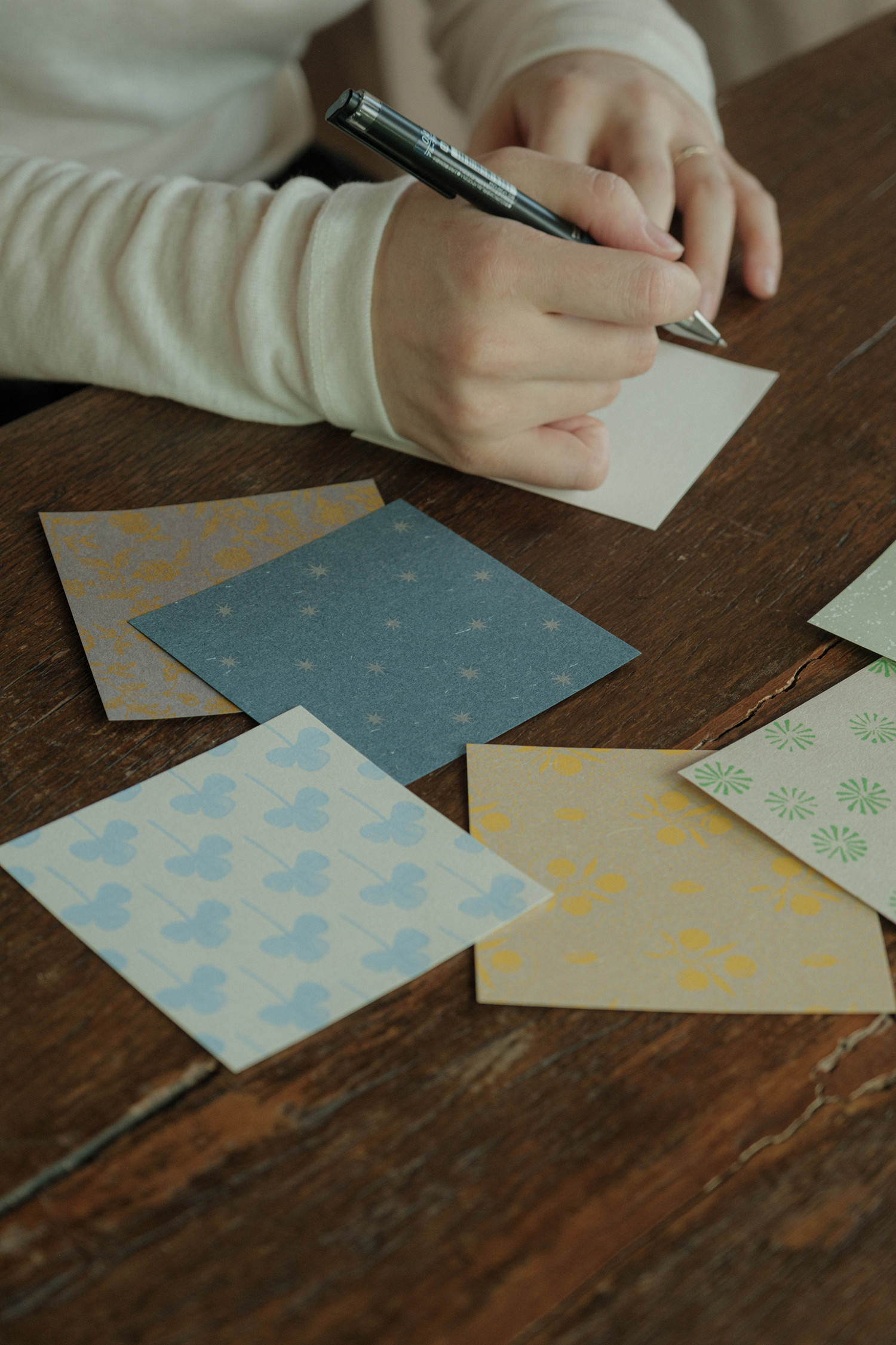 실크스크린 판화 방식으로 새겨진 종이는 한 장 한 장 특별함을 전합니다. 곁에 두고, 필요할때 마다 기록하거나 원하는 모양으로 접어보세요.