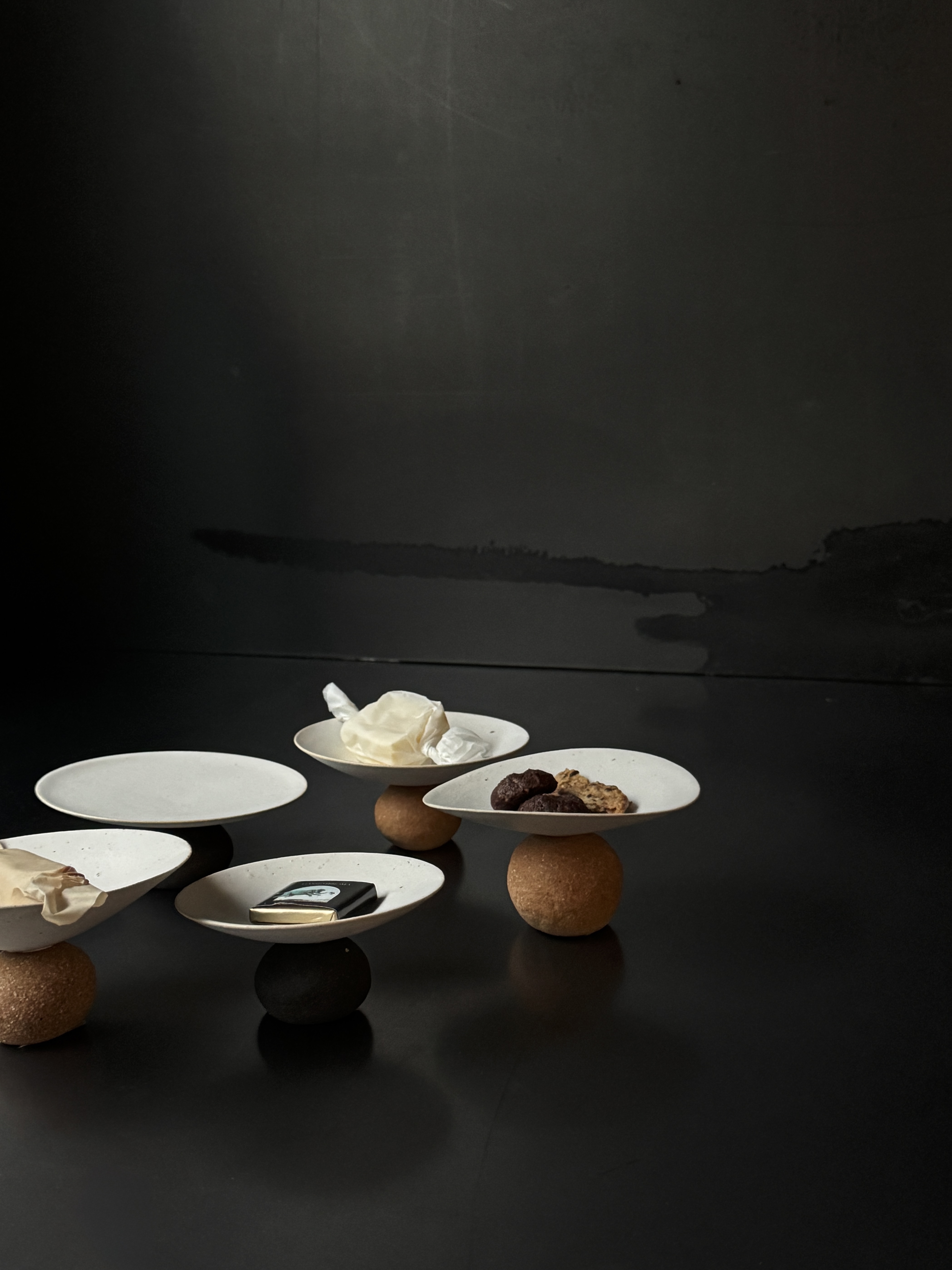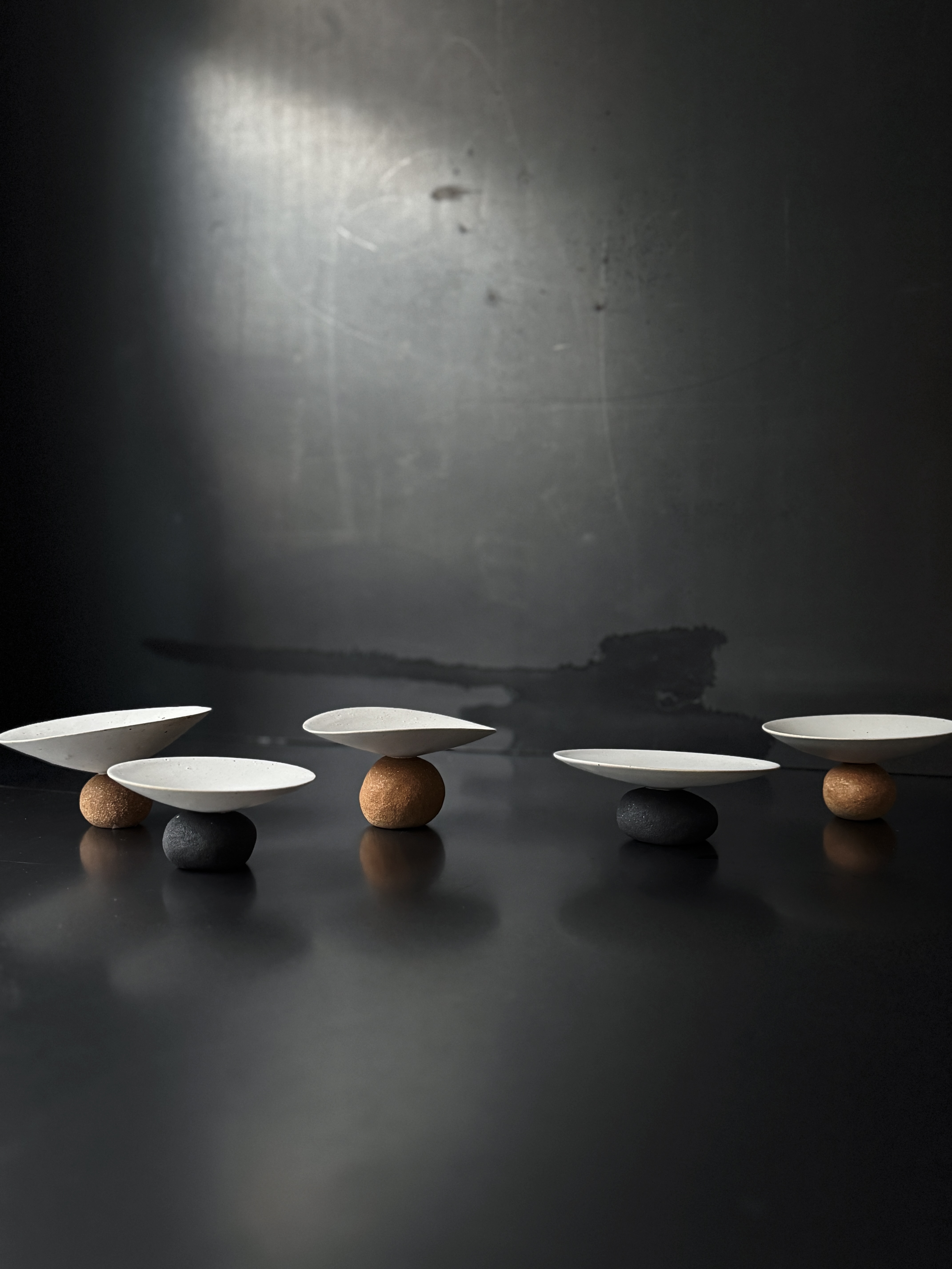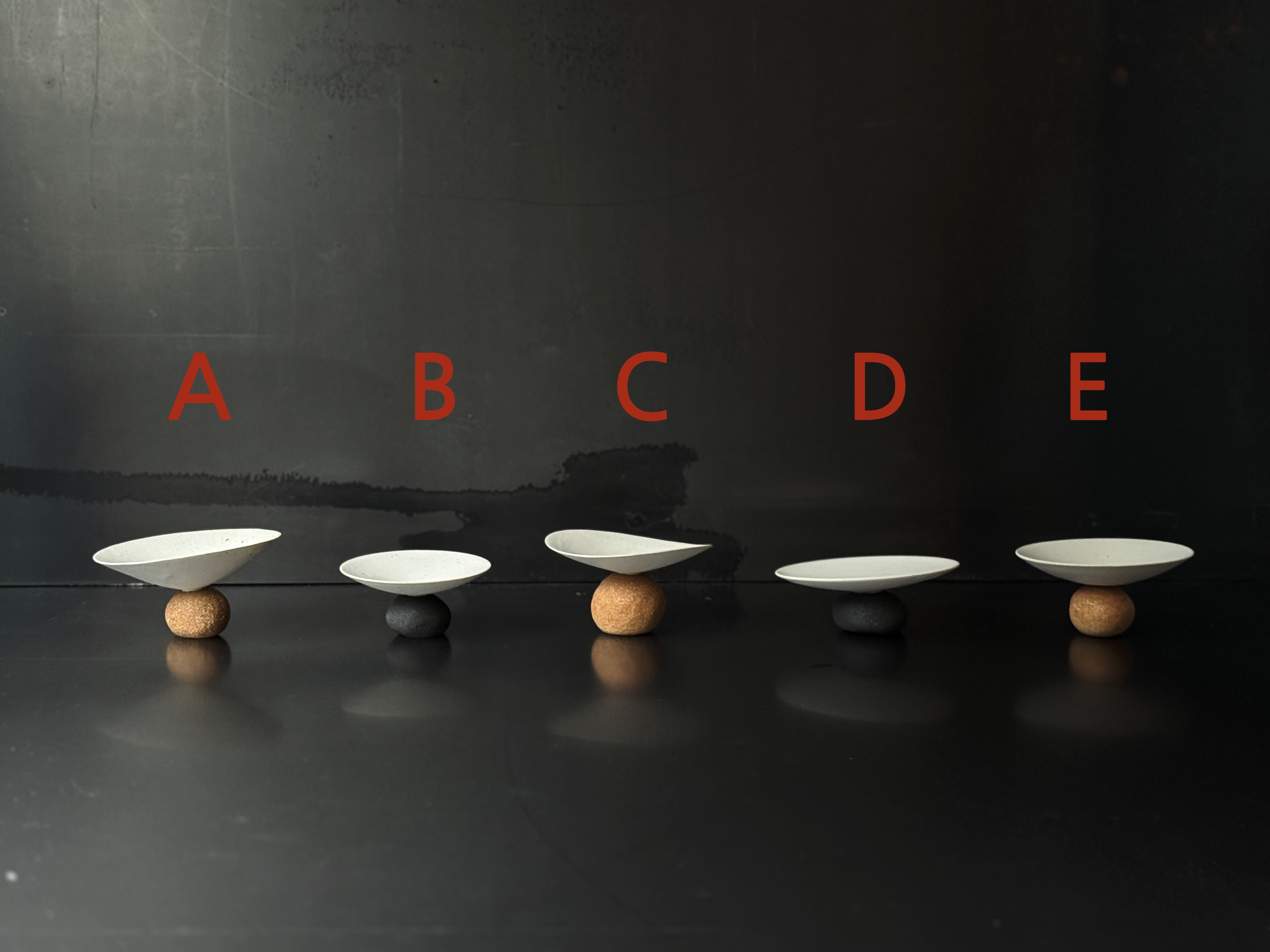 높이와 크기가 각기 다른 작은 굽 접시입니다.