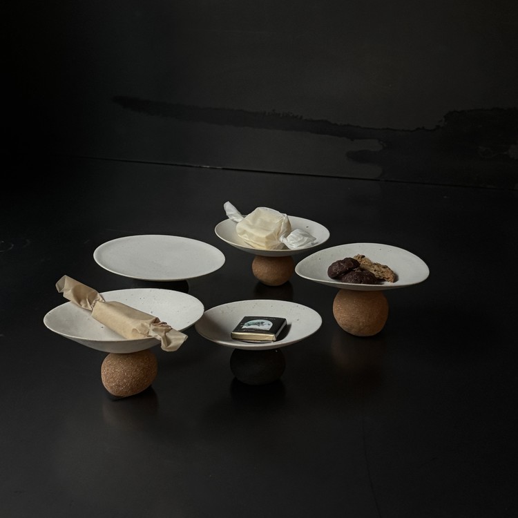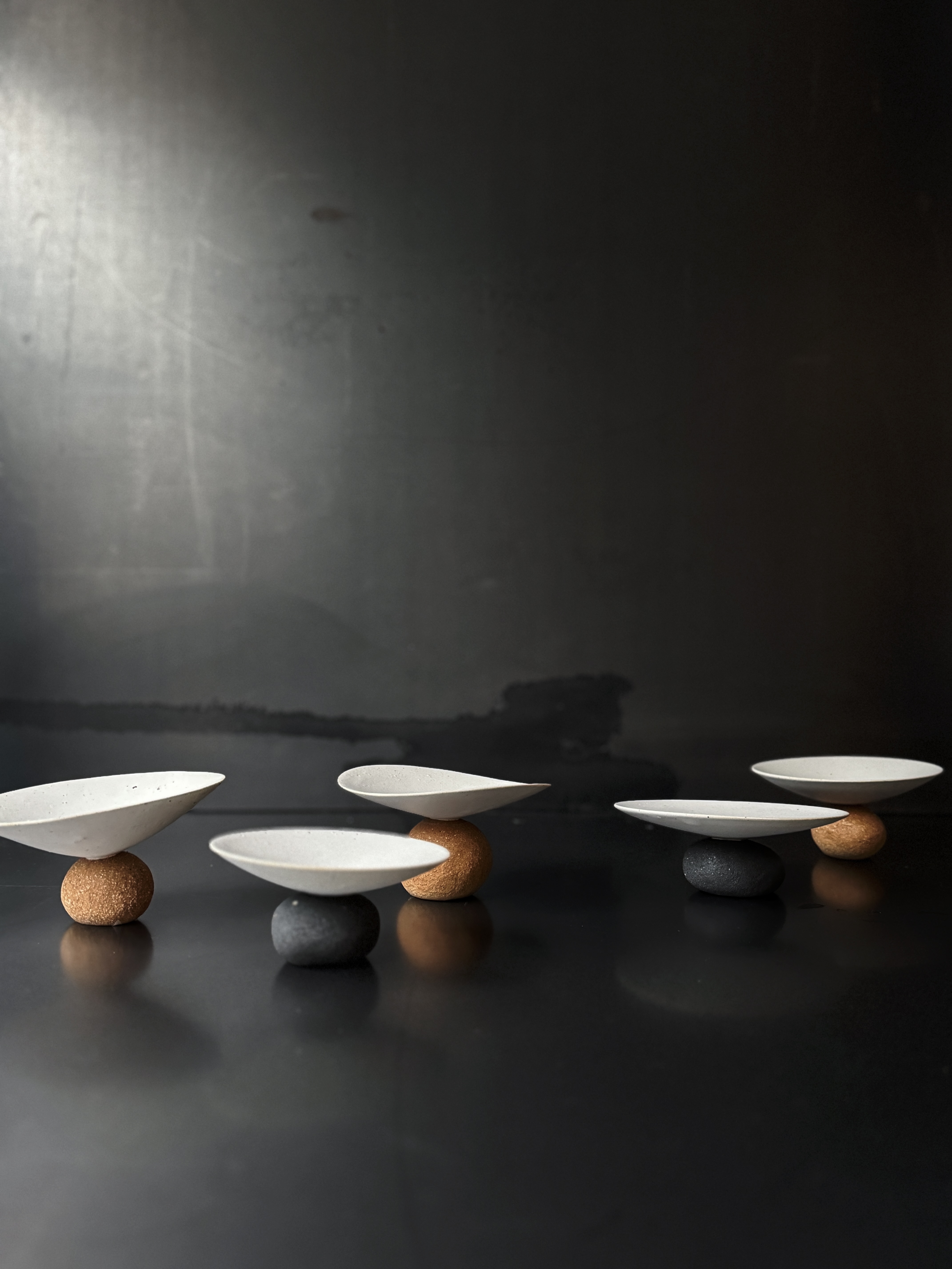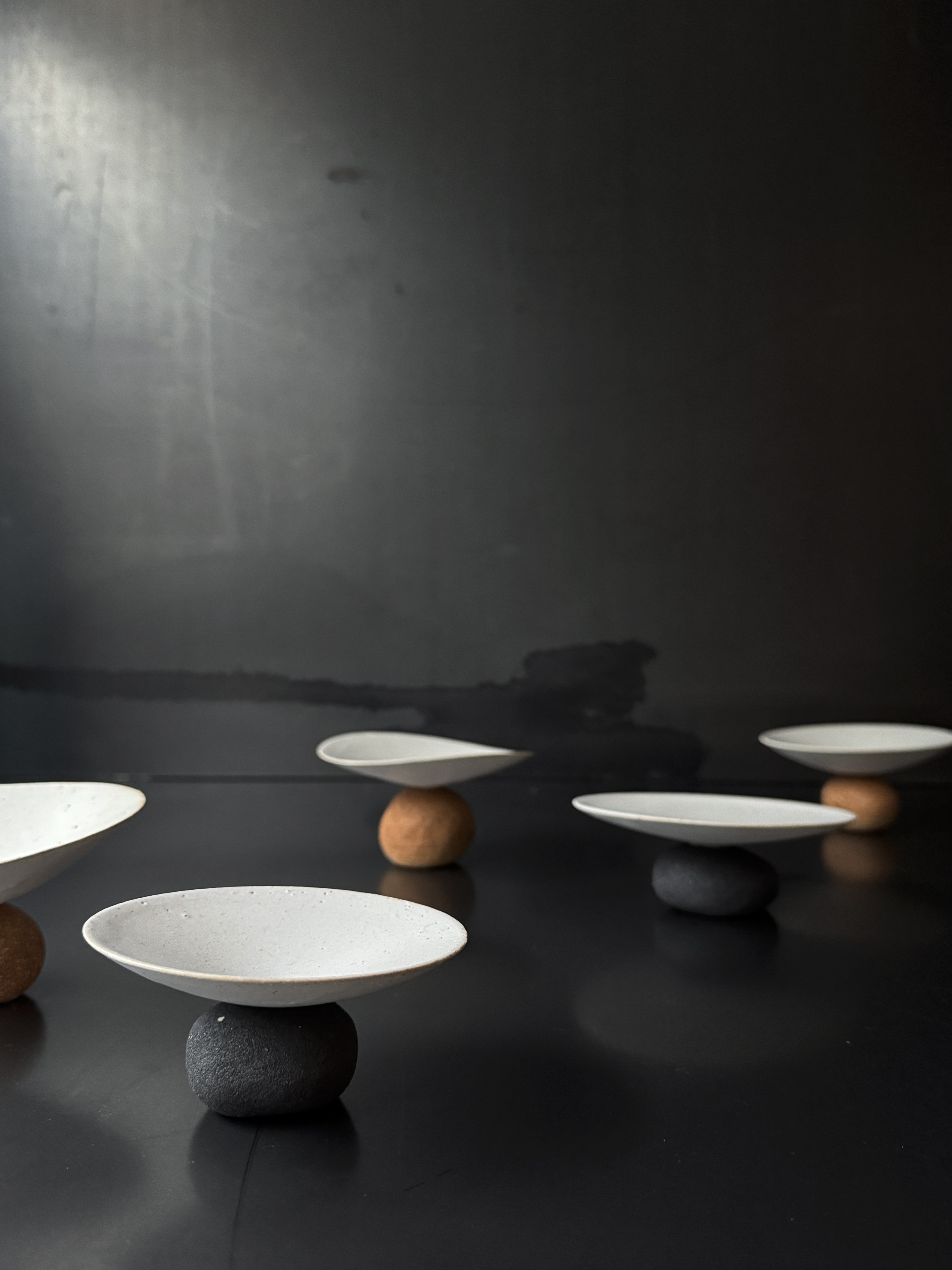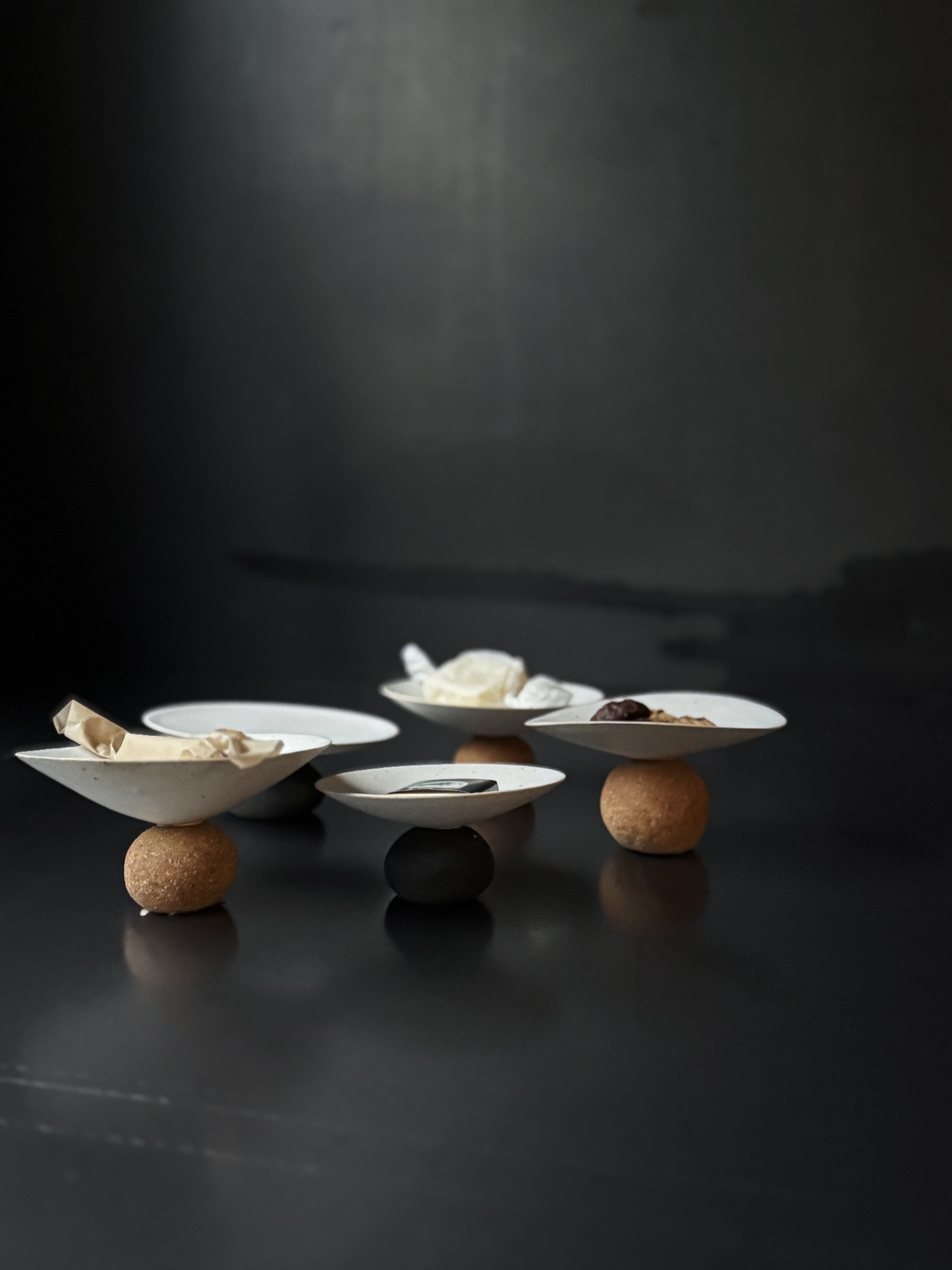 높이와 크기가 각기 다른 작은 굽 접시입니다.