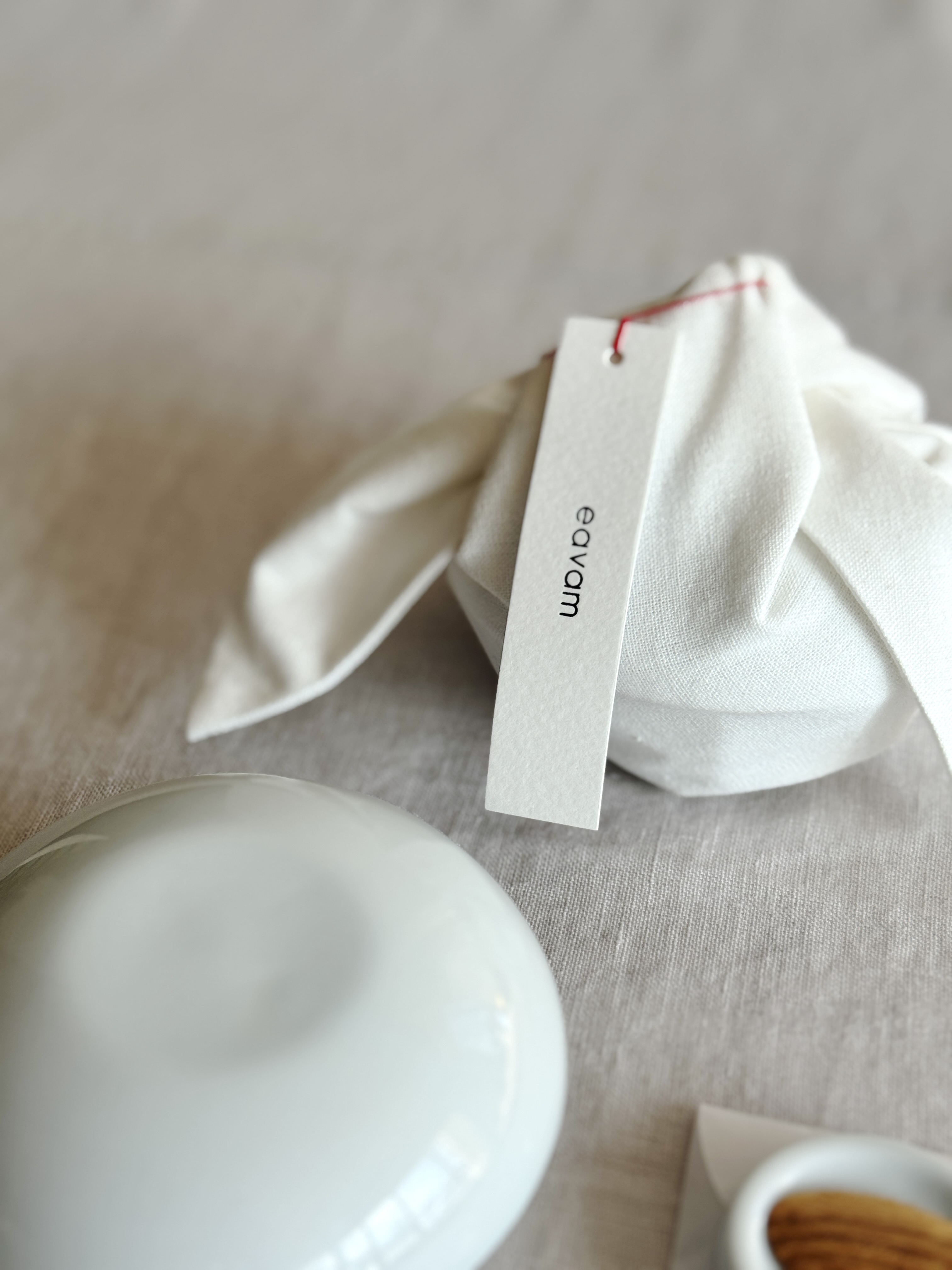 eavam 스태프가 하나하나 정성을 담아 직접 봉합한 보자기로, 제품을 더욱 소중하게 감싸줍니다.