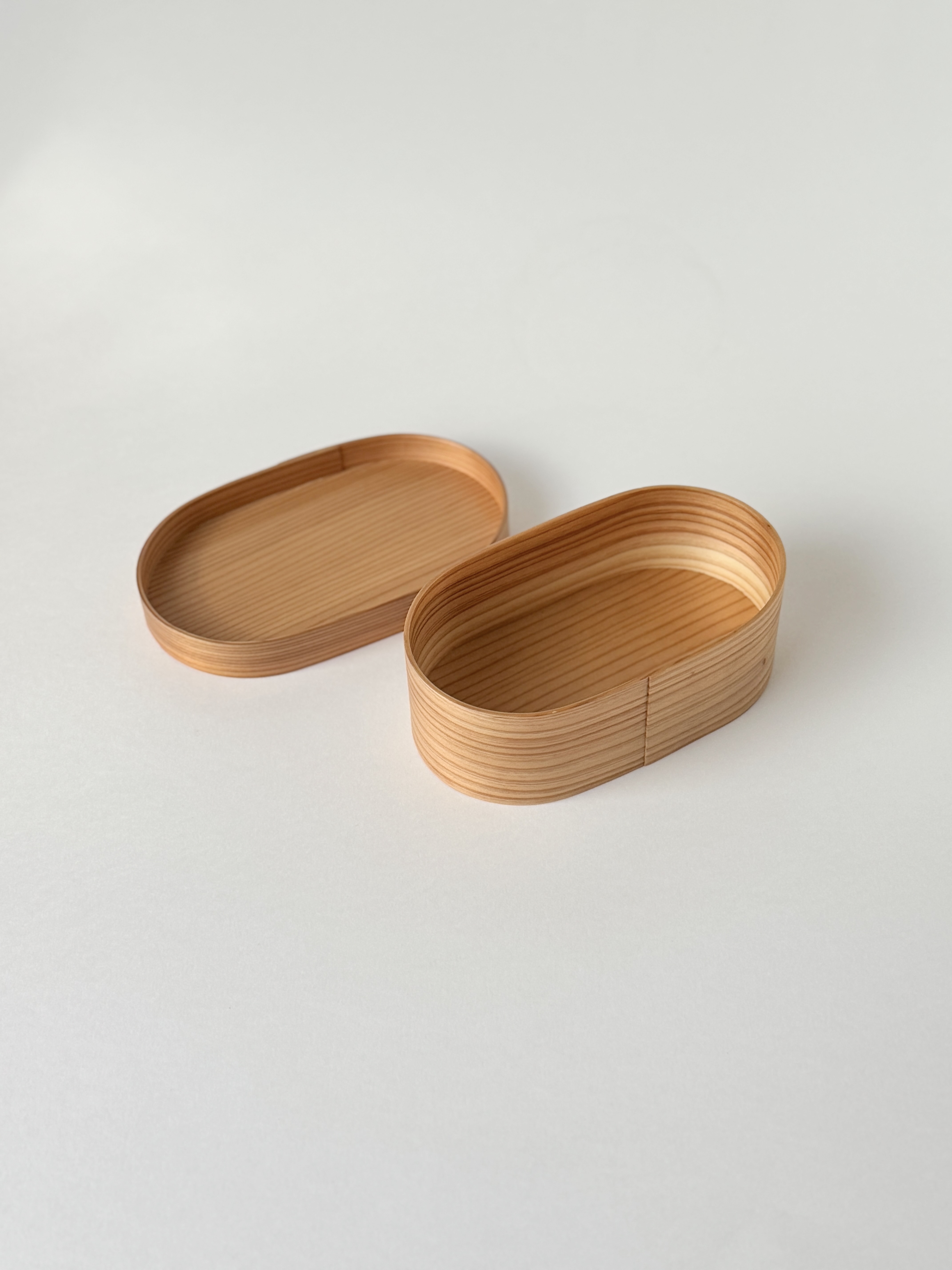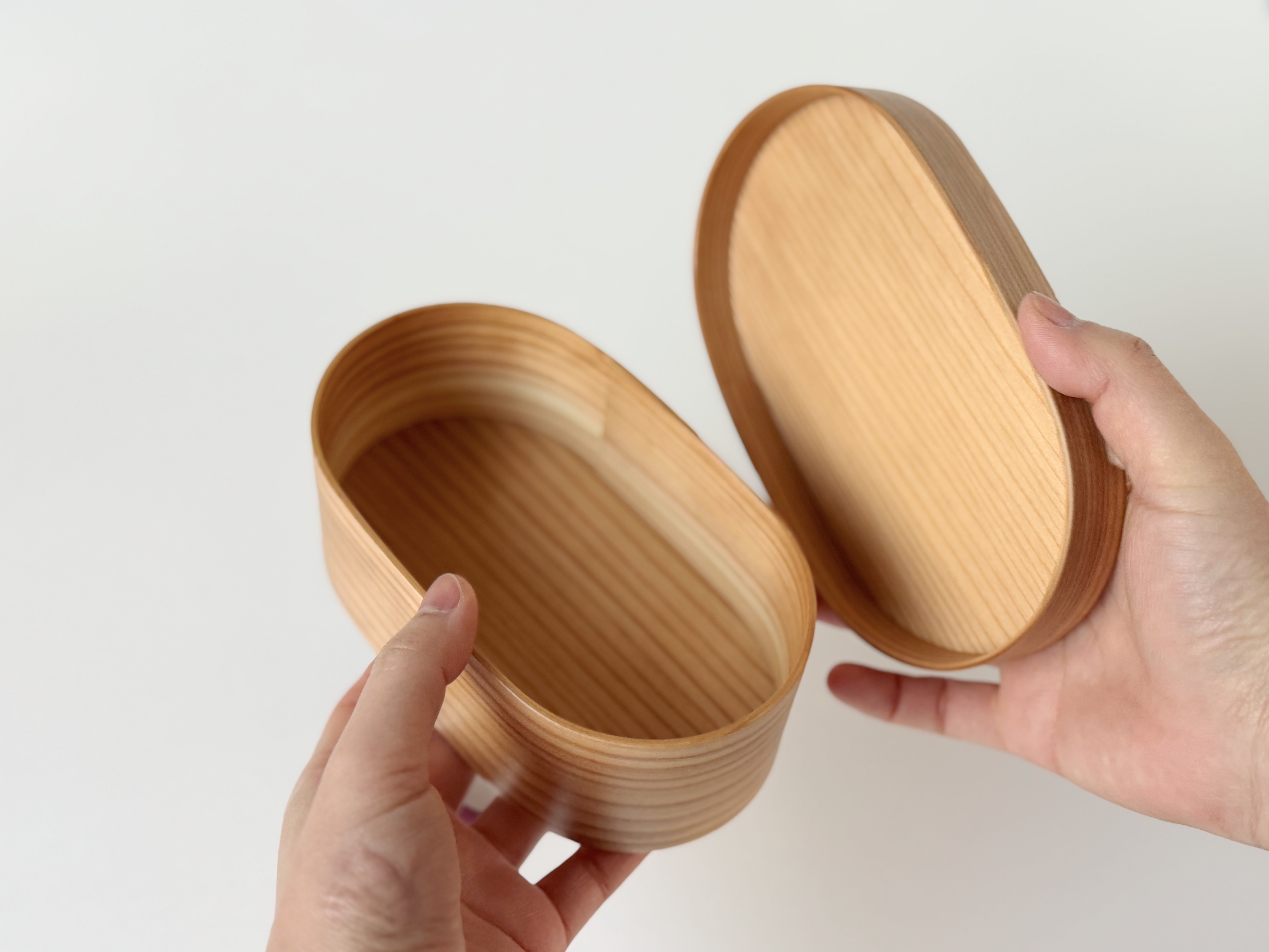 자연의 결을 그대로 담은 삼나무 오발형 도시락입니다.