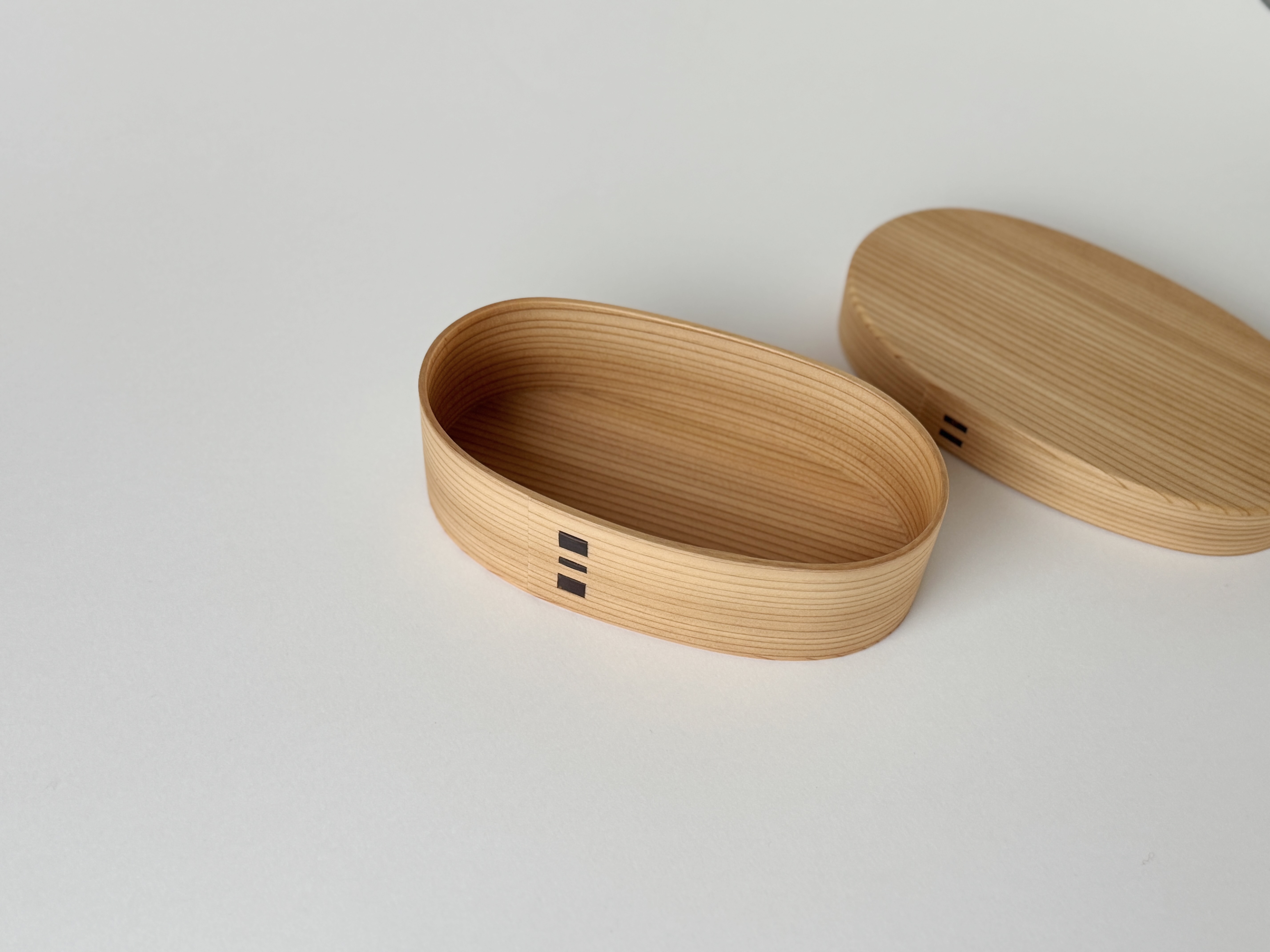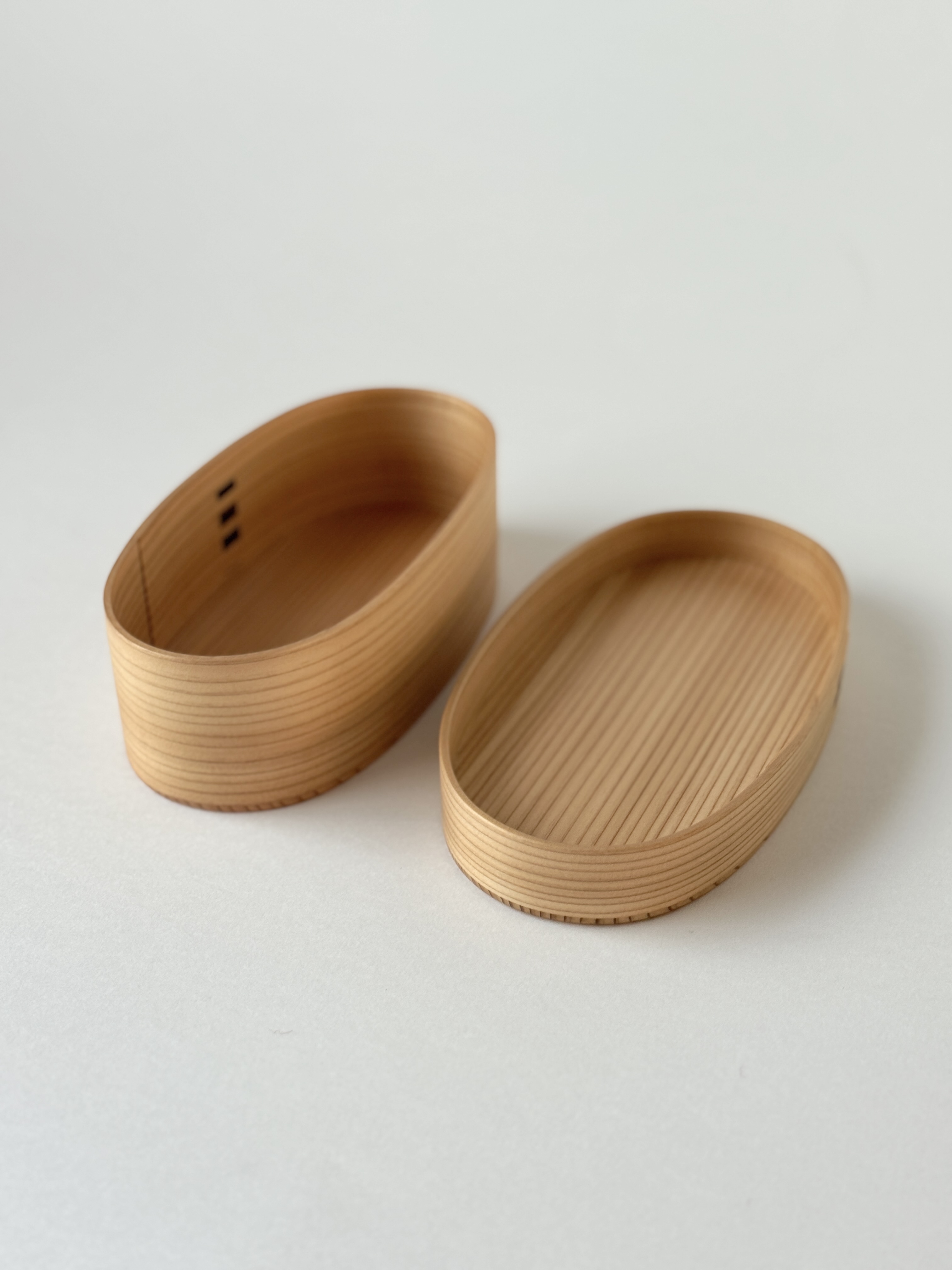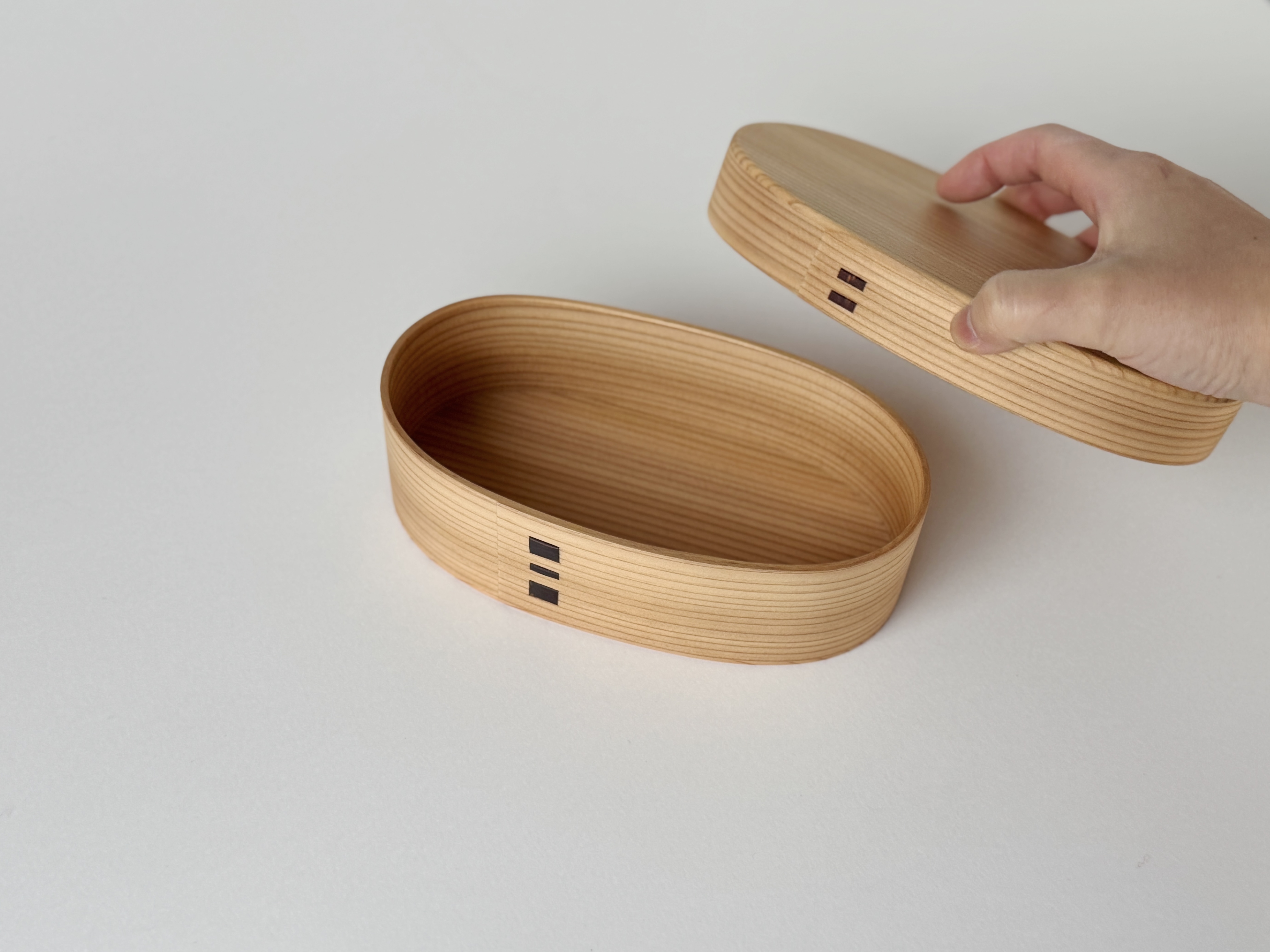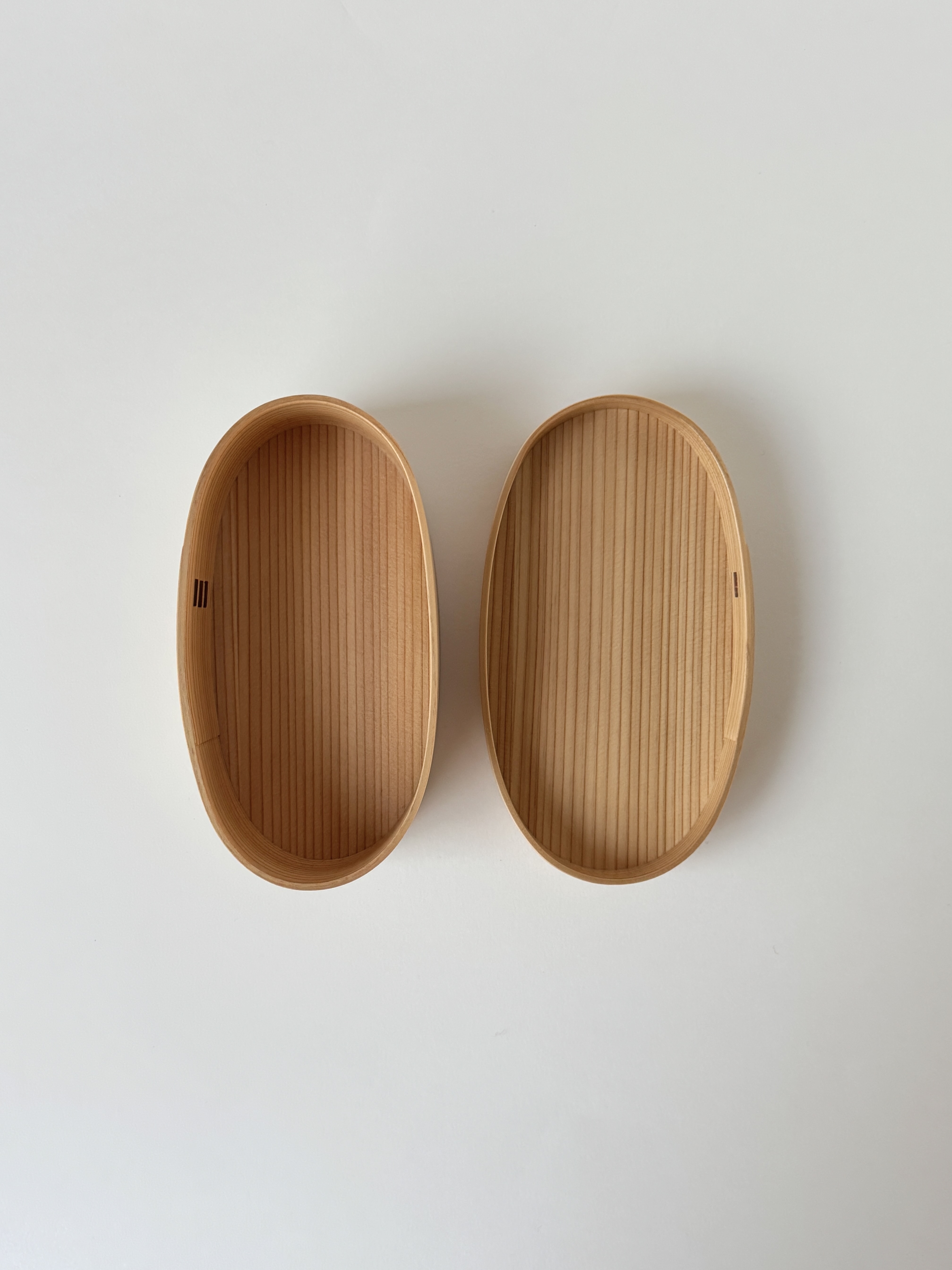손으로 완성한 삼나무 오발형 핸드메이드 도시락입니다.