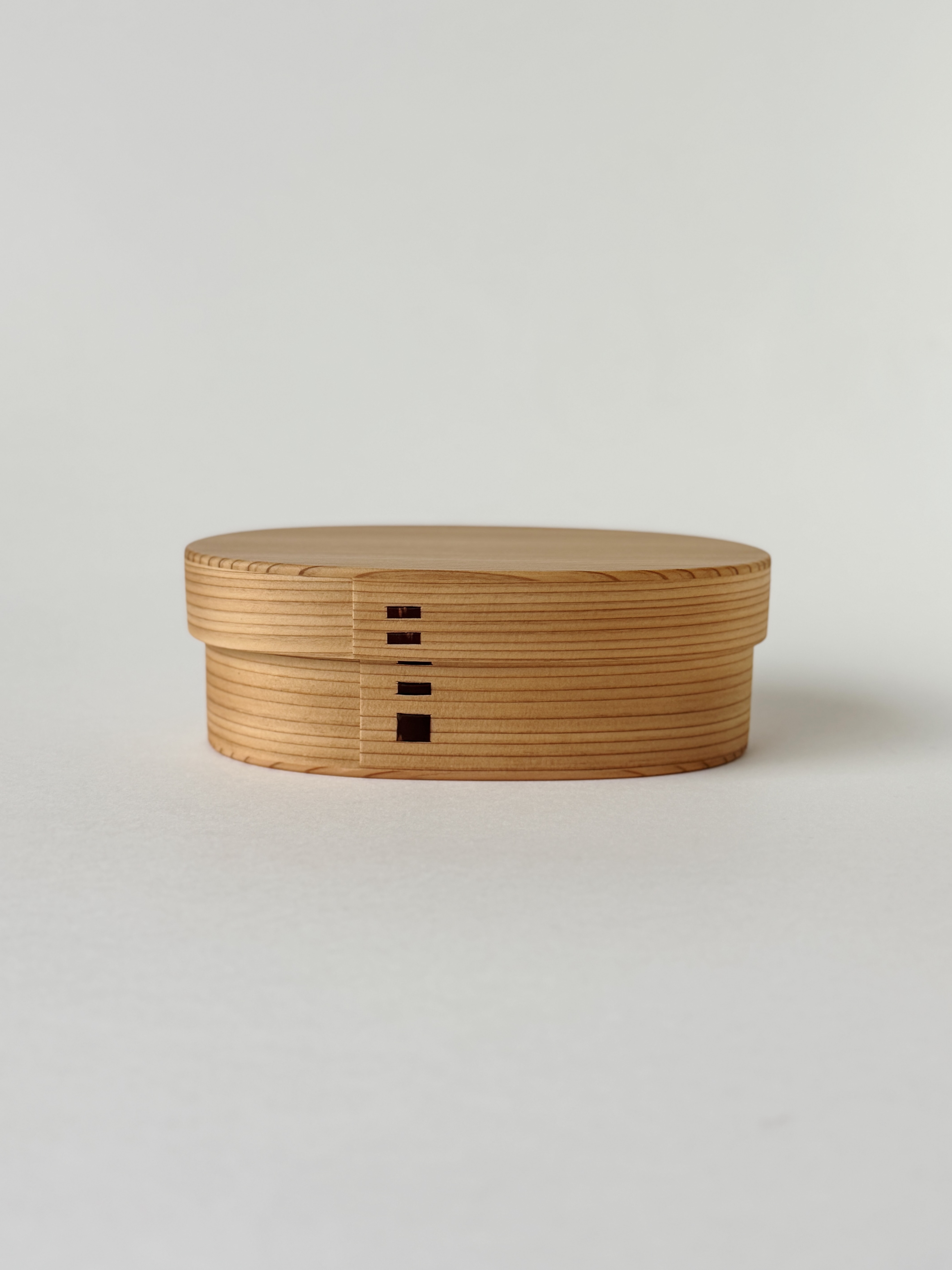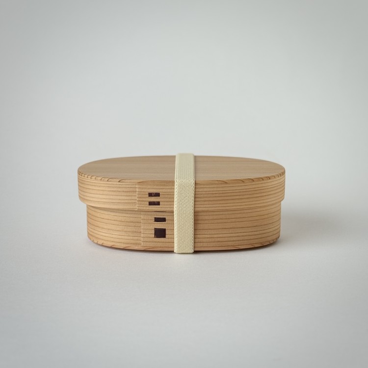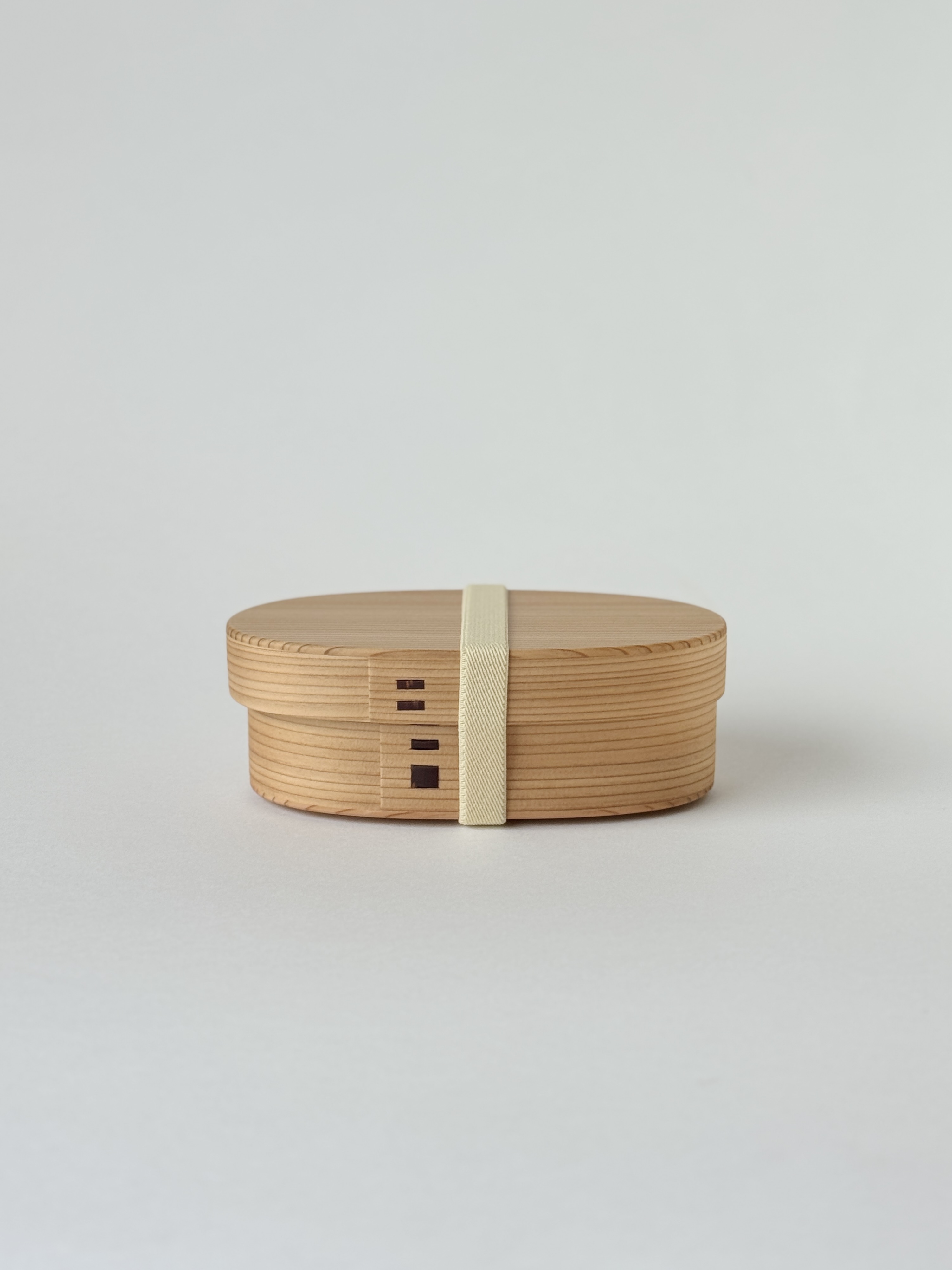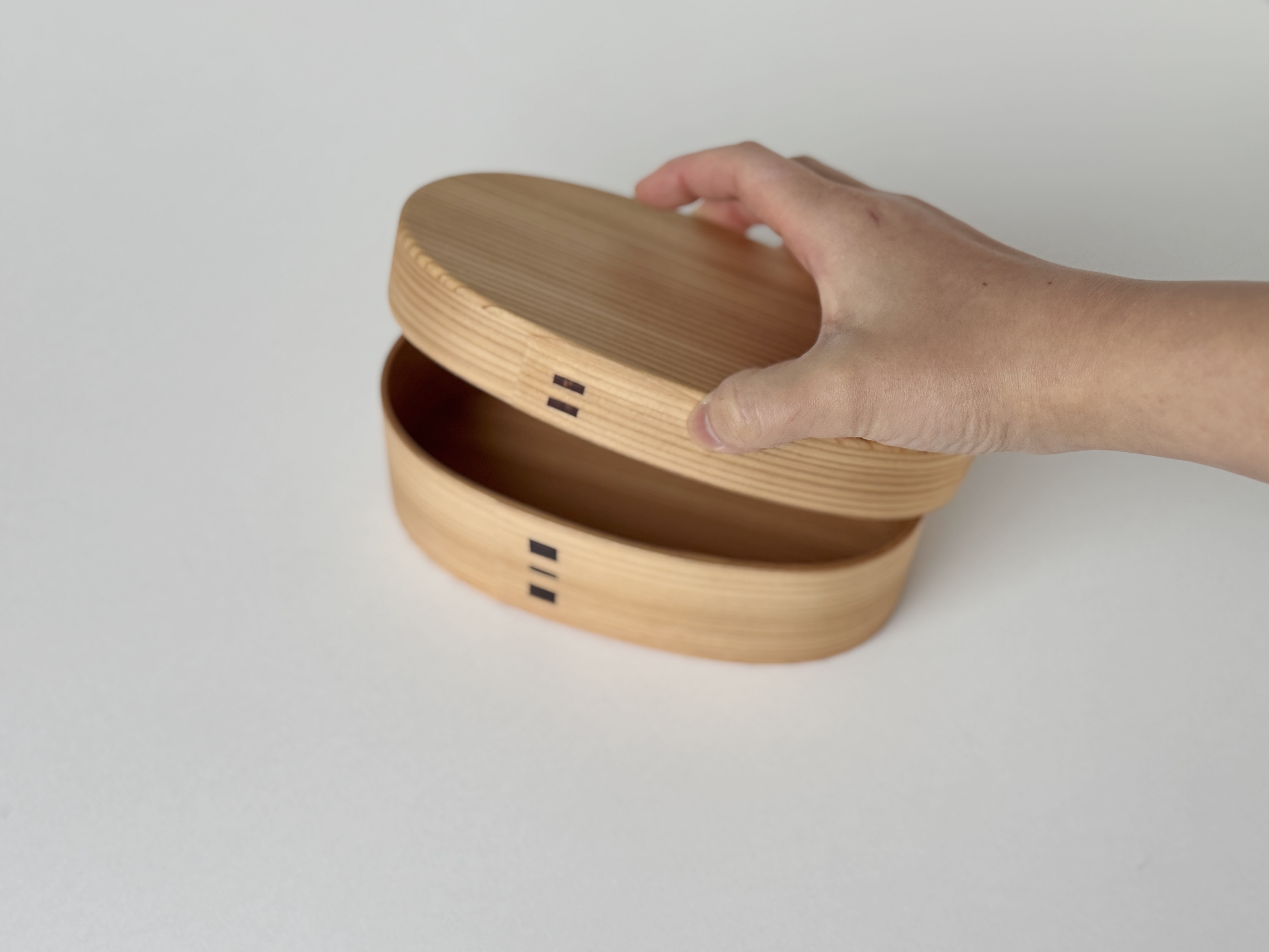 손으로 완성한 삼나무 오발형 핸드메이드 도시락입니다.