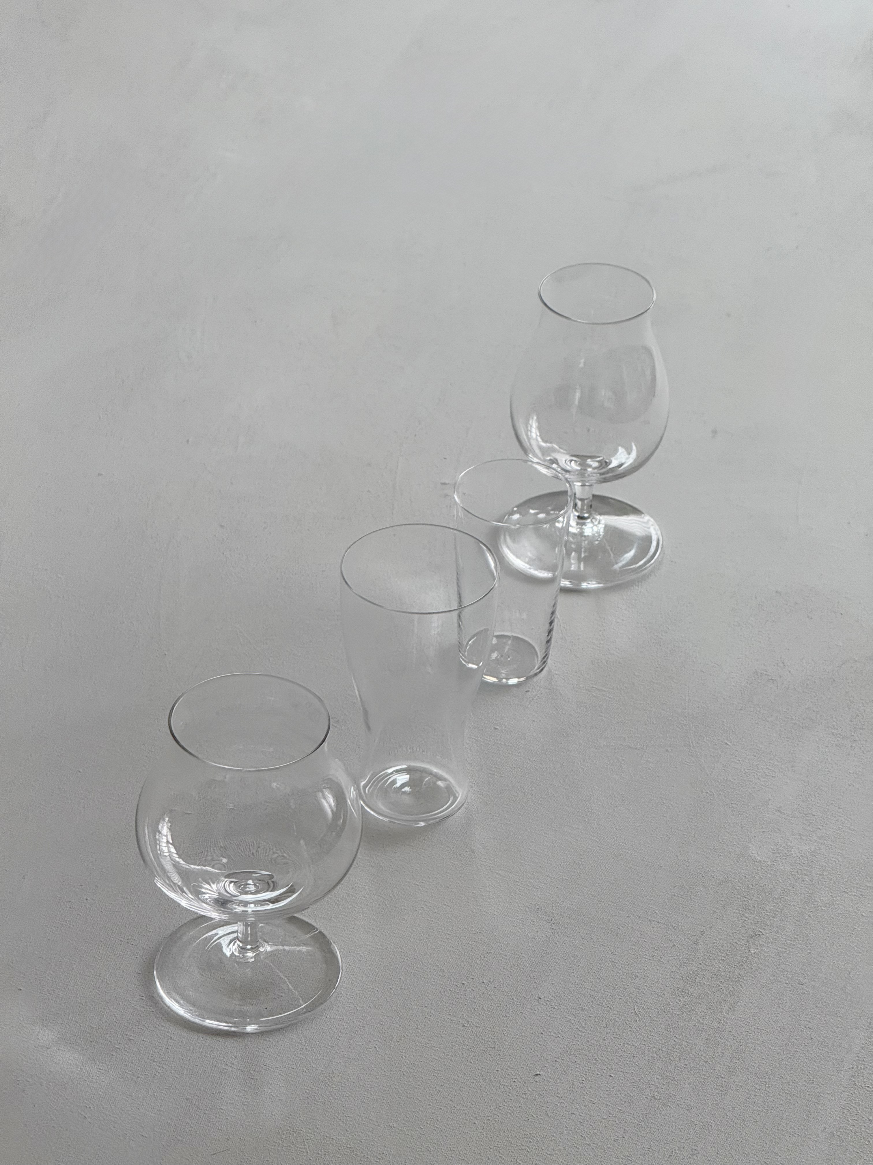 잔의 투명한 유리와 유려한 곡선이 술을 담았을 때 찰랑거리는 모습이 잘 어울립니다.