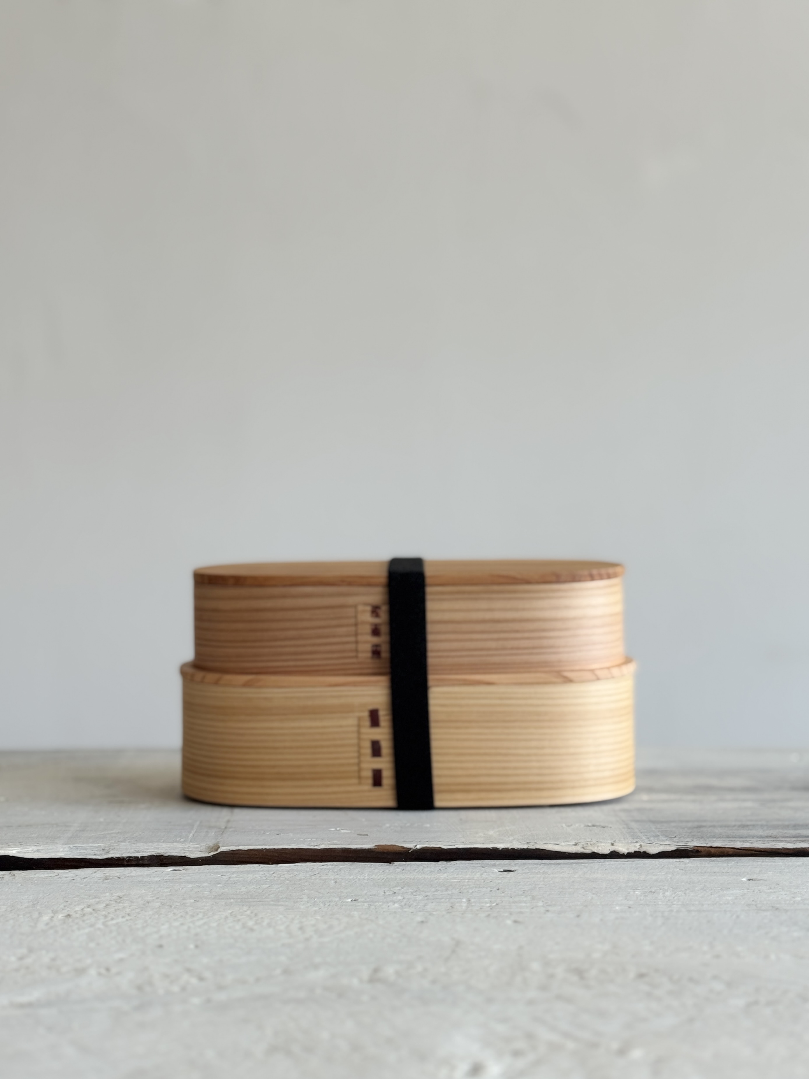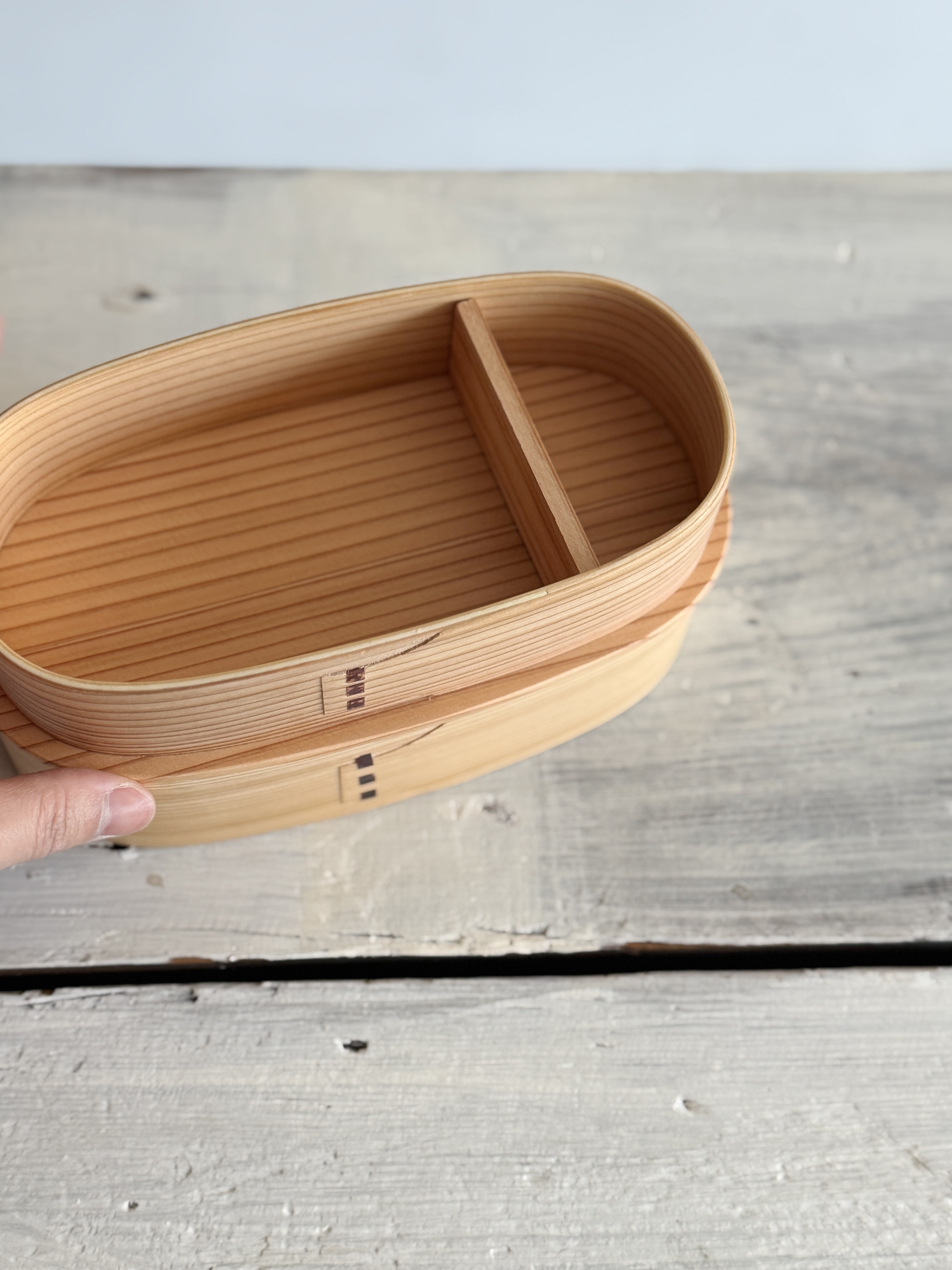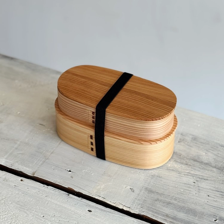 자연의 결이 살아 있는 삼나무 바게트형 2단 도시락입니다.