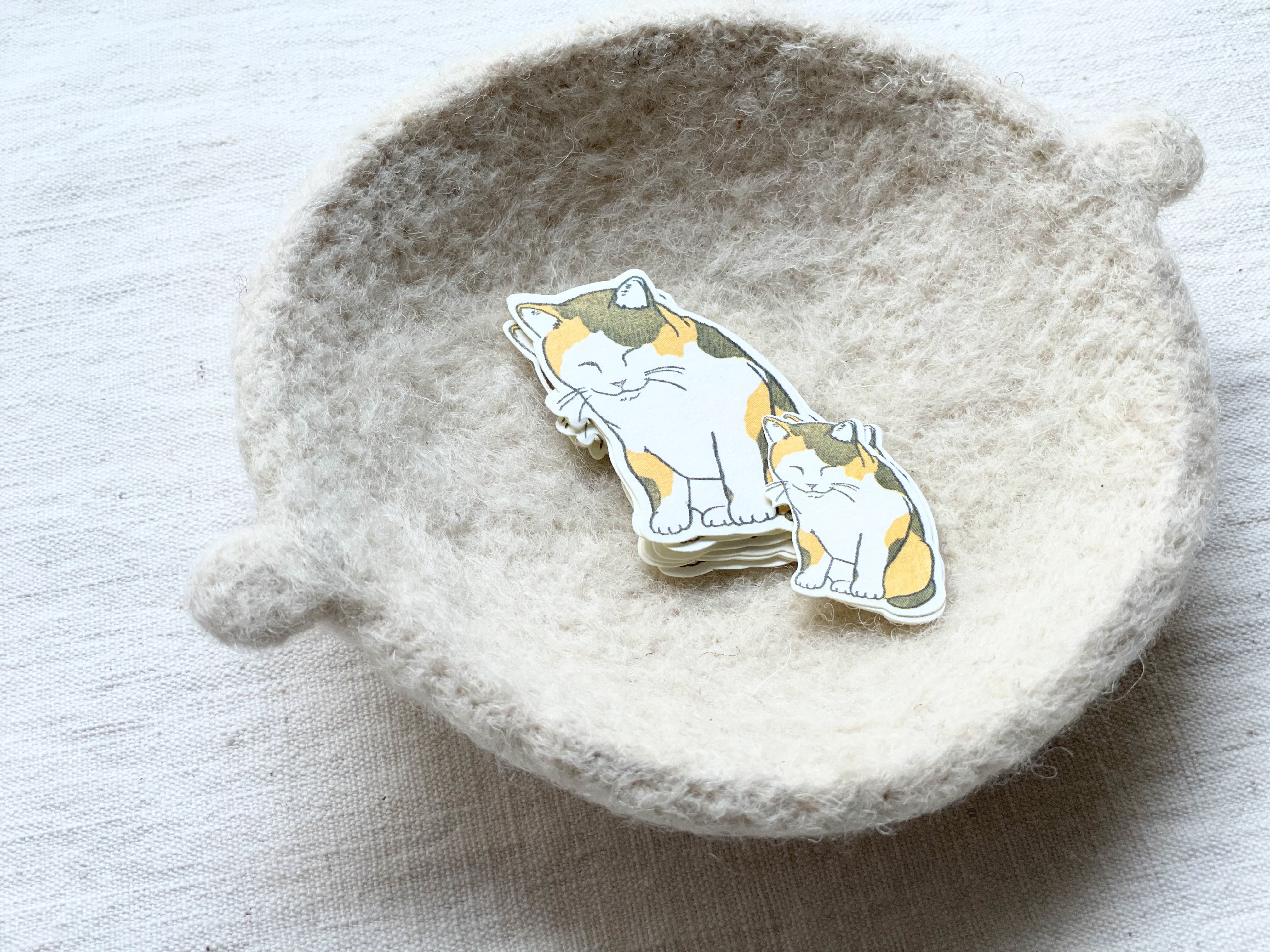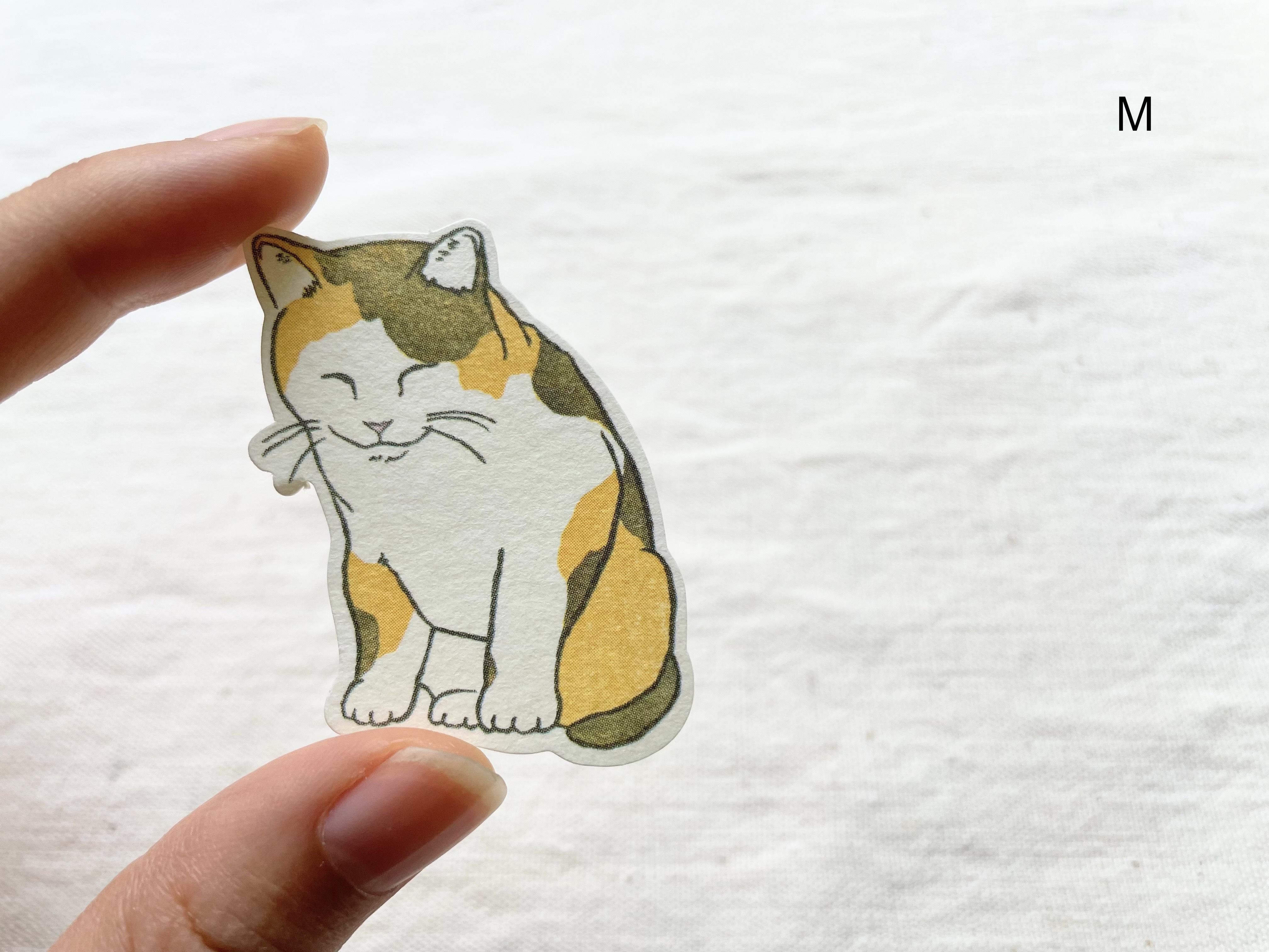 눈을 감고 사색을 즐기고 있는 고양이 일러스트 스티커입니다.