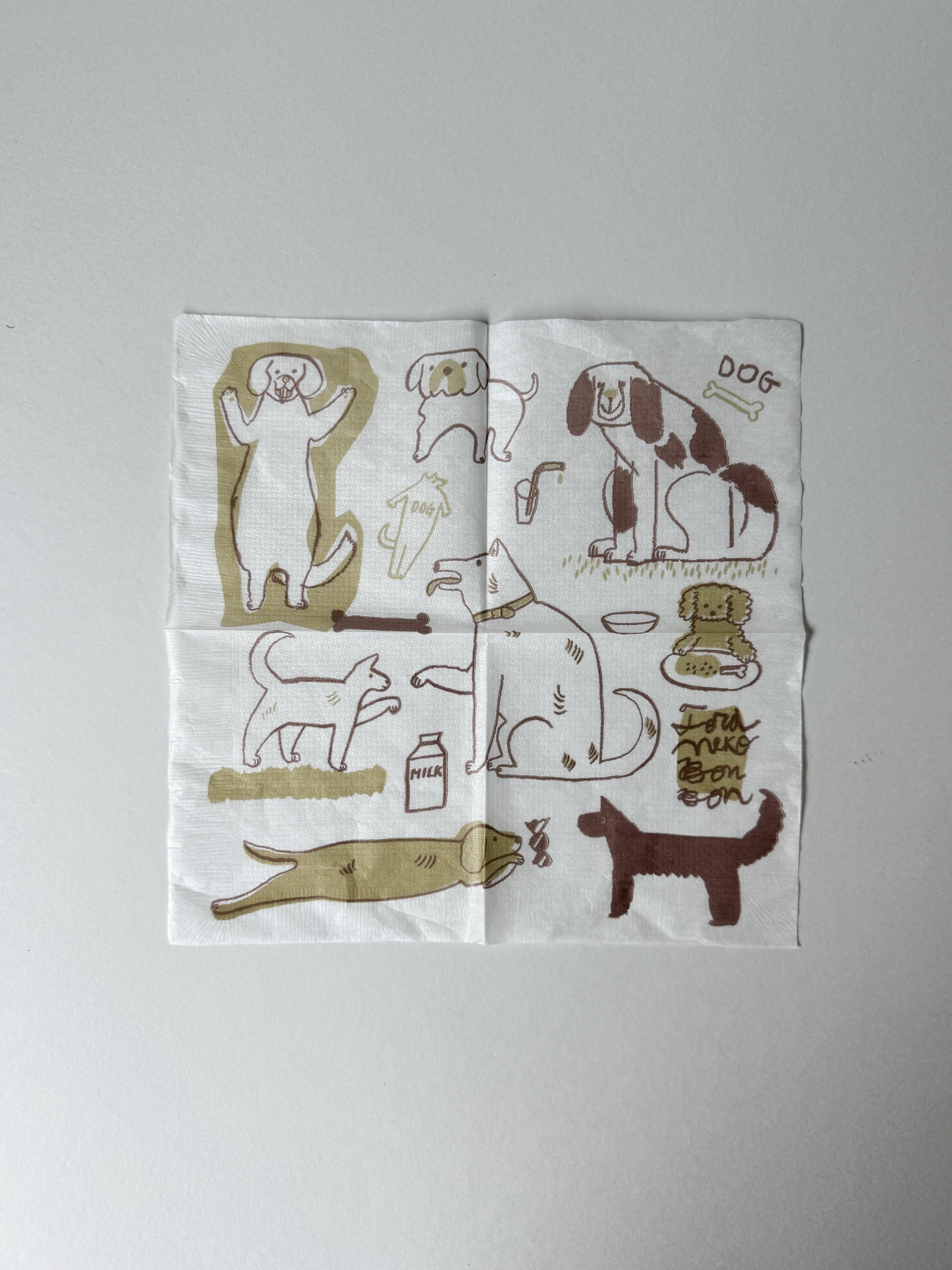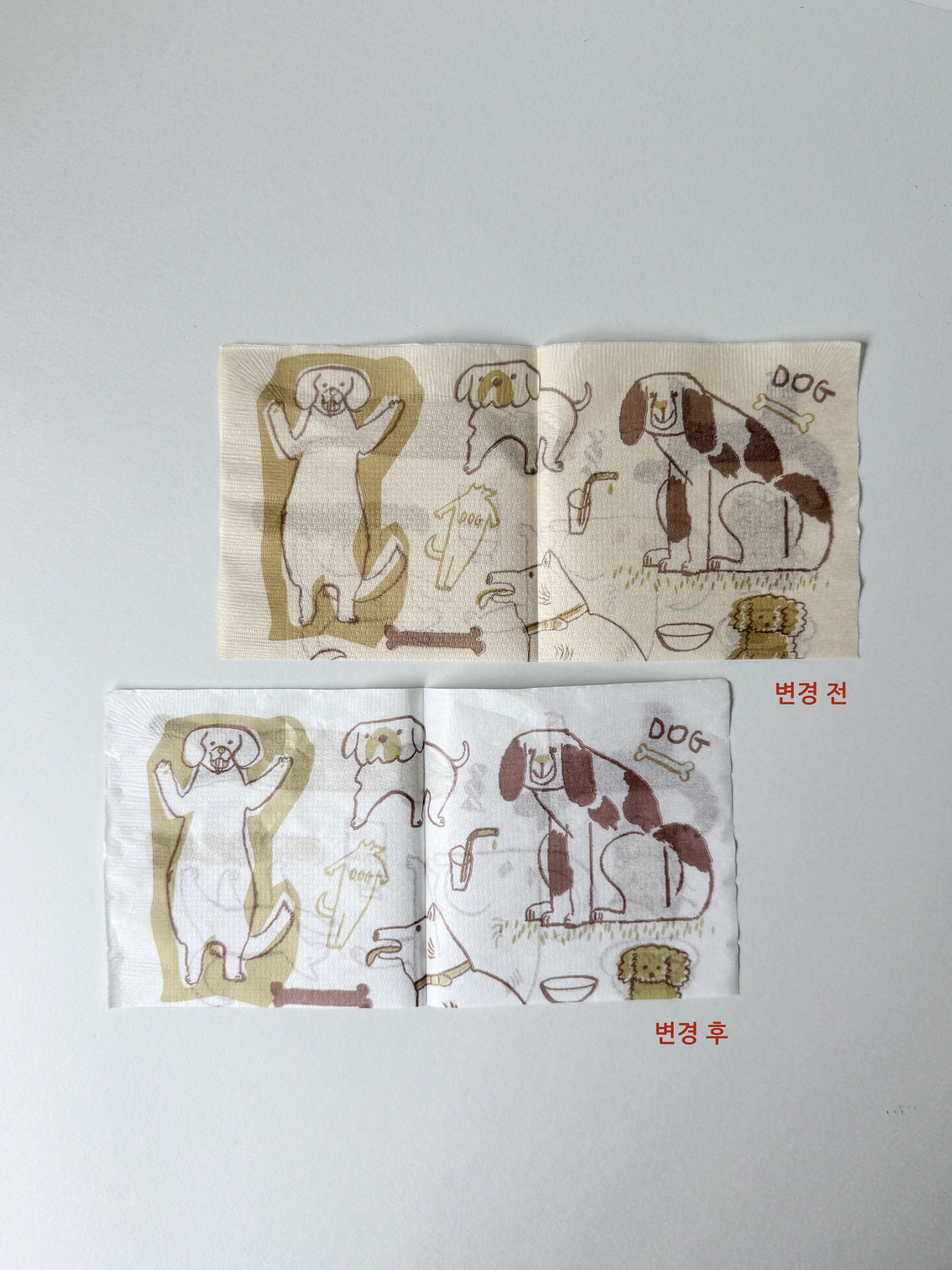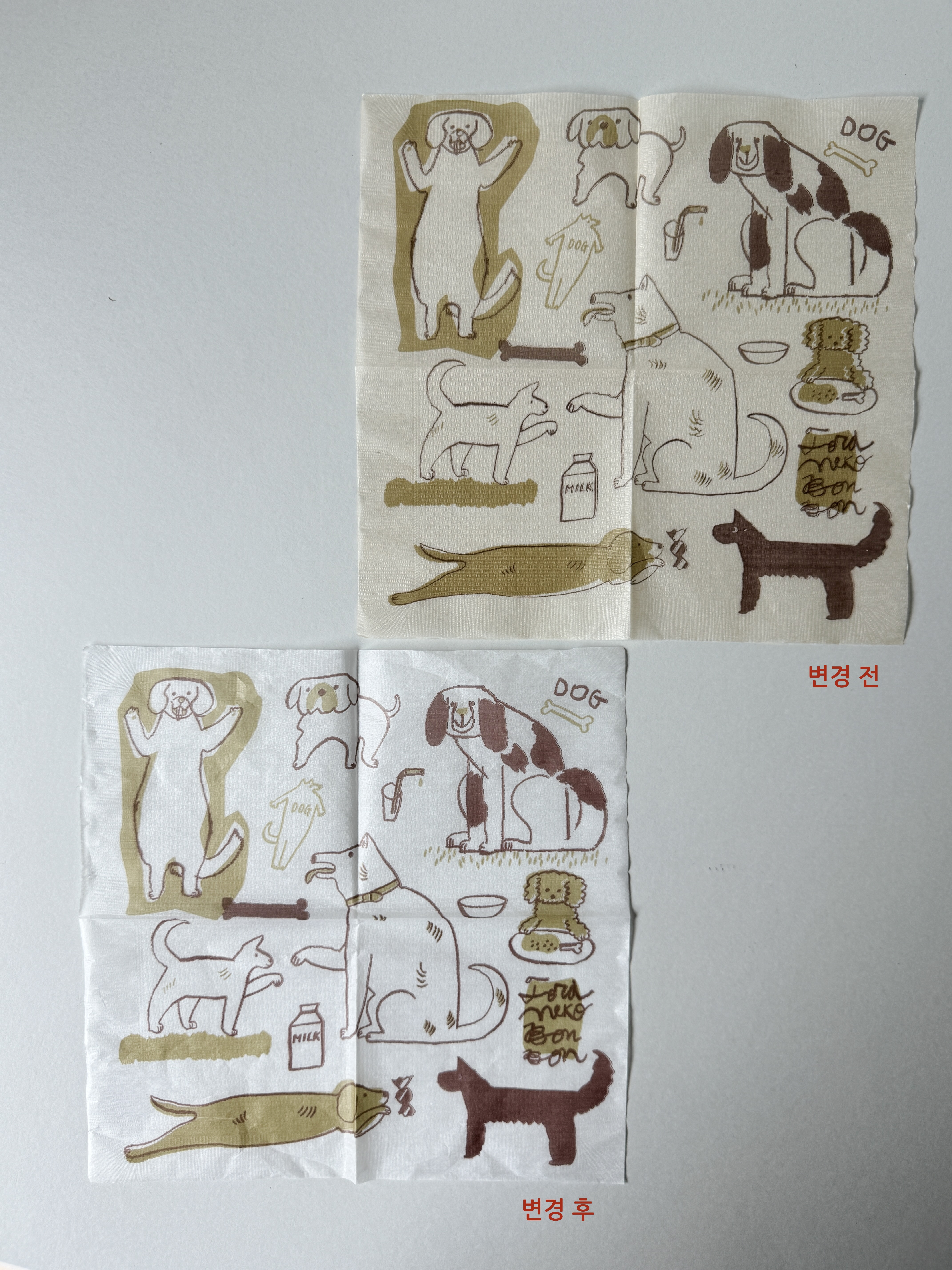 평화로운 모습의 강아지, 고양이들이 그려진 아주 얇은 두께의 종이냅킨입니다.