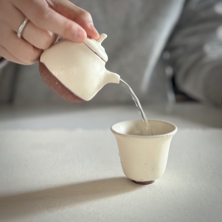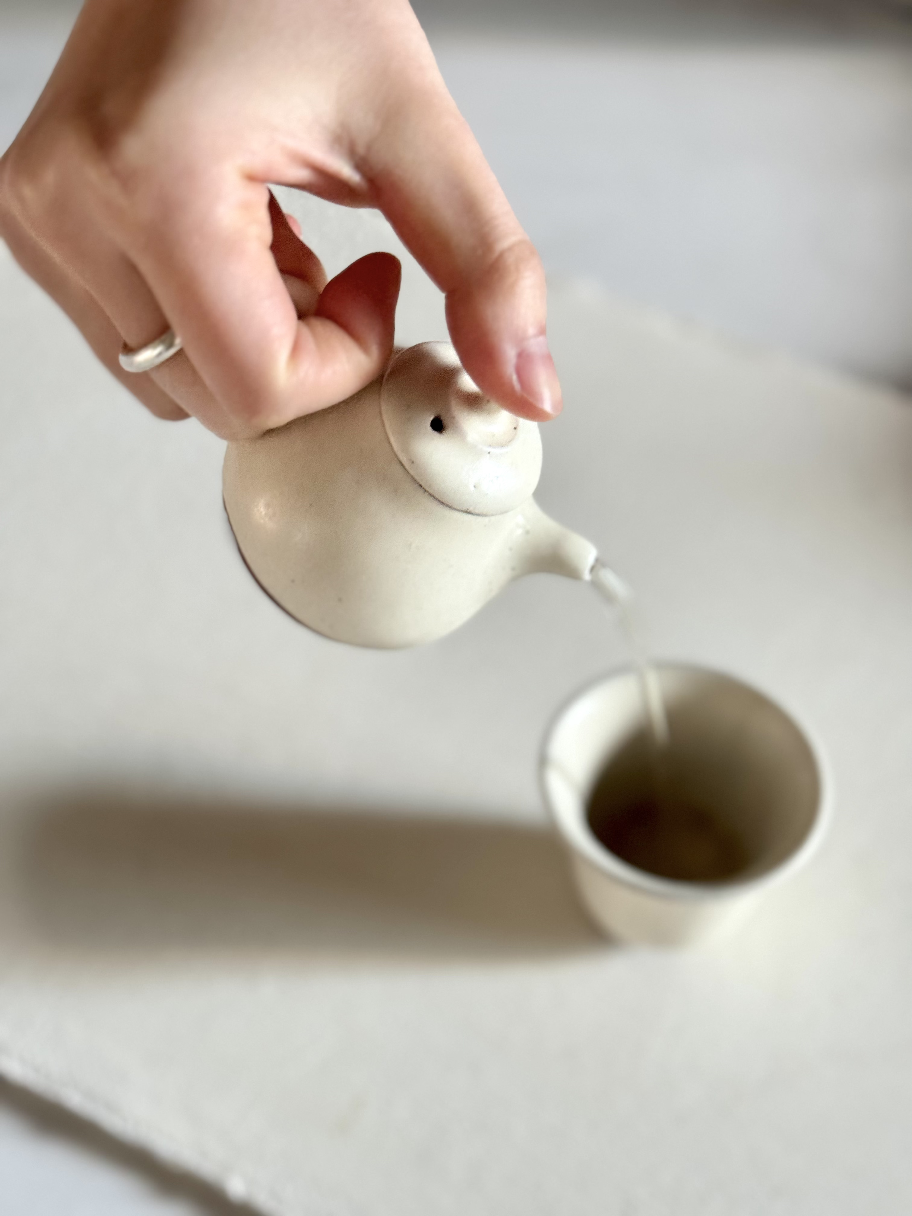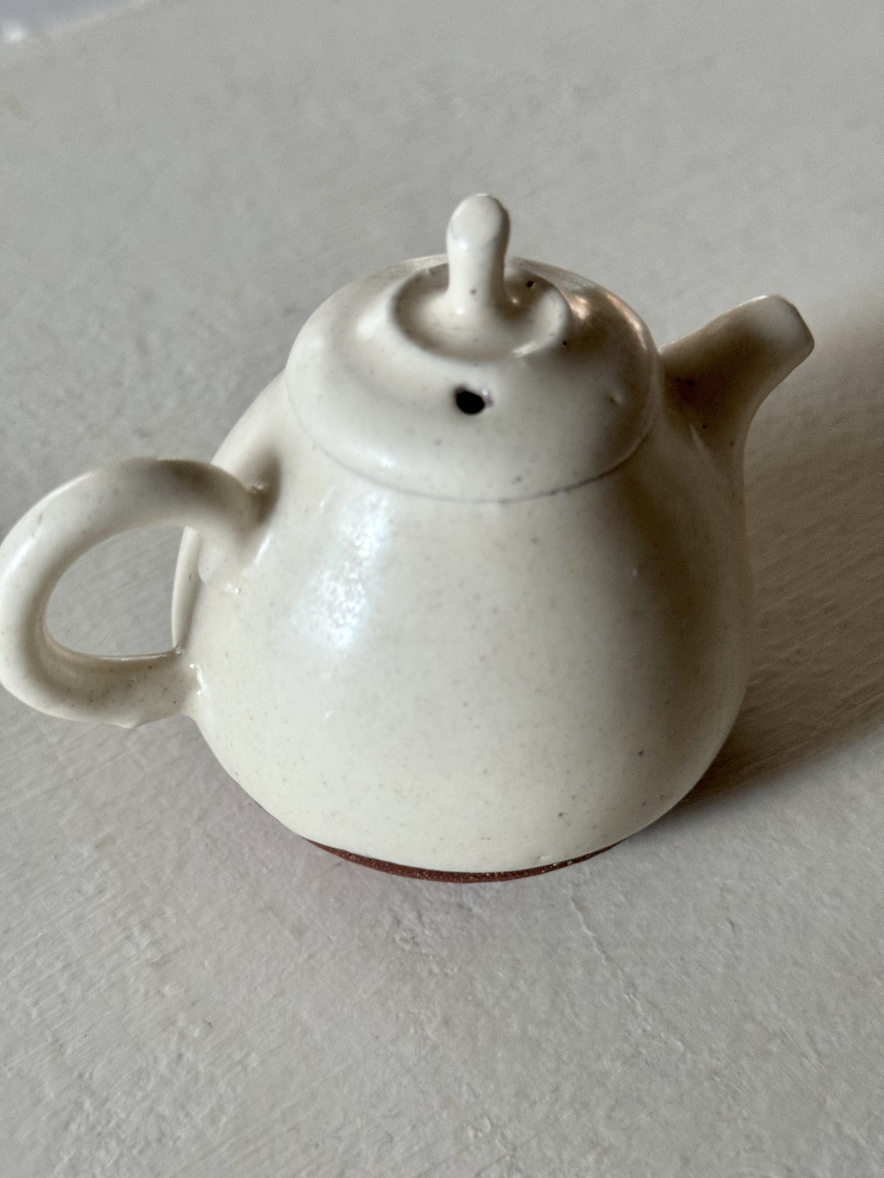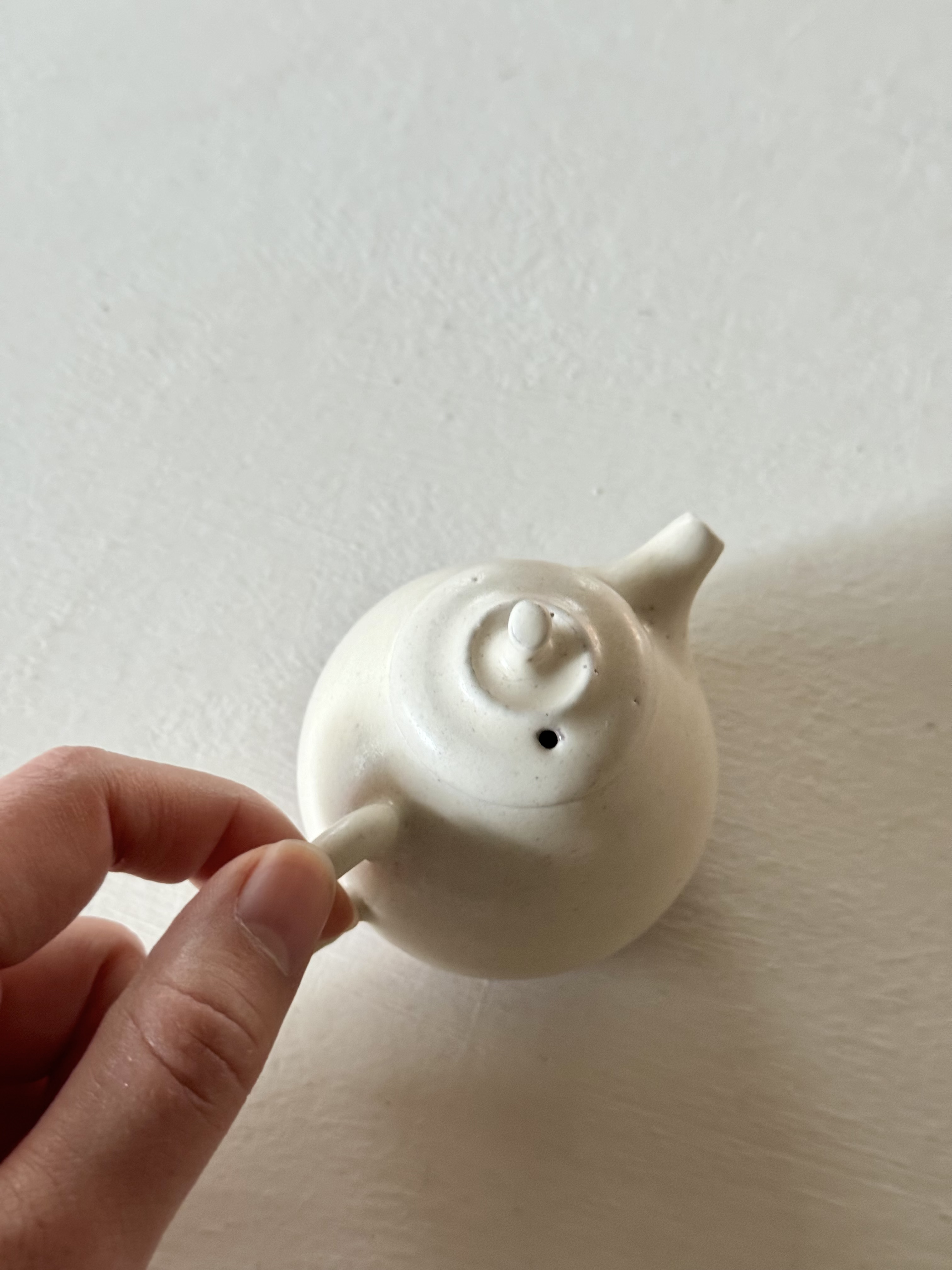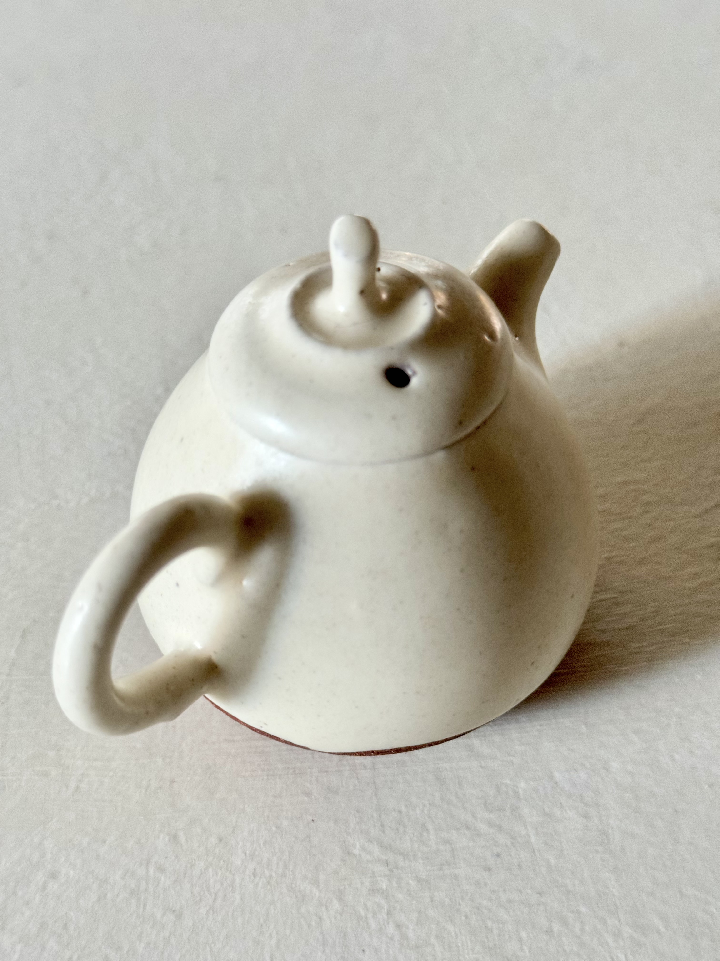 우윳빛색감의 차호는 1-2인 찻자리에서 사용하기 좋은 크기이며, 흘러내리는 유약과 표면의 질감이 매력적입니다.