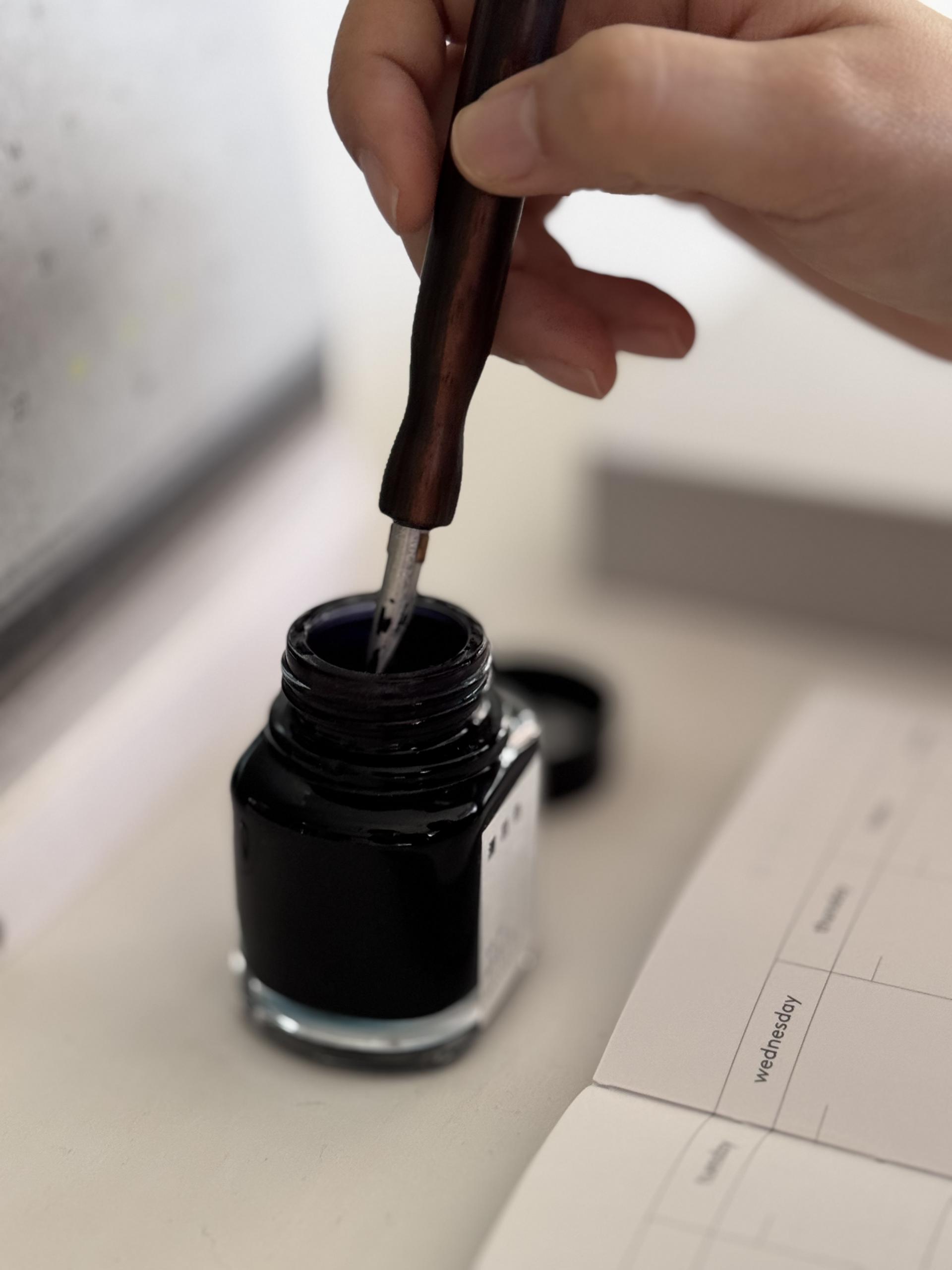 젖은 까마귀의 날개 색을 담은 잉크입니다.