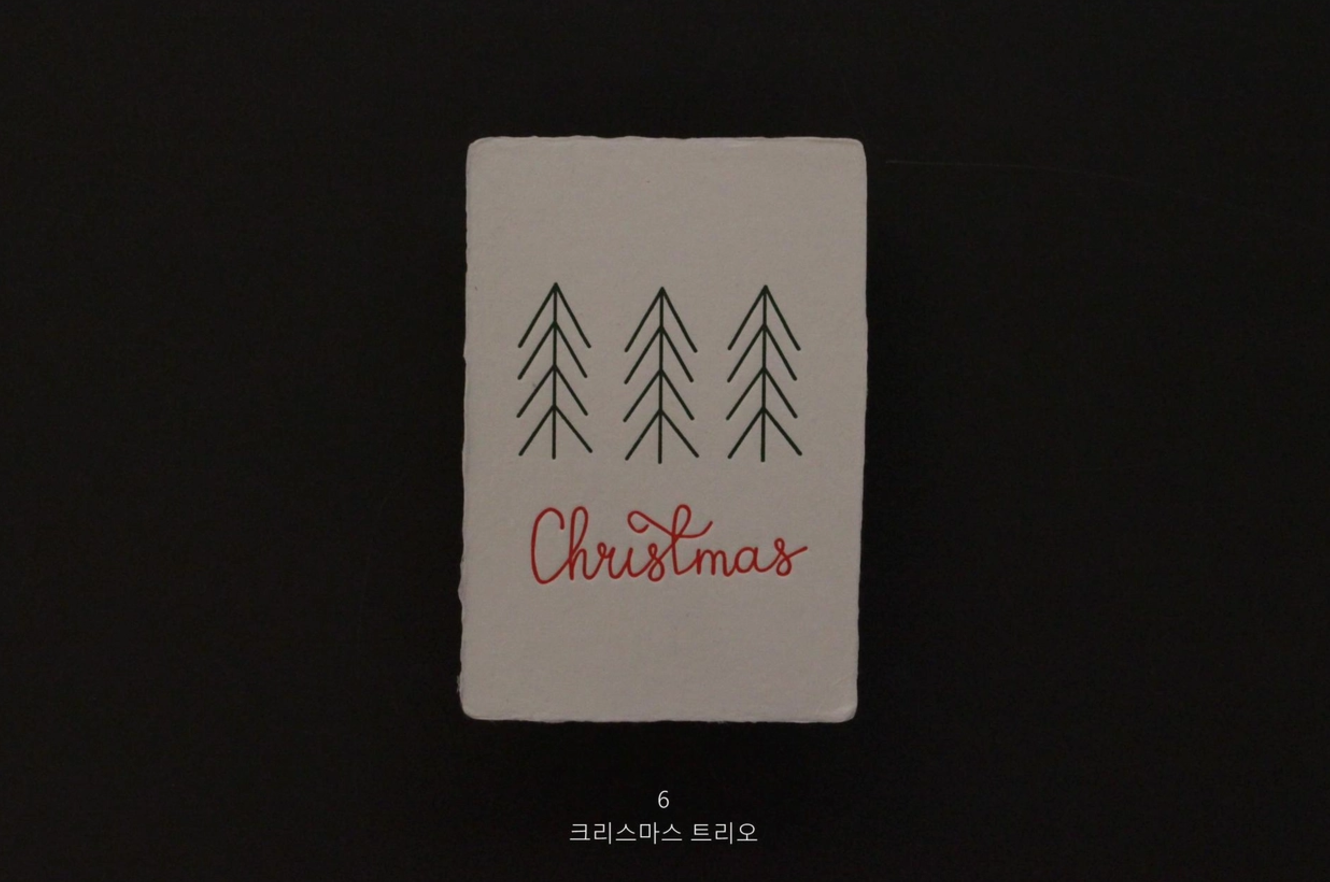 따스하고 고슬고슬한 텍스처를 가진 한지 카드지에 크리스마스 패턴을 활판 인쇄한 일상여백의 연말카드 입니다.