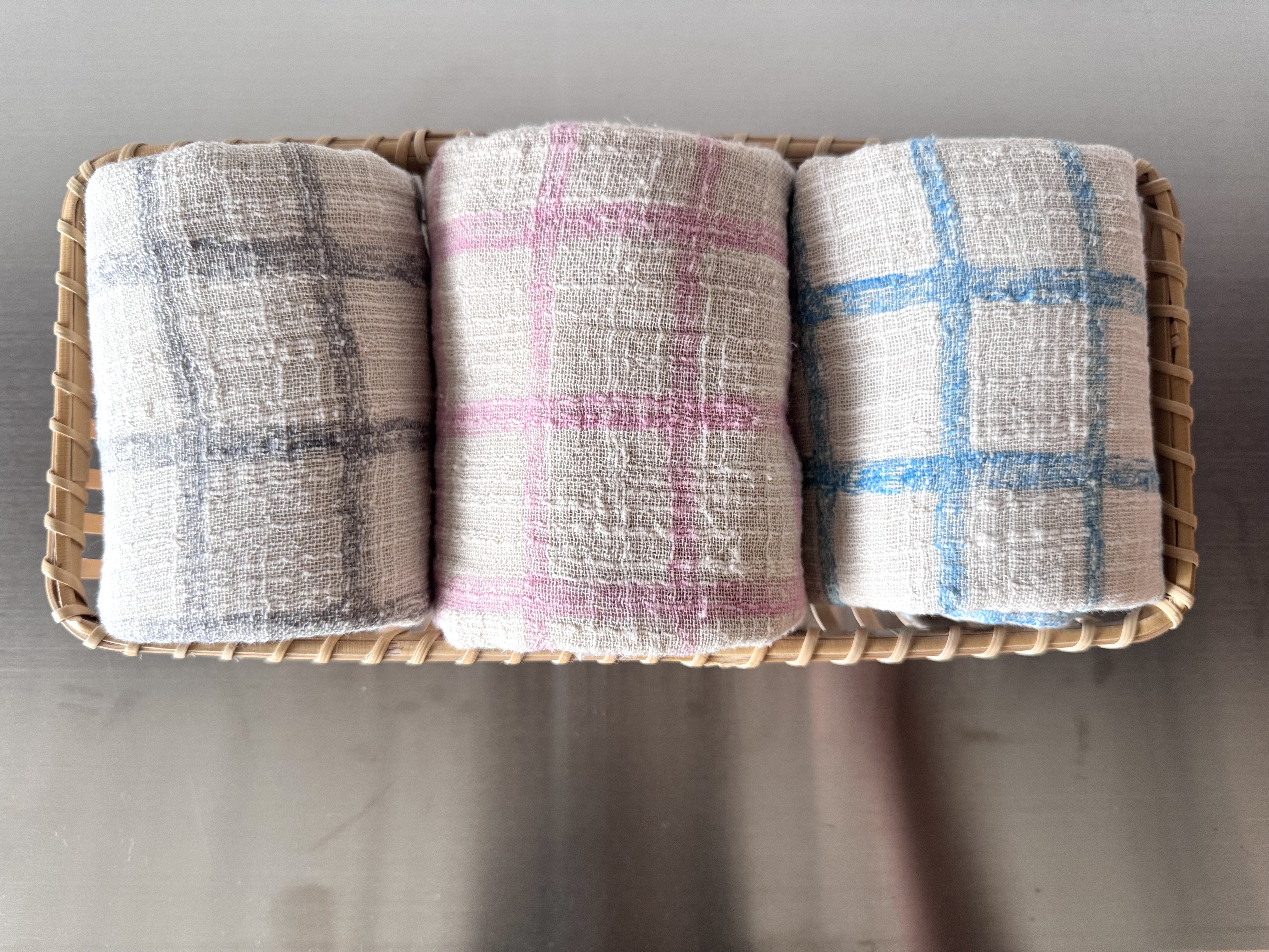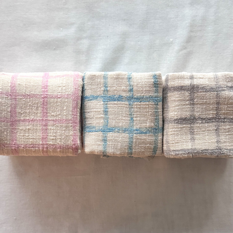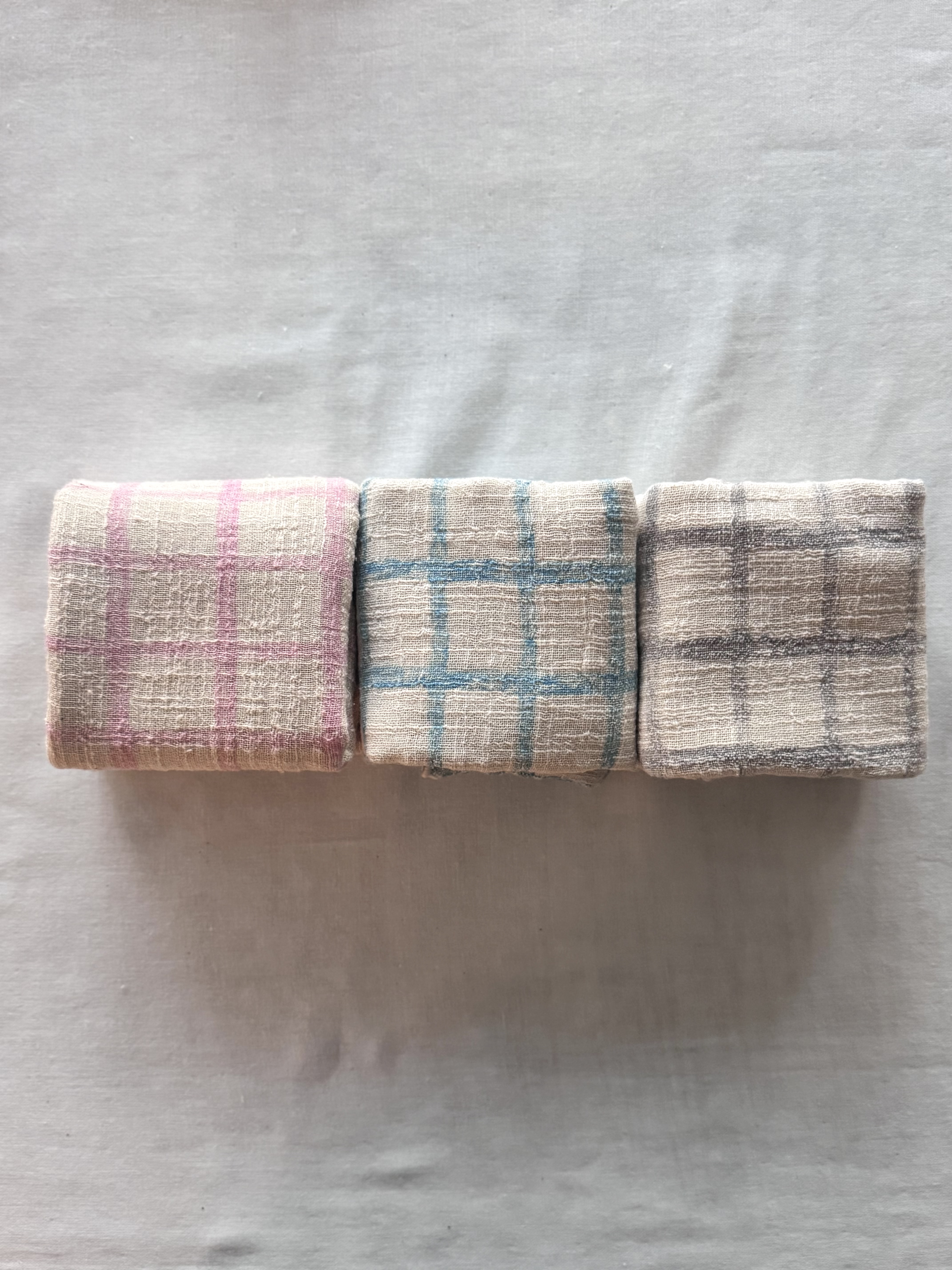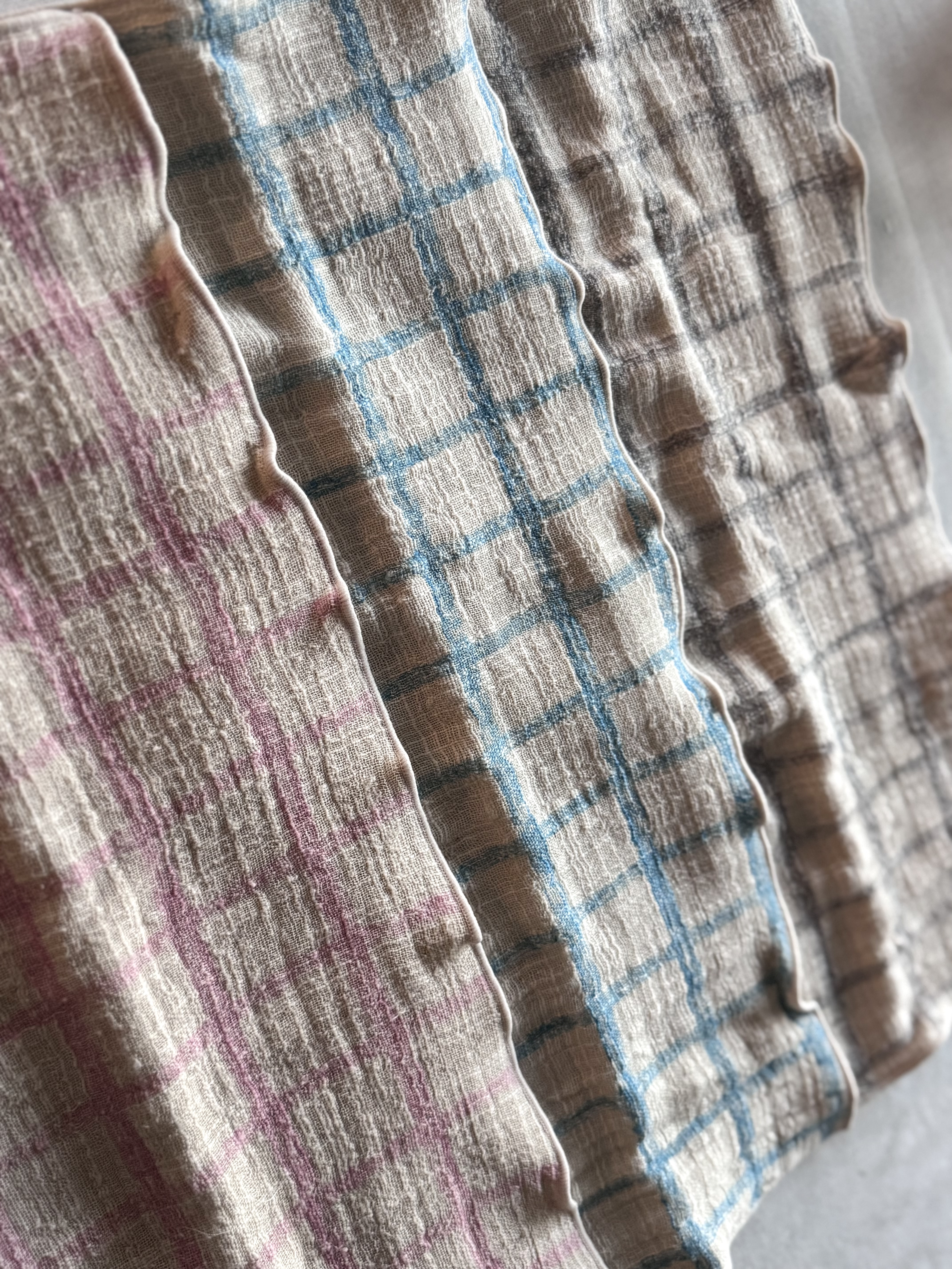 알록달록한 체크 3종류이며 인터록으로 마무리되어 꼬불거리는 천의 움직임에 귀여움 한스푼이 추가되었습니다.