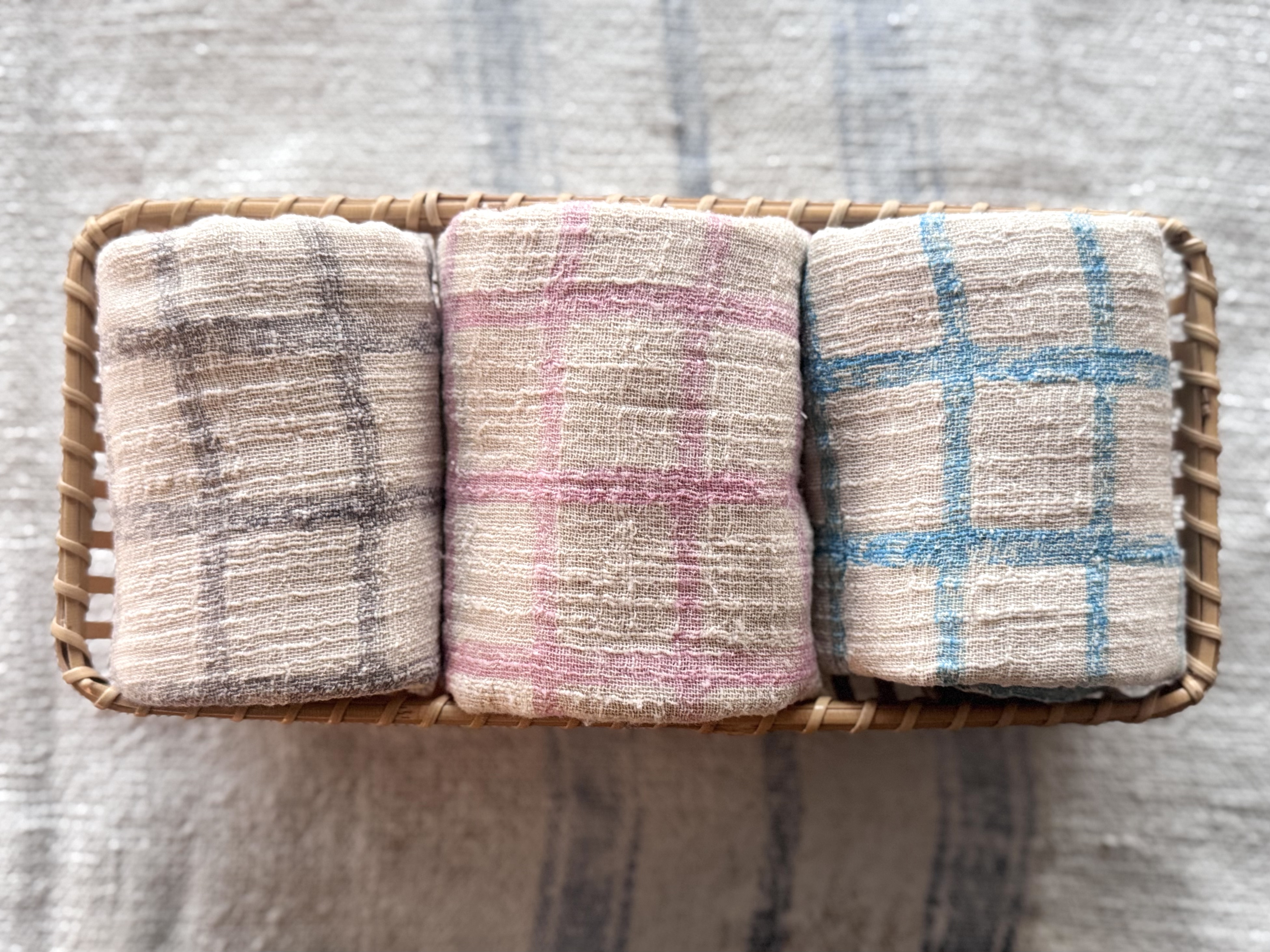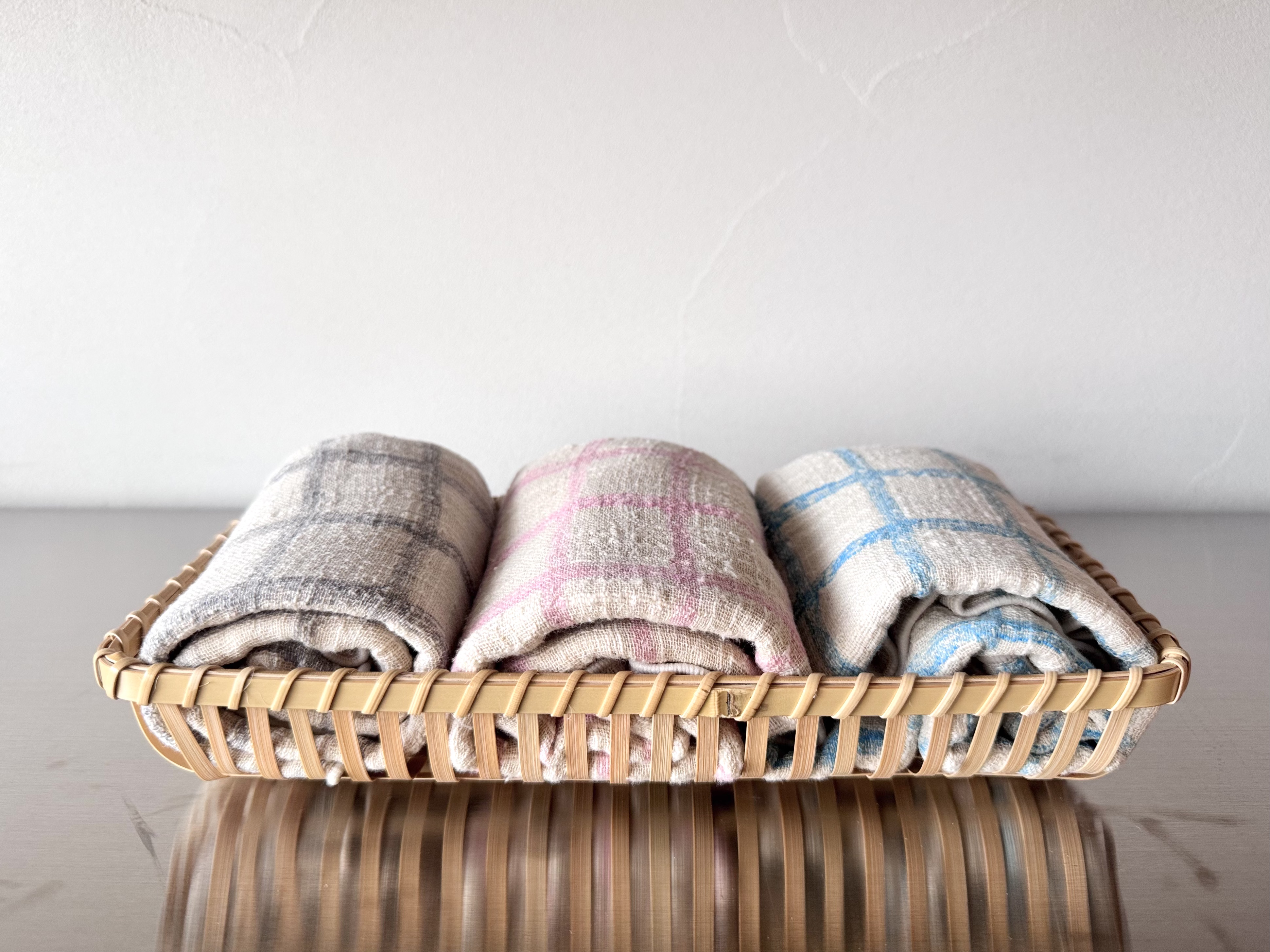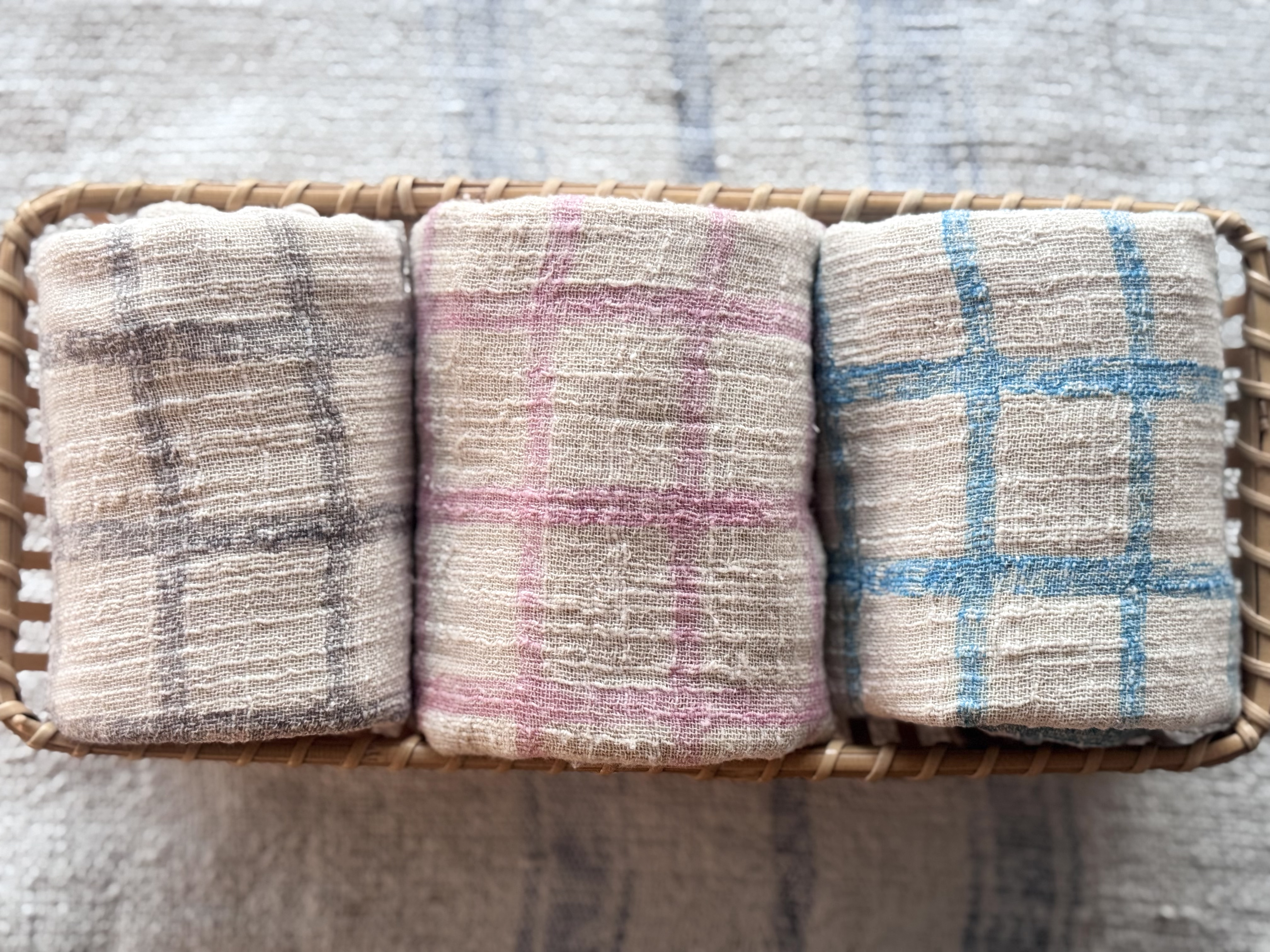 알록달록한 체크 3종류이며 인터록으로 마무리되어 꼬불거리는 천의 움직임에 귀여움 한스푼이 추가되었습니다.
