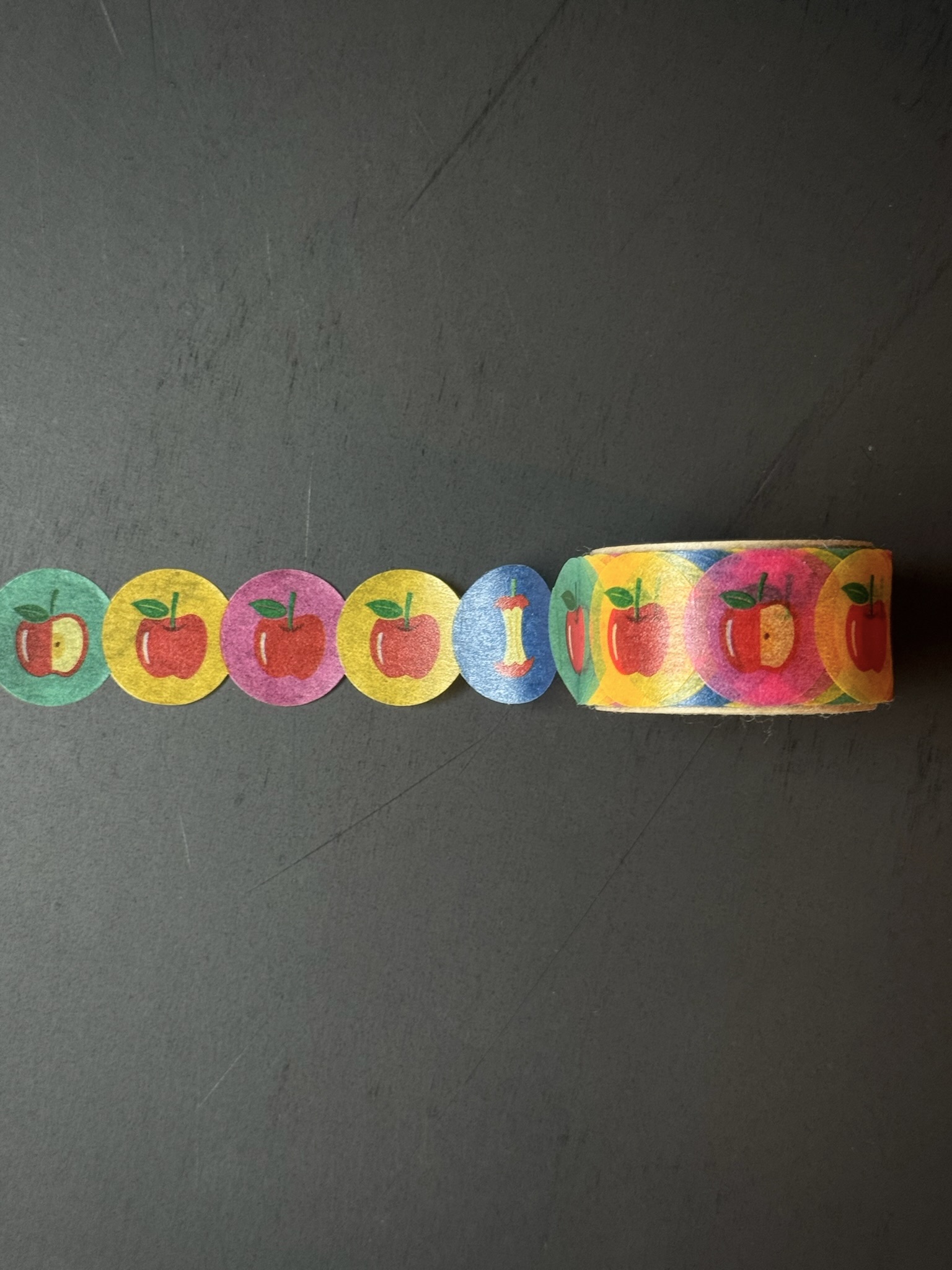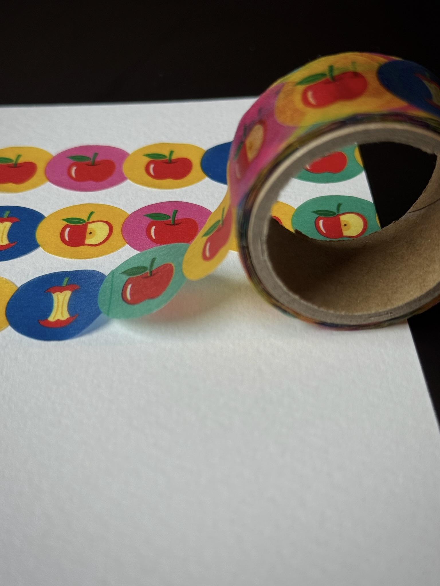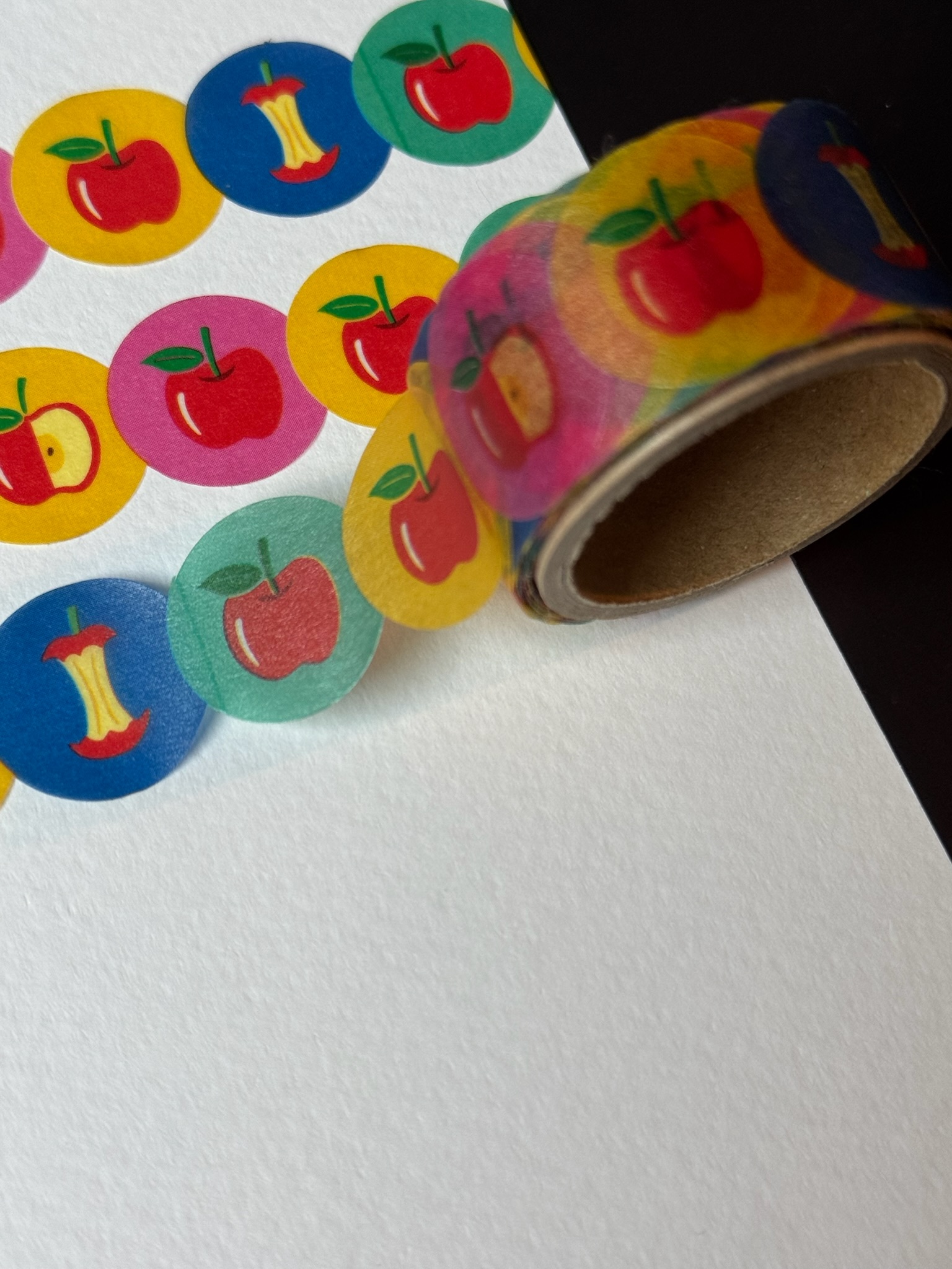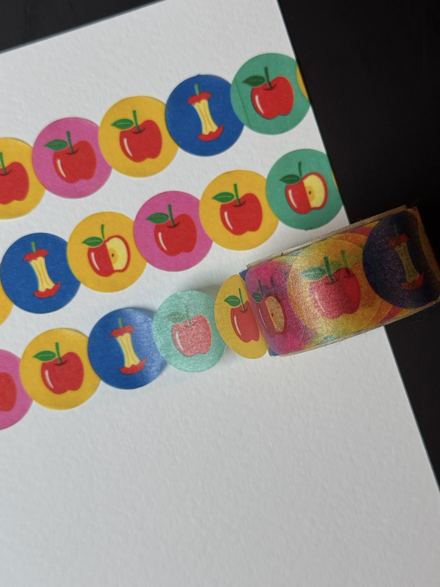 알록달록한 빨간 사과가 그려진 종이 마스킹 테이프입니다.