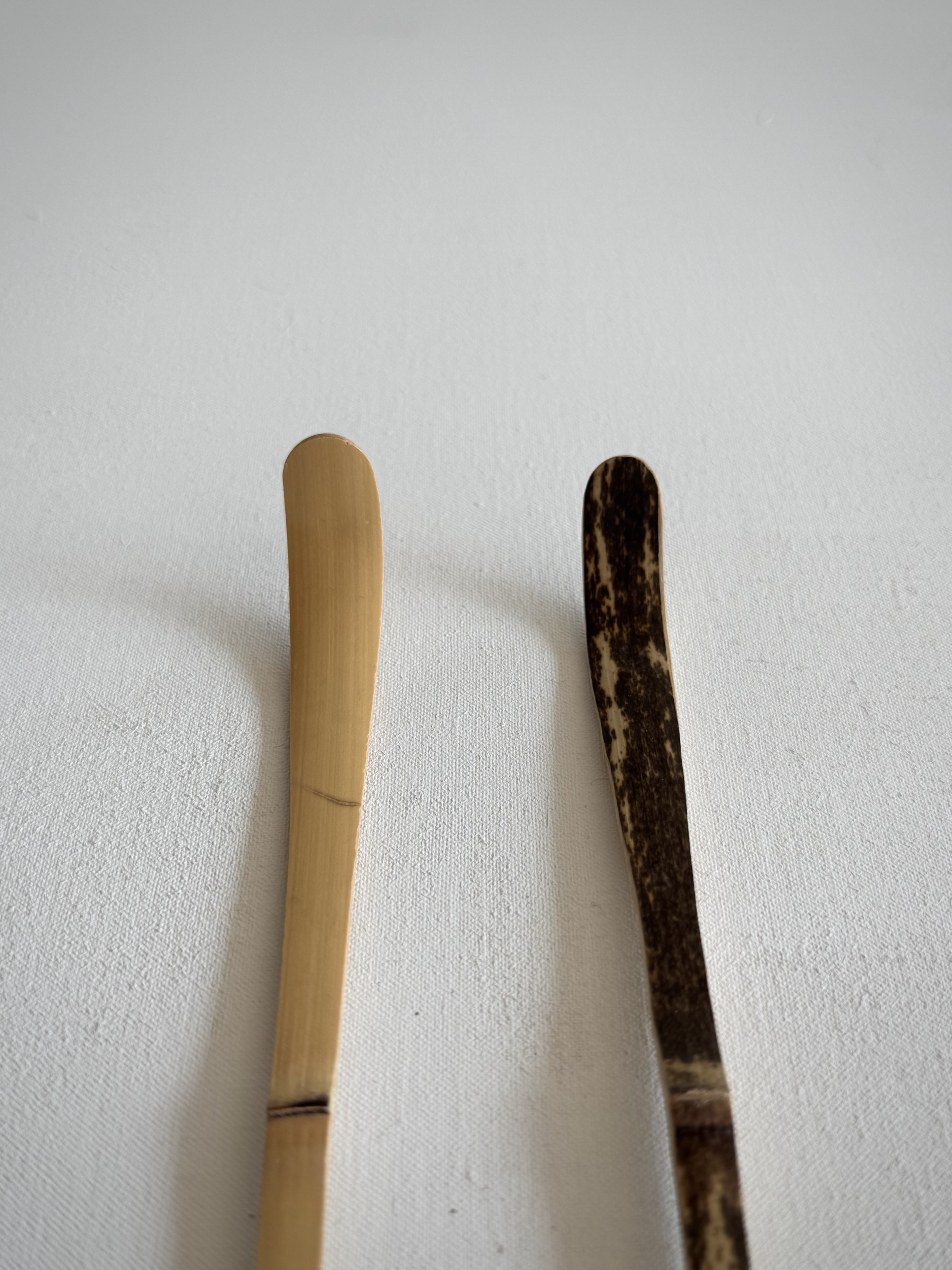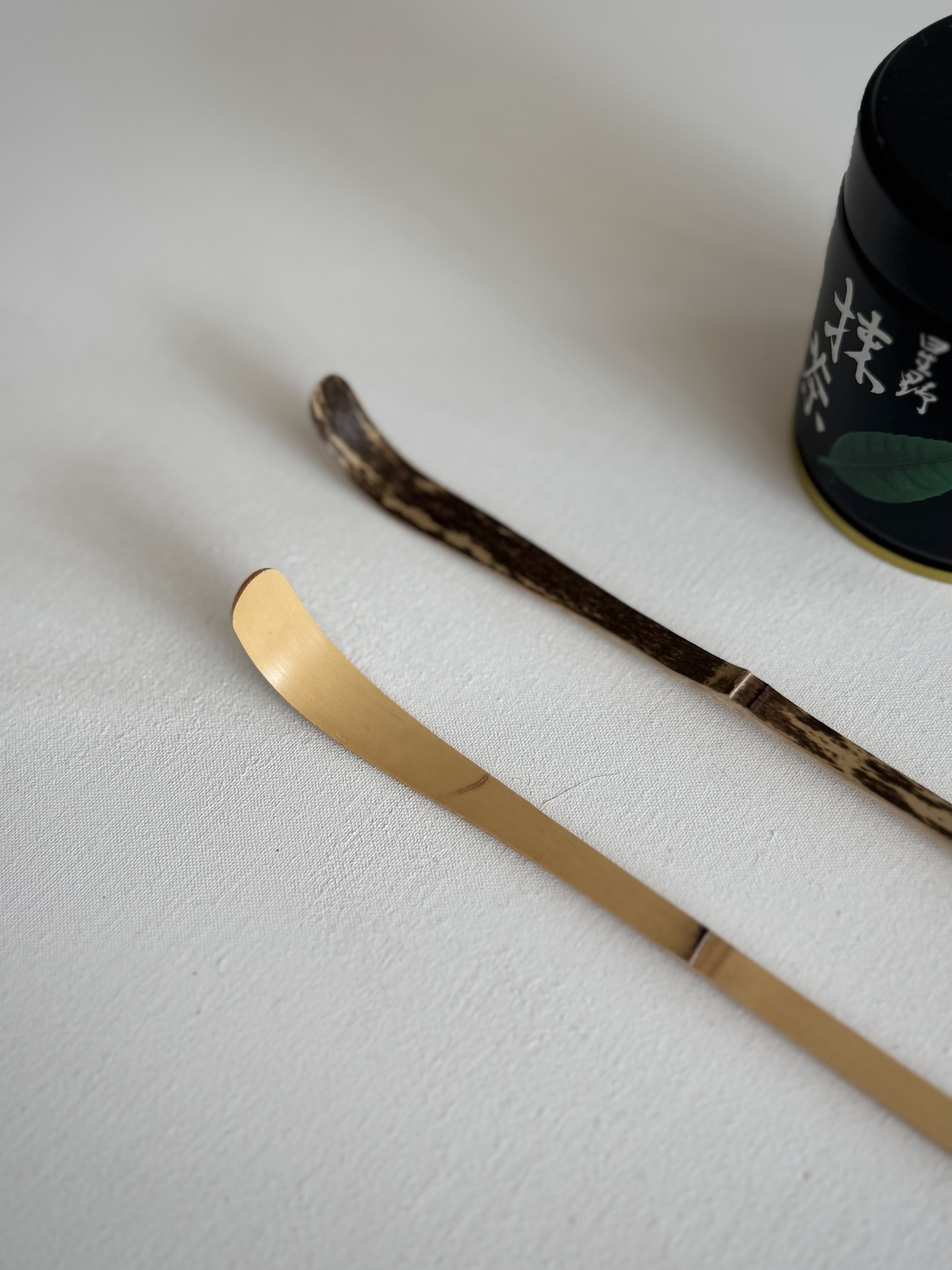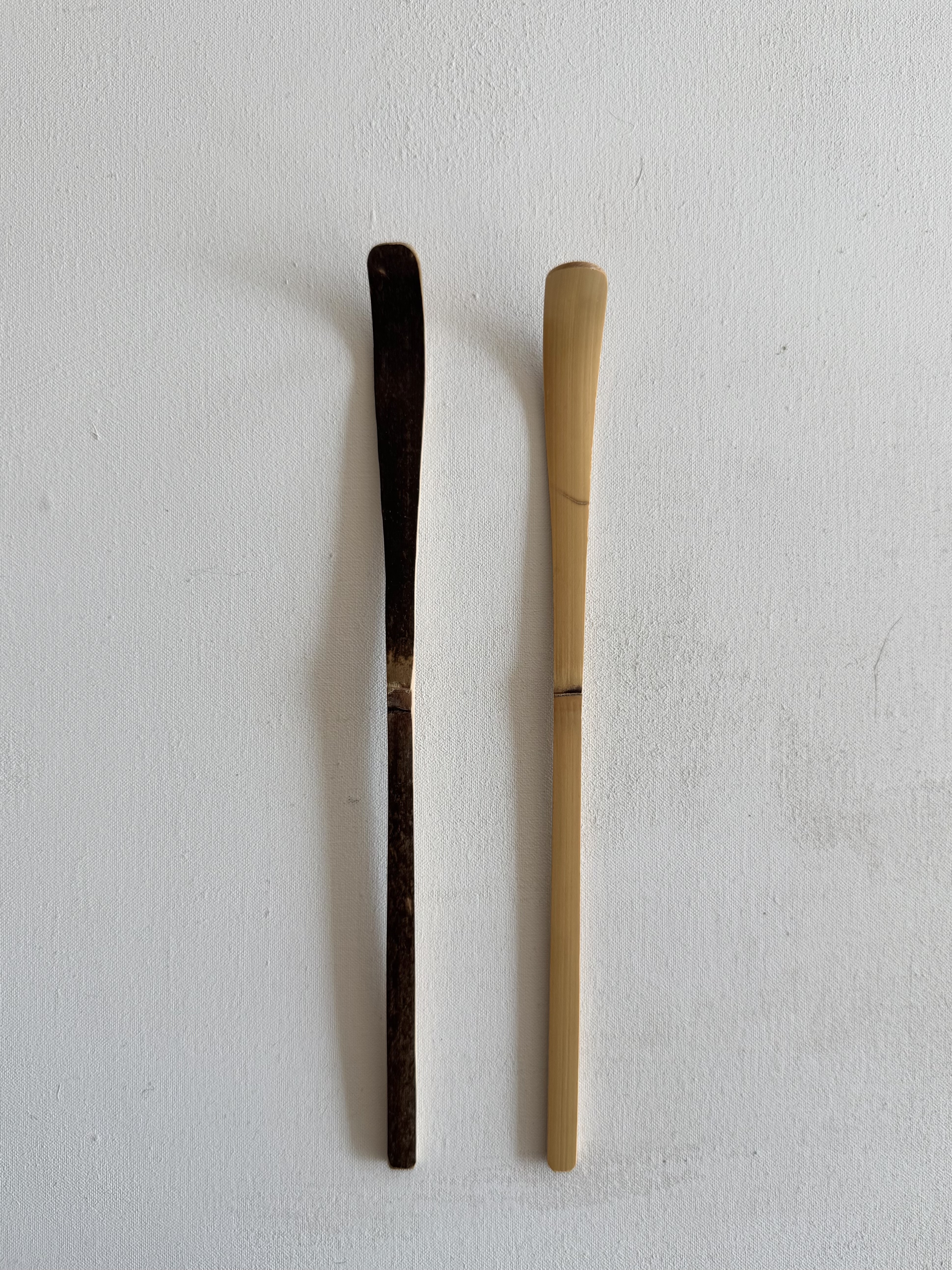 대나무로 제작된 차시로 말차가루, 찻잎을 덜어낼때 사용하는 용도입니다.