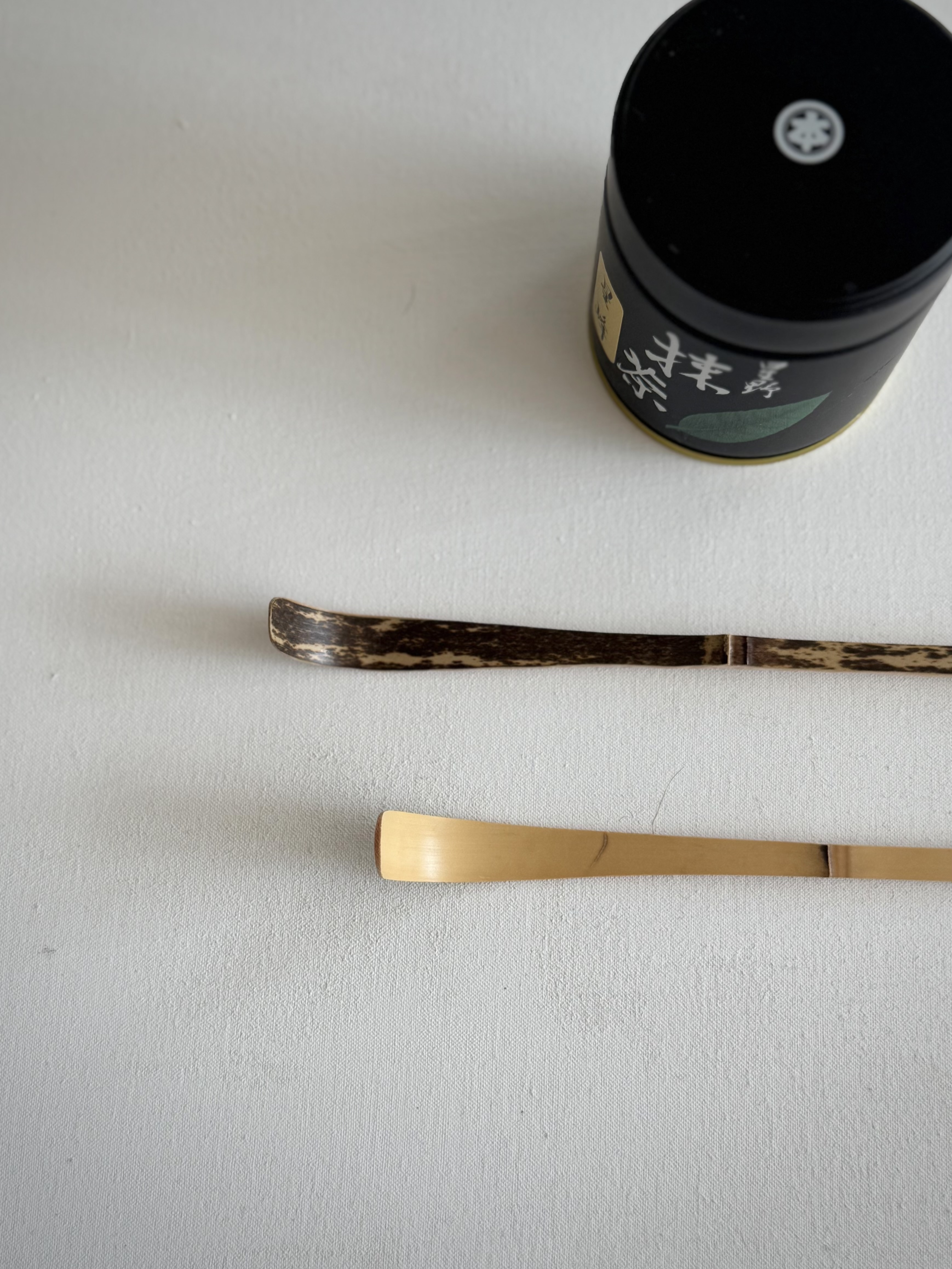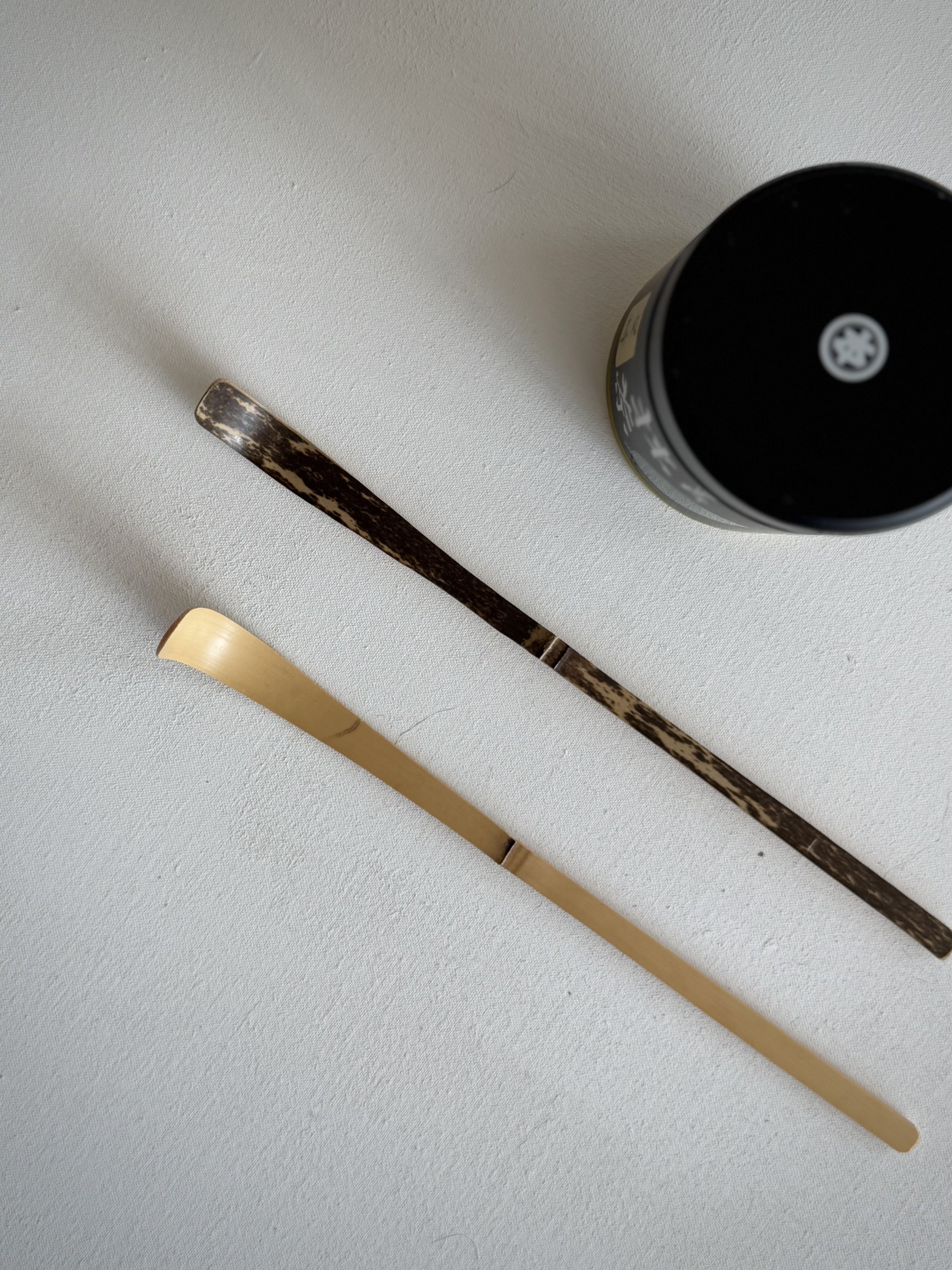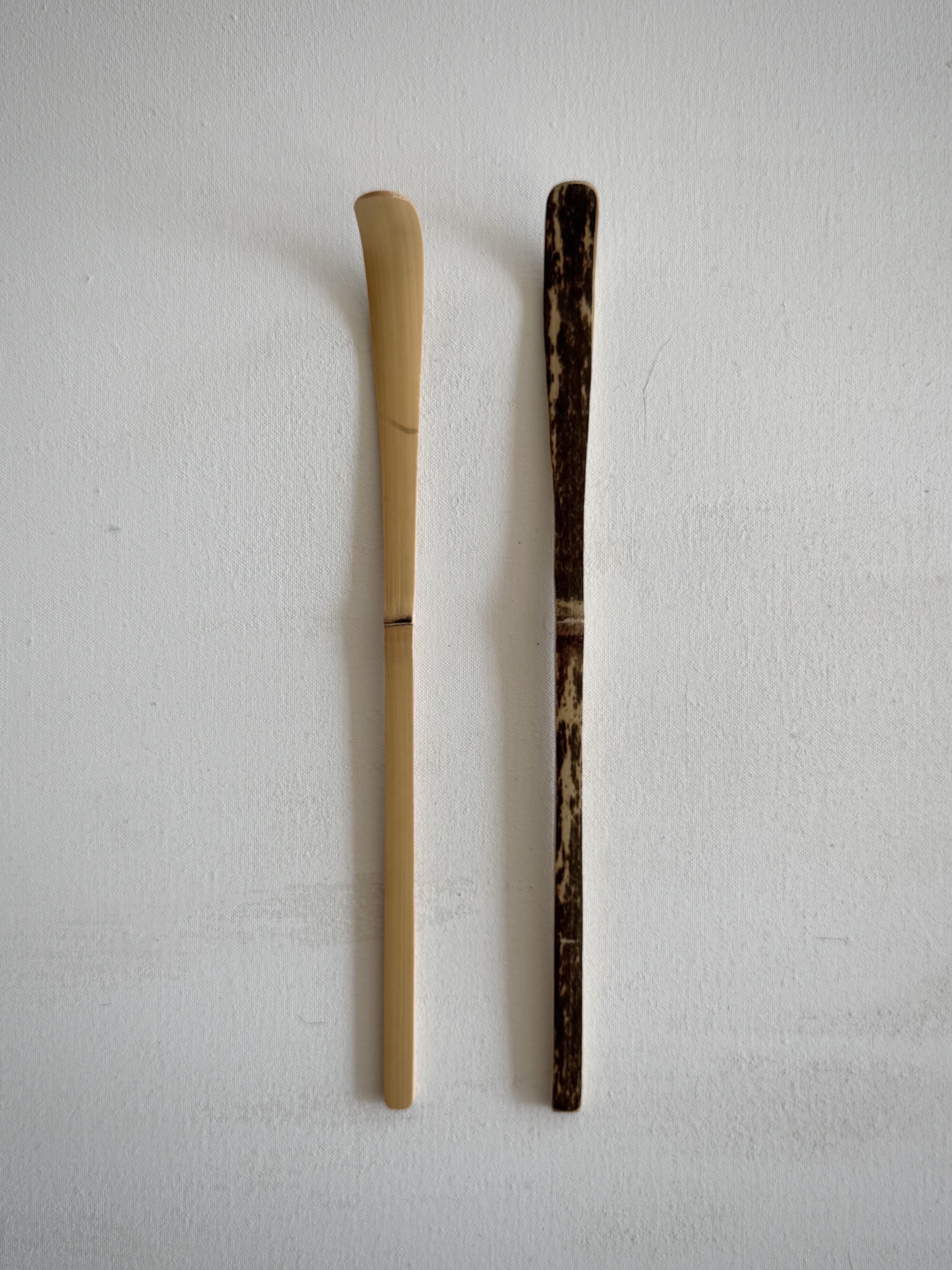 대나무로 제작된 차시로 말차가루, 찻잎을 덜어낼때 사용하는 용도입니다.