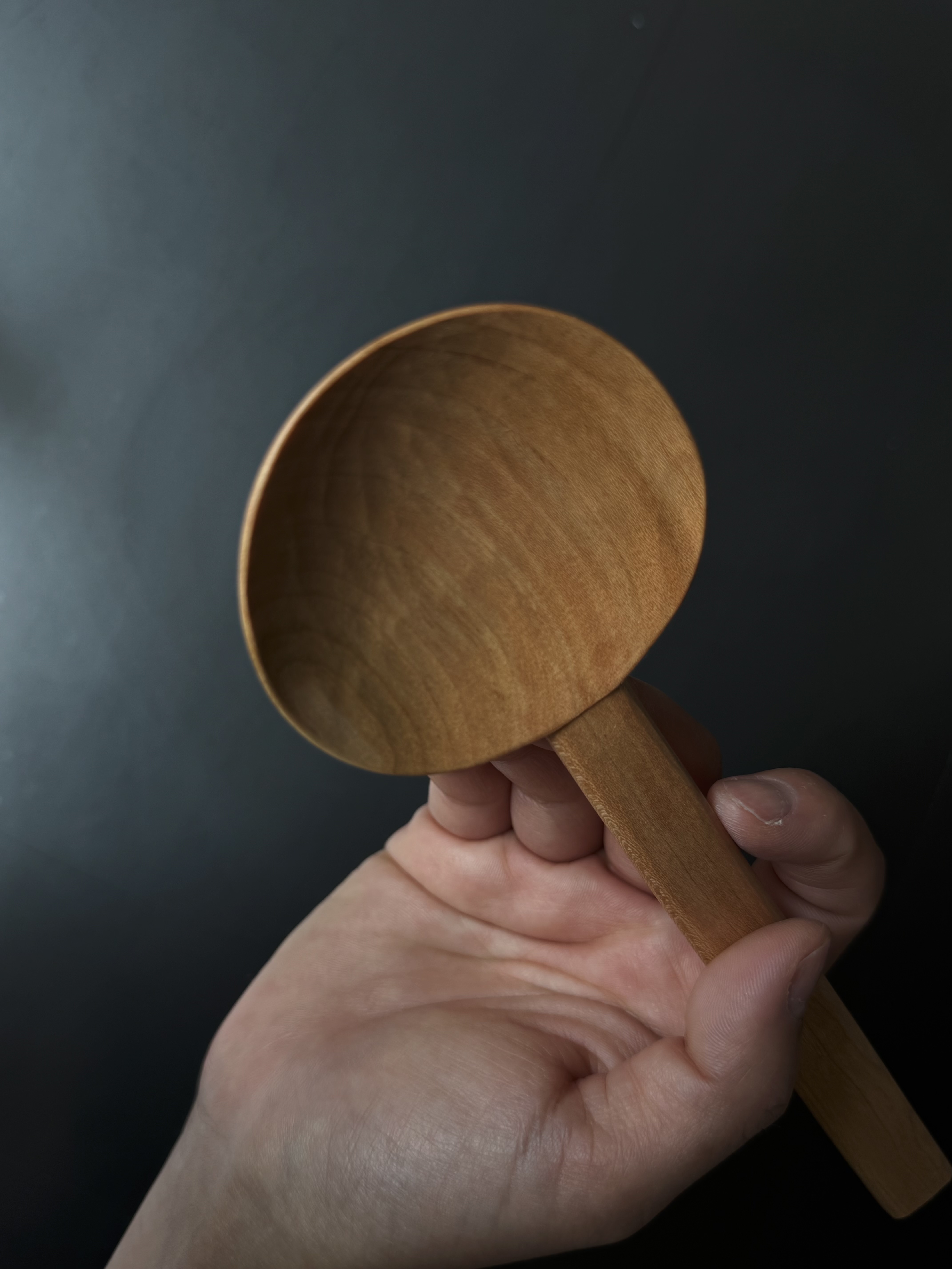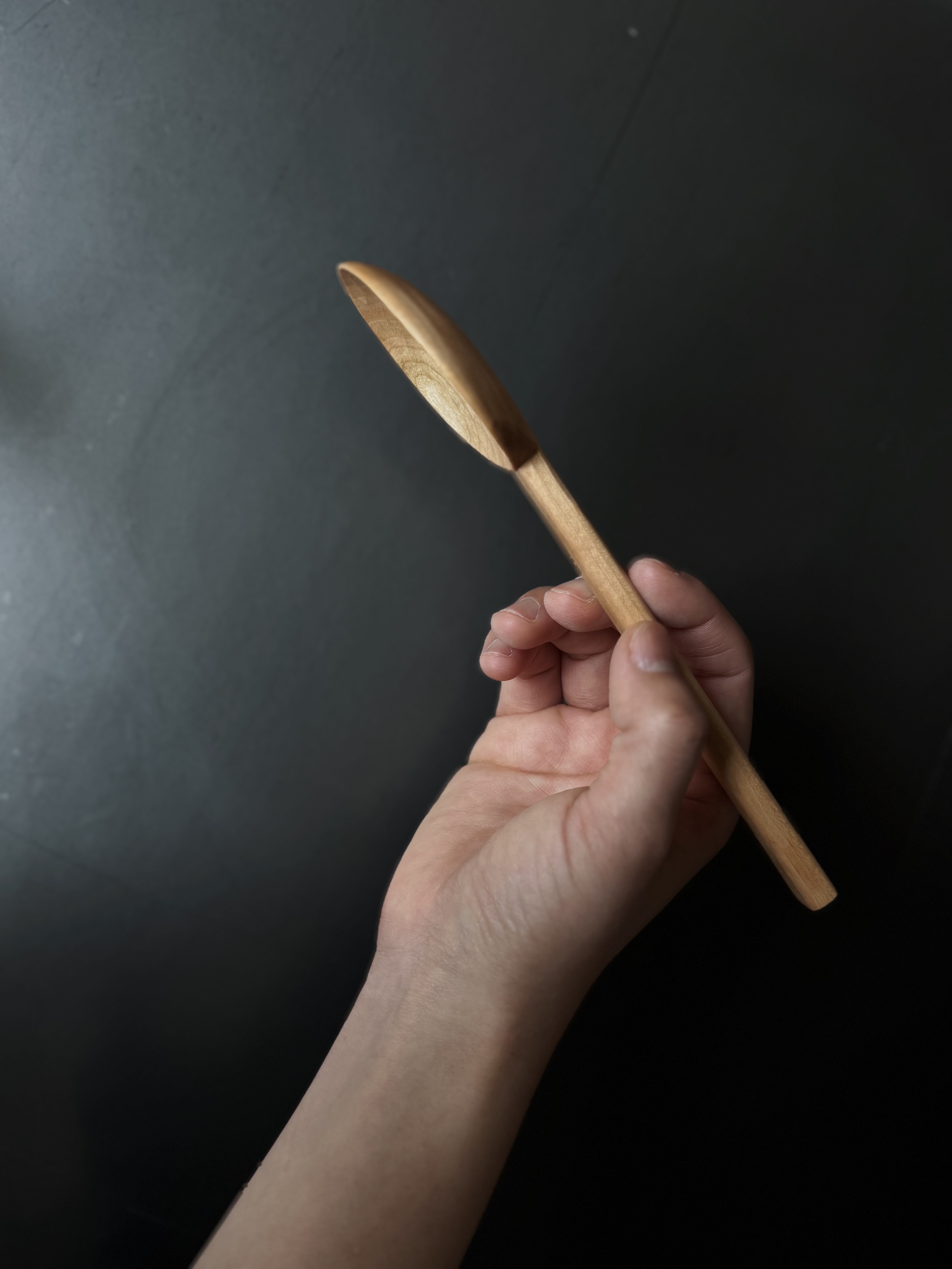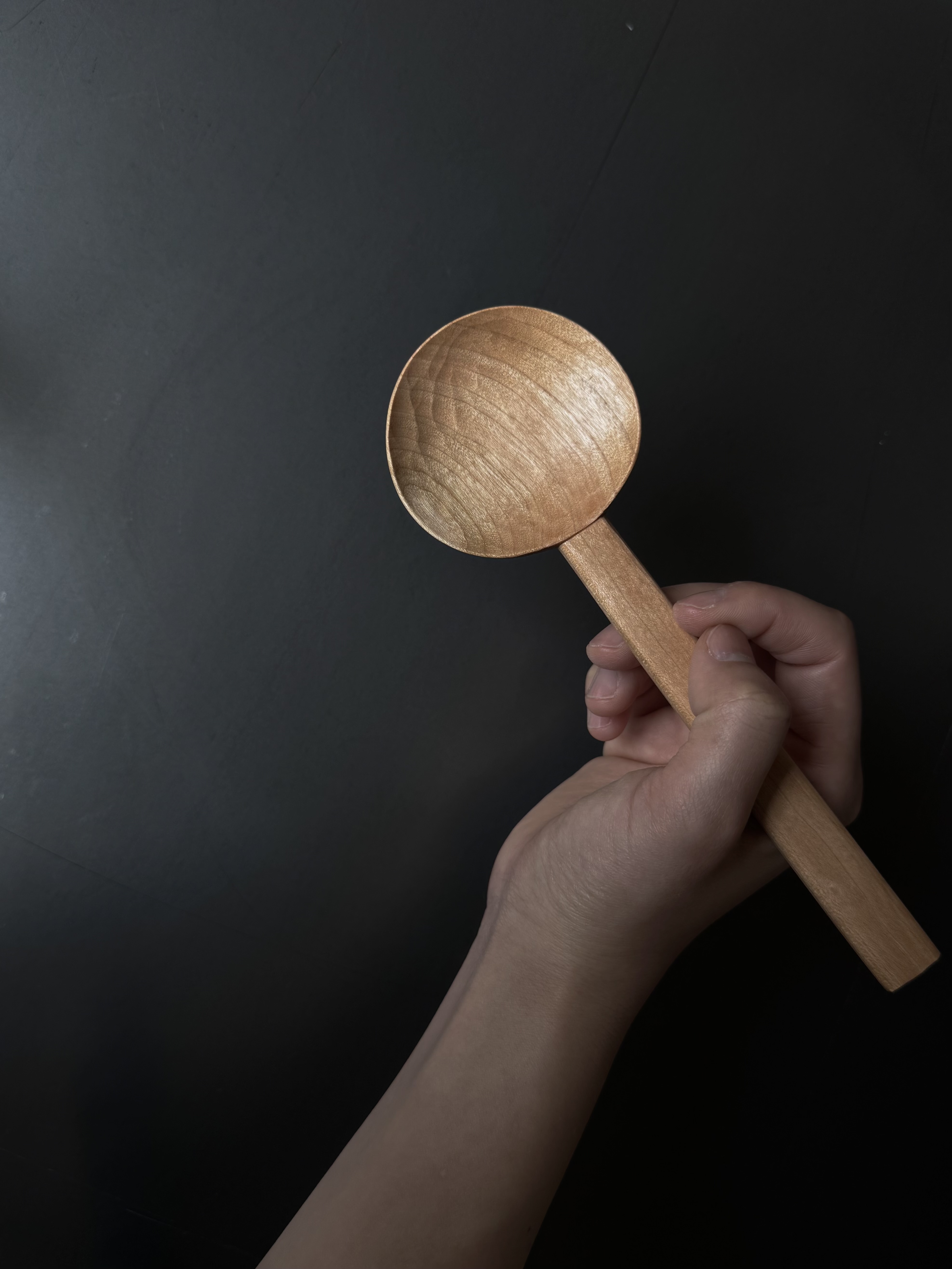 작품에 자연스럽게 칼로 깎은 나무질감을 관찰하는 재미가 있고, 손잡이를 쥐었을때 적당한 두께감이 편안함이 있습니다.