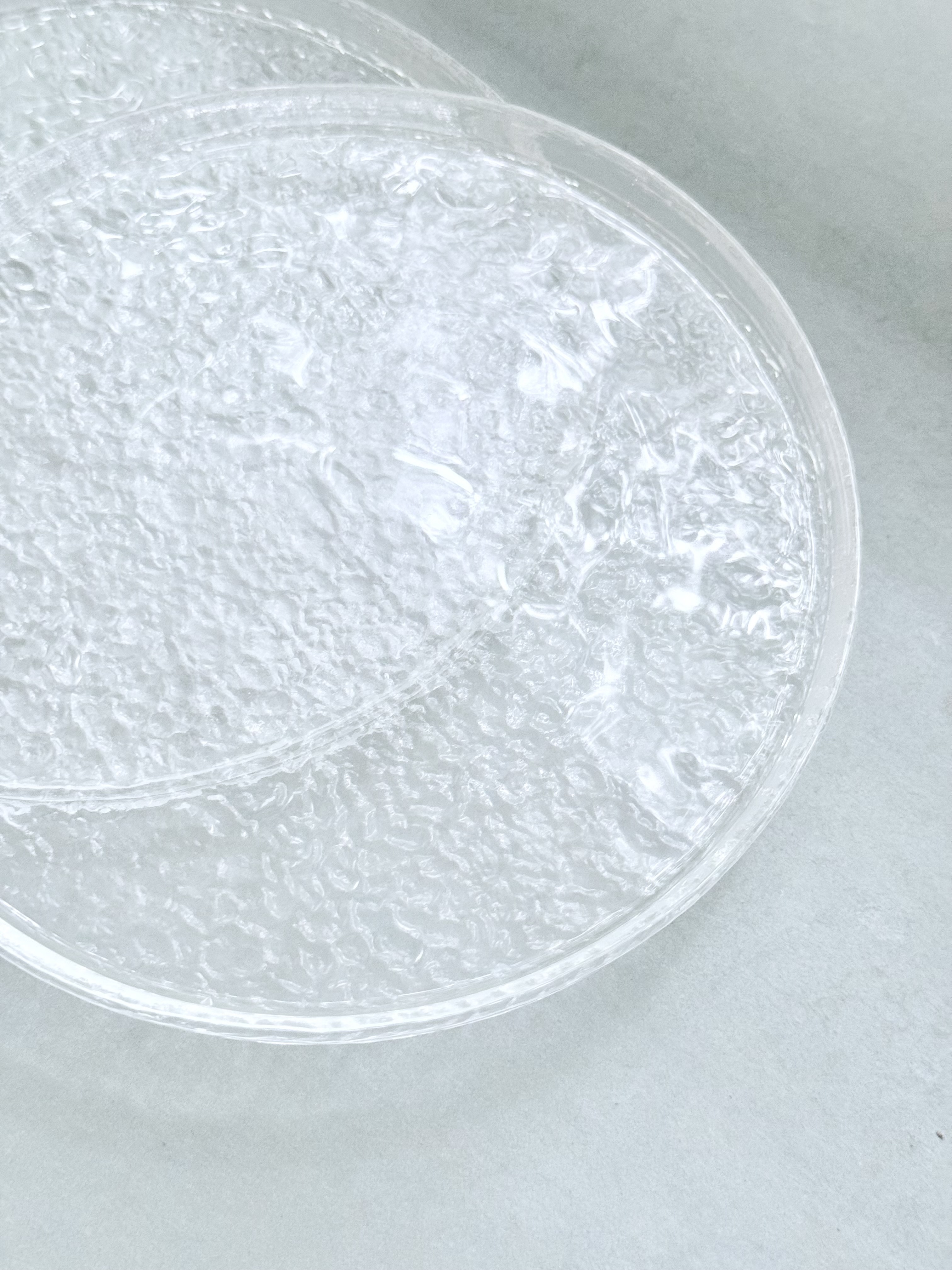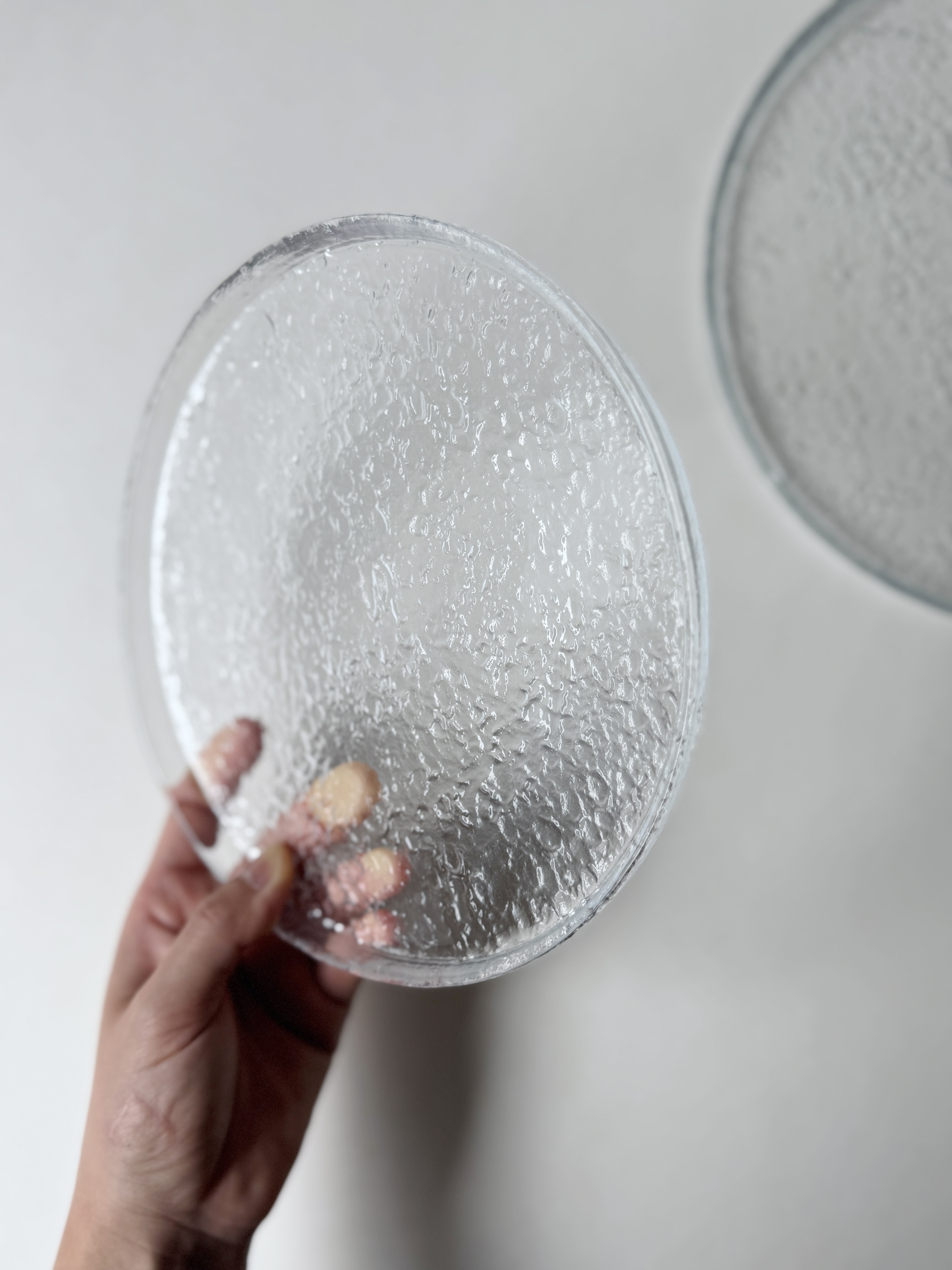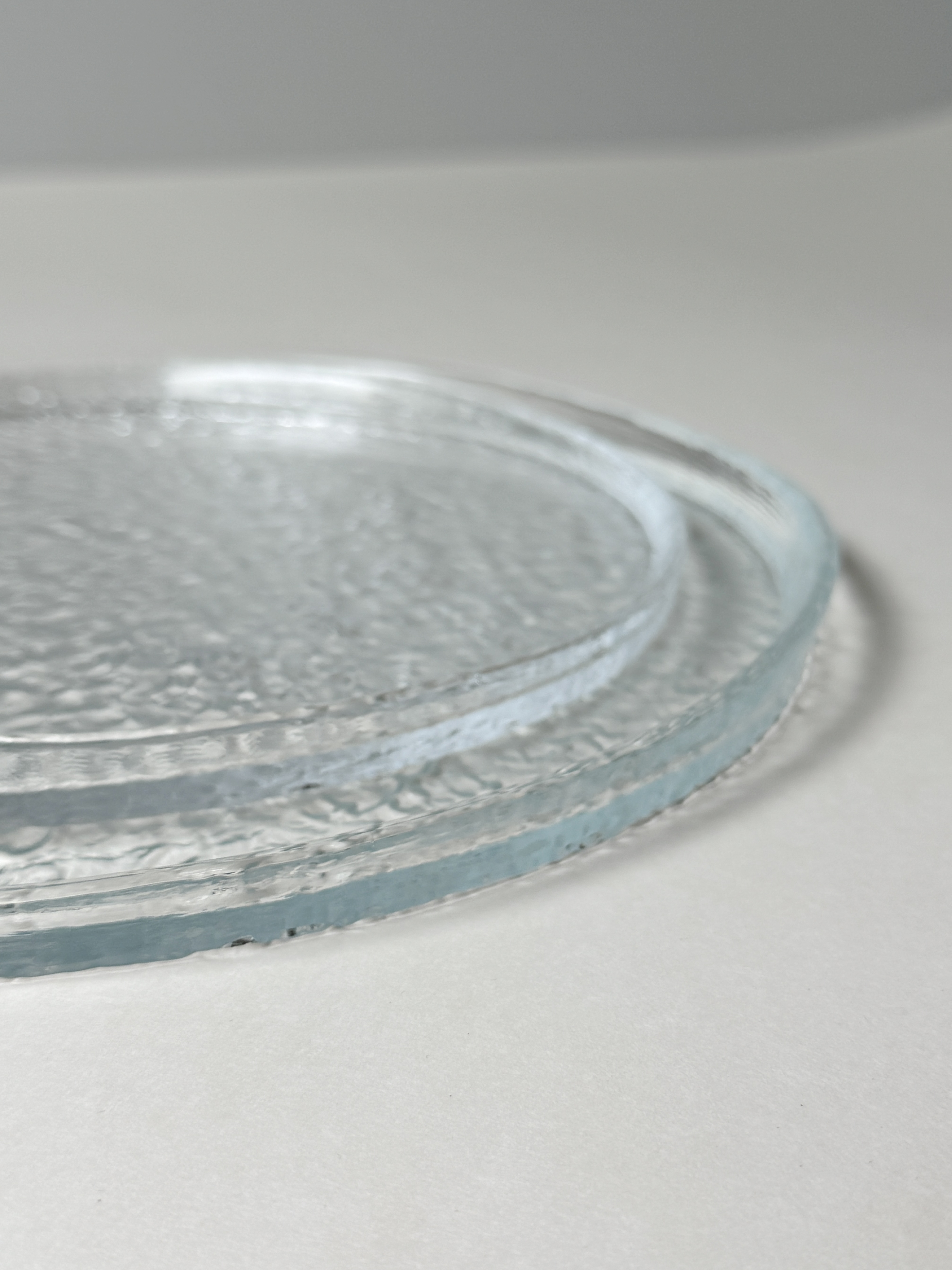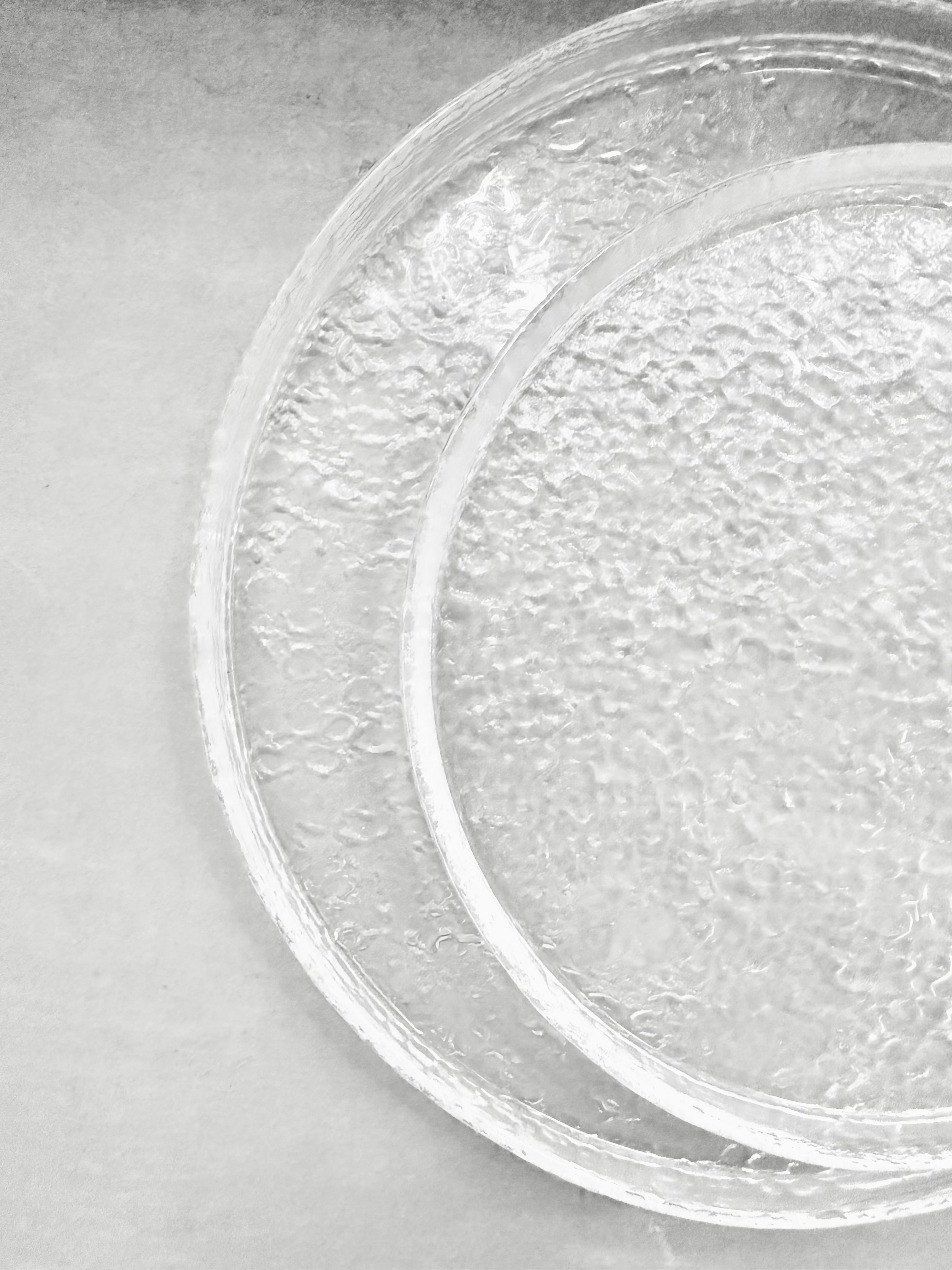 동그란 형태와 낮은 높이로 깔끔한 디자인과 유리 소재가 주는 깨끗한 분위기로 손이 자주가는 접시입니다. 간단한 안주, 과일, 디저트, 치즈등 음식을 두었을때 근사한 음식으로 만들어주어 식탁에서의 즐거움이 가득해집니다.