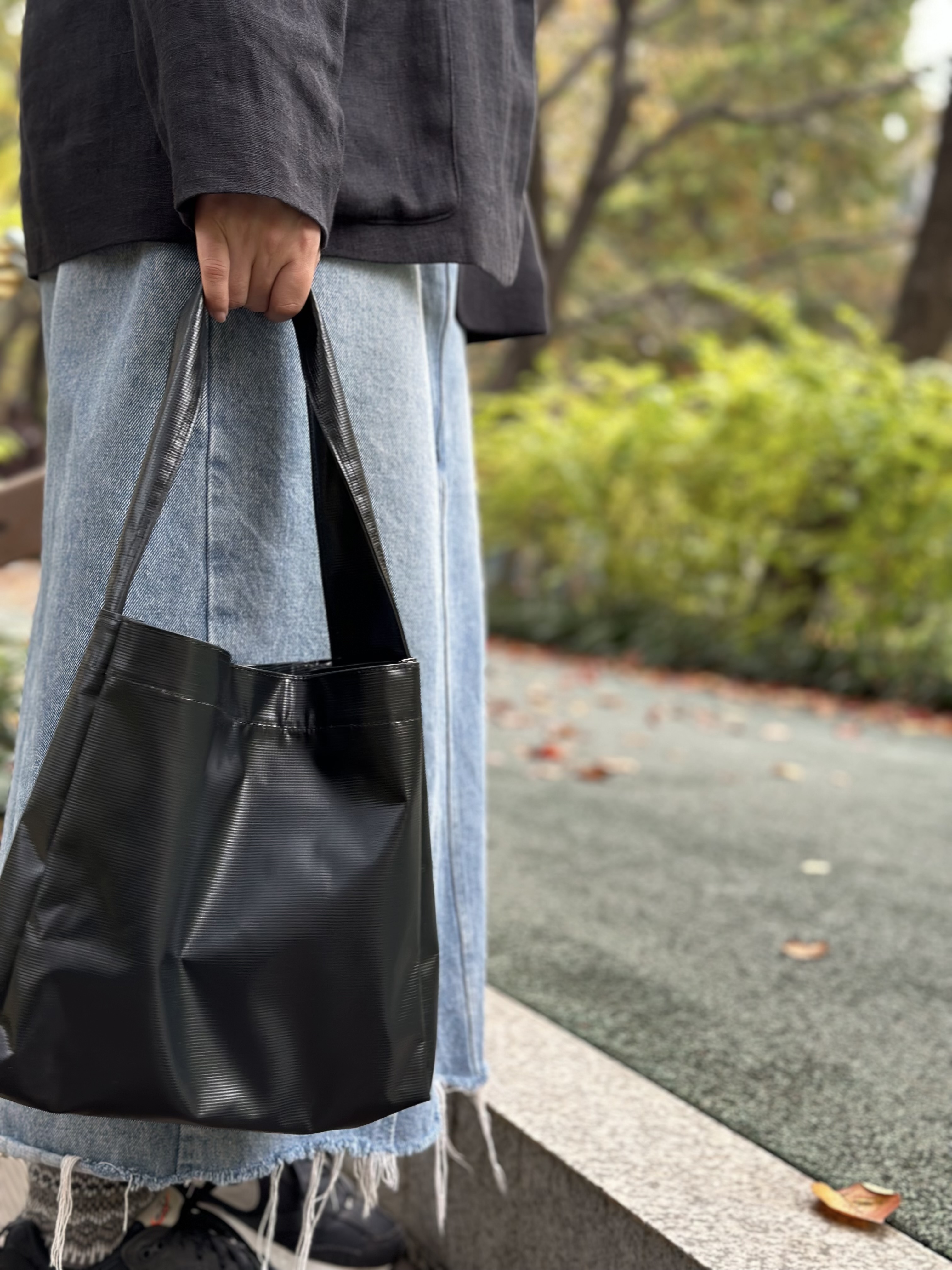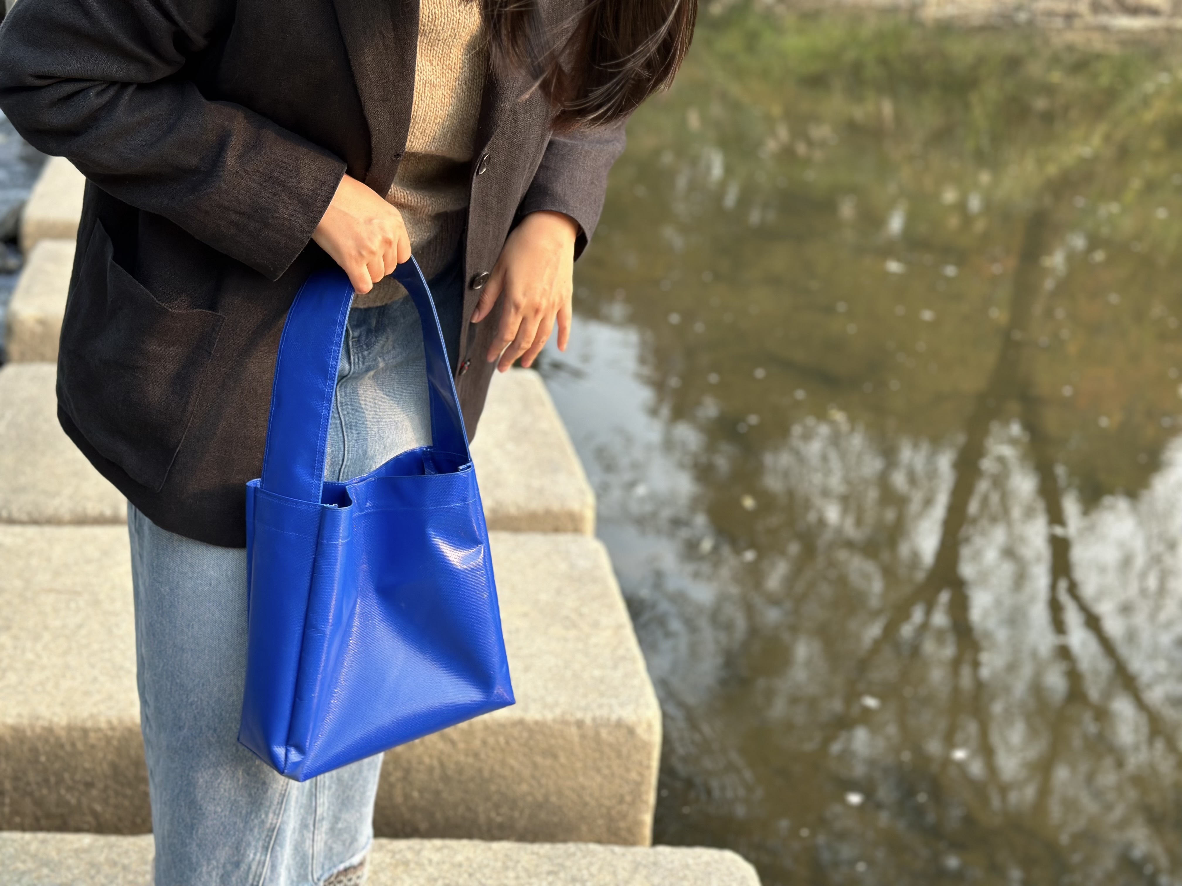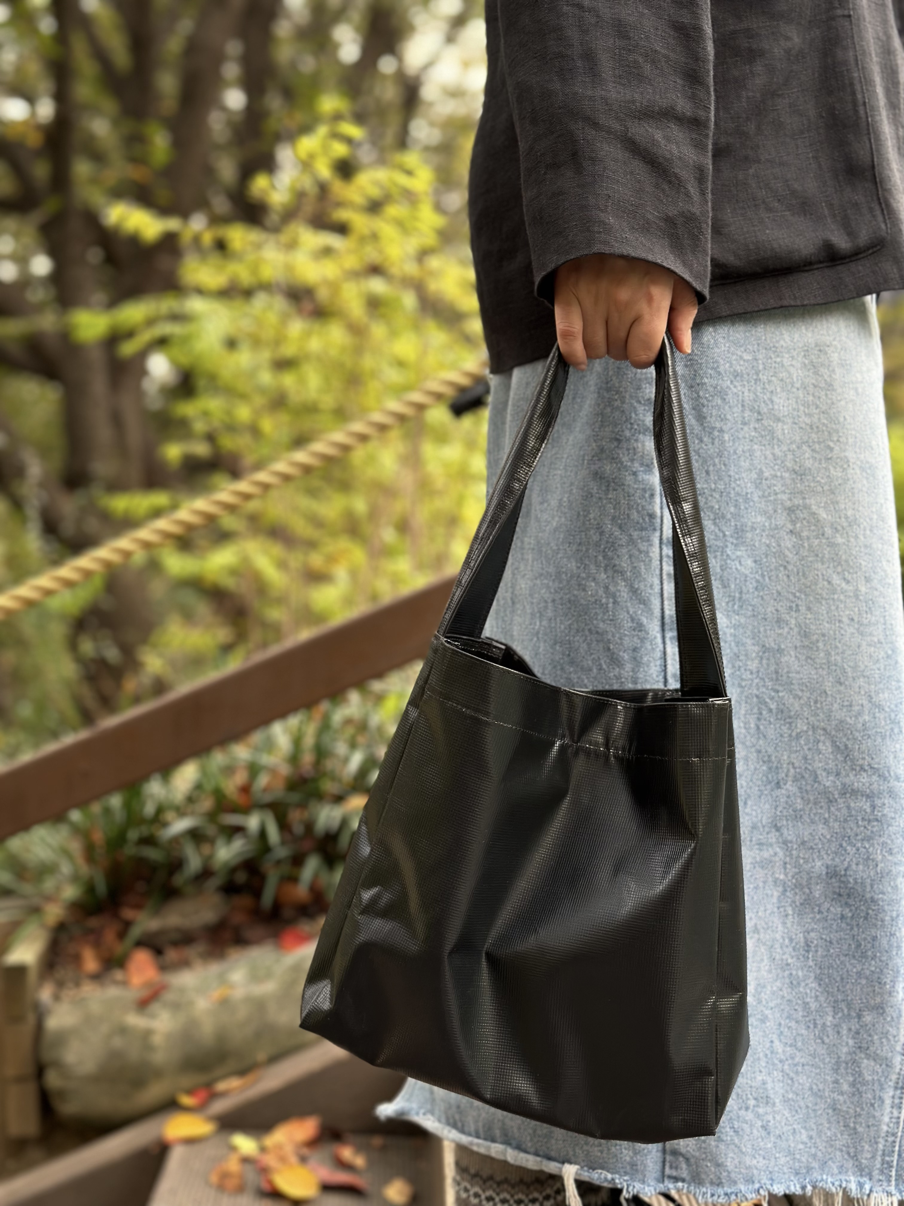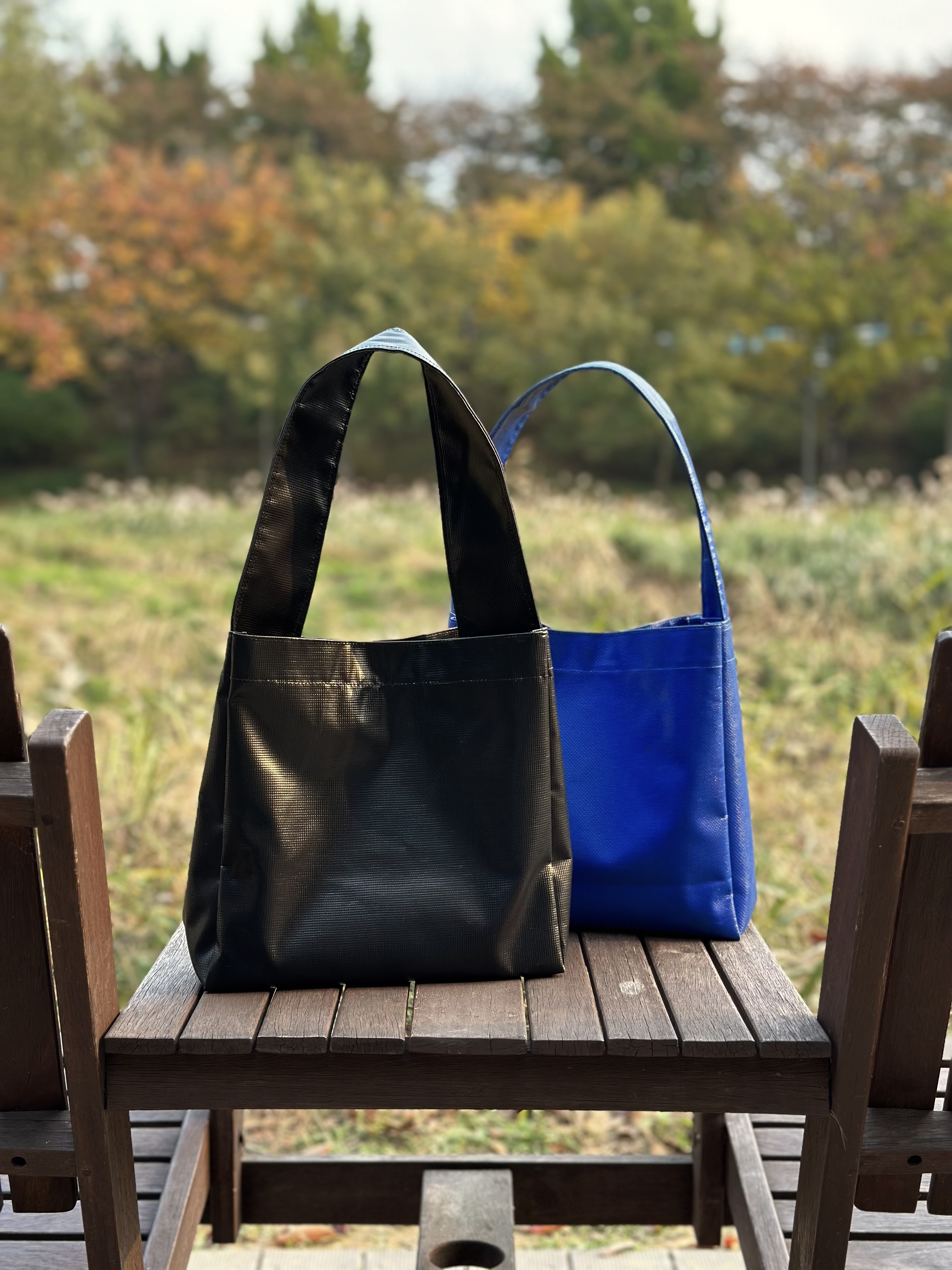늬은 제작 타포린 소재의 스퀘어백입니다.