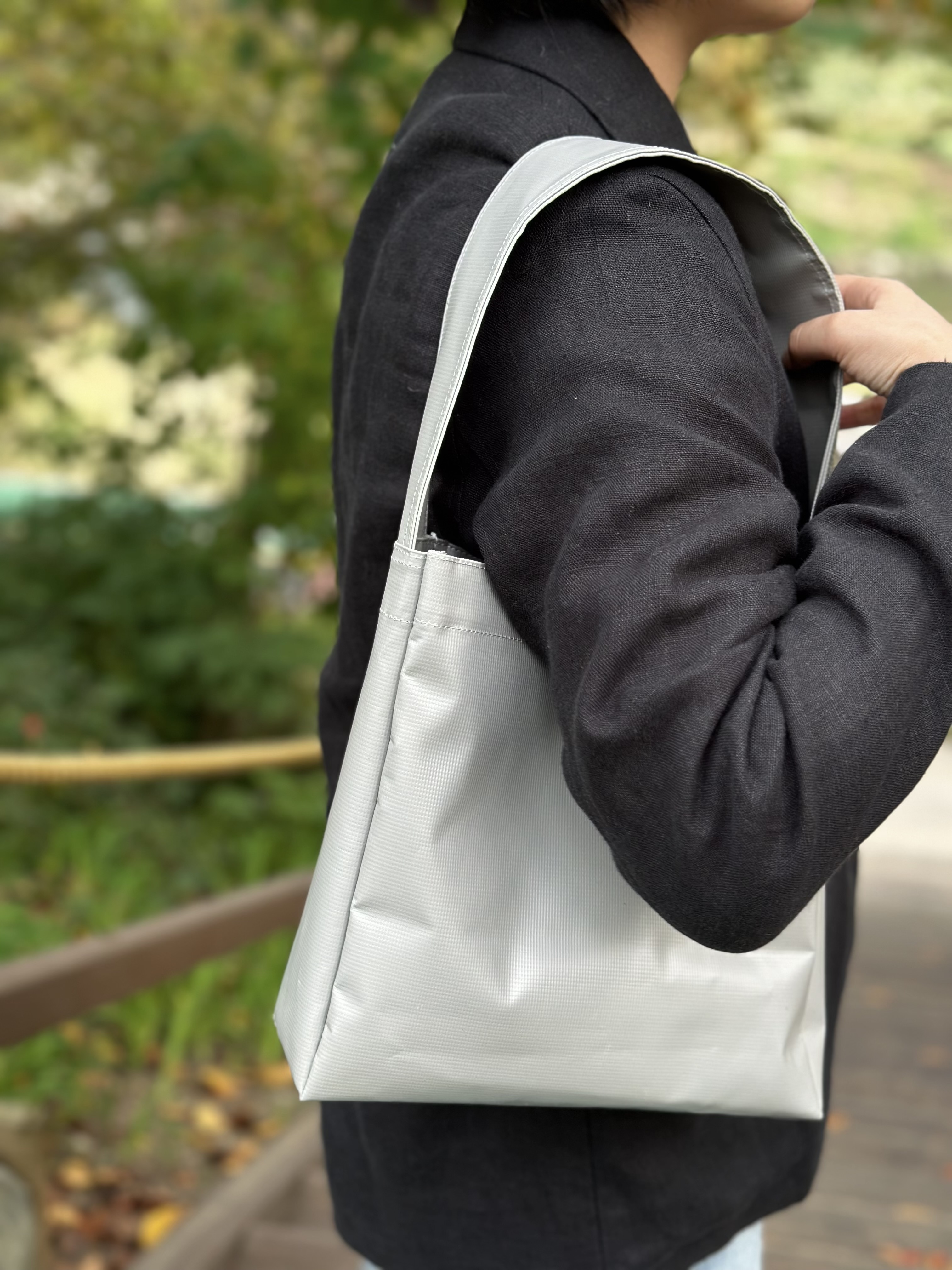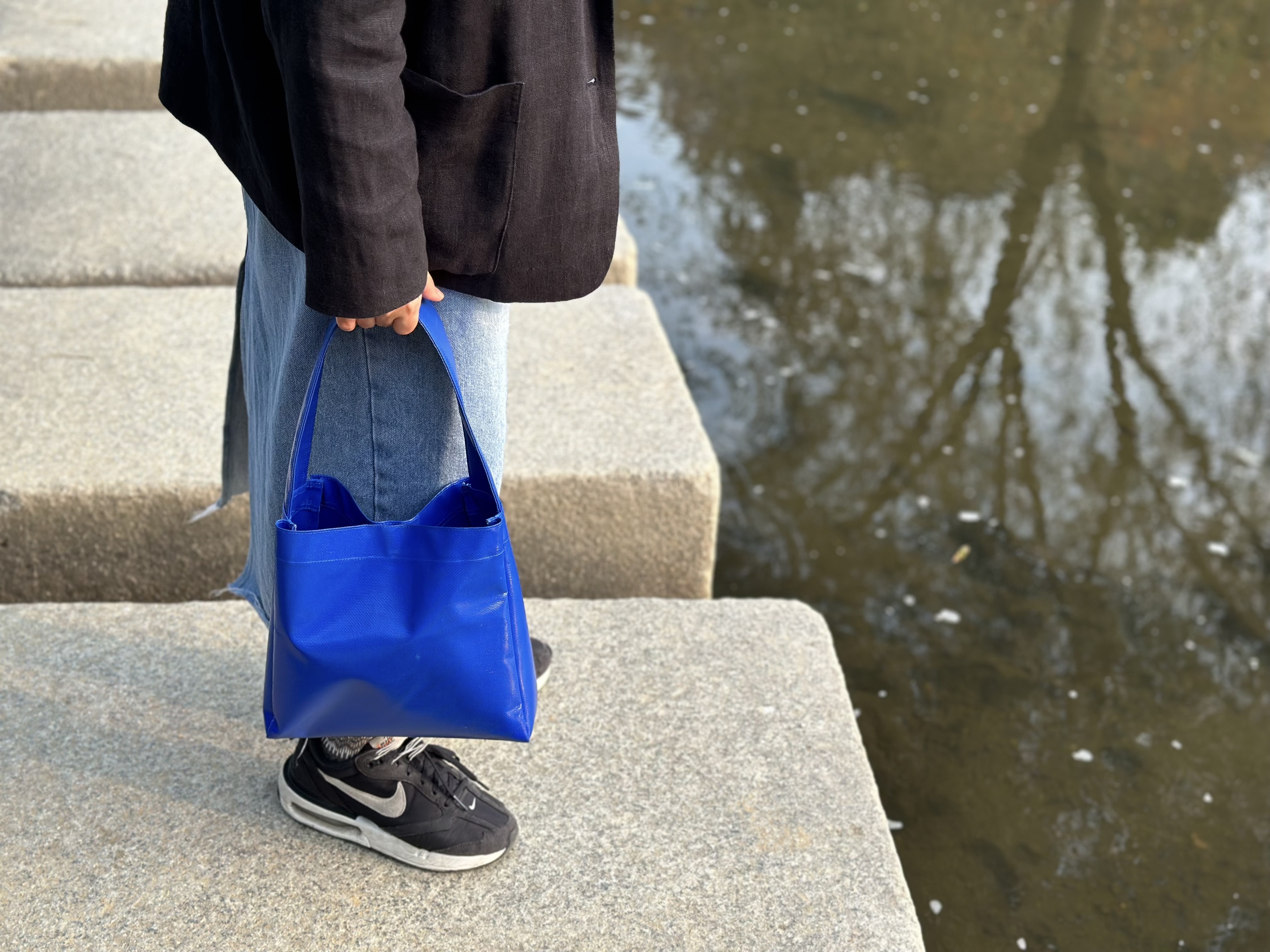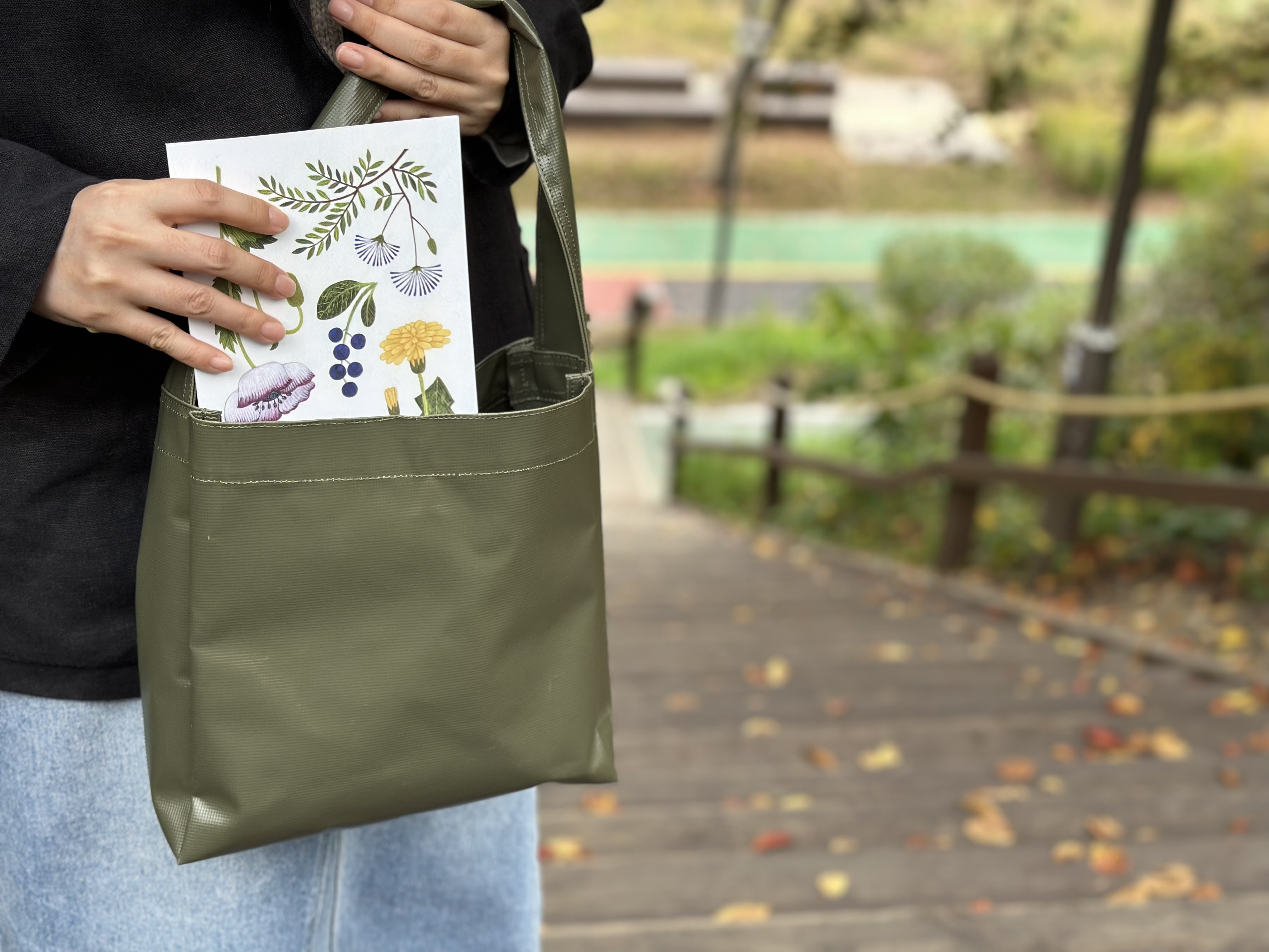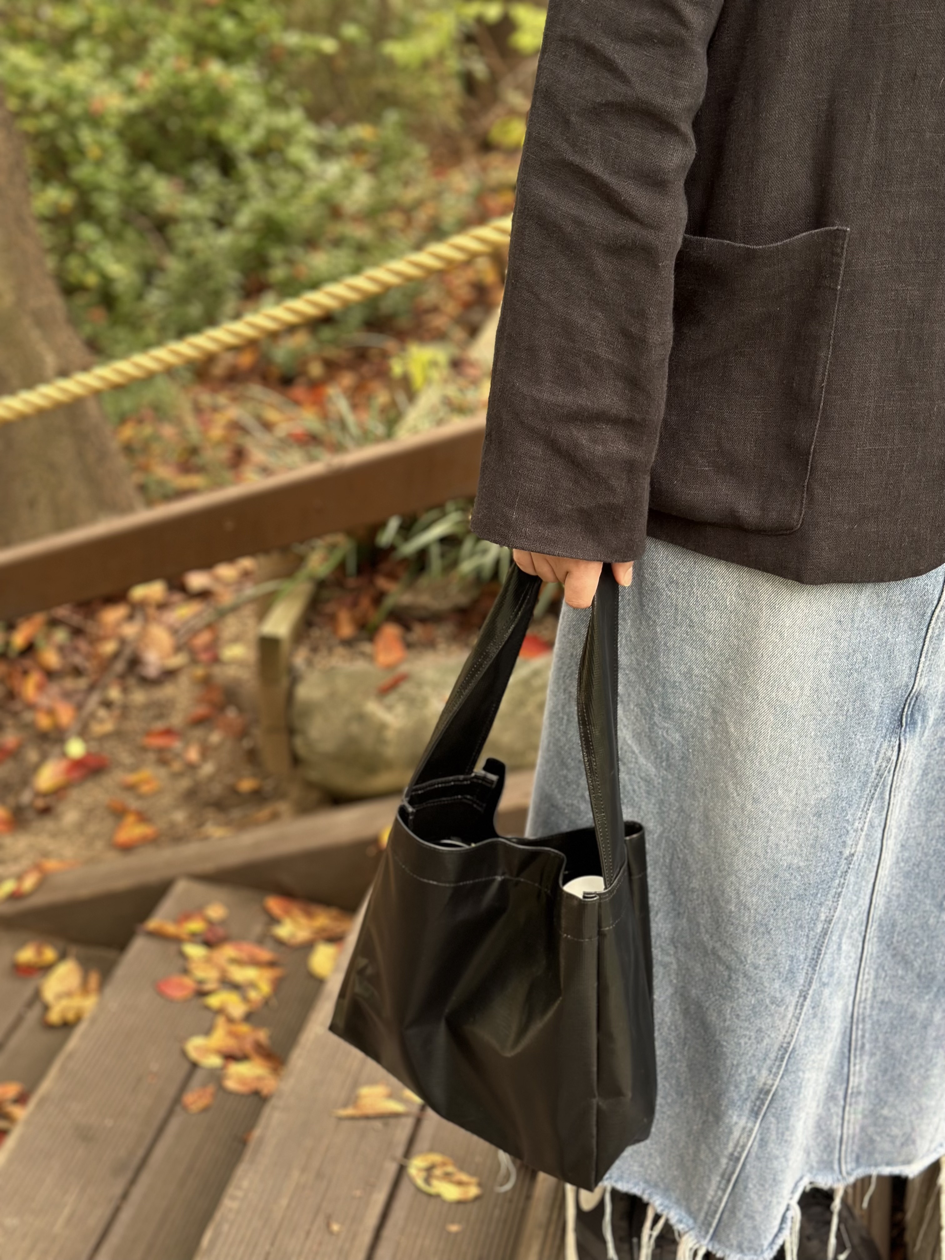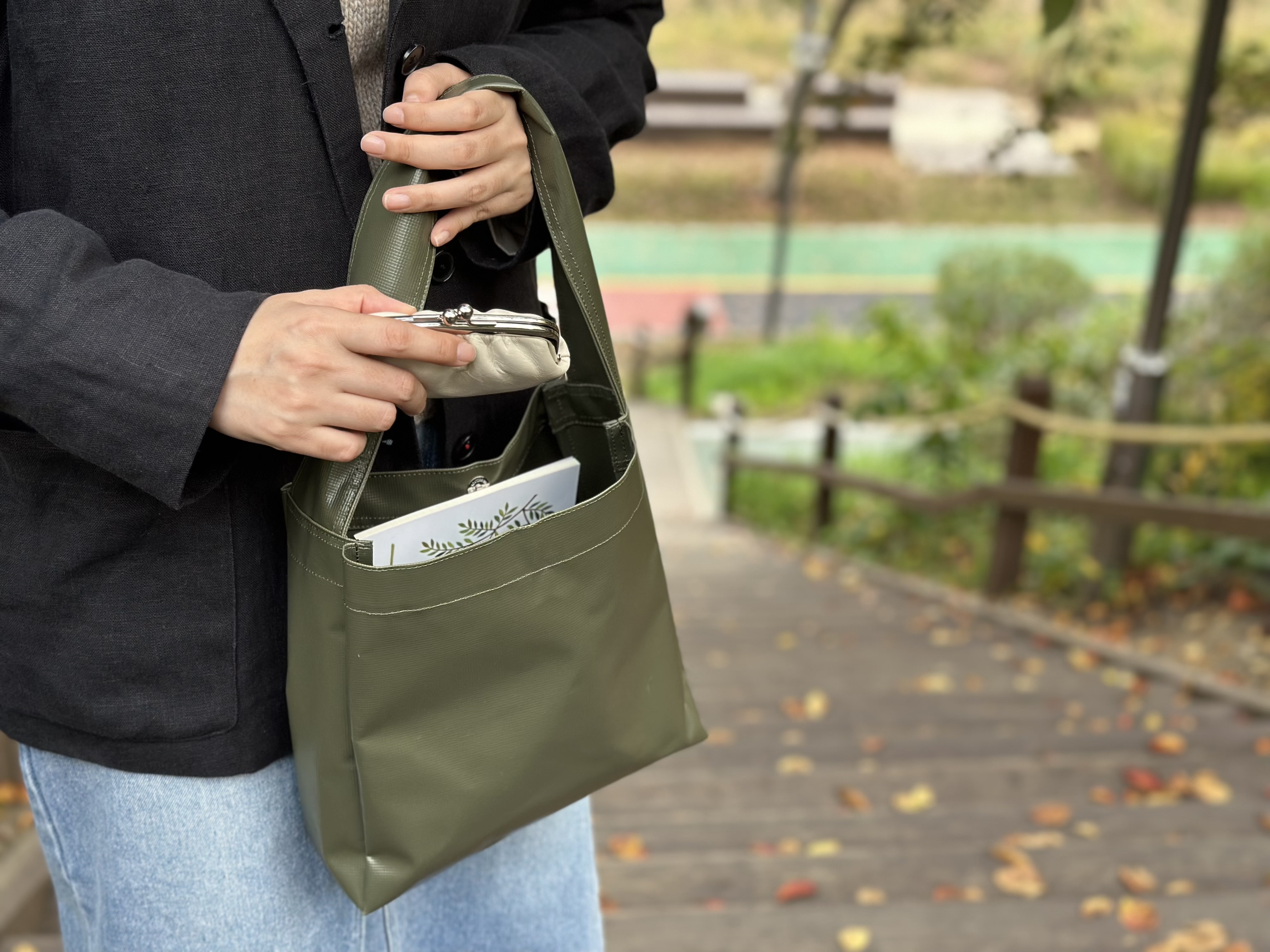 늬은 제작 타포린 소재의 스퀘어백입니다.