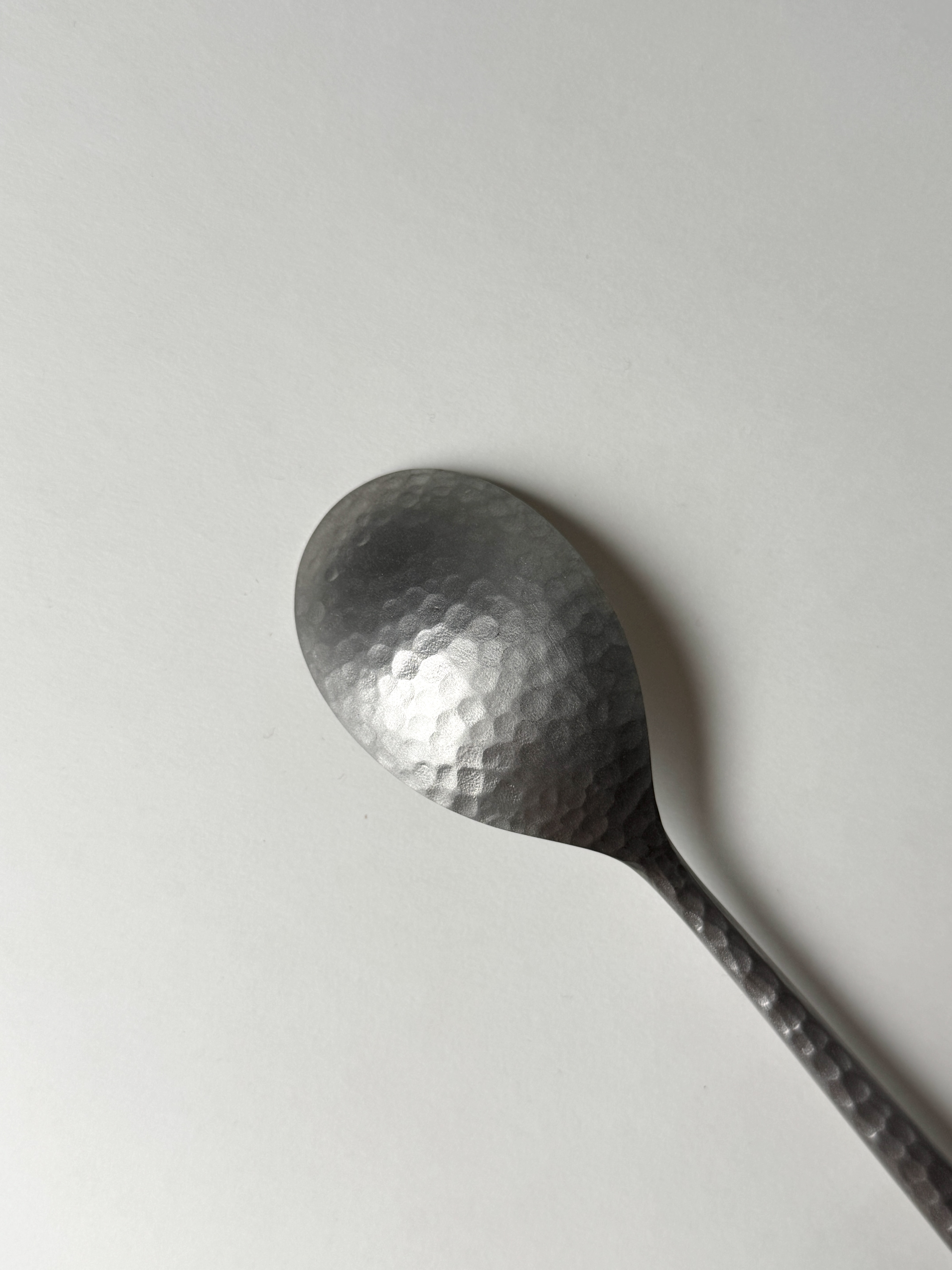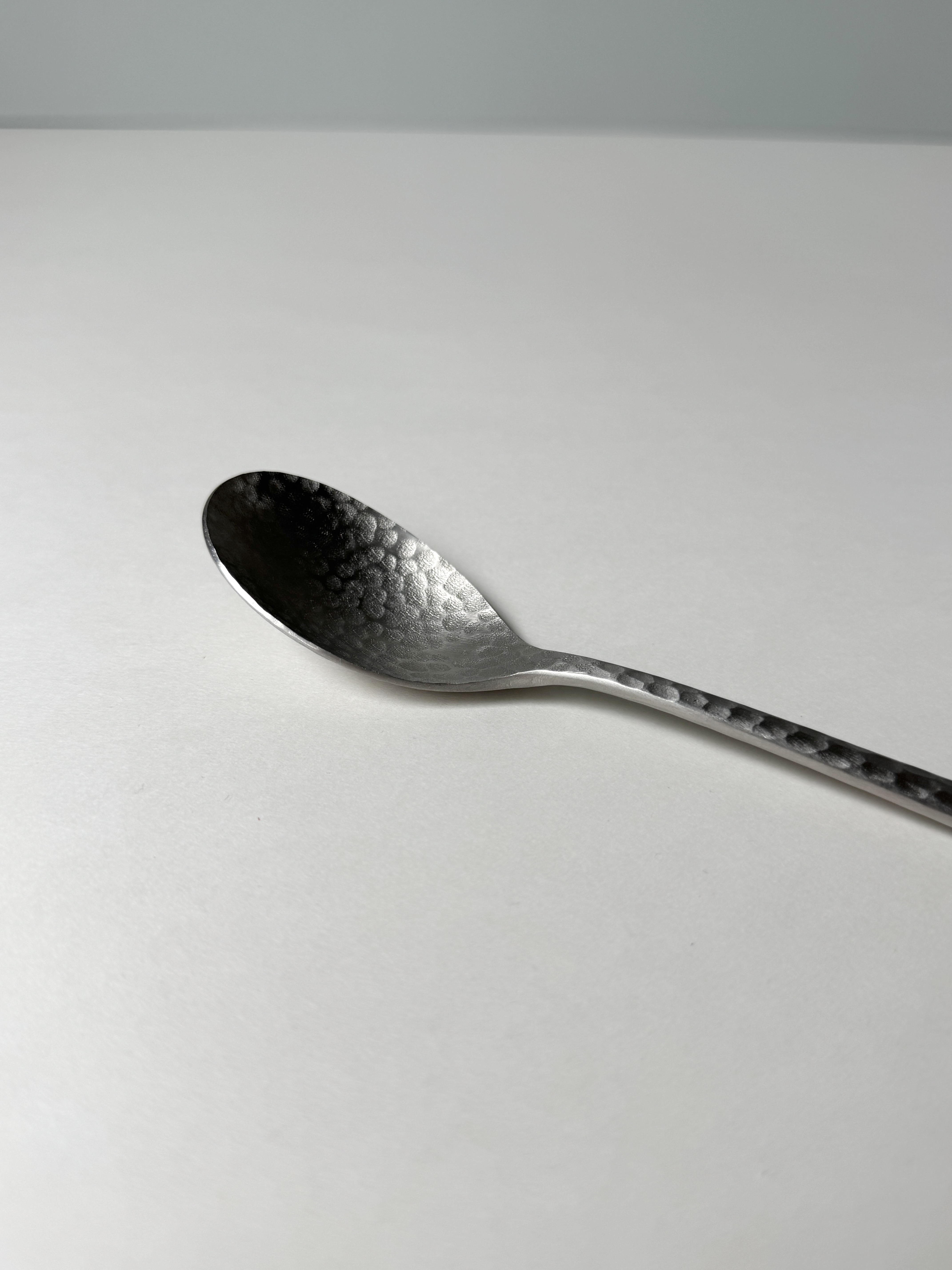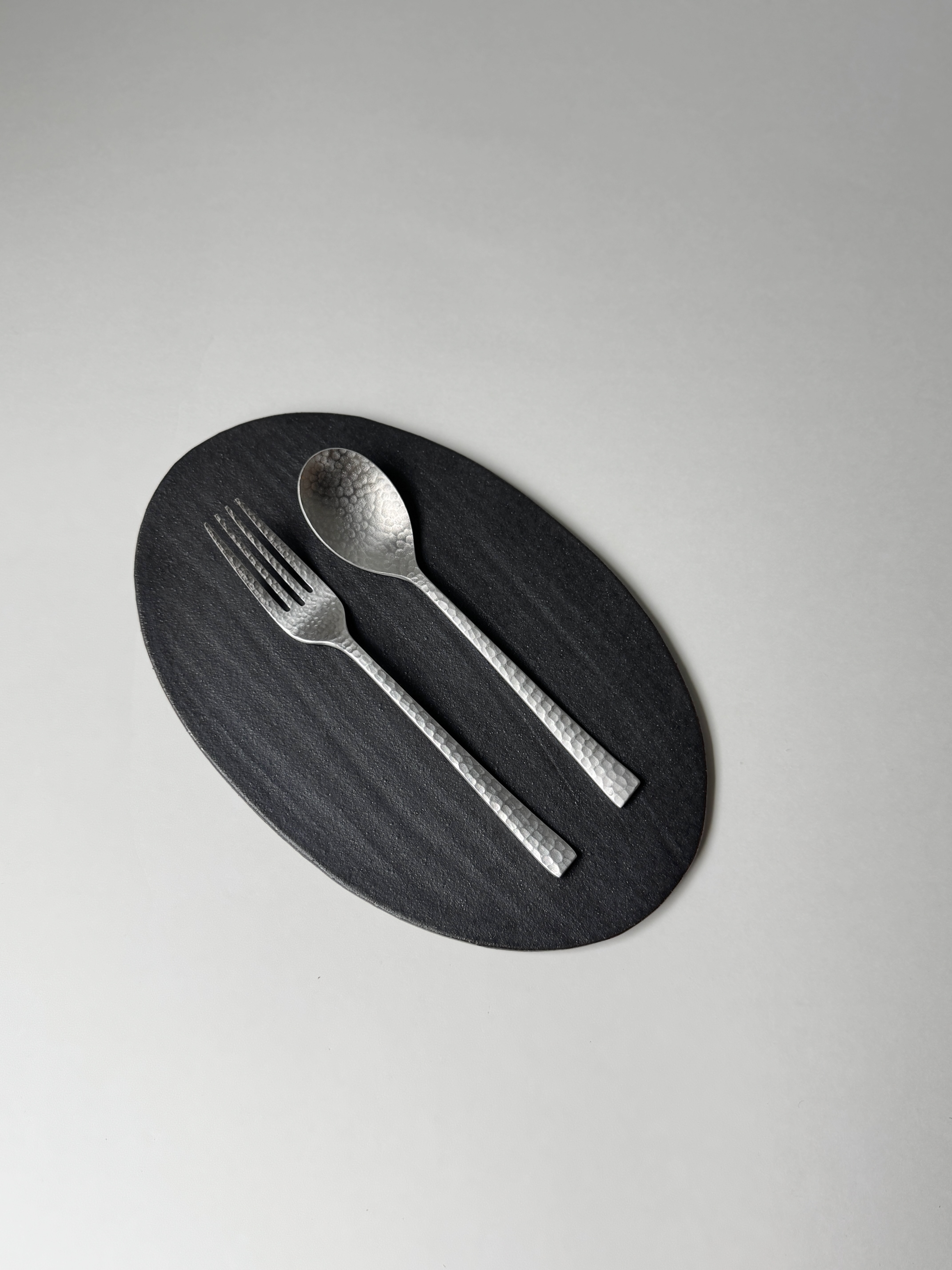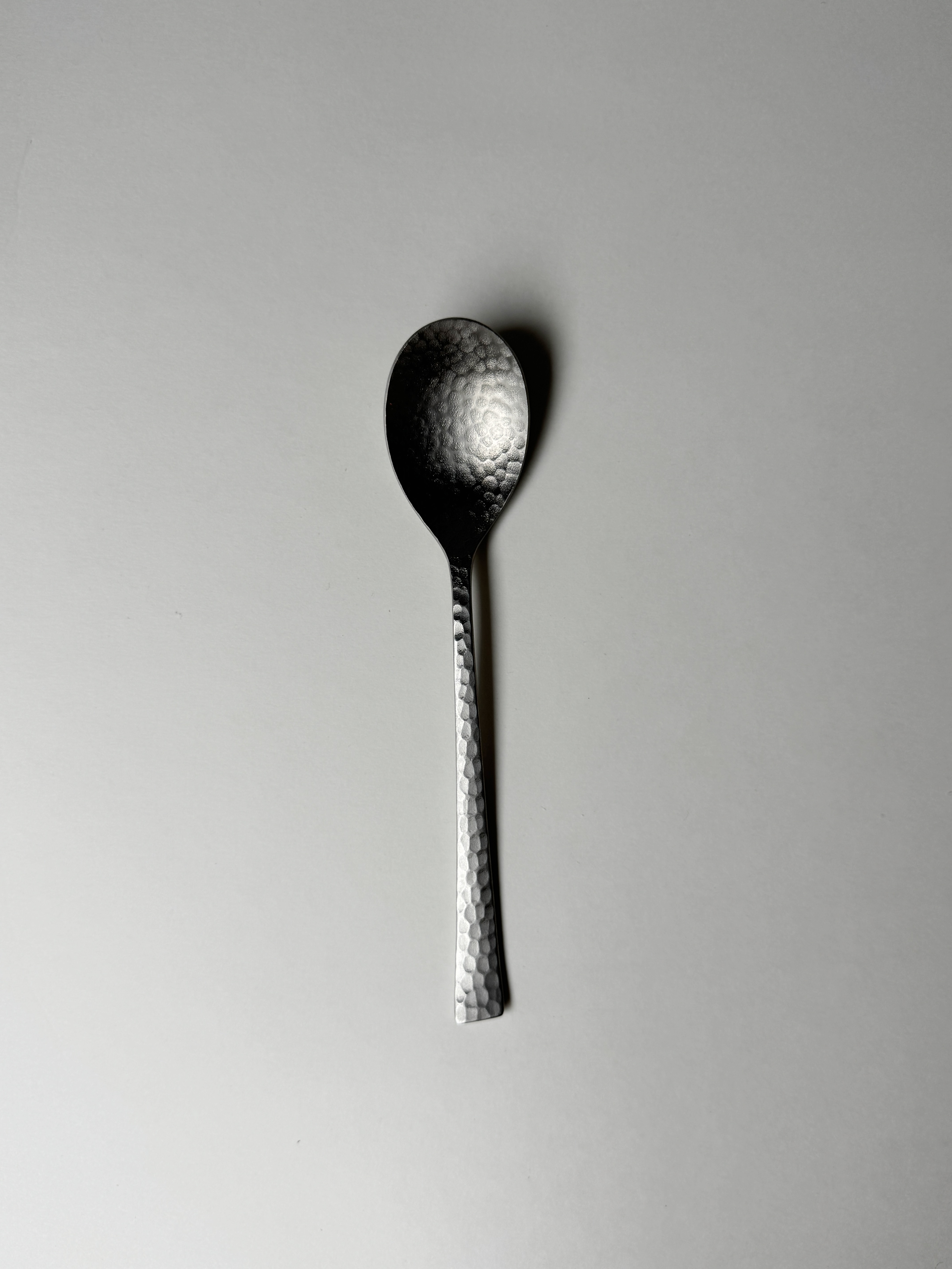 스테인레스 소재로 망치 자국이 멋스러운 제품이며, 무광의 은은한 광이 어느 식기와 무난하게 어울려 추천드립니다.