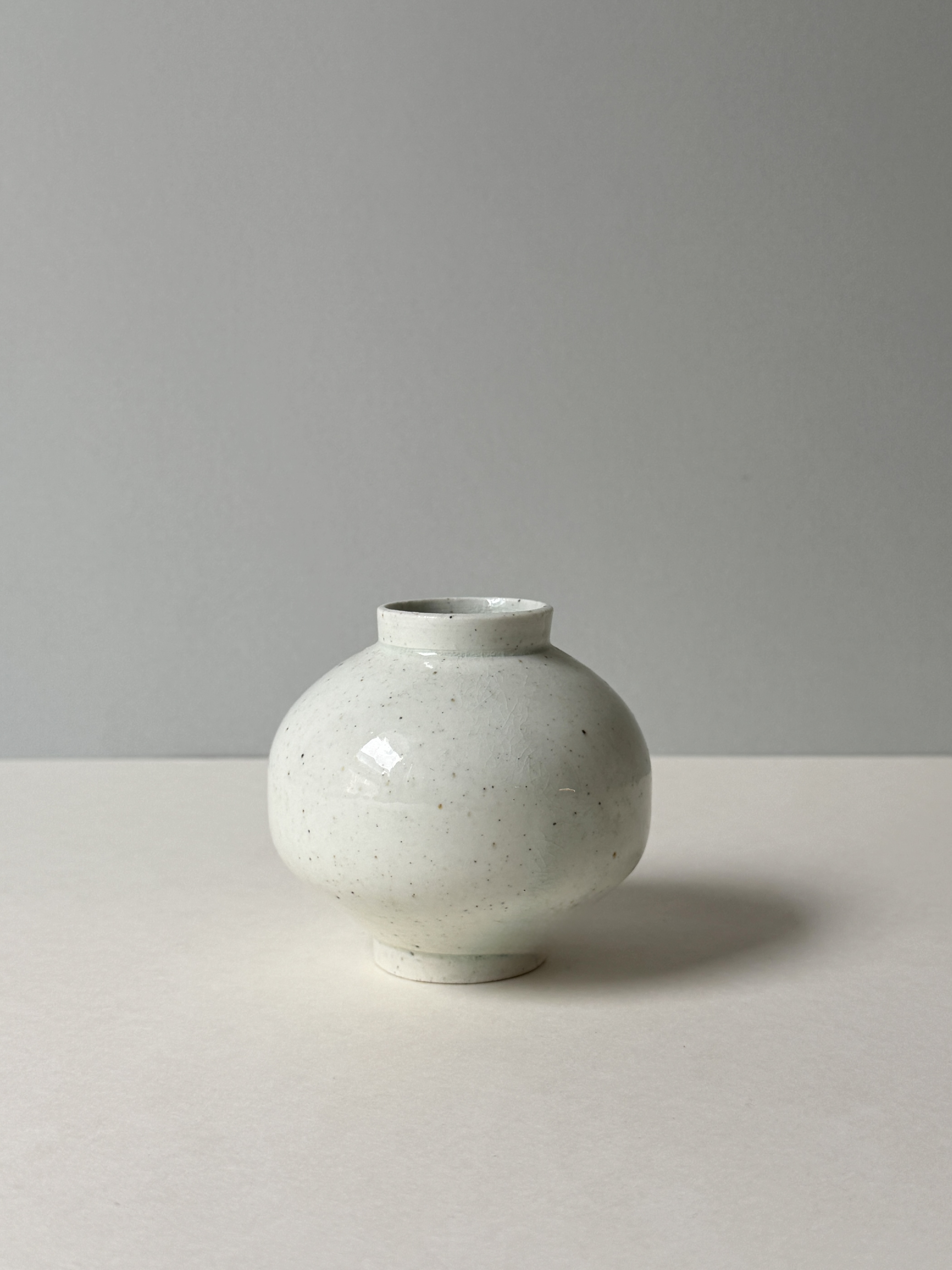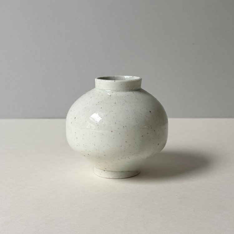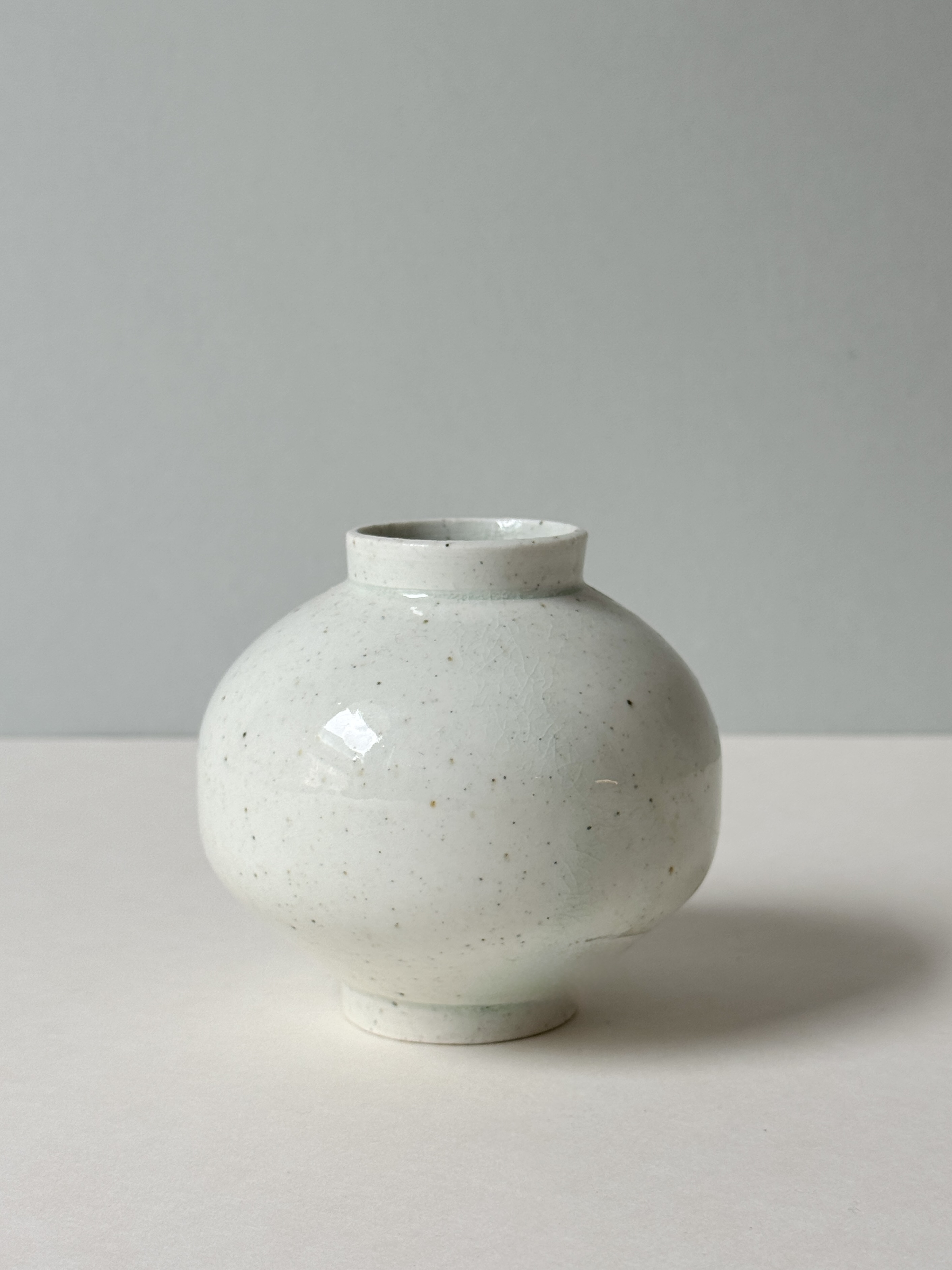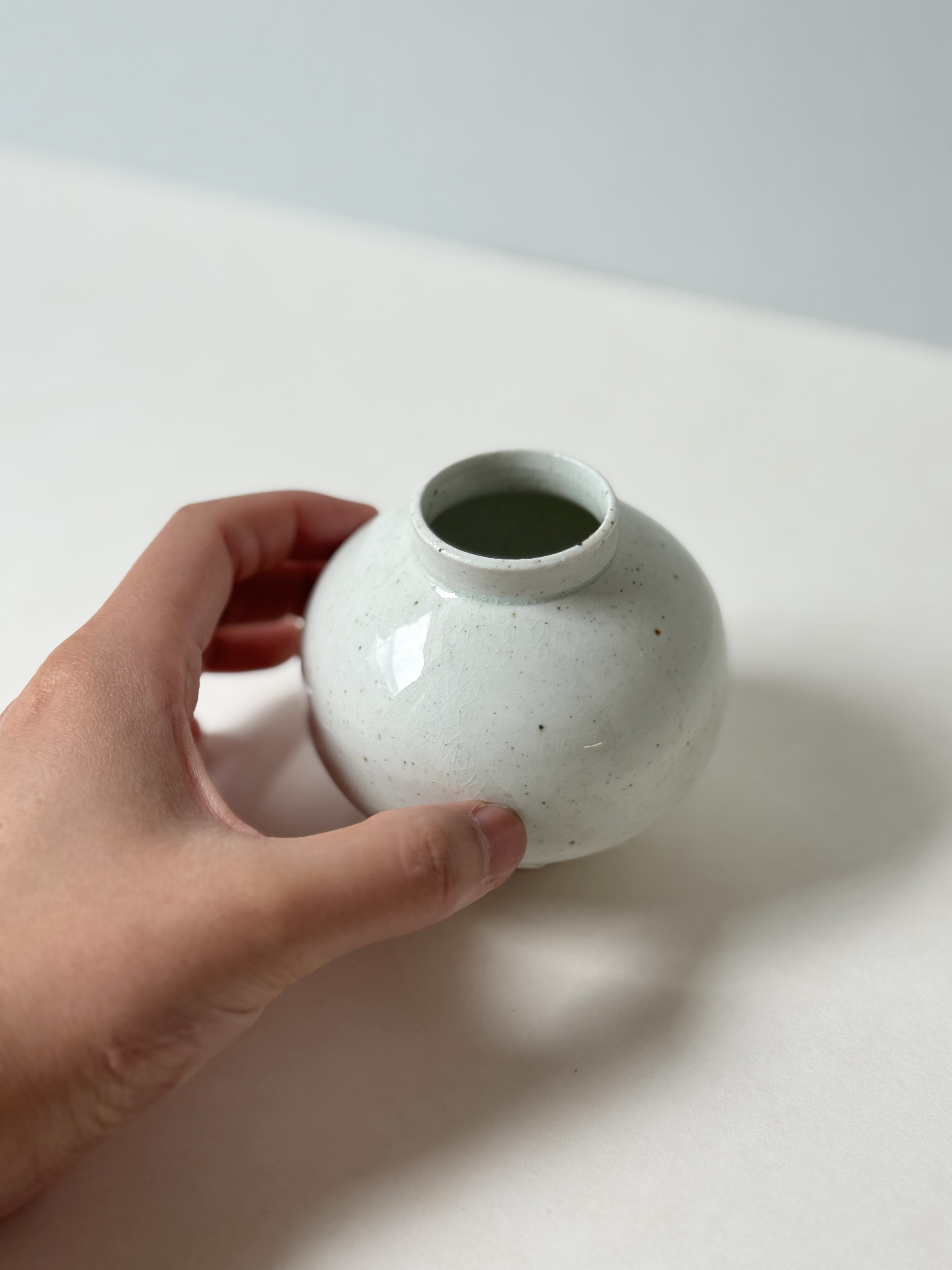 은은한 푸른빛이 도는 작은 달항아리 입니다.
