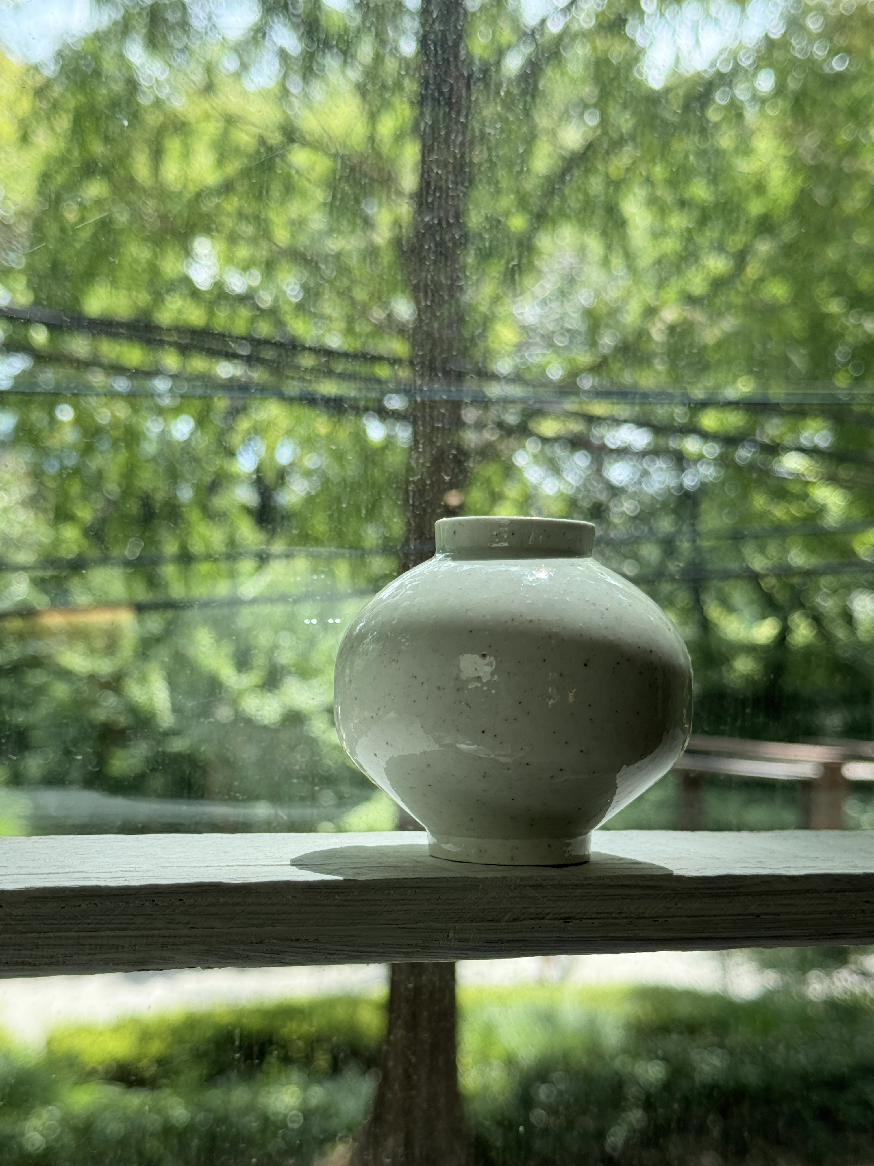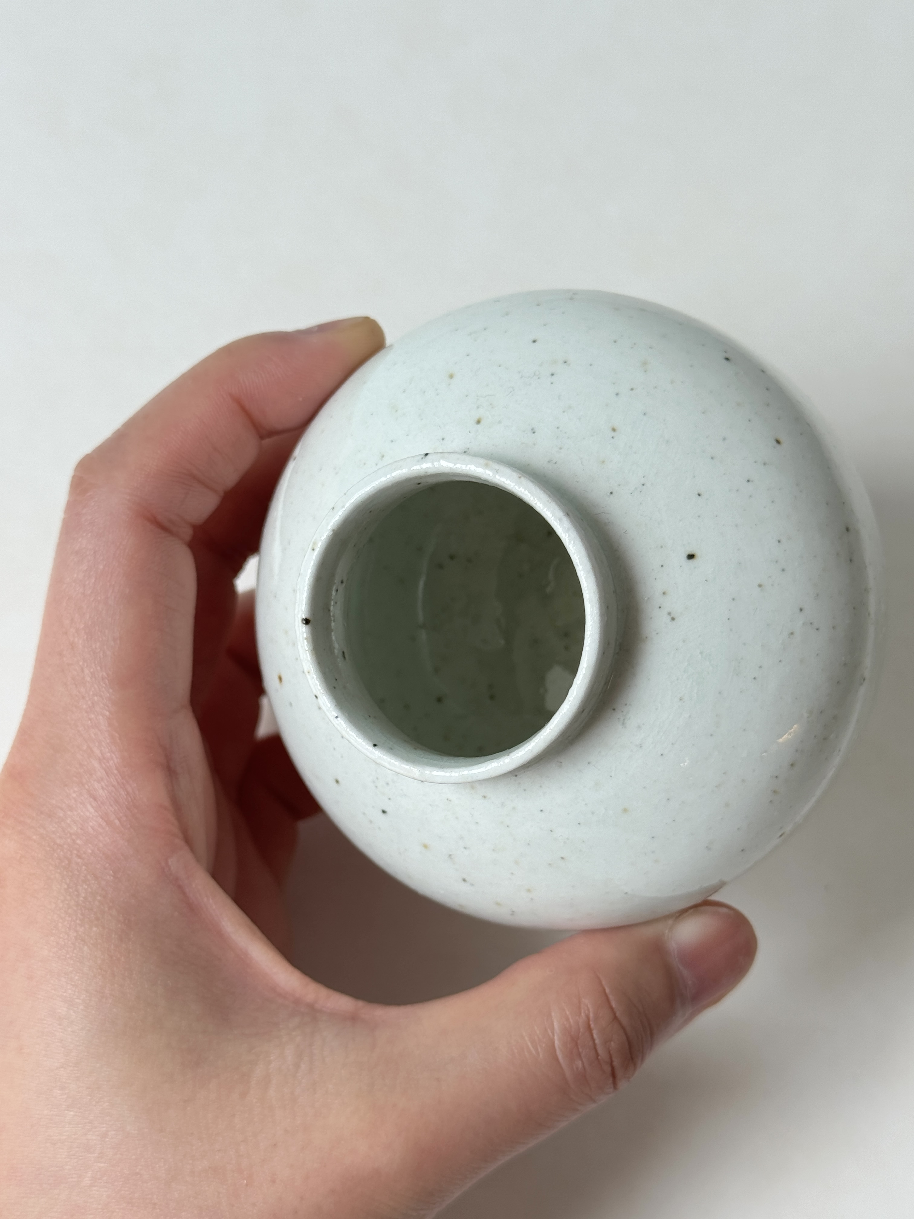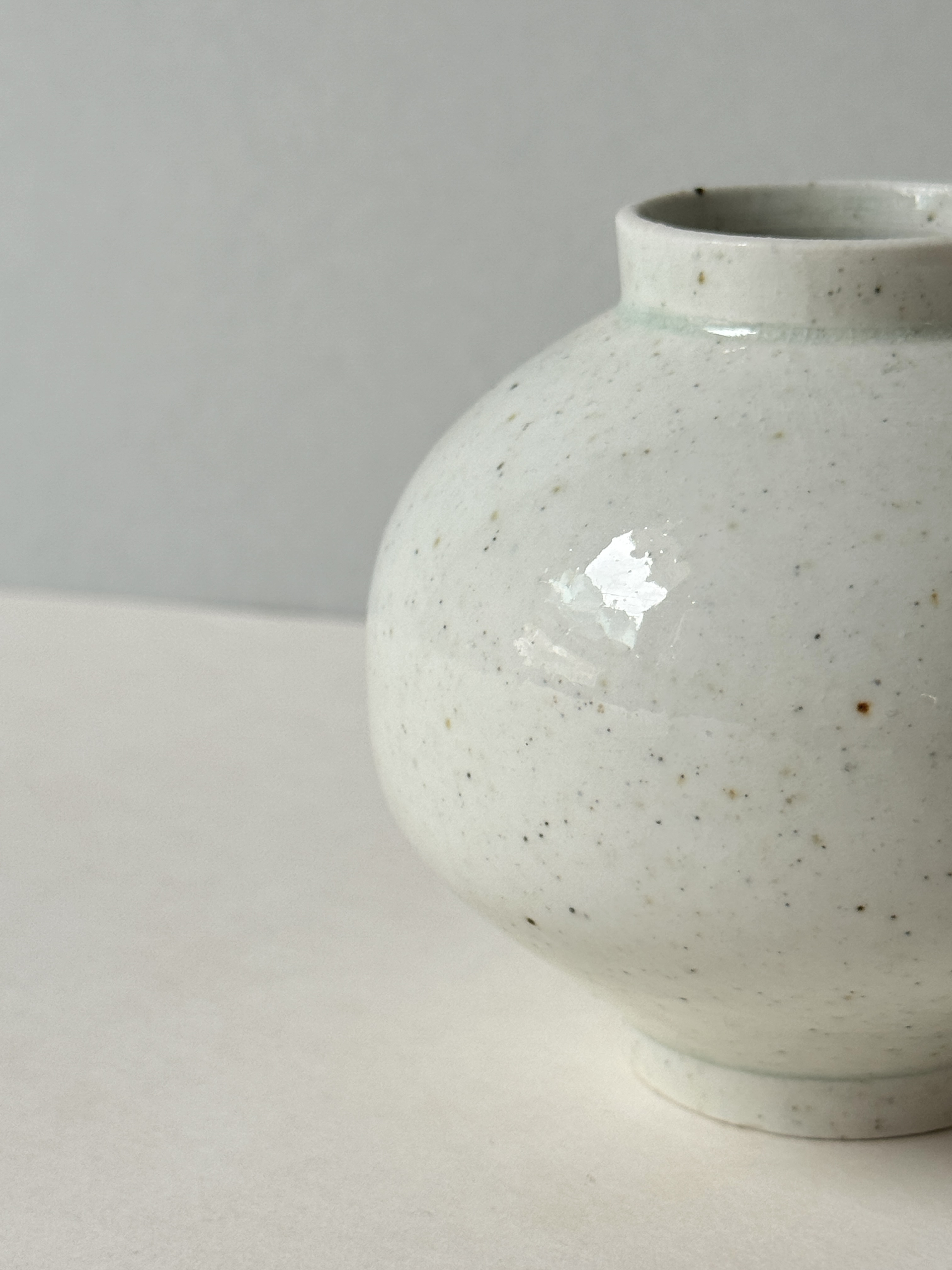 은은한 푸른빛이 도는 작은 달항아리 입니다.