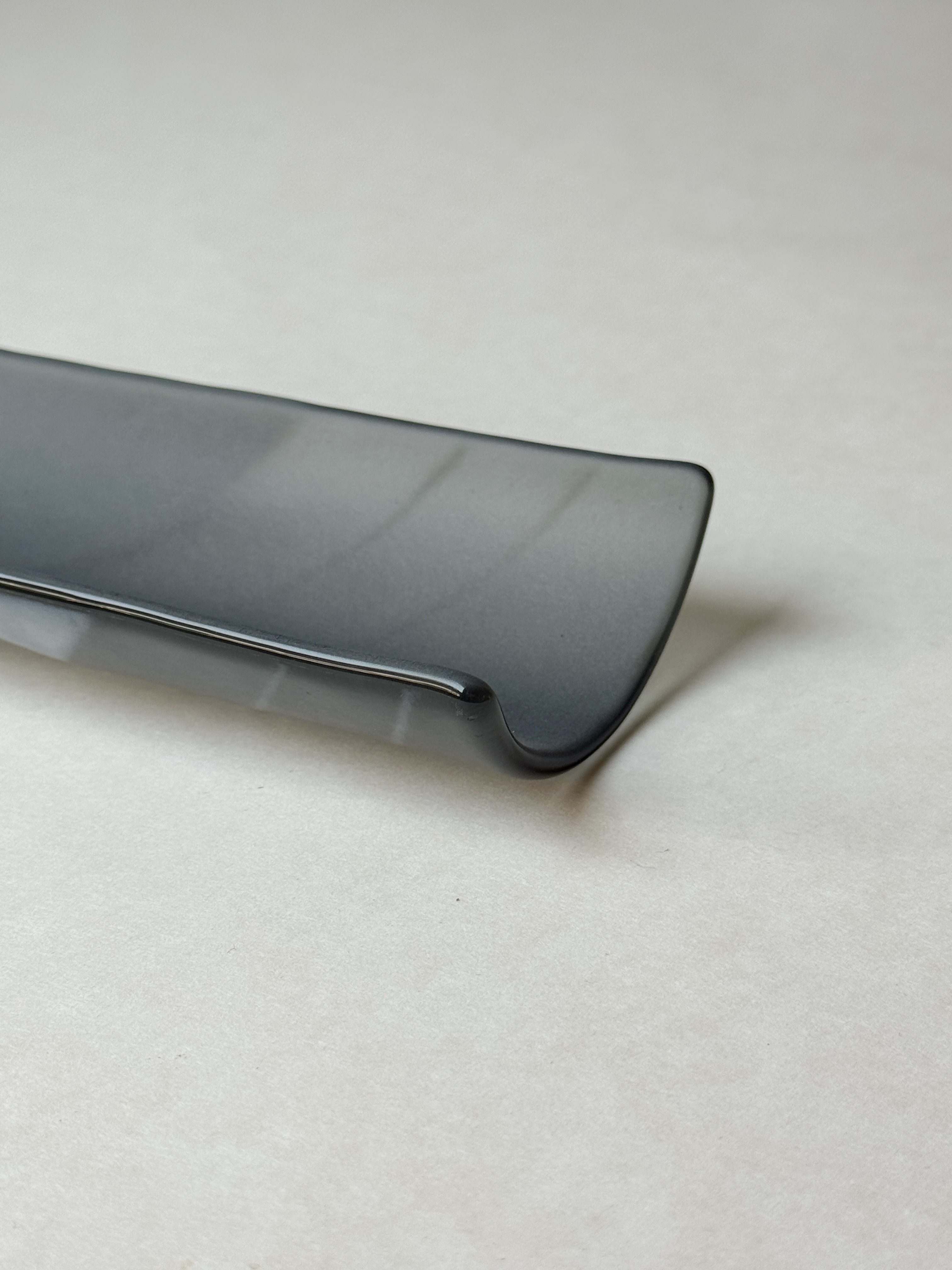 어느 겨울날, 눈길 위에 남은 싸리 빗자루 자국이 문득 따뜻하게 보였어요. 누군가 미끄러질까 걱정하며 눈을 쓸어낸 마음이 담긴 거 같아서요. 그 배려의 흔적을 유리에 담아보고 싶어서 구상한 작업이에요.